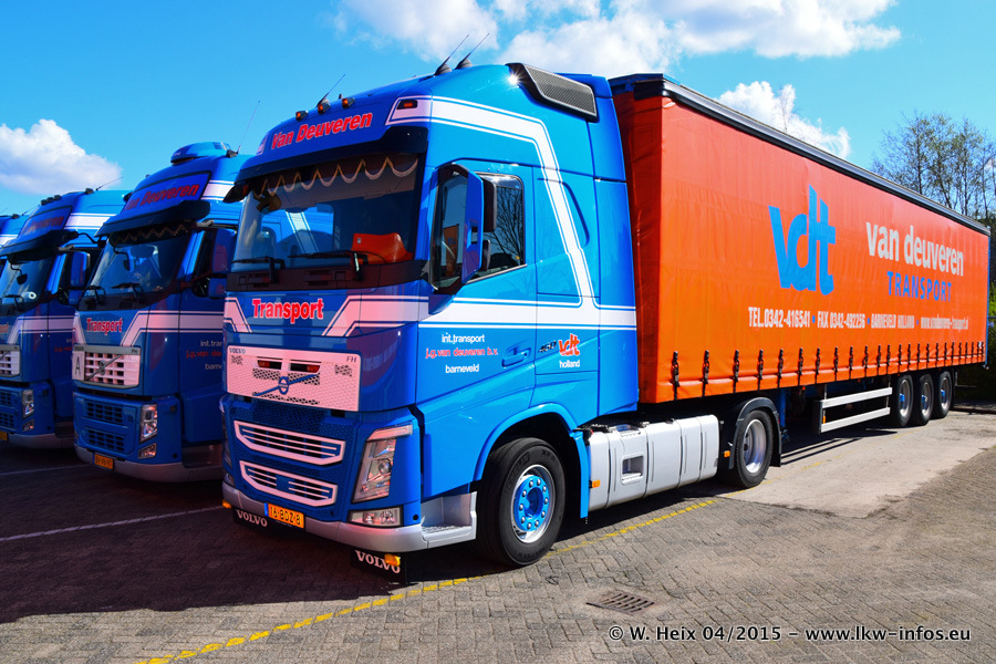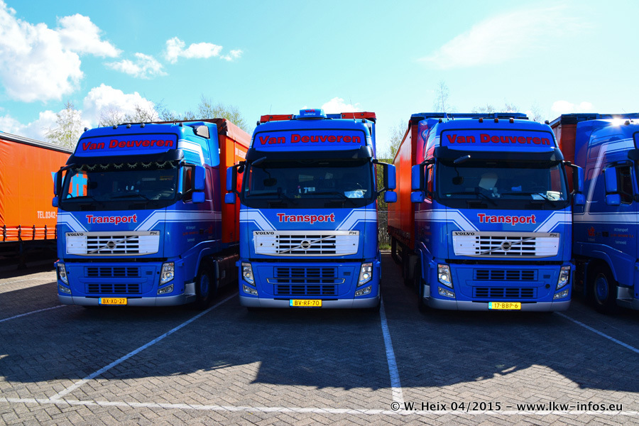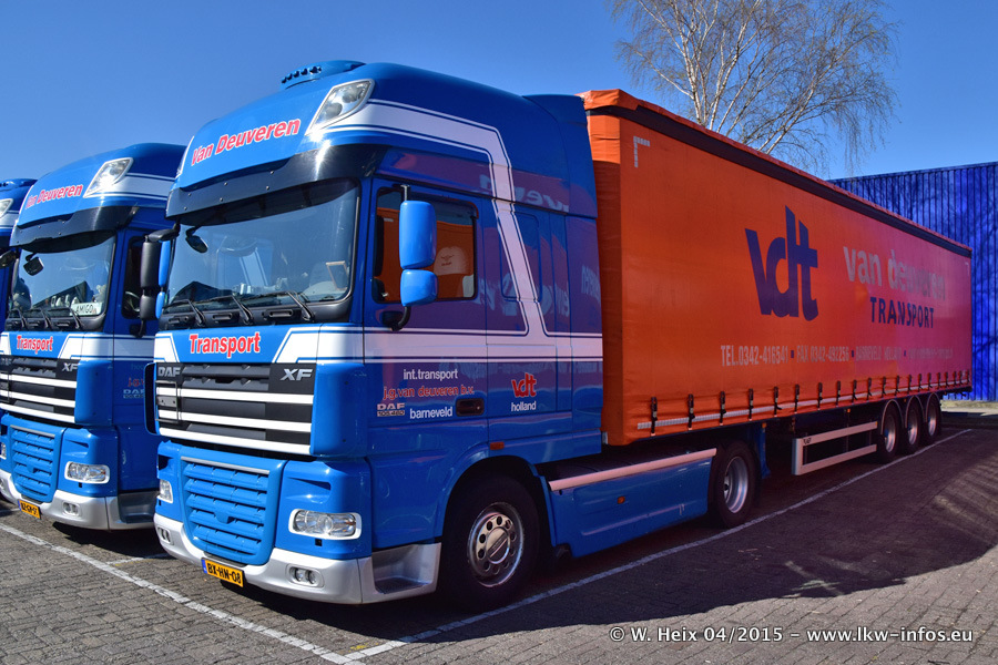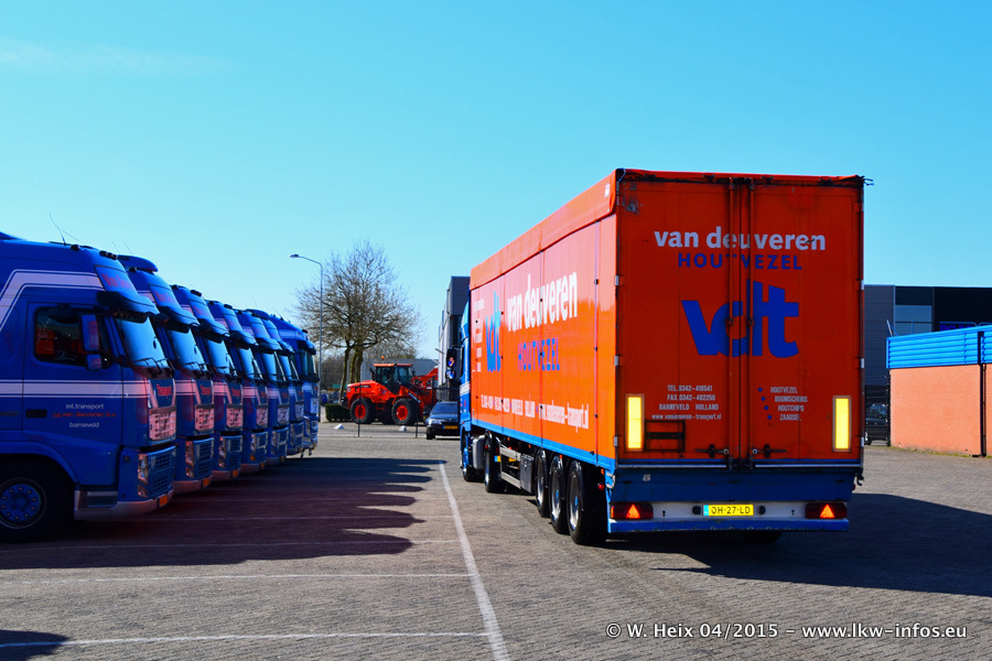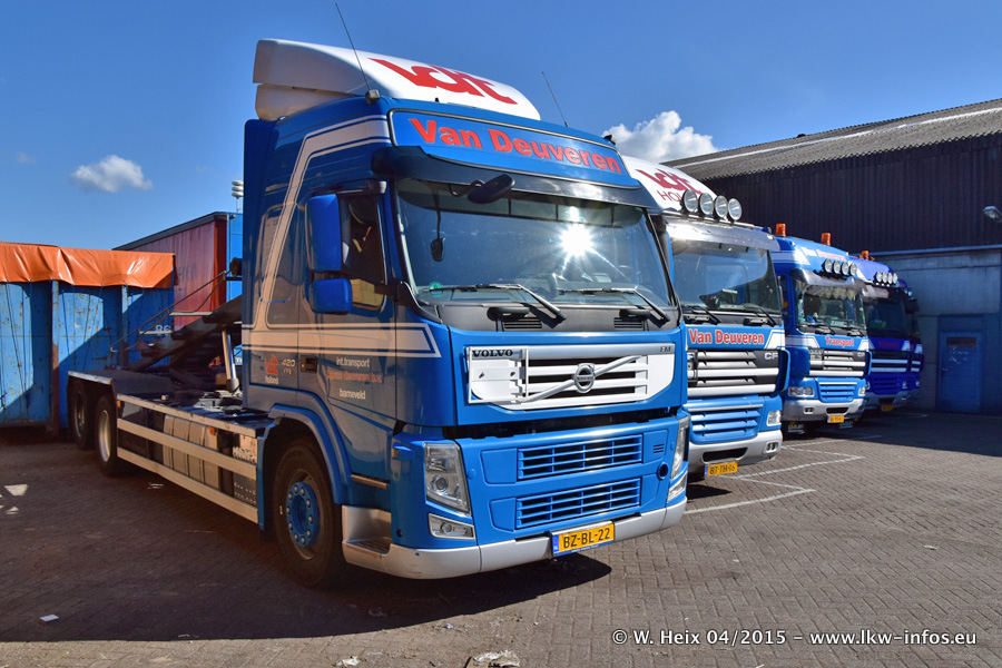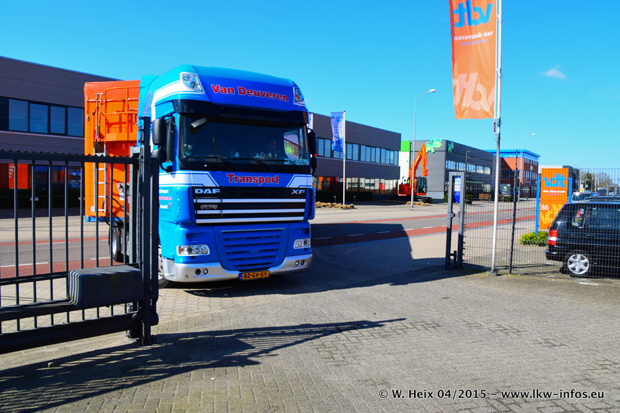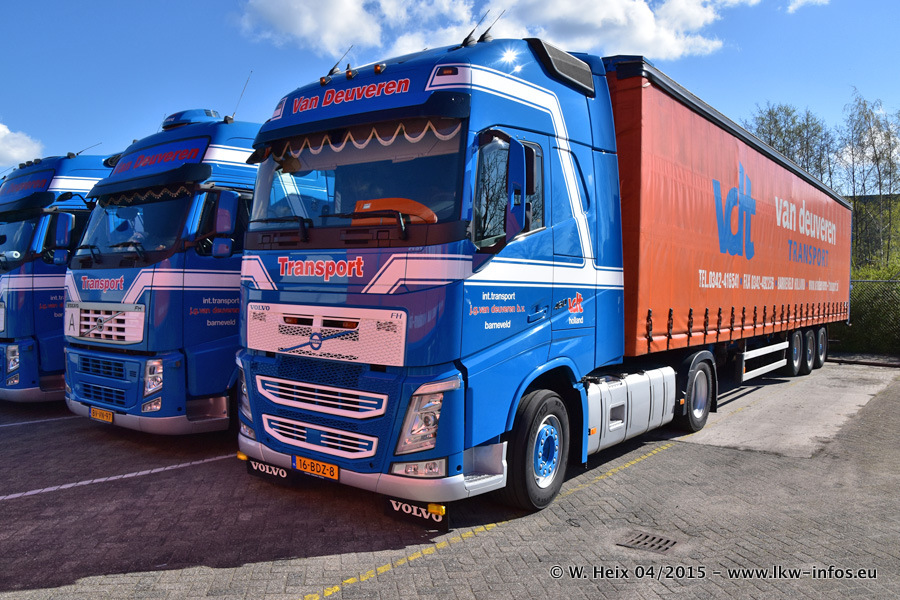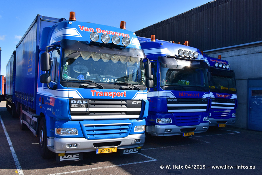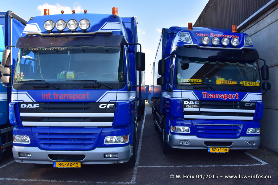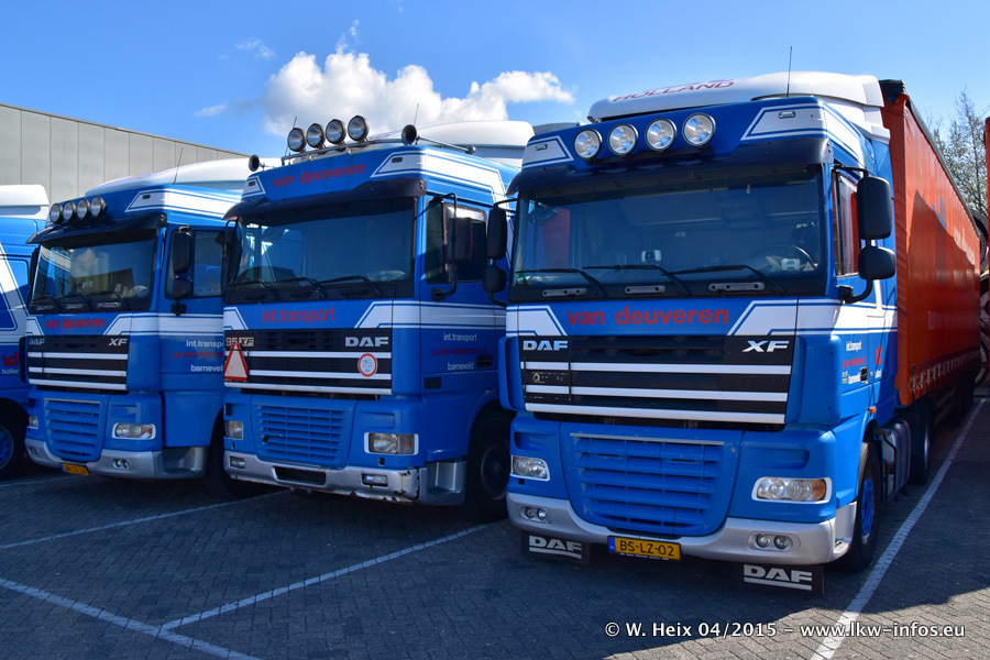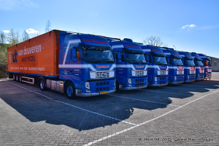Seit meinem ersten Besuch bei van Deuveren im Januar 2014 sind einige LKW neu im Fuhrpark. Es gibt mindestens einen Volvo New FH (FH 4) und vier DAF XF 105 Euro 6. Drei davon standen auf dem Hof.