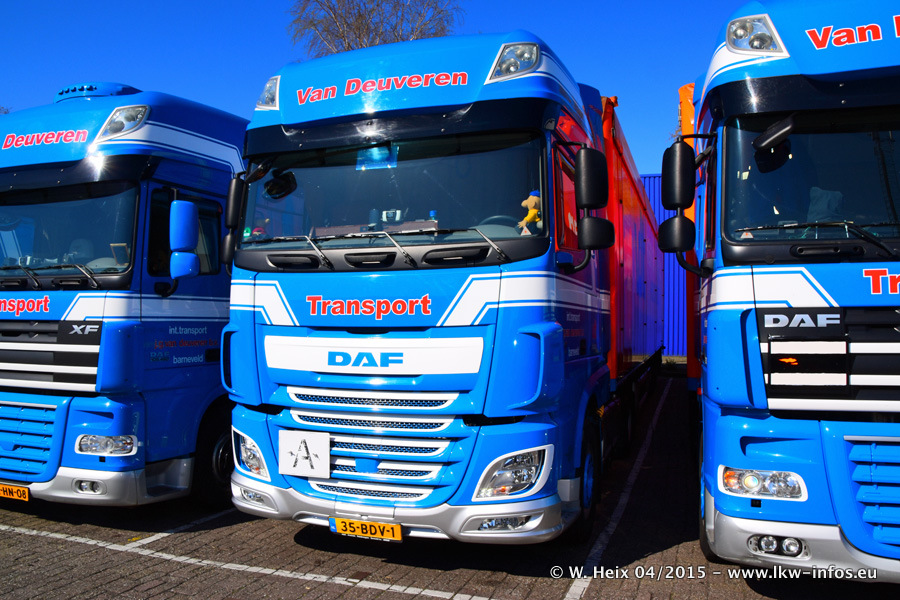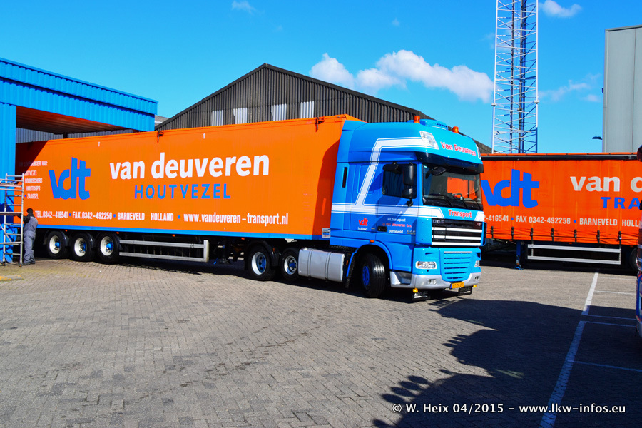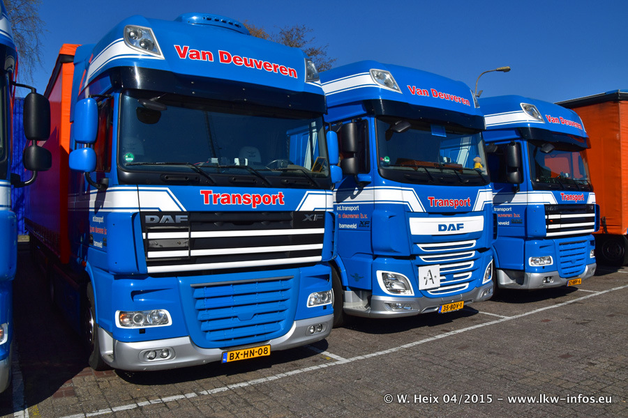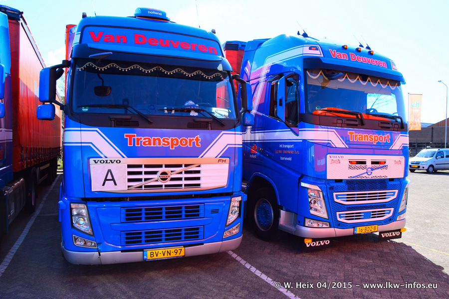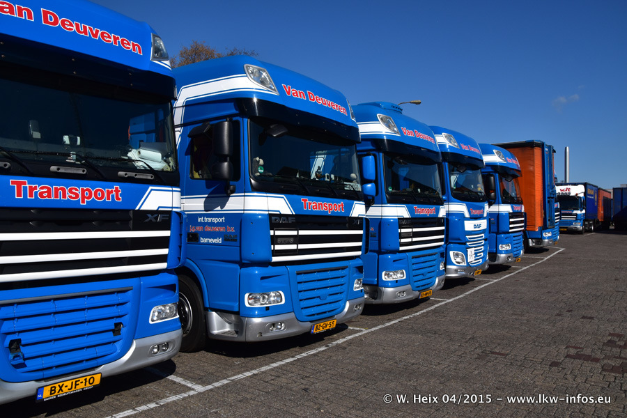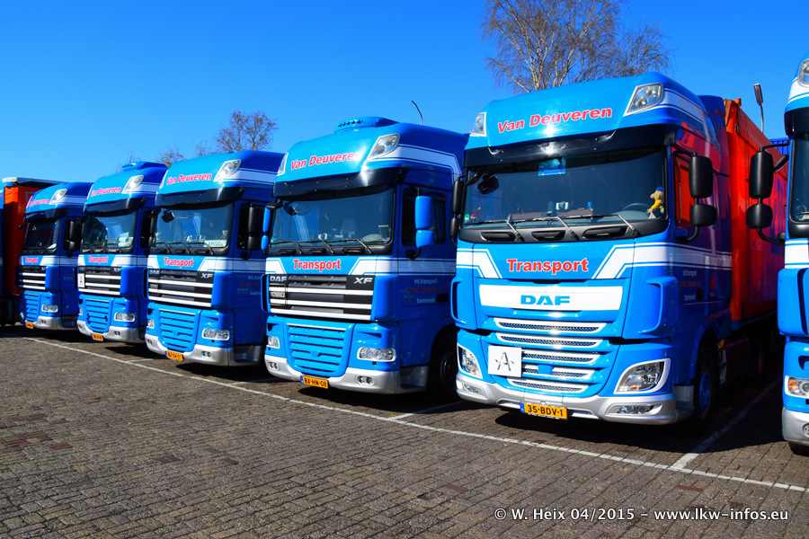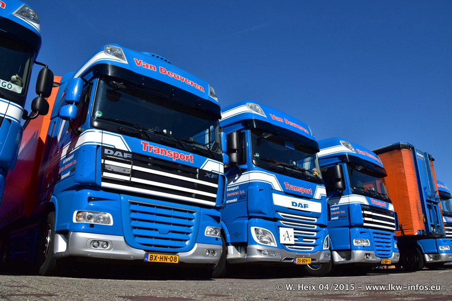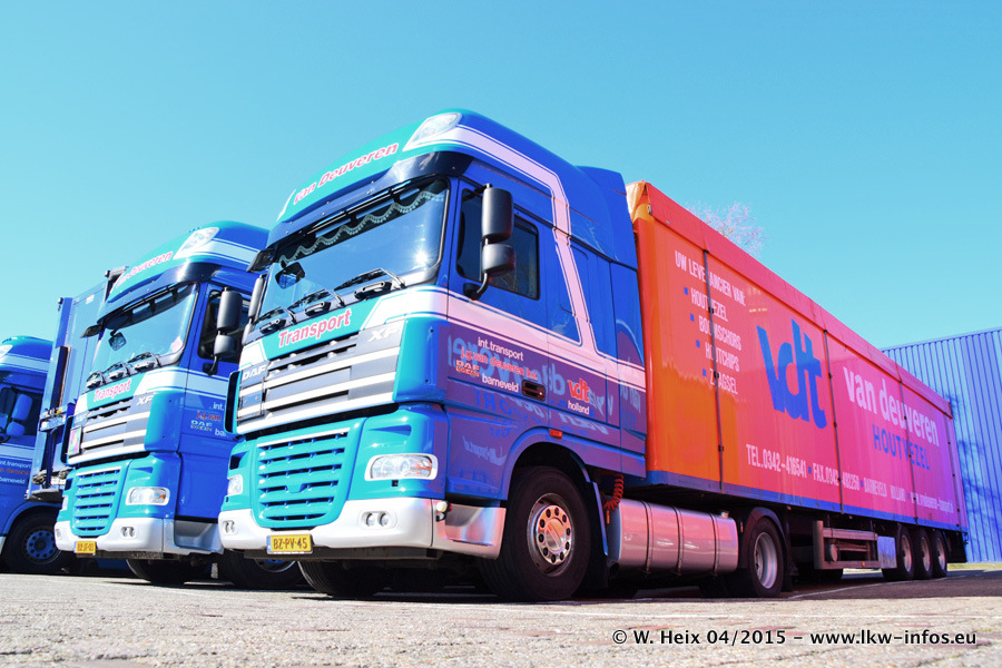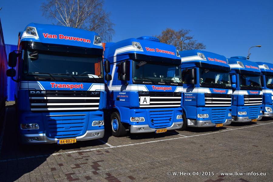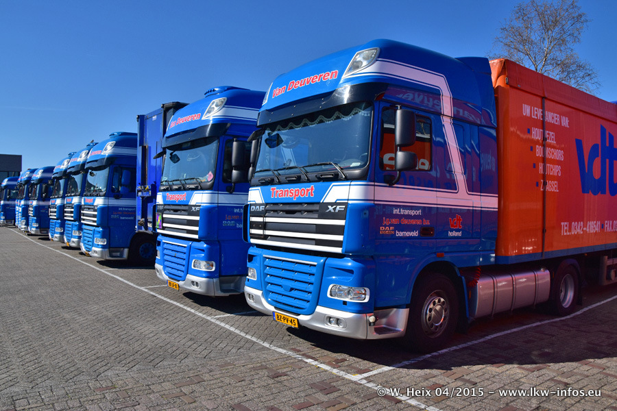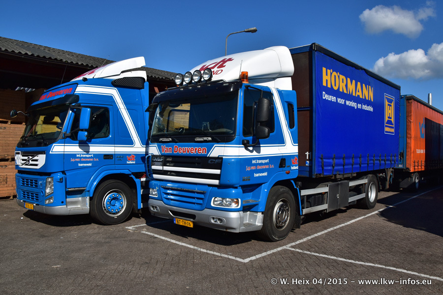 Seit meinem ersten Besuch bei van Deuveren im Januar 2014 sind einige LKW neu im Fuhrpark. Es gibt mindestens einen Volvo New FH (FH 4) und vier DAF XF 105 Euro 6. Drei davon standen auf dem Hof.