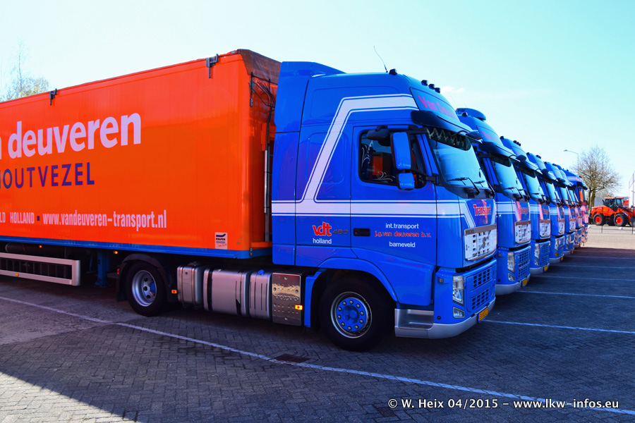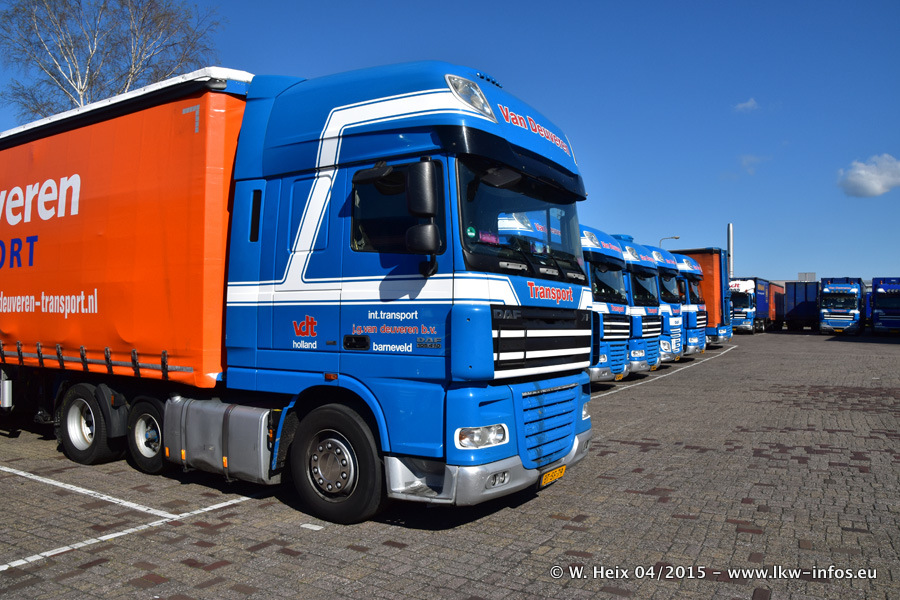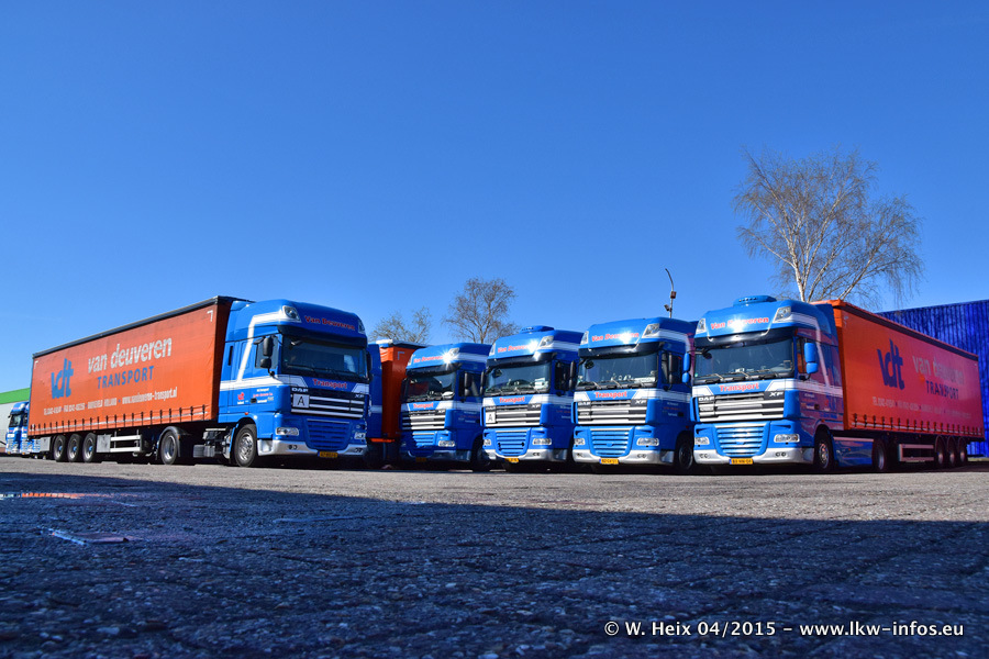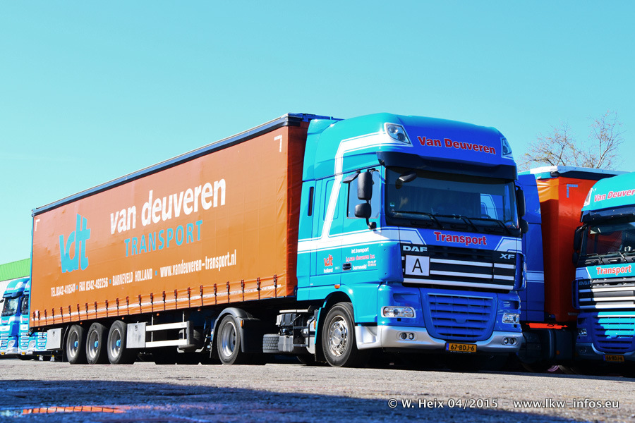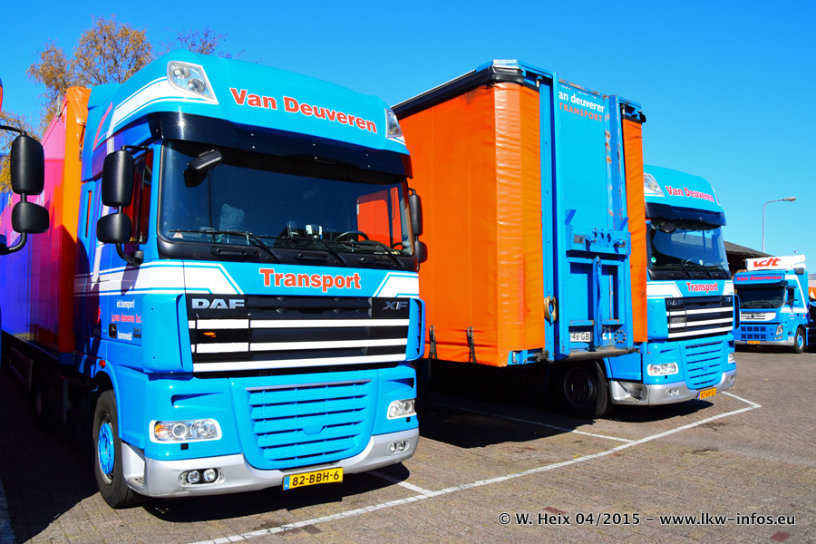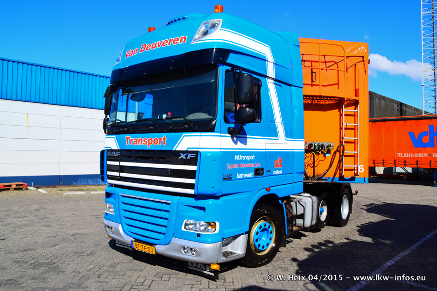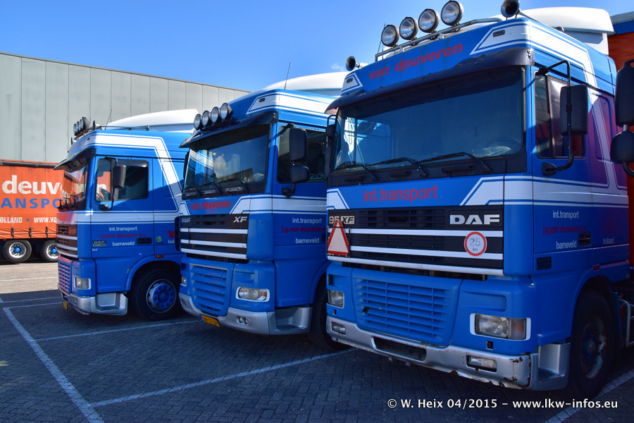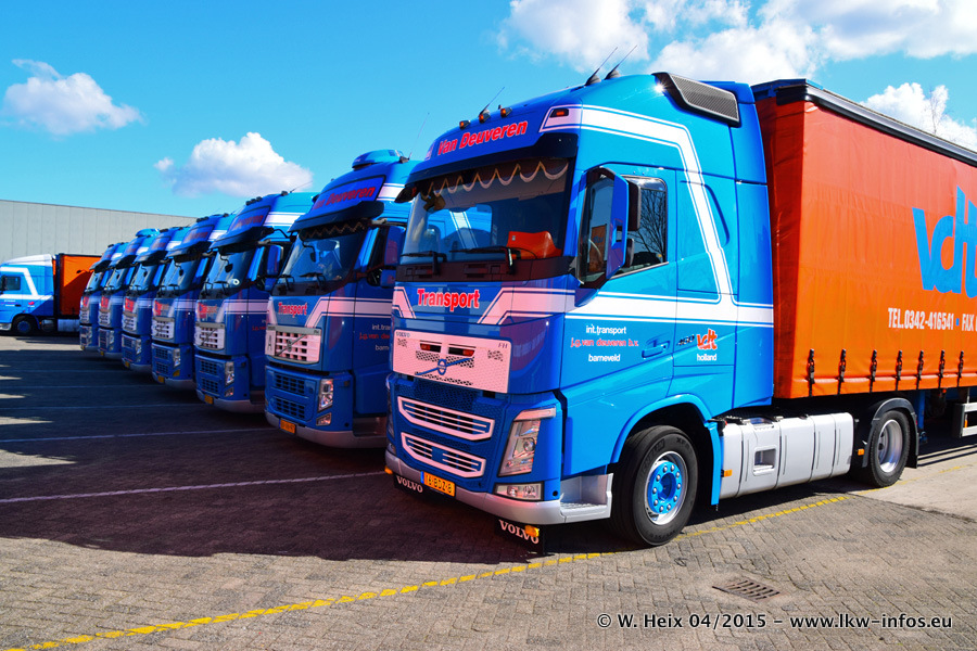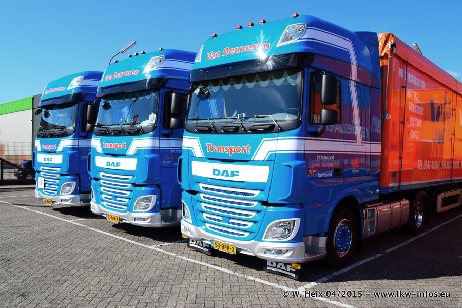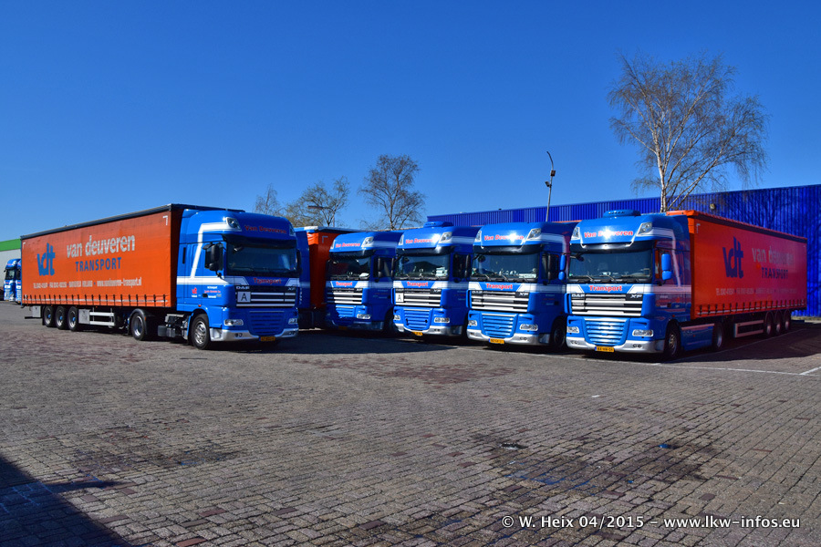 Seit meinem ersten Besuch bei van Deuveren im Januar 2014 sind einige LKW neu im Fuhrpark. Es gibt mindestens einen Volvo New FH (FH 4) und vier DAF XF 105 Euro 6. Drei davon standen auf dem Hof.