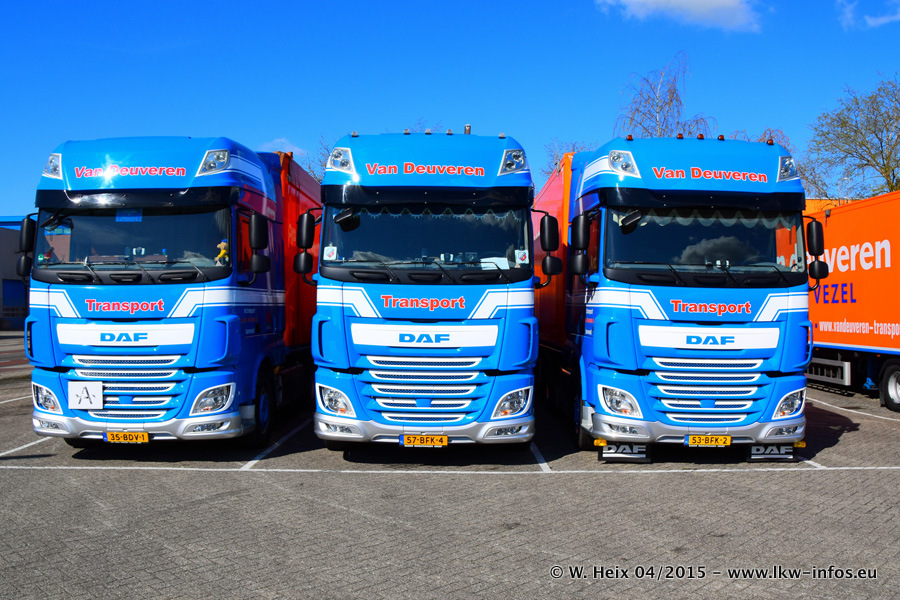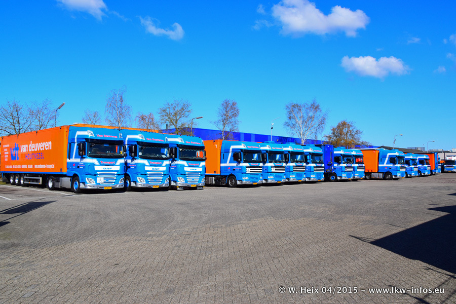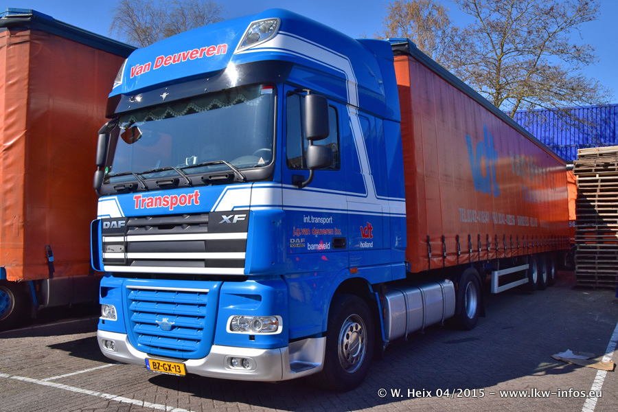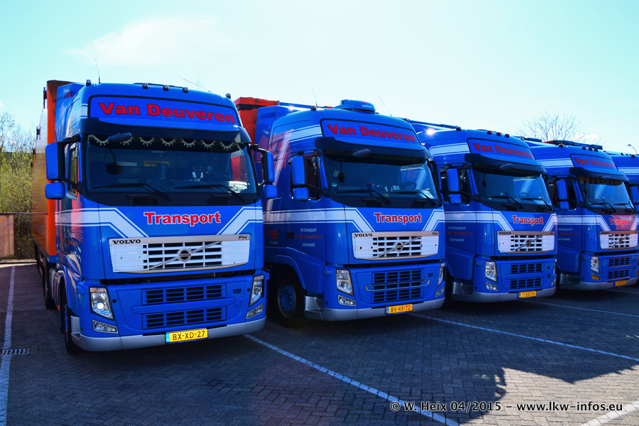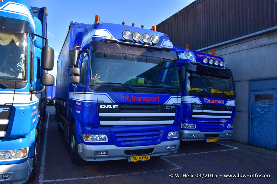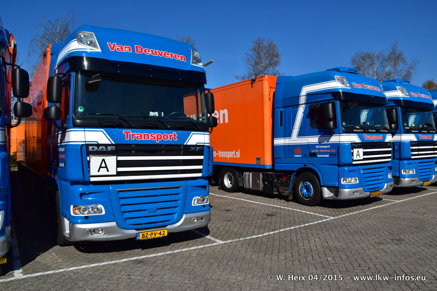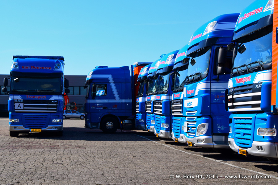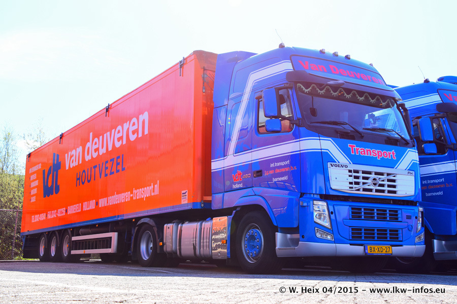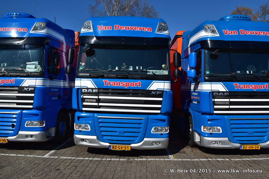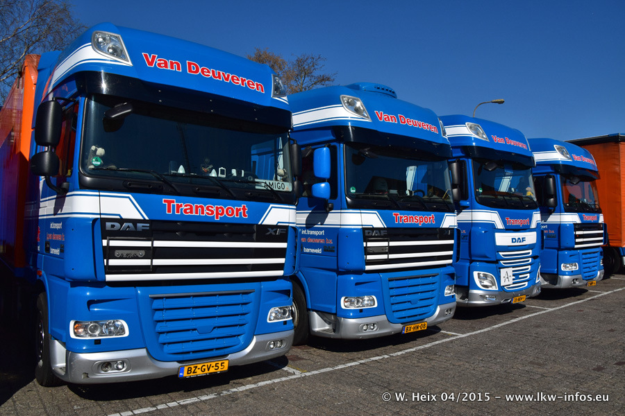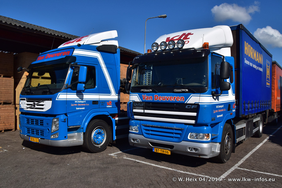 Seit meinem ersten Besuch bei van Deuveren im Januar 2014 sind einige LKW neu im Fuhrpark. Es gibt mindestens einen Volvo New FH (FH 4) und vier DAF XF 105 Euro 6. Drei davon standen auf dem Hof.