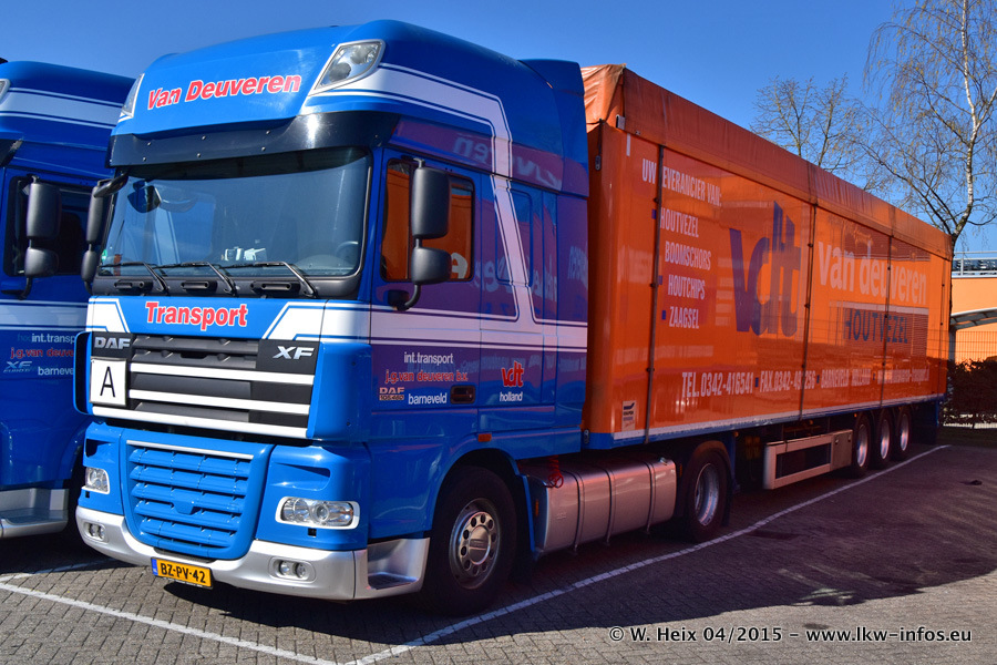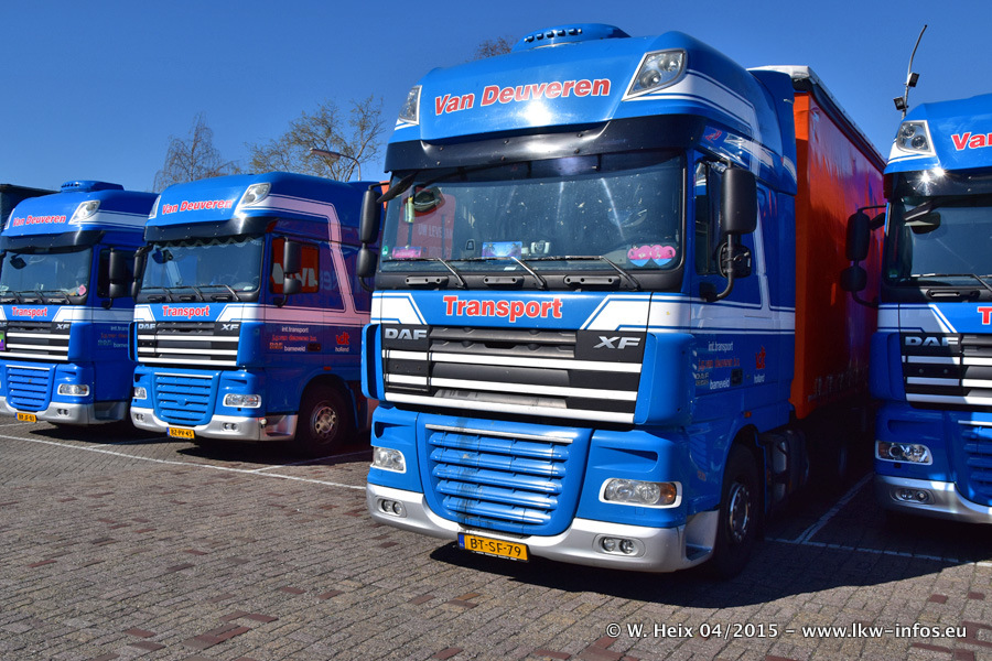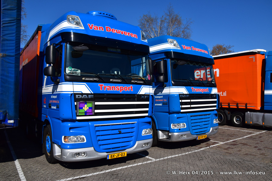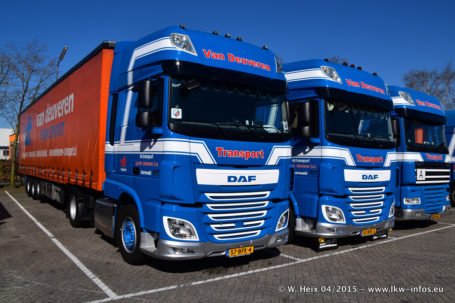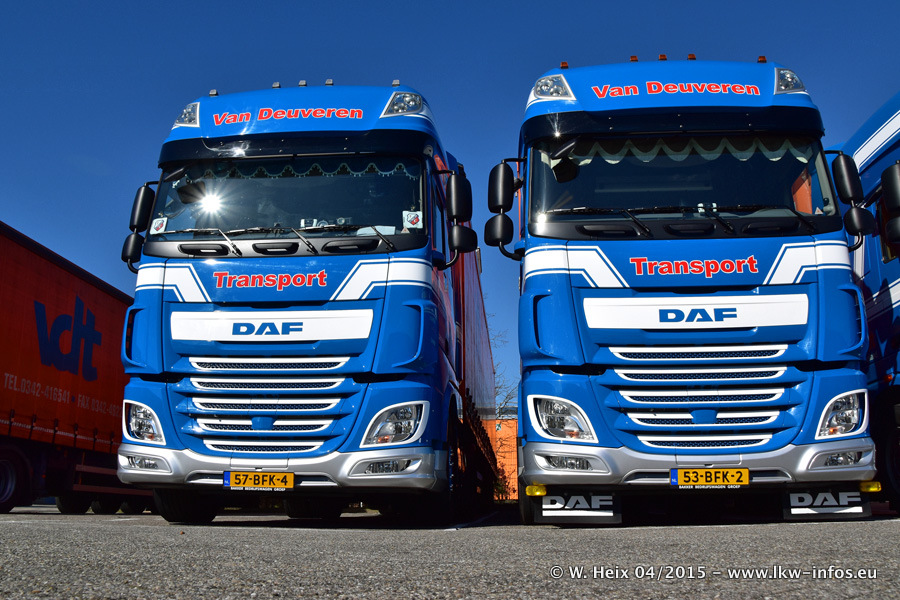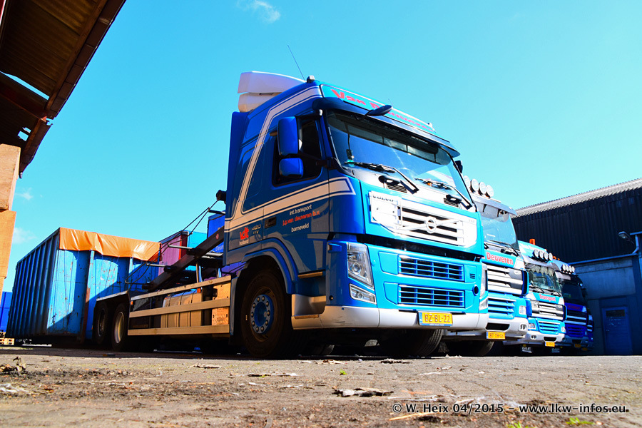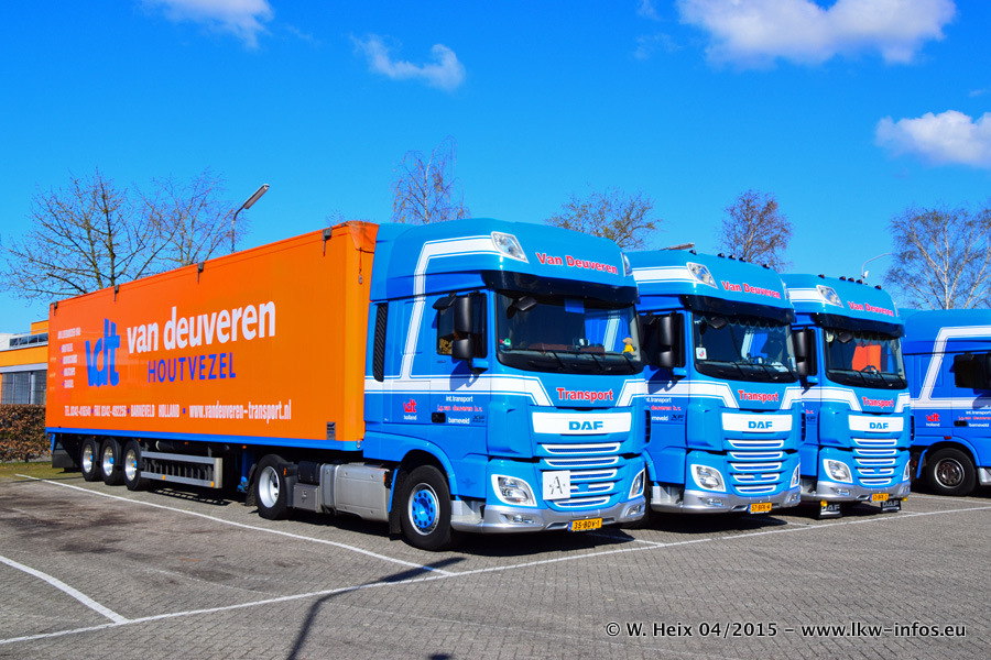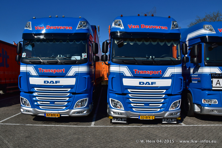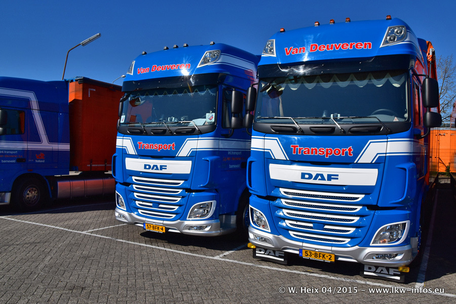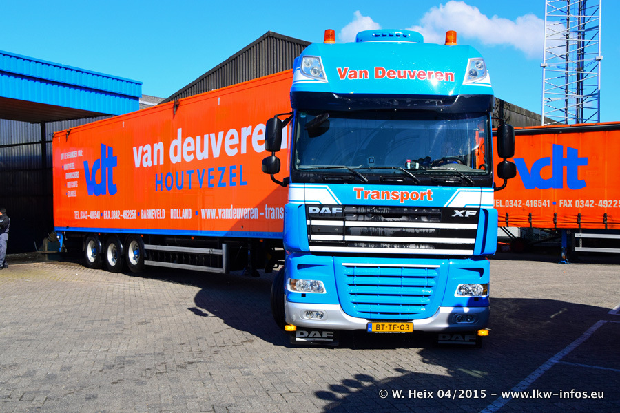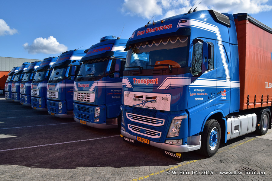 Seit meinem ersten Besuch bei van Deuveren im Januar 2014 sind einige LKW neu im Fuhrpark. Es gibt mindestens einen Volvo New FH (FH 4) und vier DAF XF 105 Euro 6. Drei davon standen auf dem Hof.