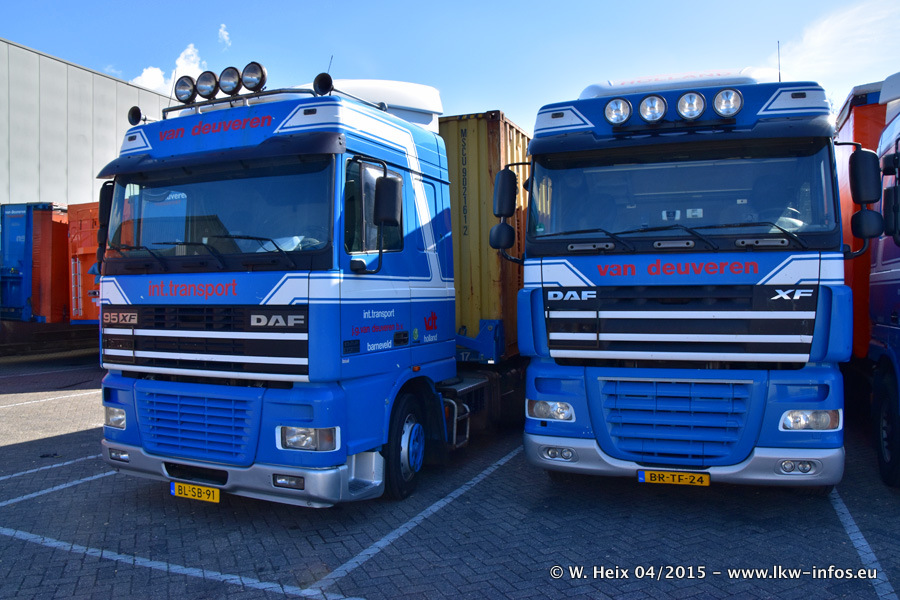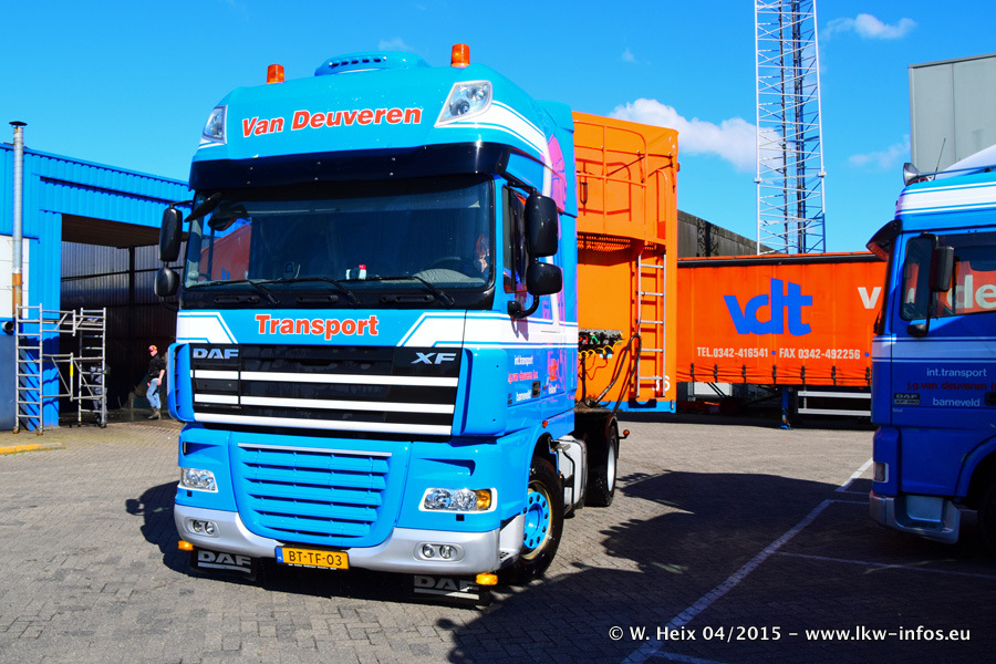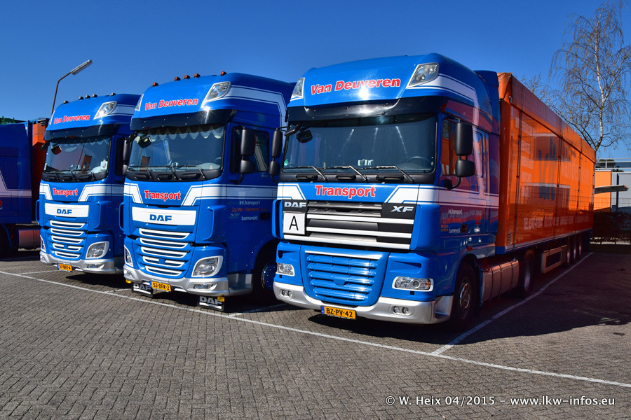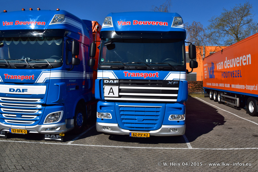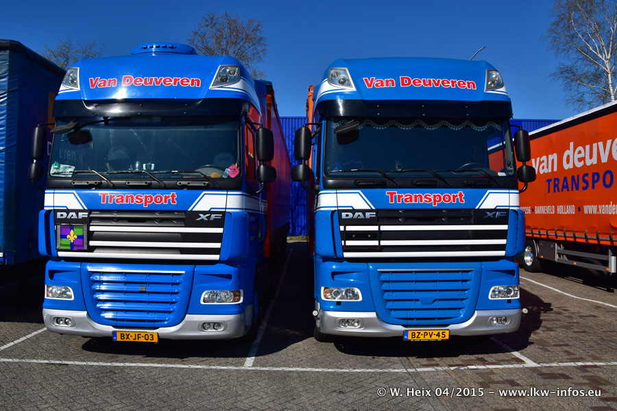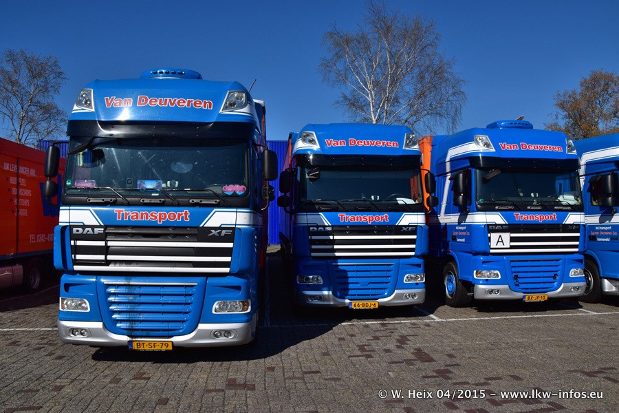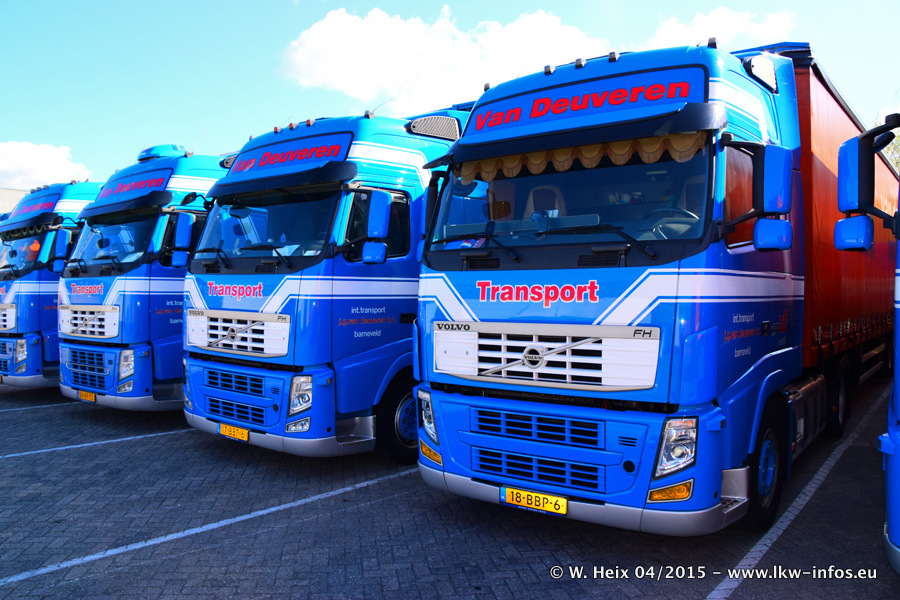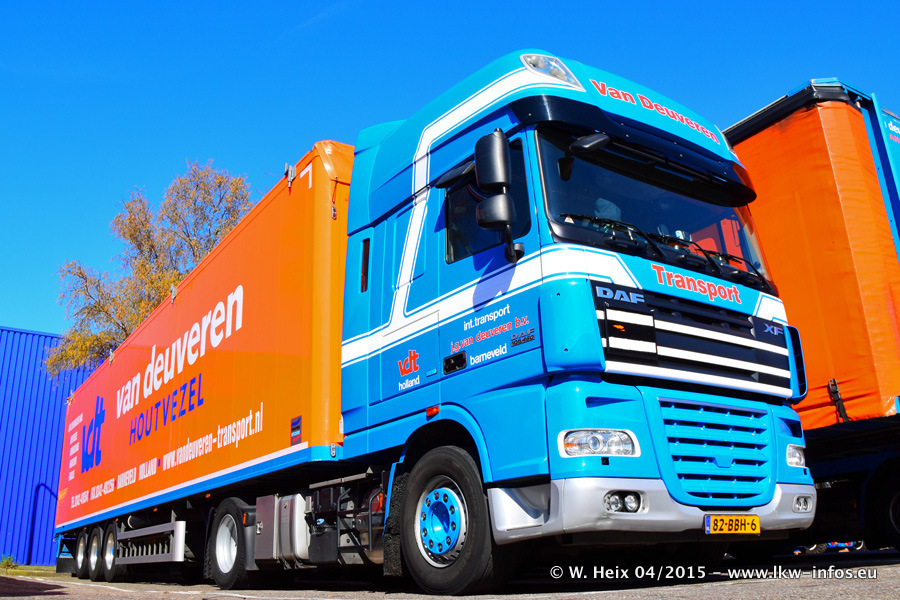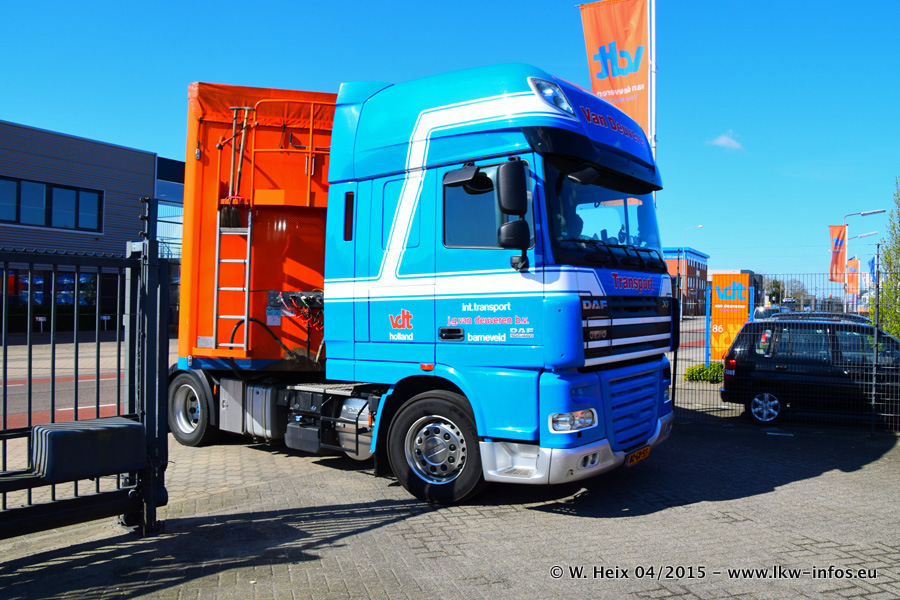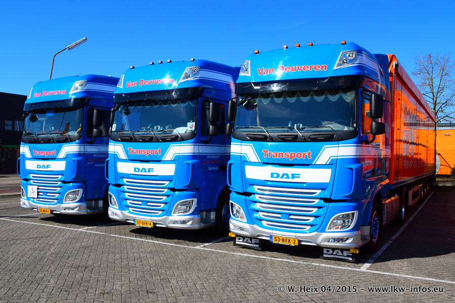 Seit meinem ersten Besuch bei van Deuveren im Januar 2014 sind einige LKW neu im Fuhrpark. Es gibt mindestens einen Volvo New FH (FH 4) und vier DAF XF 105 Euro 6. Drei davon standen auf dem Hof.