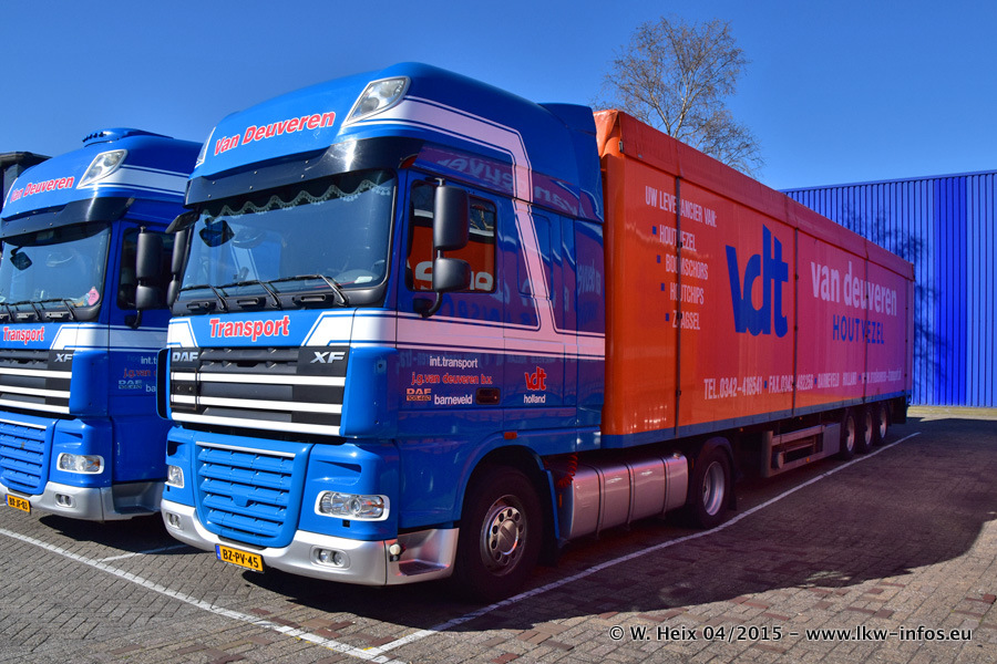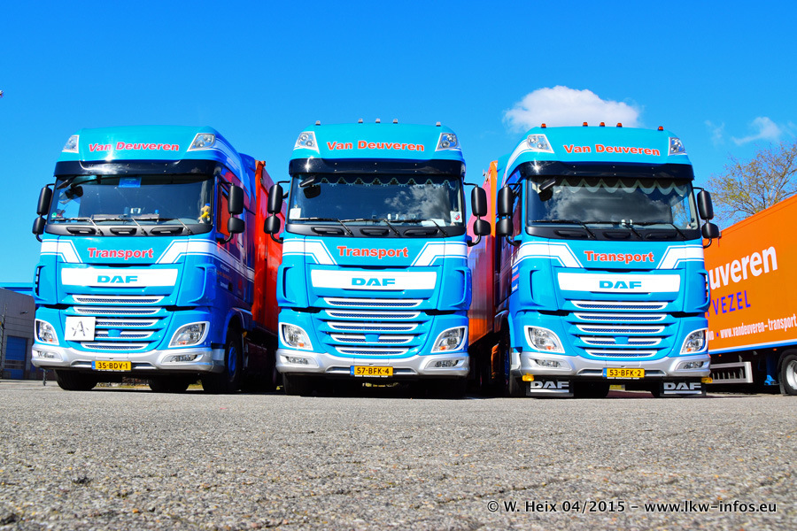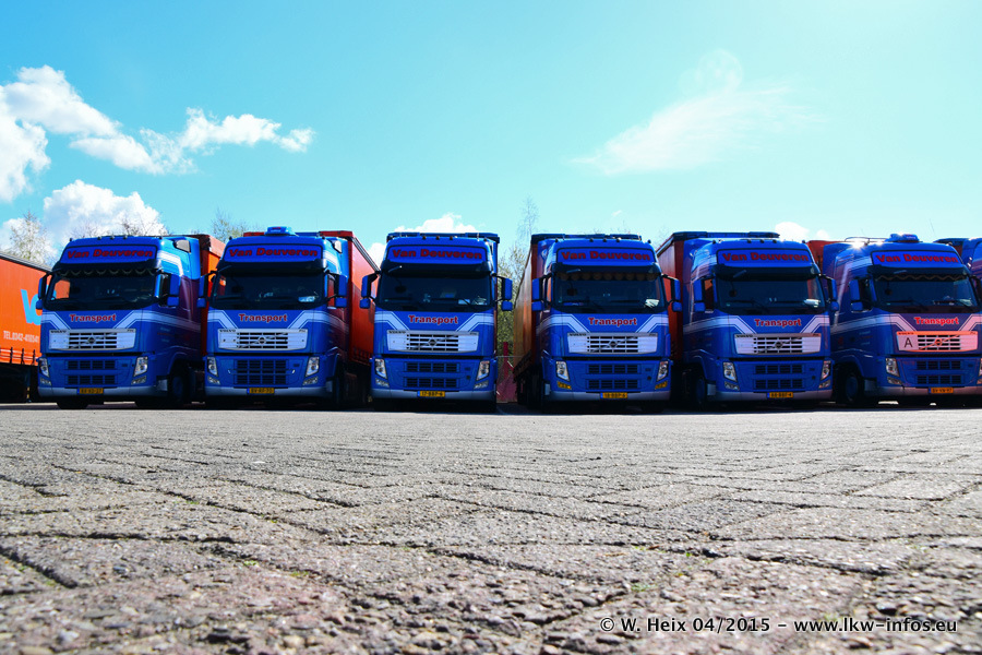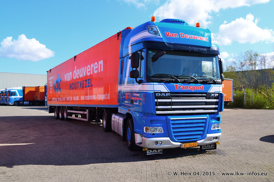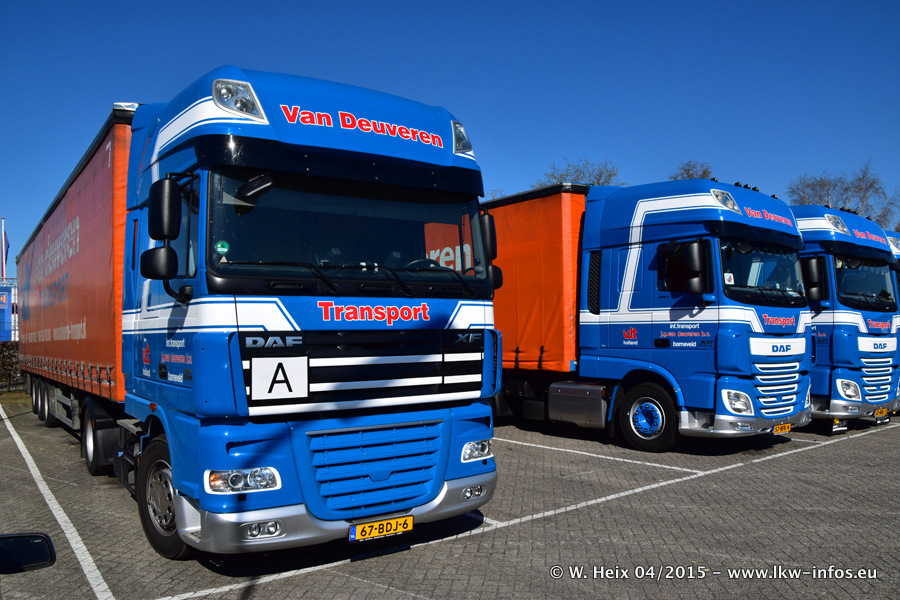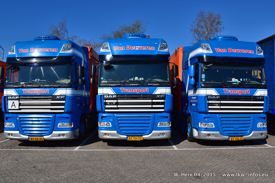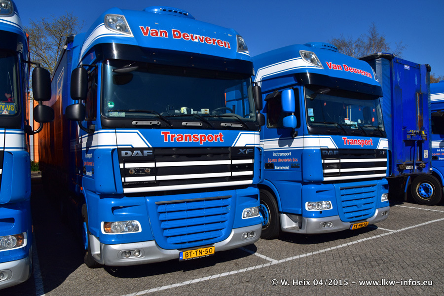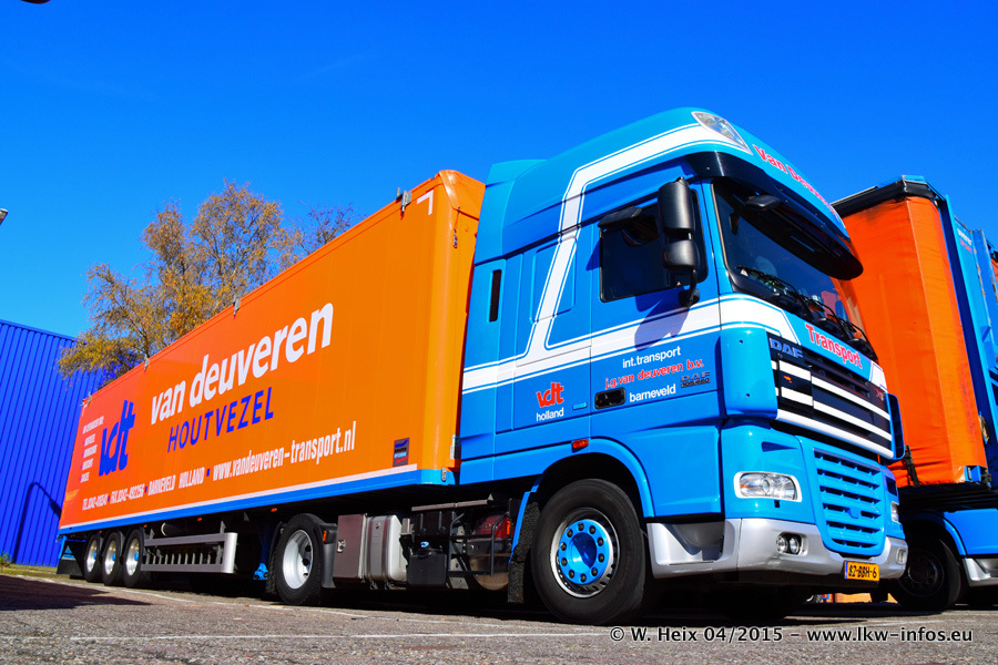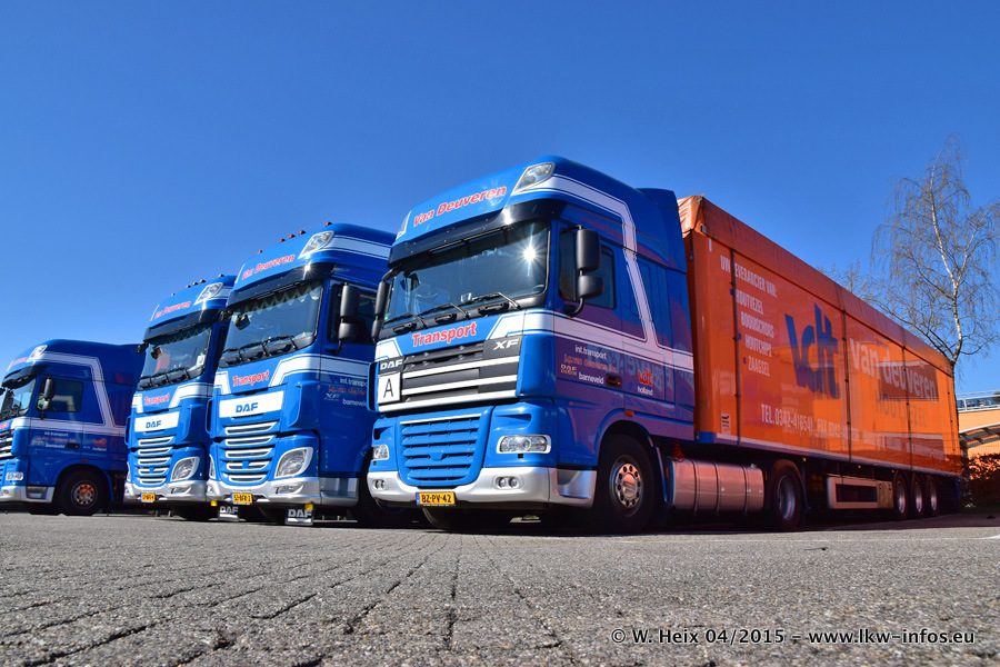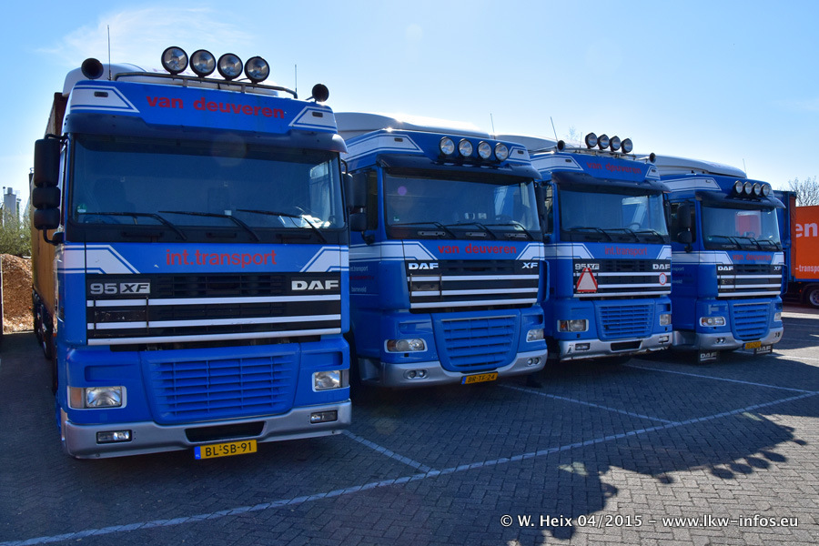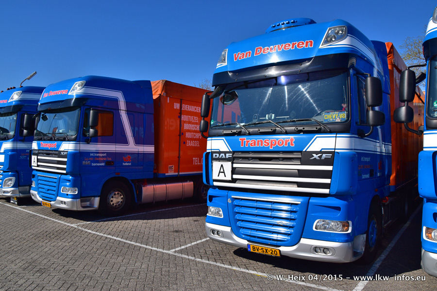 Seit meinem ersten Besuch bei van Deuveren im Januar 2014 sind einige LKW neu im Fuhrpark. Es gibt mindestens einen Volvo New FH (FH 4) und vier DAF XF 105 Euro 6. Drei davon standen auf dem Hof.