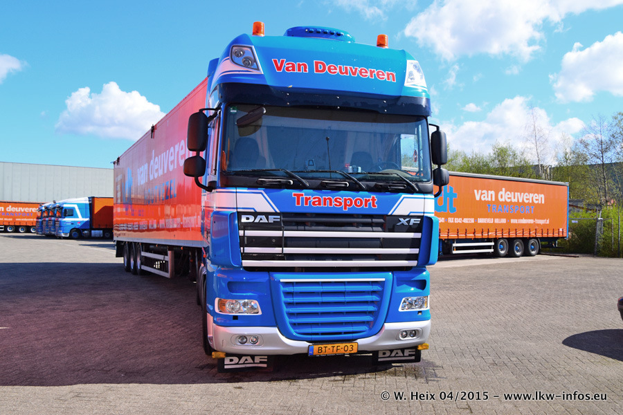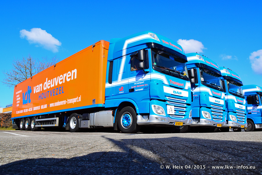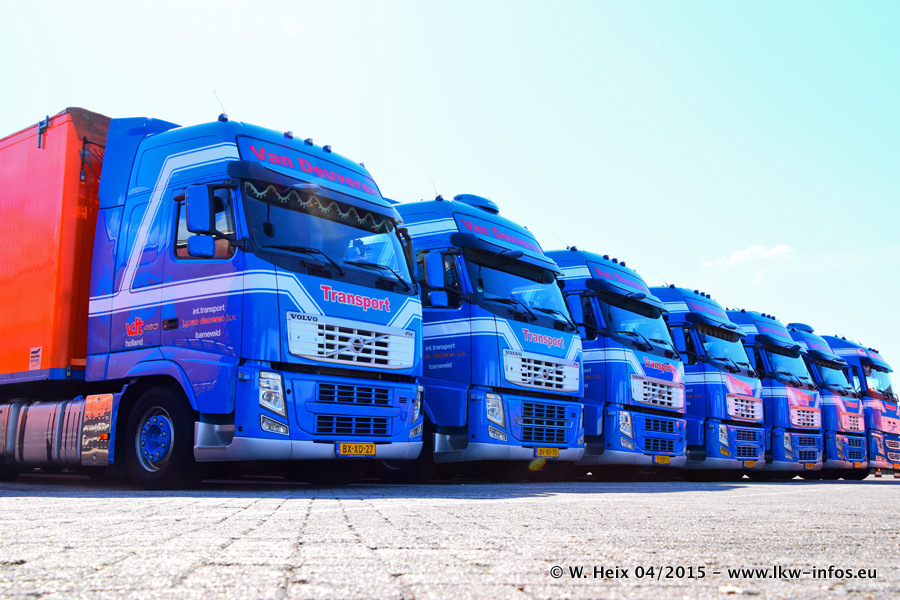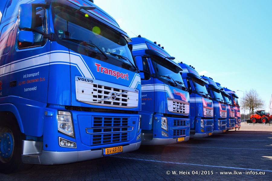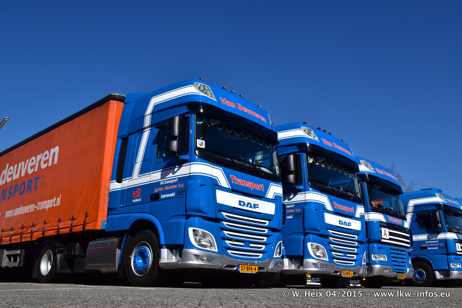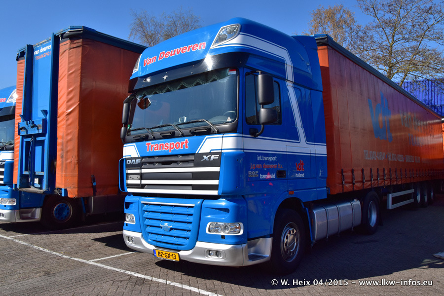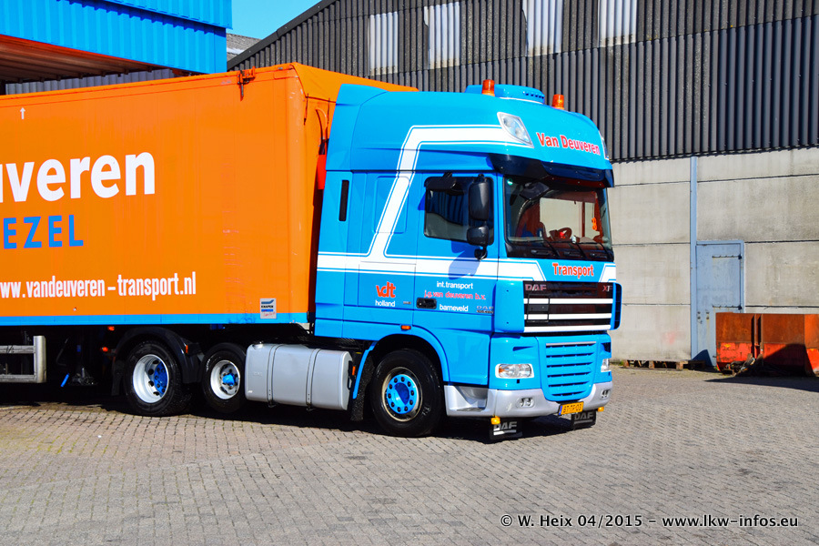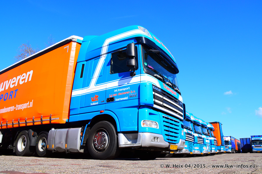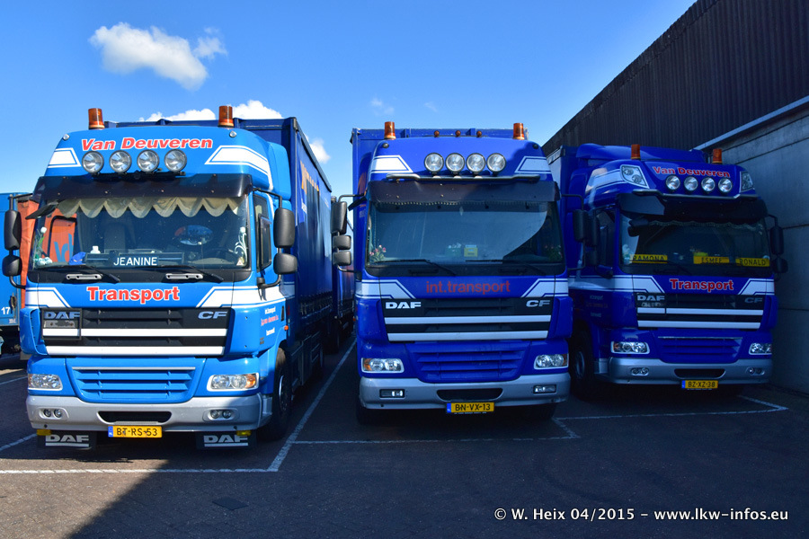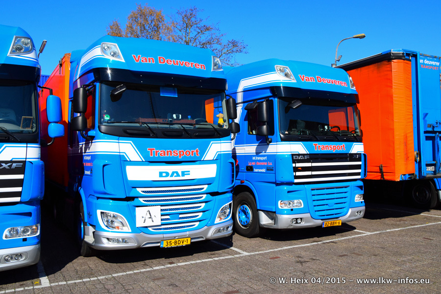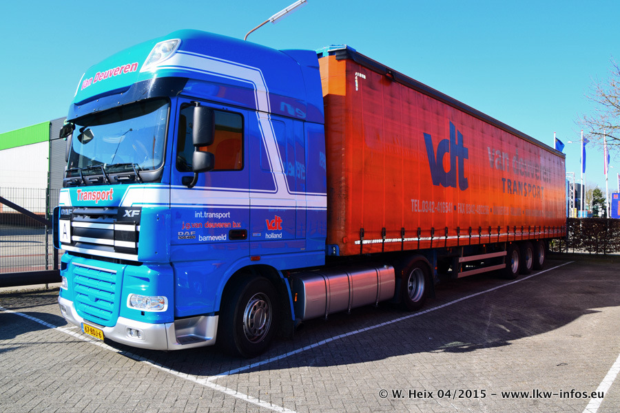 Seit meinem ersten Besuch bei van Deuveren im Januar 2014 sind einige LKW neu im Fuhrpark. Es gibt mindestens einen Volvo New FH (FH 4) und vier DAF XF 105 Euro 6. Drei davon standen auf dem Hof.