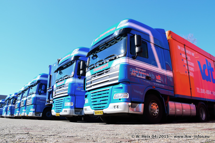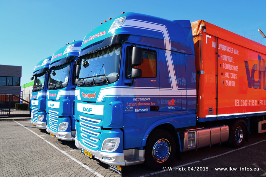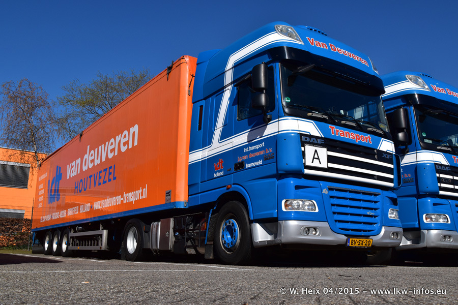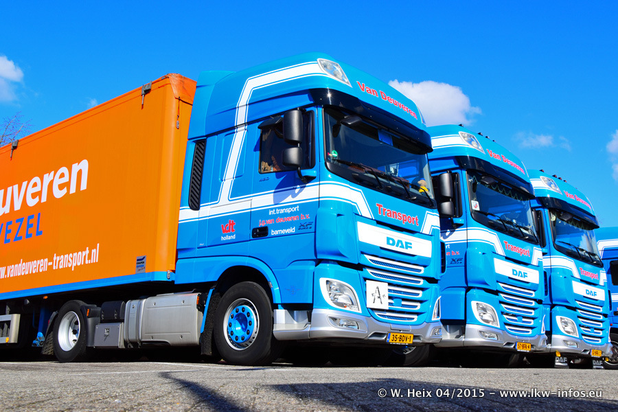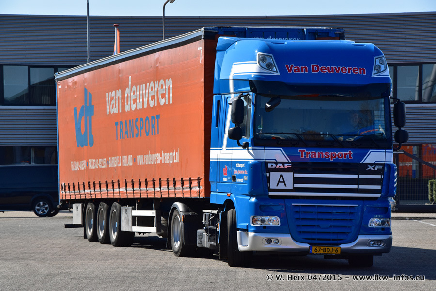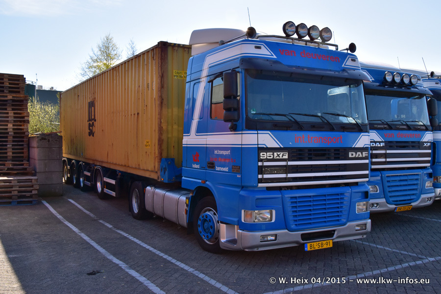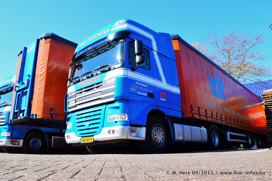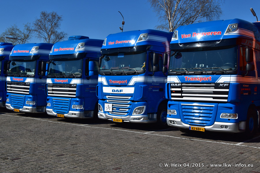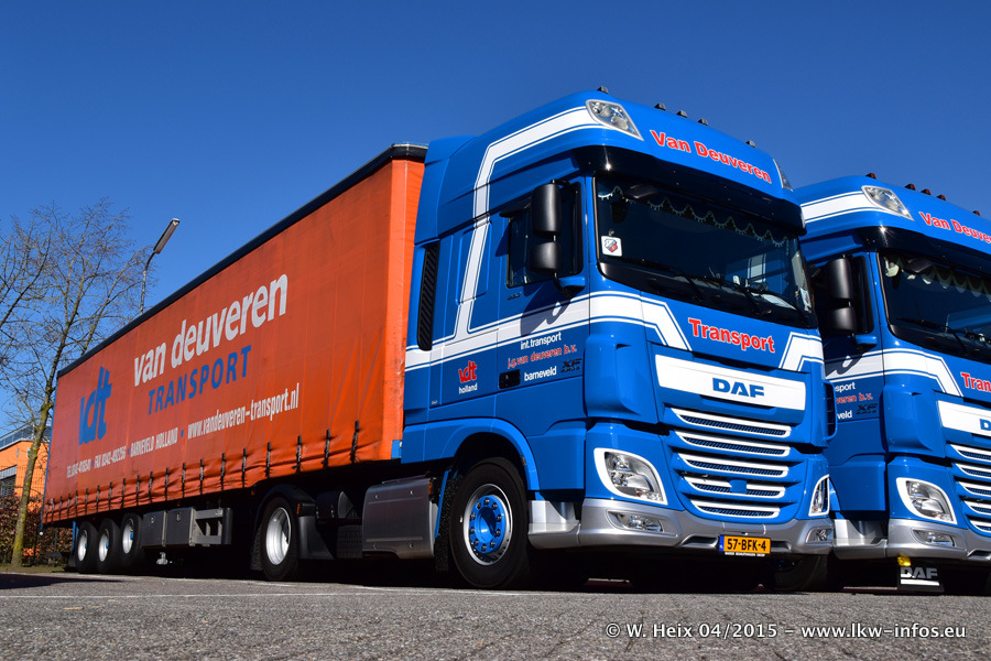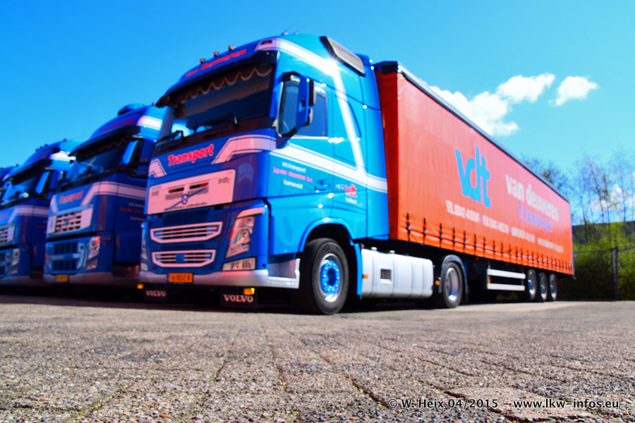 Seit meinem ersten Besuch bei van Deuveren im Januar 2014 sind einige LKW neu im Fuhrpark. Es gibt mindestens einen Volvo New FH (FH 4) und vier DAF XF 105 Euro 6. Drei davon standen auf dem Hof.