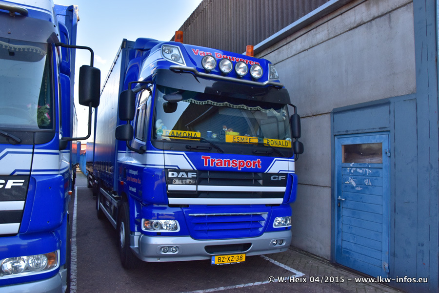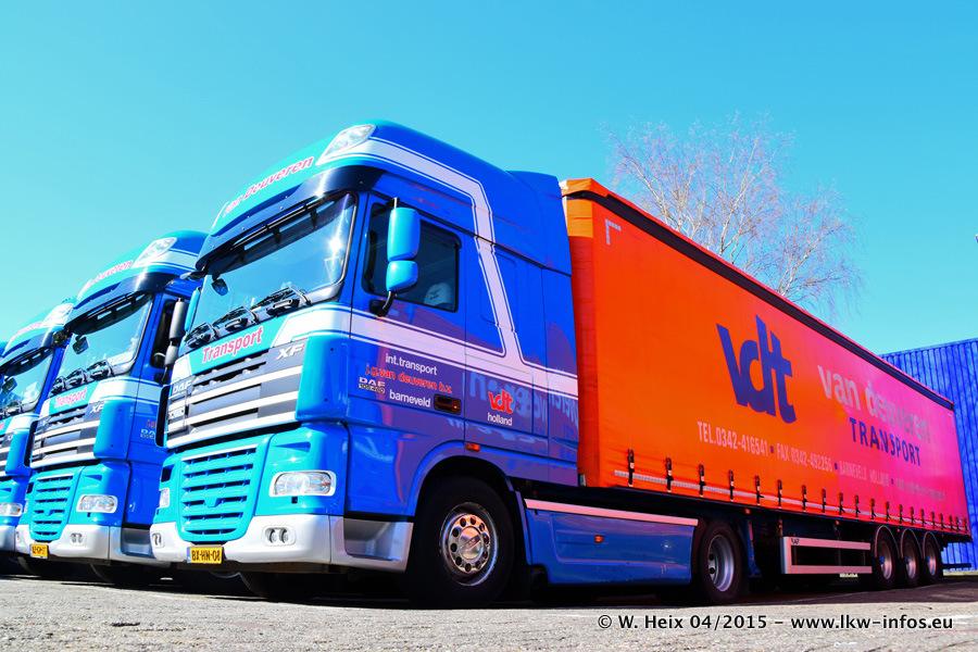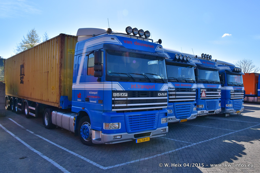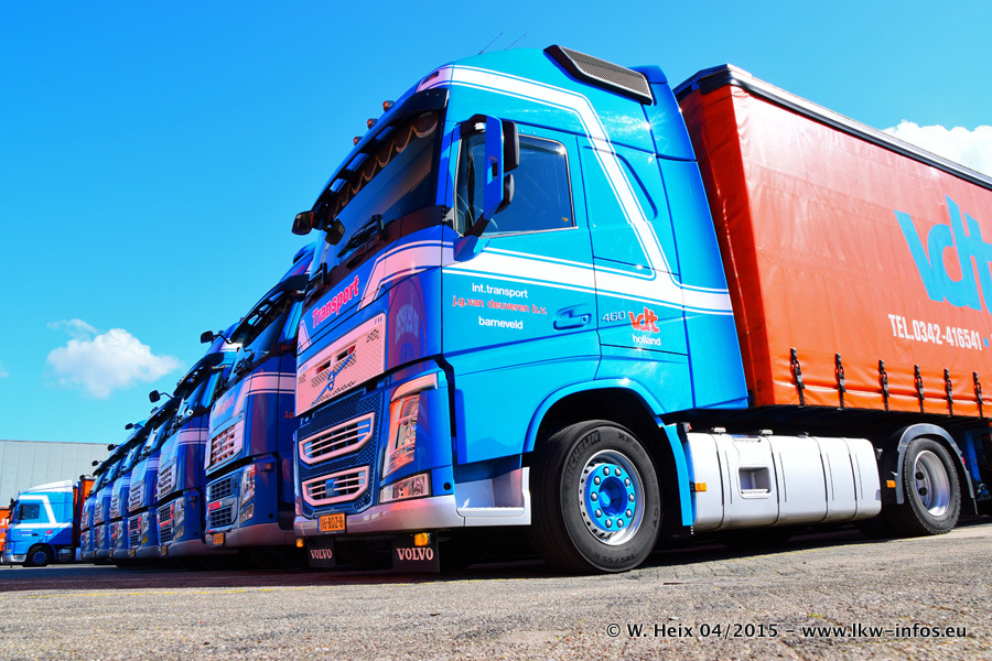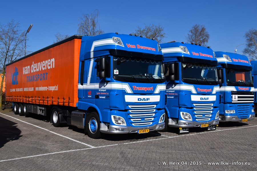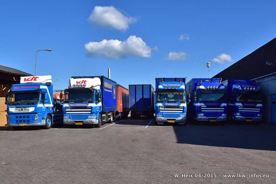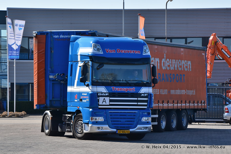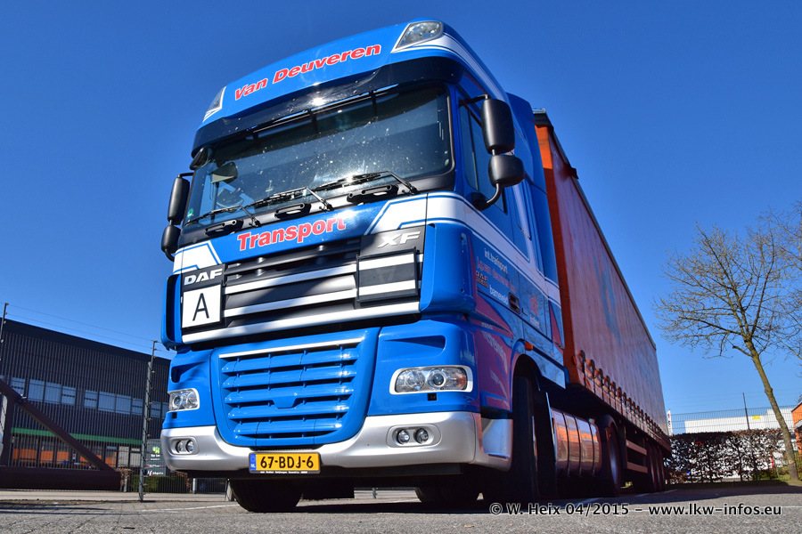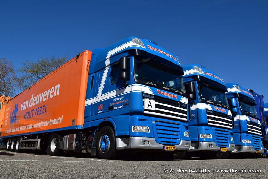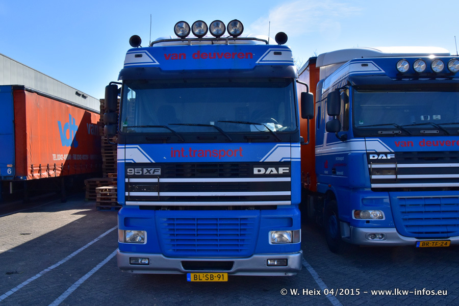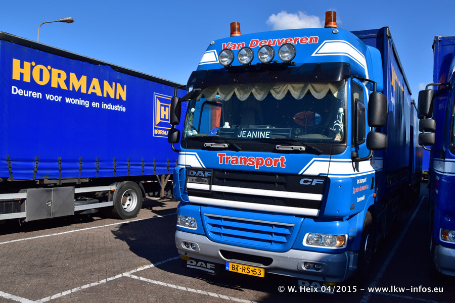 Seit meinem ersten Besuch bei van Deuveren im Januar 2014 sind einige LKW neu im Fuhrpark. Es gibt mindestens einen Volvo New FH (FH 4) und vier DAF XF 105 Euro 6. Drei davon standen auf dem Hof.