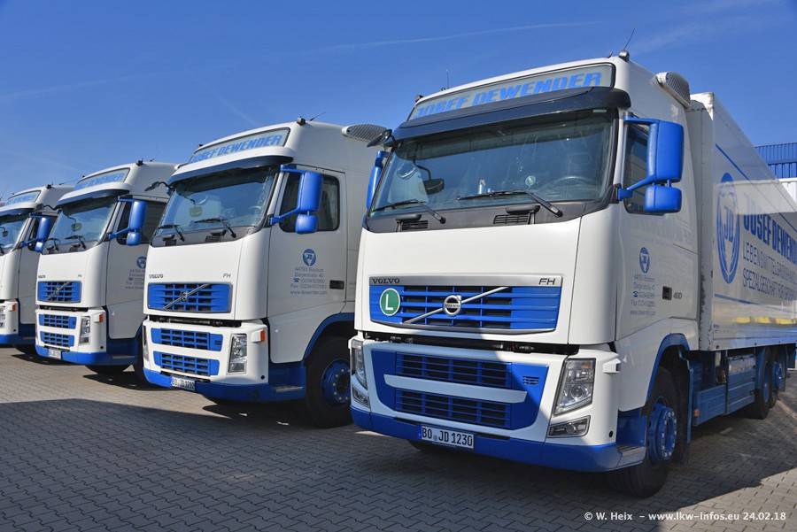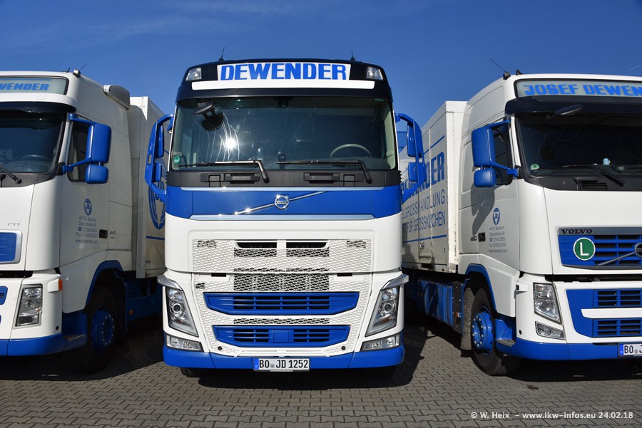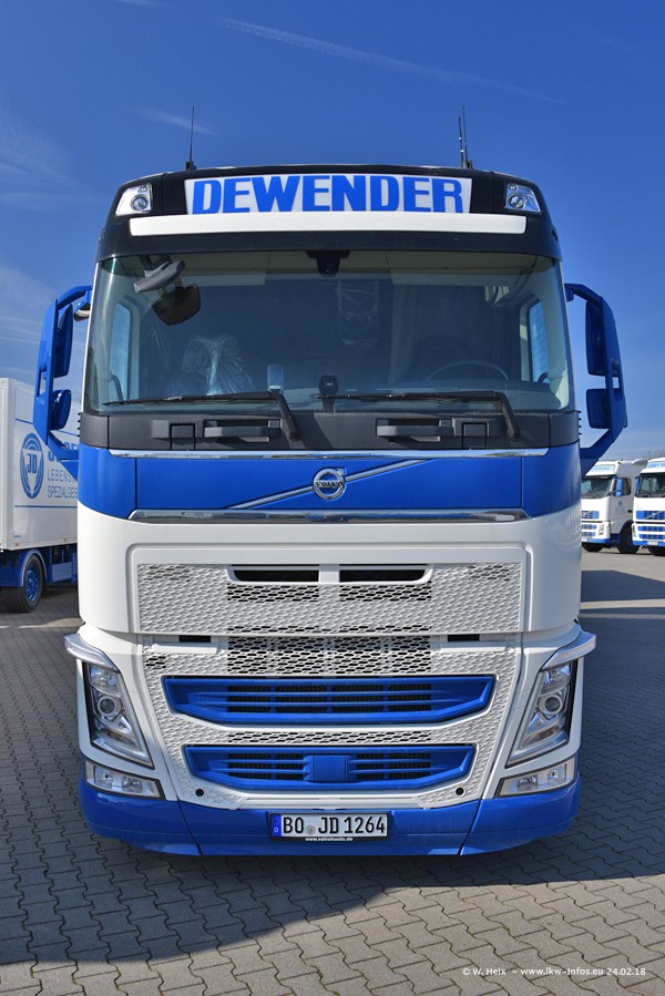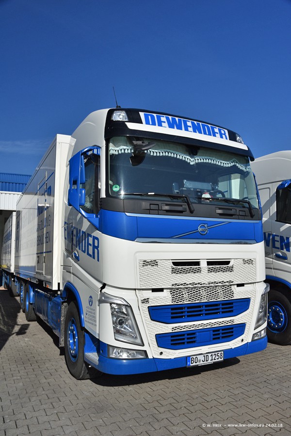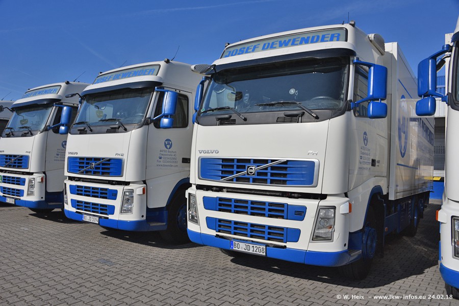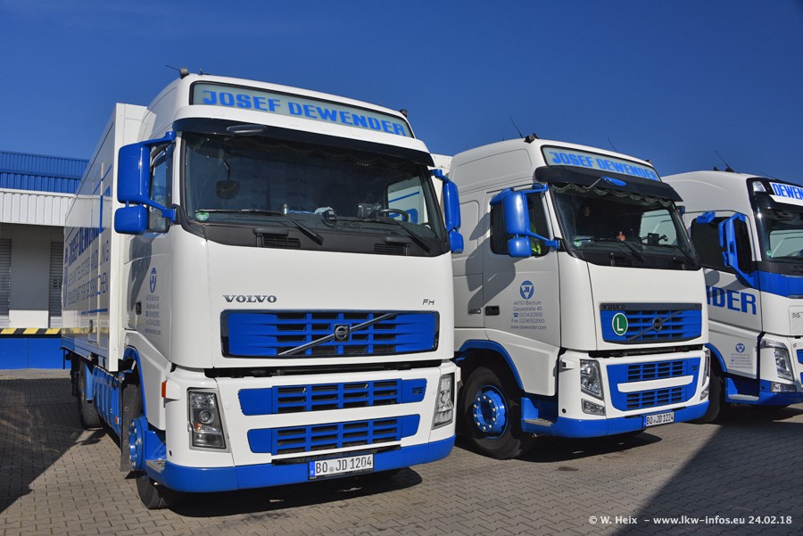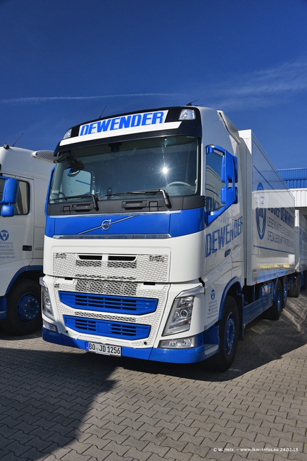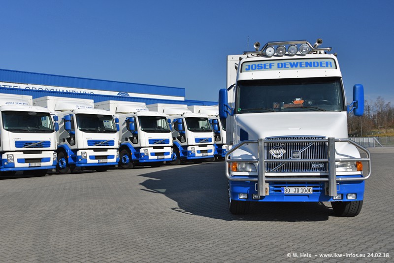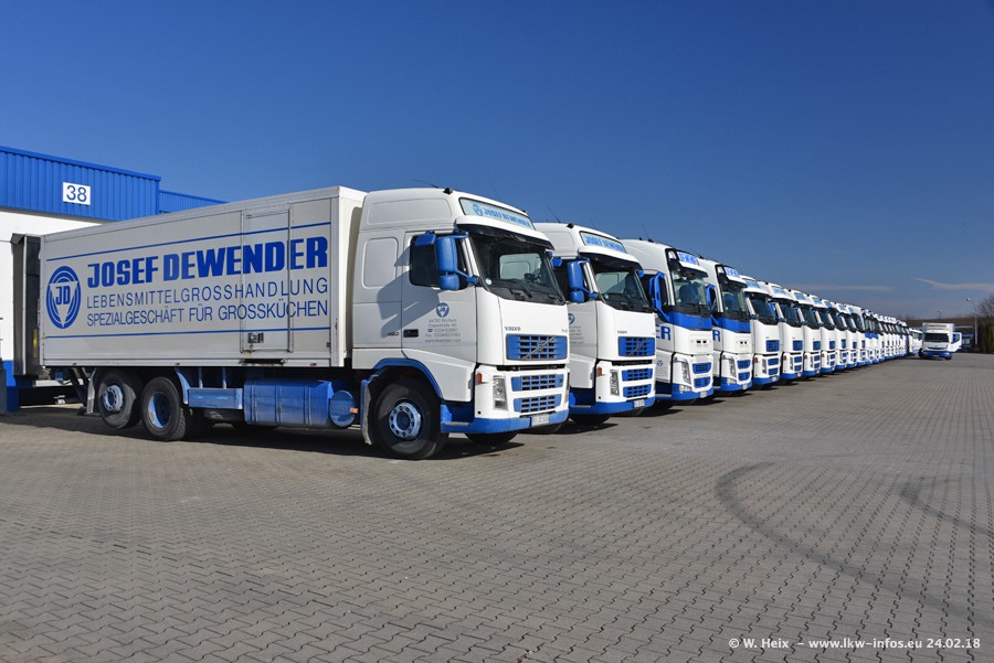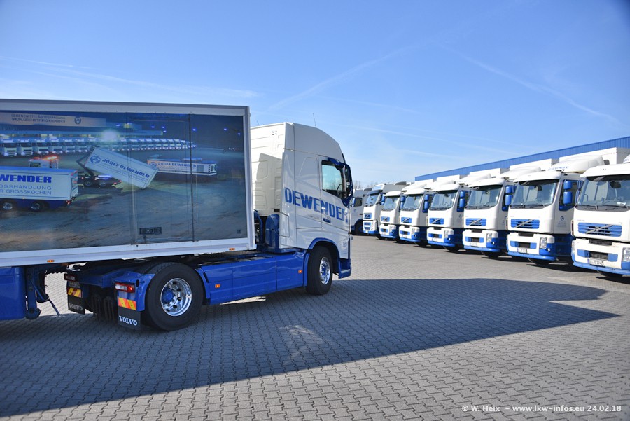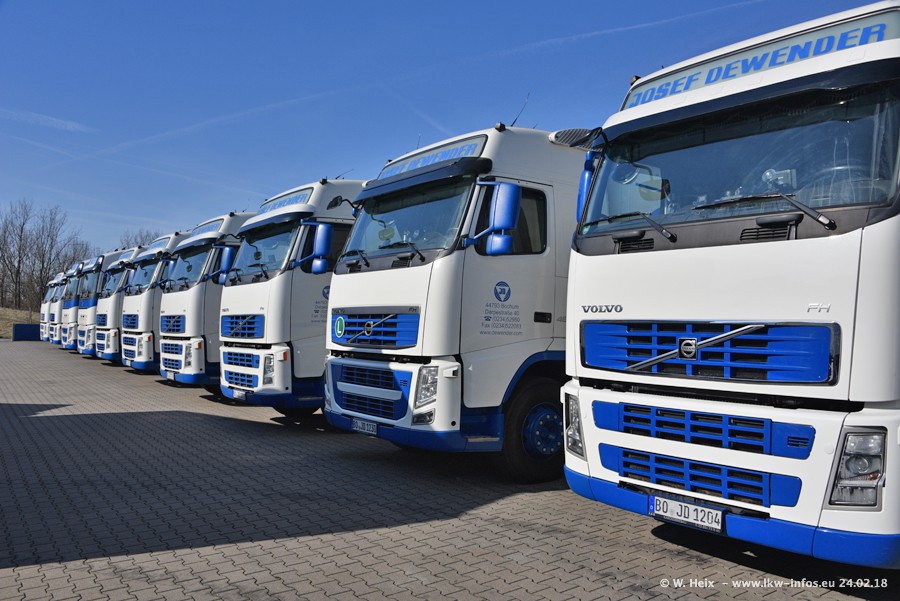 Der Fuhrpark besteht aktuell aus 40 LKW. Bis auf einen Renault Midlum 7,49-Tonner sind alle anderen LKW von VOLVO, Baureihen FH 2 bis FH 4 Euro 6. Dazu kommt noch ein VOLVO NH12 Baujahr 2000, der immer noch täglich im Einsatz ist. Zwei Tage vor meinem Besuch bei Dewender sind fünf VOLVO FH 4 Euro 6 neu dazu gekommen. Drei FH 500 Hängerzüge waren da, die beiden anderen standen noch beim Händler.