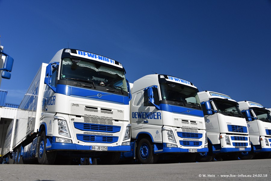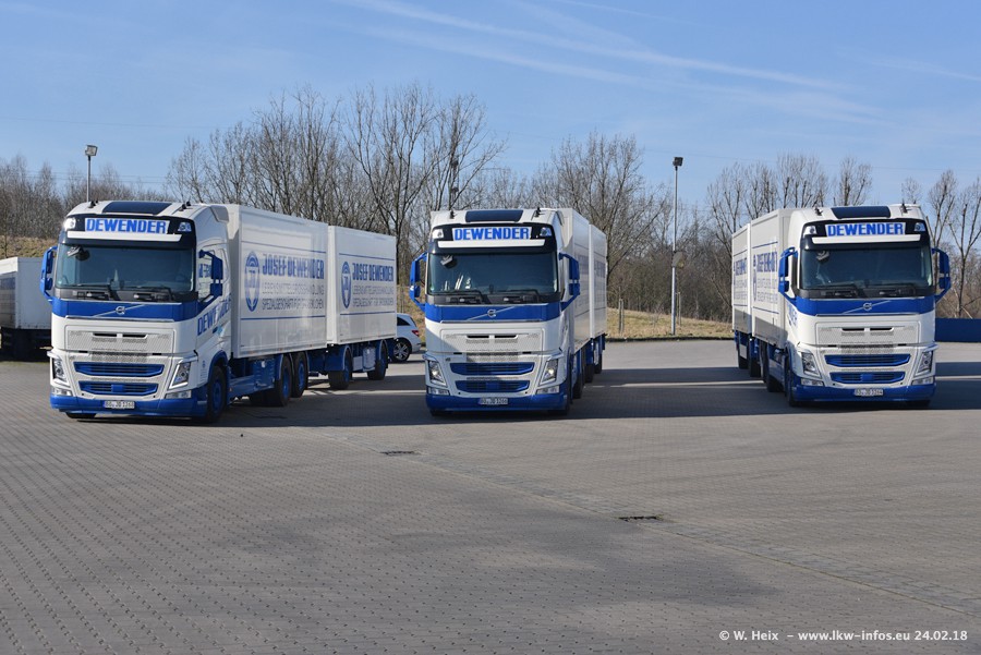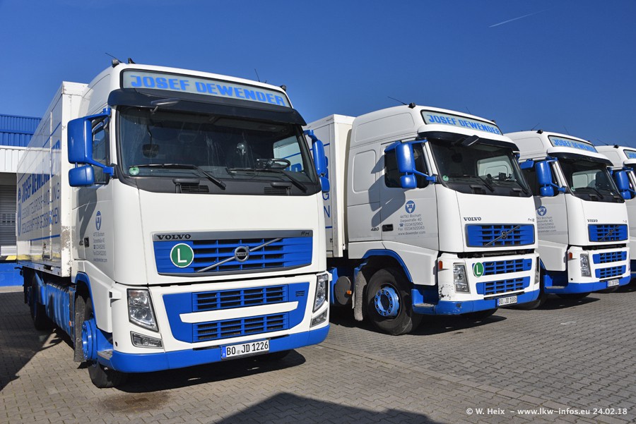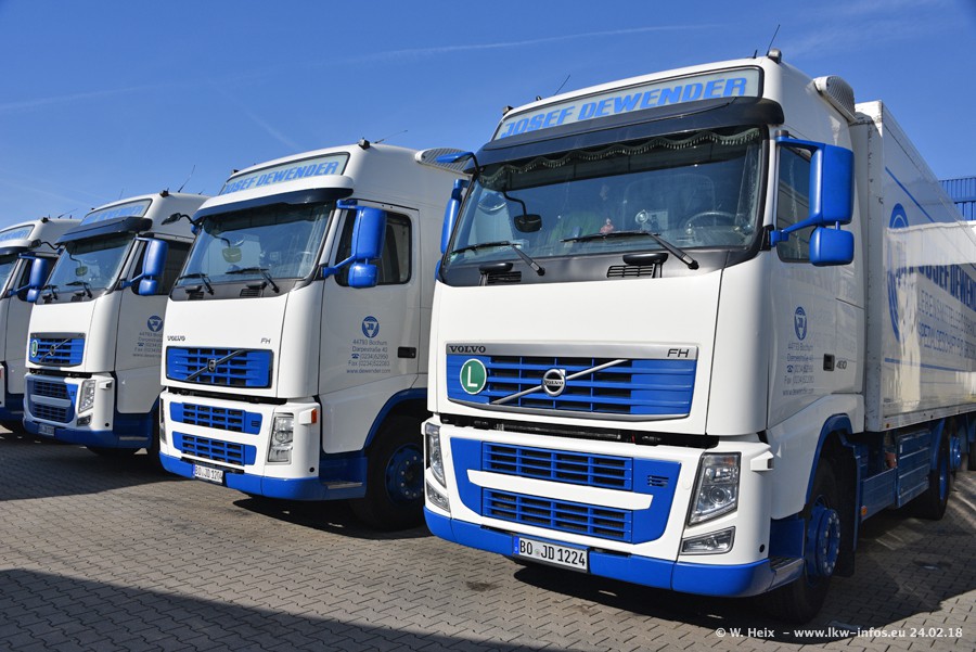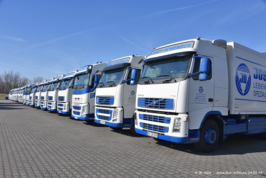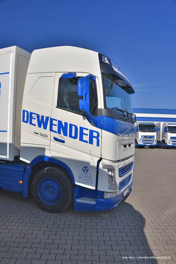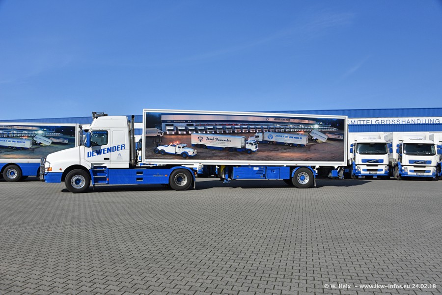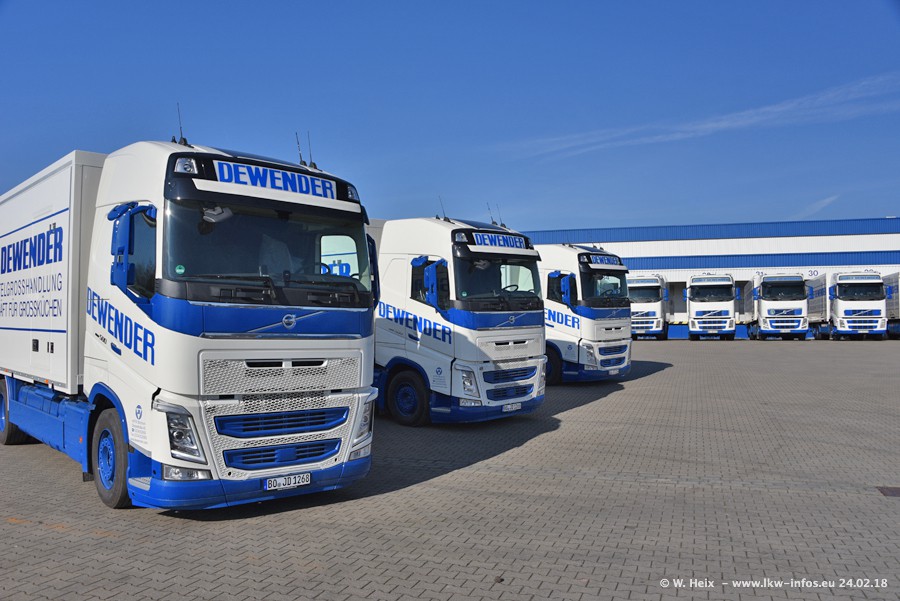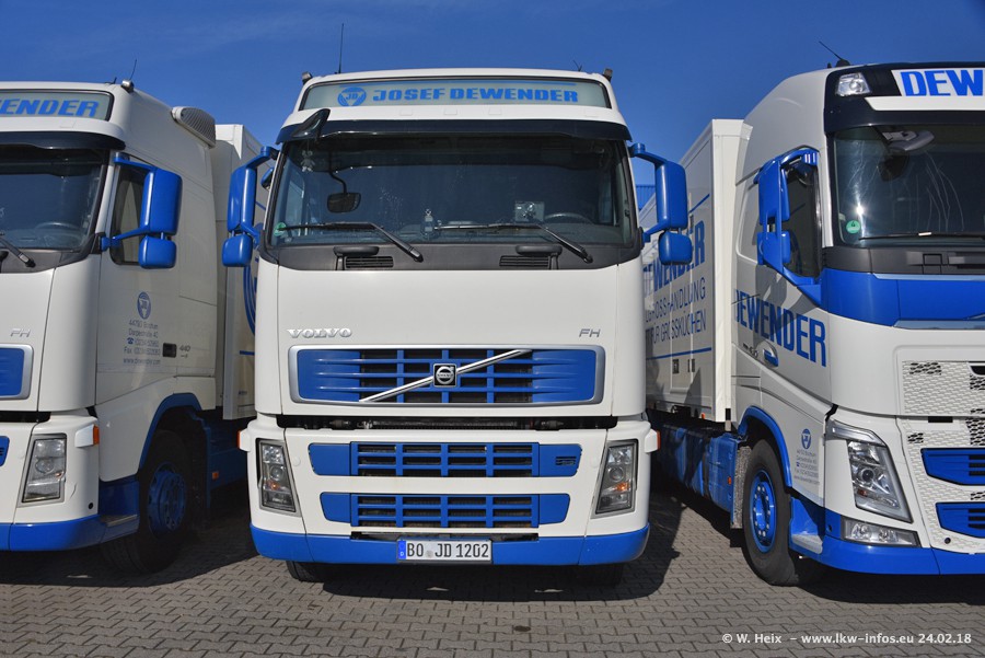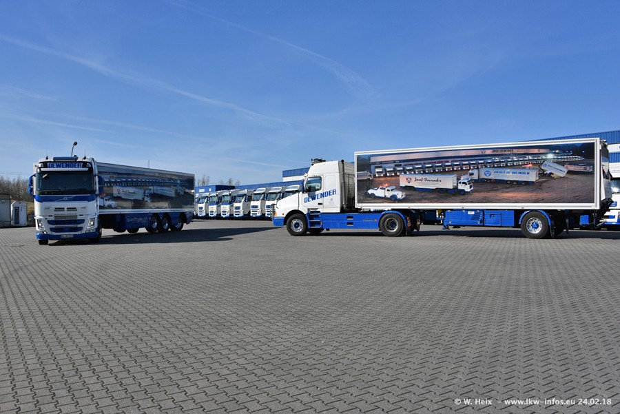 Der Fuhrpark besteht aktuell aus 40 LKW. Bis auf einen Renault Midlum 7,49-Tonner sind alle anderen LKW von VOLVO, Baureihen FH 2 bis FH 4 Euro 6. Dazu kommt noch ein VOLVO NH12 Baujahr 2000, der immer noch täglich im Einsatz ist. Zwei Tage vor meinem Besuch bei Dewender sind fünf VOLVO FH 4 Euro 6 neu dazu gekommen. Drei FH 500 Hängerzüge waren da, die beiden anderen standen noch beim Händler.