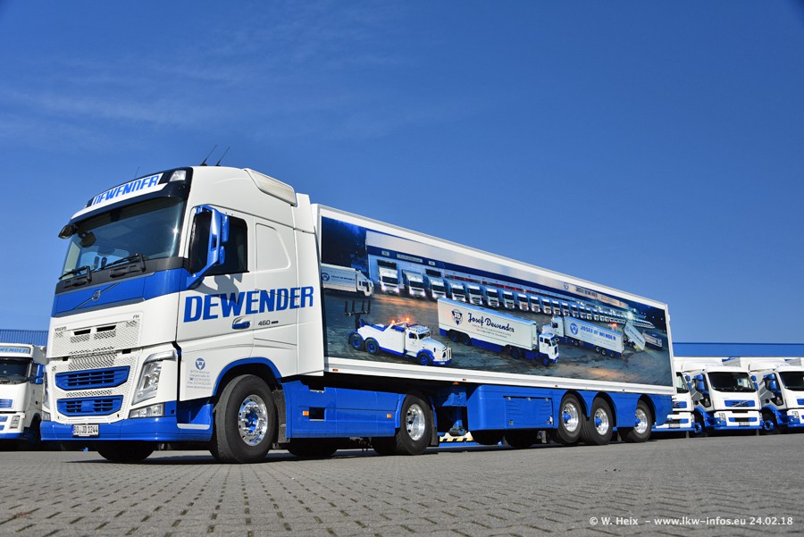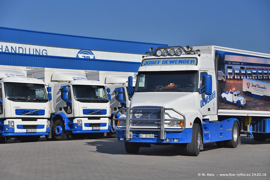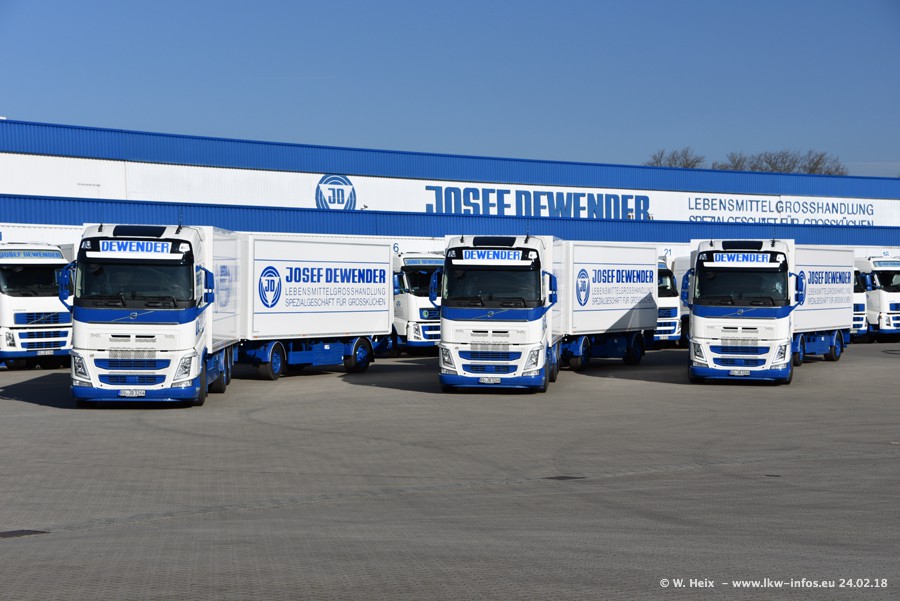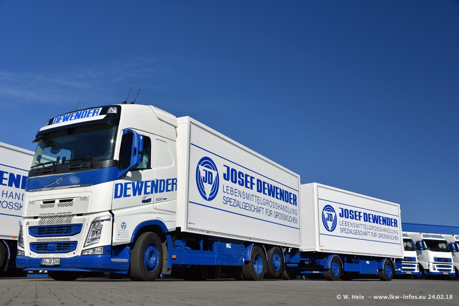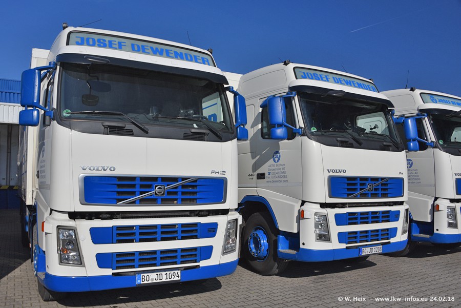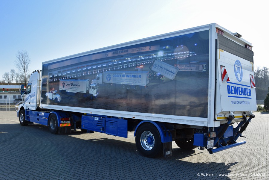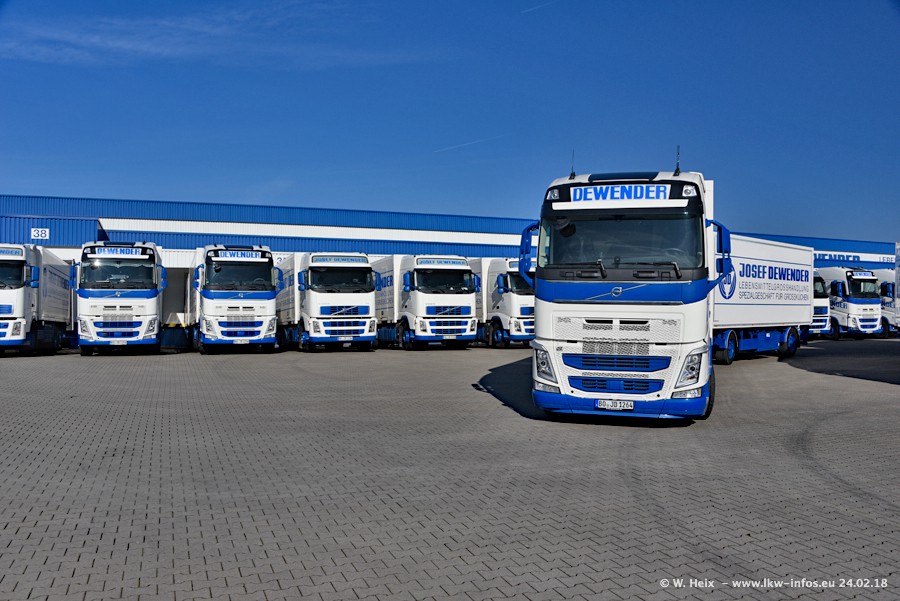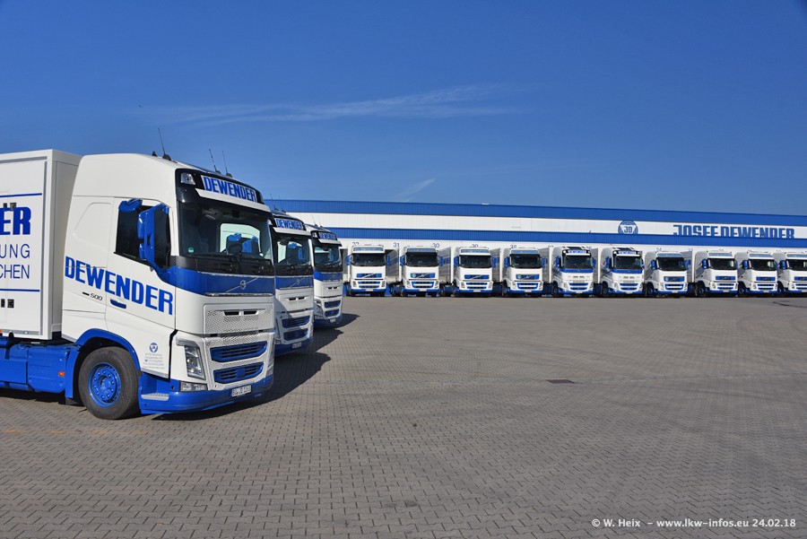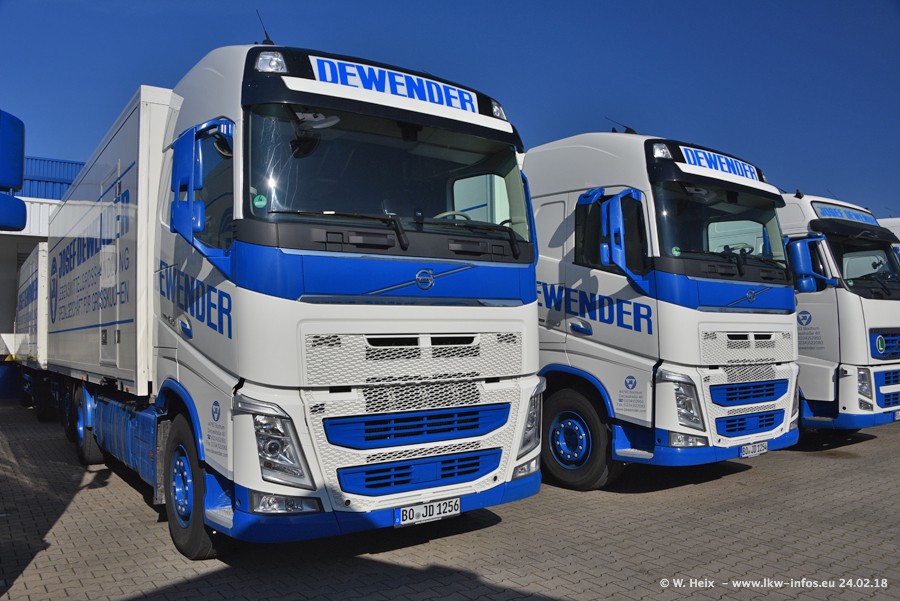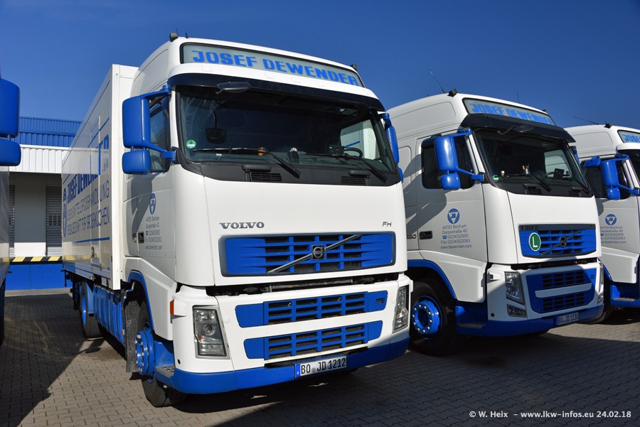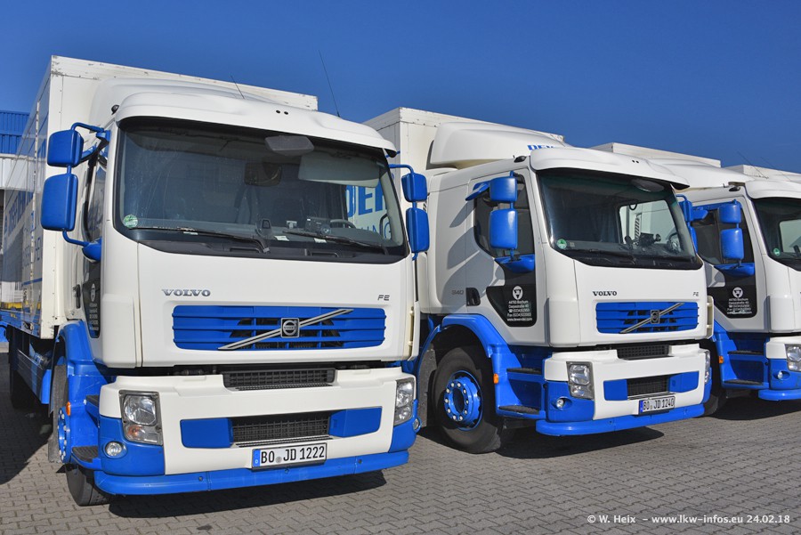 Der Fuhrpark besteht aktuell aus 40 LKW. Bis auf einen Renault Midlum 7,49-Tonner sind alle anderen LKW von VOLVO, Baureihen FH 2 bis FH 4 Euro 6. Dazu kommt noch ein VOLVO NH12 Baujahr 2000, der immer noch täglich im Einsatz ist. Zwei Tage vor meinem Besuch bei Dewender sind fünf VOLVO FH 4 Euro 6 neu dazu gekommen. Drei FH 500 Hängerzüge waren da, die beiden anderen standen noch beim Händler.