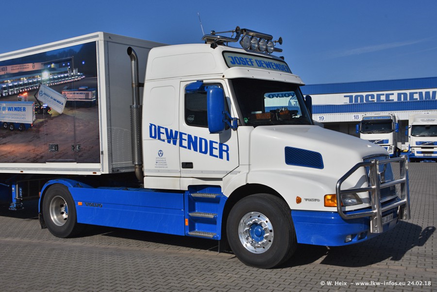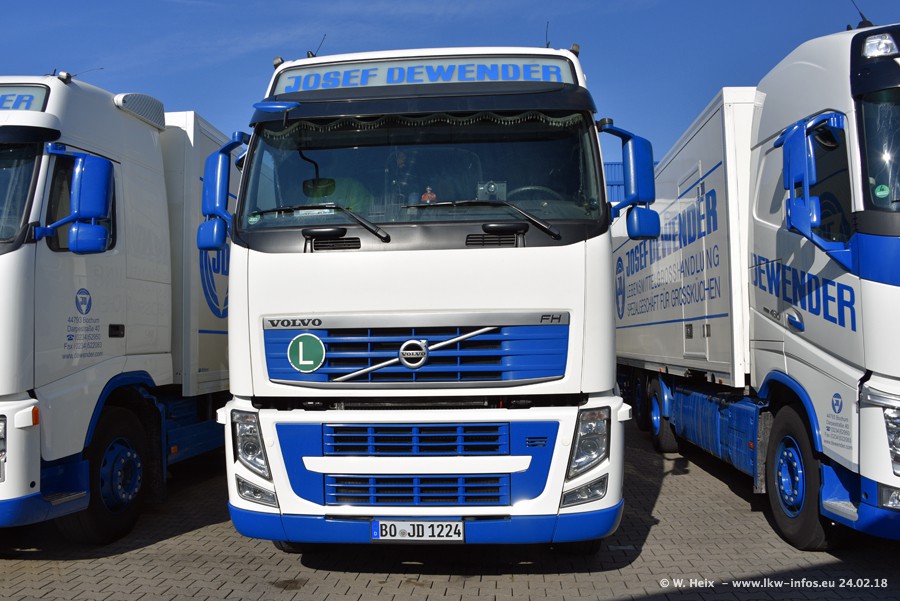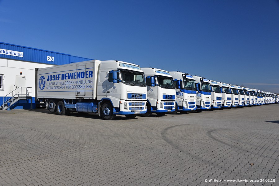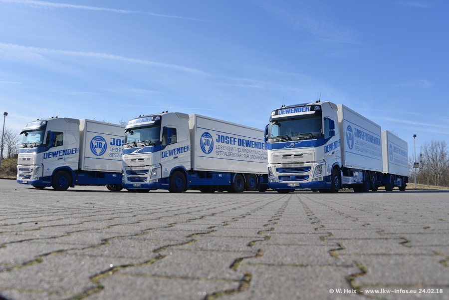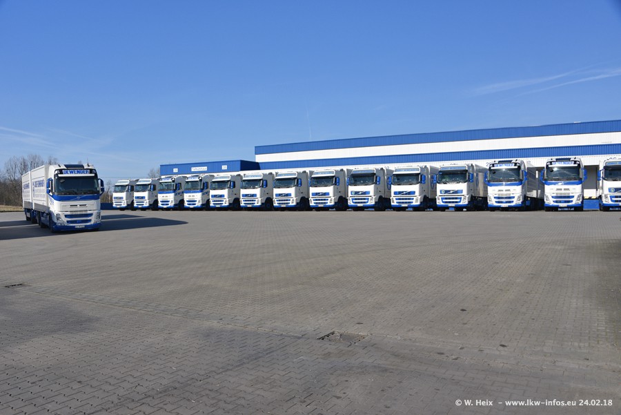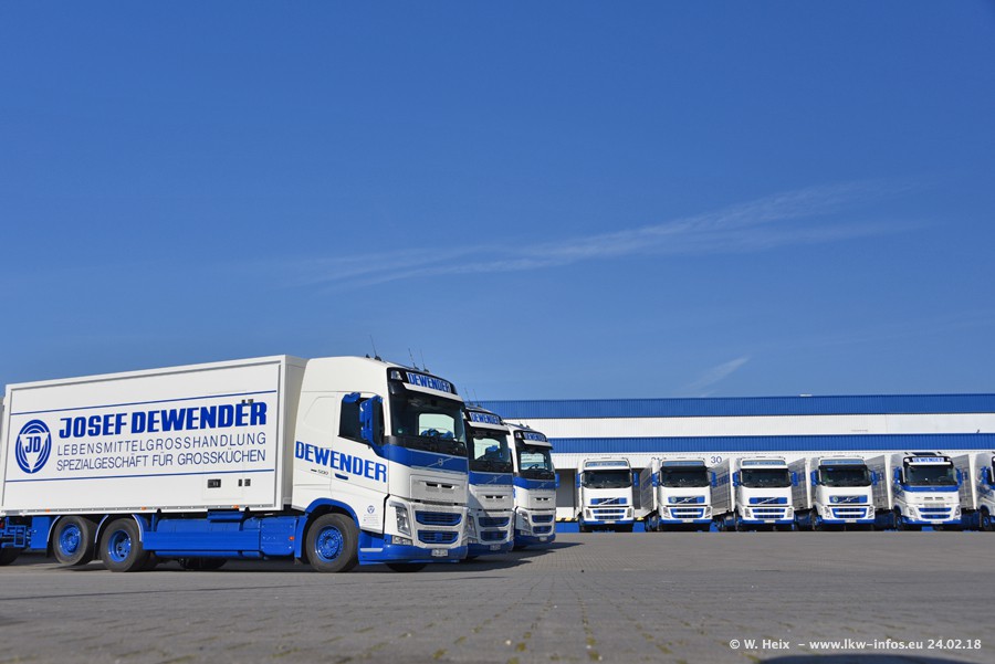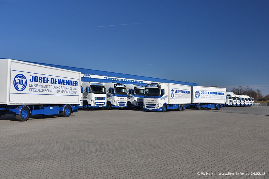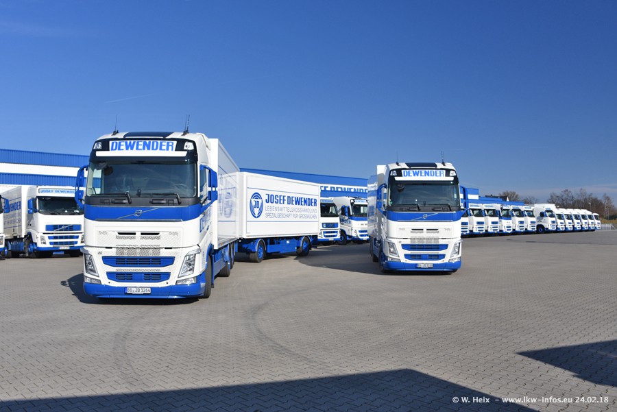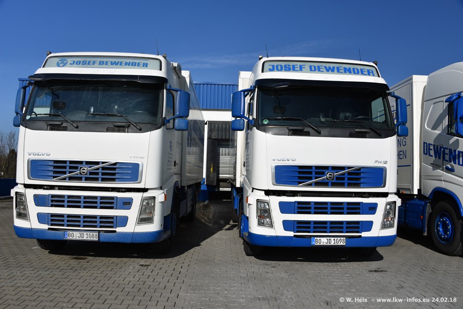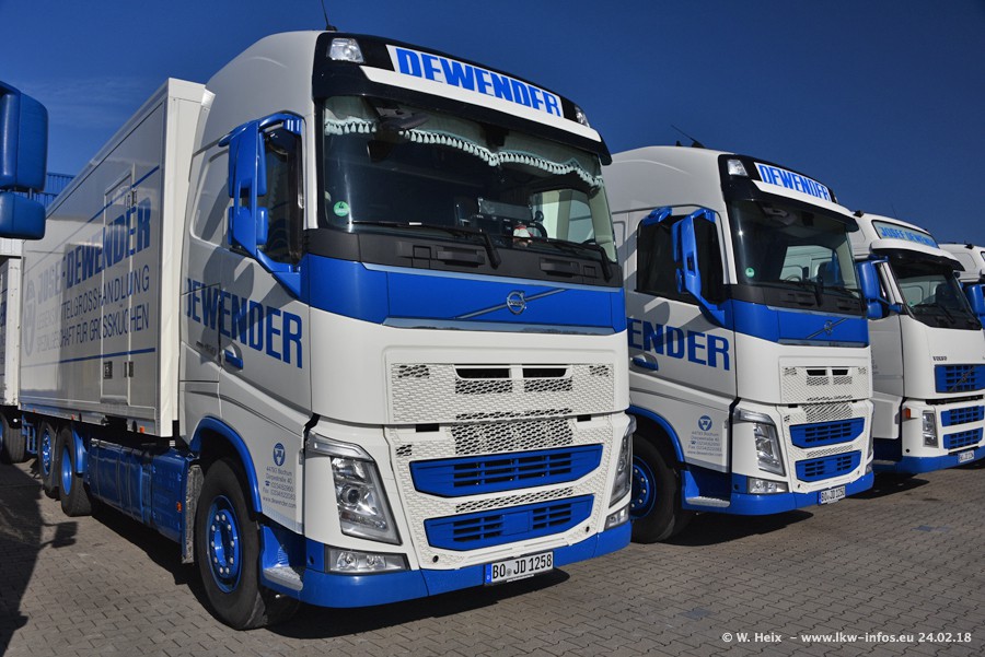 Der Fuhrpark besteht aktuell aus 40 LKW. Bis auf einen Renault Midlum 7,49-Tonner sind alle anderen LKW von VOLVO, Baureihen FH 2 bis FH 4 Euro 6. Dazu kommt noch ein VOLVO NH12 Baujahr 2000, der immer noch täglich im Einsatz ist. Zwei Tage vor meinem Besuch bei Dewender sind fünf VOLVO FH 4 Euro 6 neu dazu gekommen. Drei FH 500 Hängerzüge waren da, die beiden anderen standen noch beim Händler.