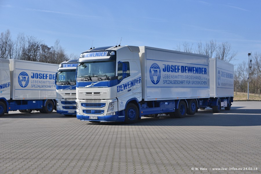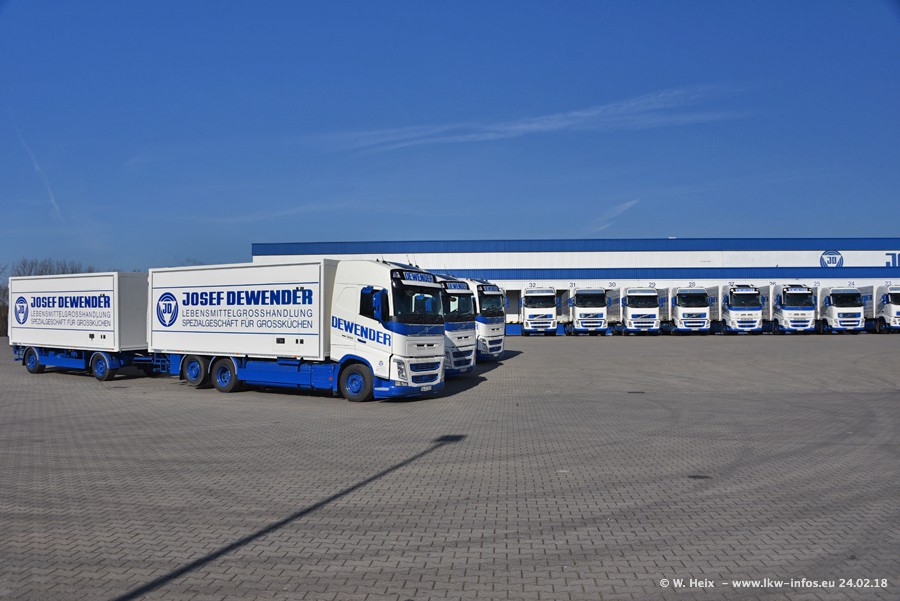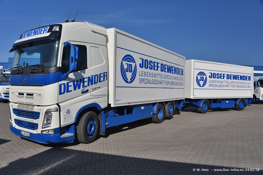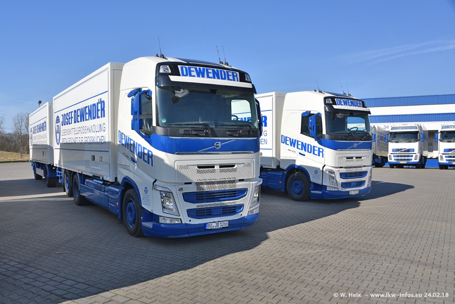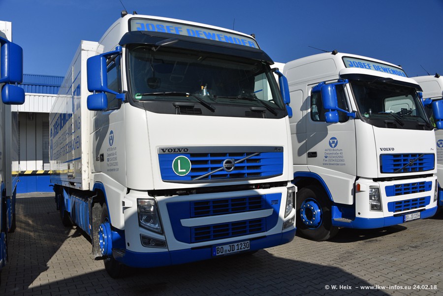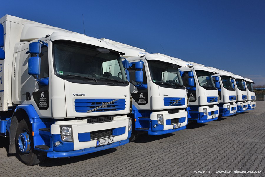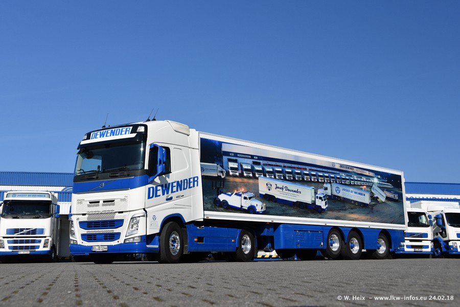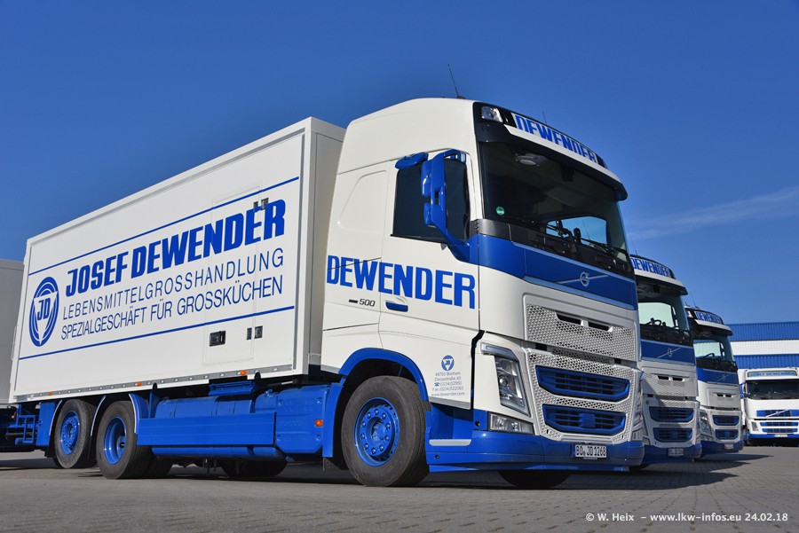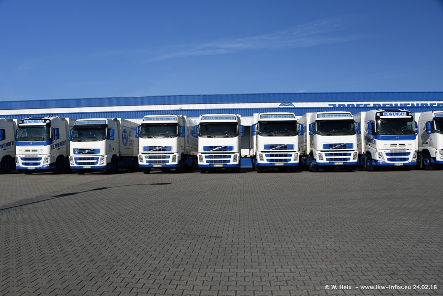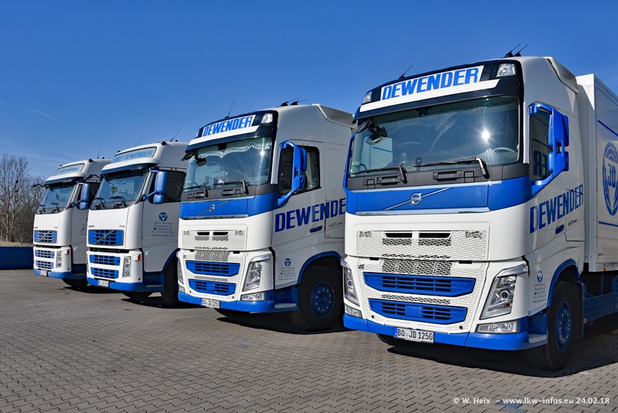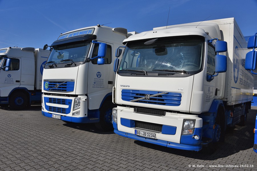 Der Fuhrpark besteht aktuell aus 40 LKW. Bis auf einen Renault Midlum 7,49-Tonner sind alle anderen LKW von VOLVO, Baureihen FH 2 bis FH 4 Euro 6. Dazu kommt noch ein VOLVO NH12 Baujahr 2000, der immer noch täglich im Einsatz ist. Zwei Tage vor meinem Besuch bei Dewender sind fünf VOLVO FH 4 Euro 6 neu dazu gekommen. Drei FH 500 Hängerzüge waren da, die beiden anderen standen noch beim Händler.