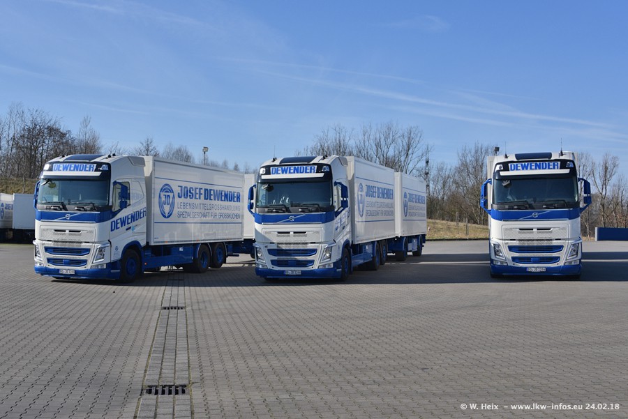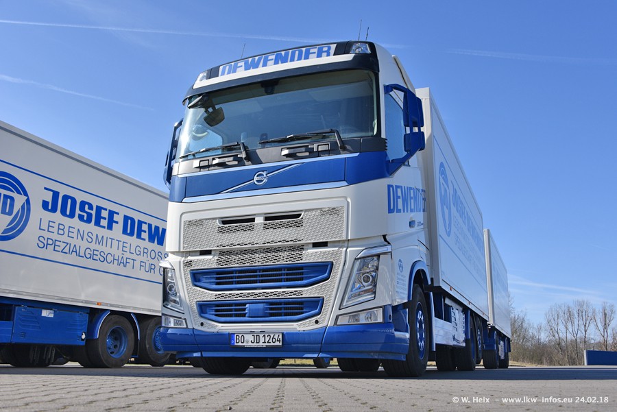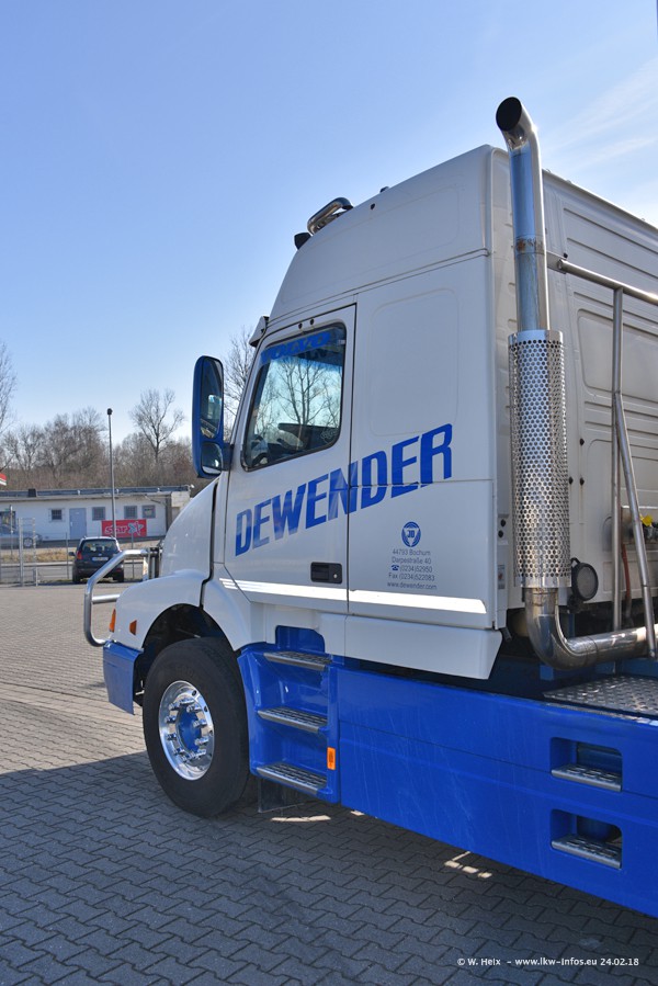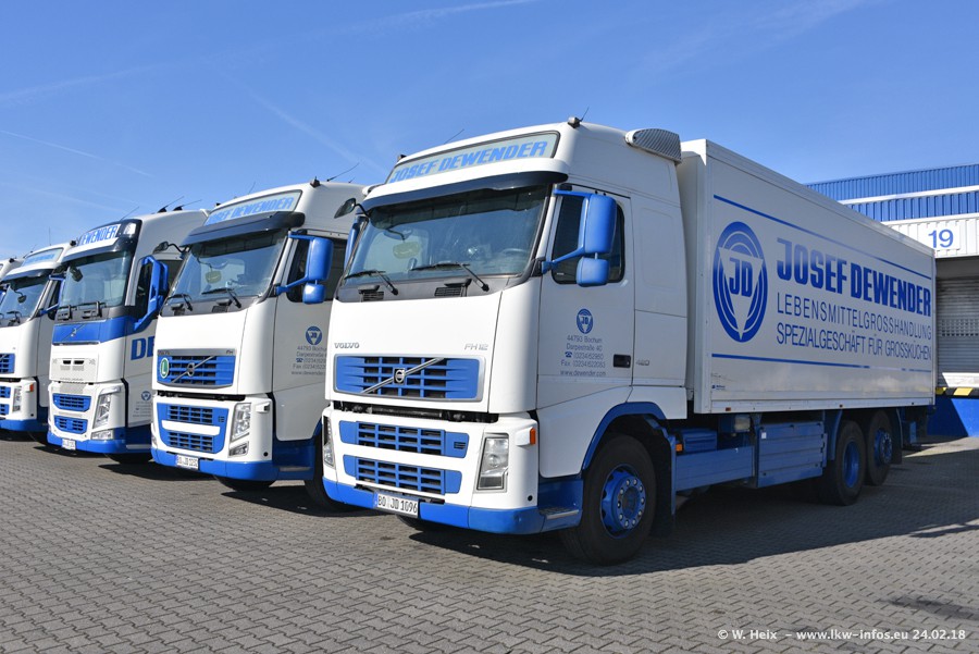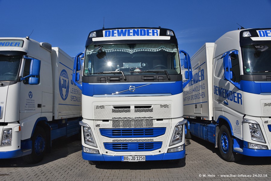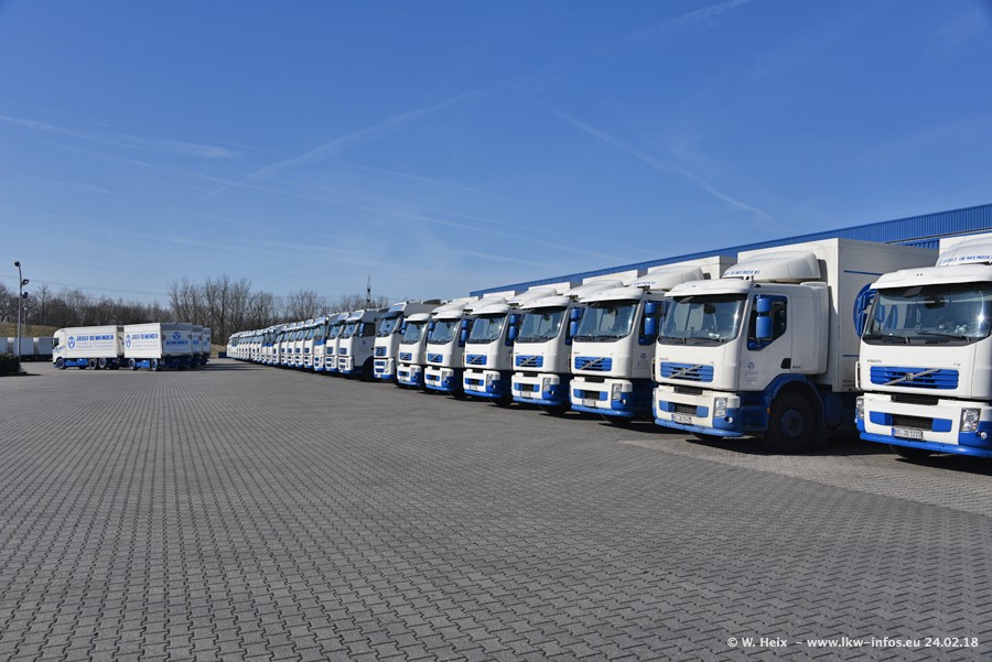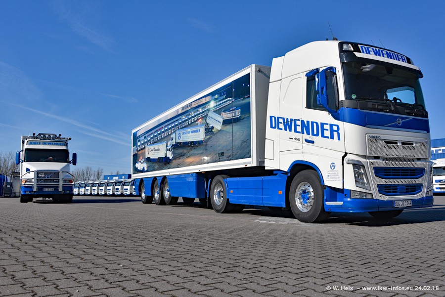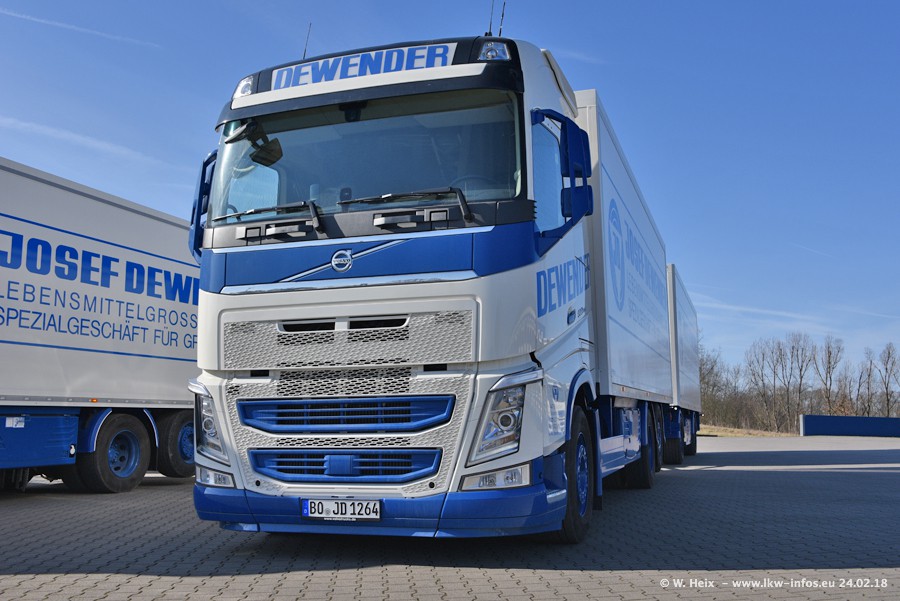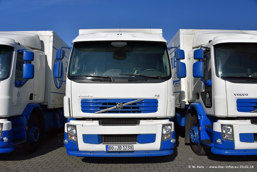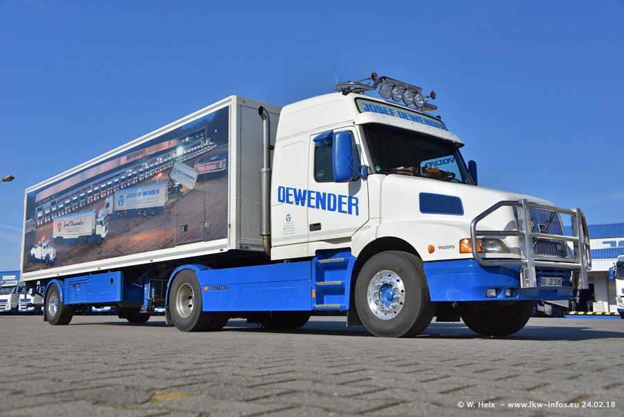 Der Fuhrpark besteht aktuell aus 40 LKW. Bis auf einen Renault Midlum 7,49-Tonner sind alle anderen LKW von VOLVO, Baureihen FH 2 bis FH 4 Euro 6. Dazu kommt noch ein VOLVO NH12 Baujahr 2000, der immer noch täglich im Einsatz ist. Zwei Tage vor meinem Besuch bei Dewender sind fünf VOLVO FH 4 Euro 6 neu dazu gekommen. Drei FH 500 Hängerzüge waren da, die beiden anderen standen noch beim Händler.
