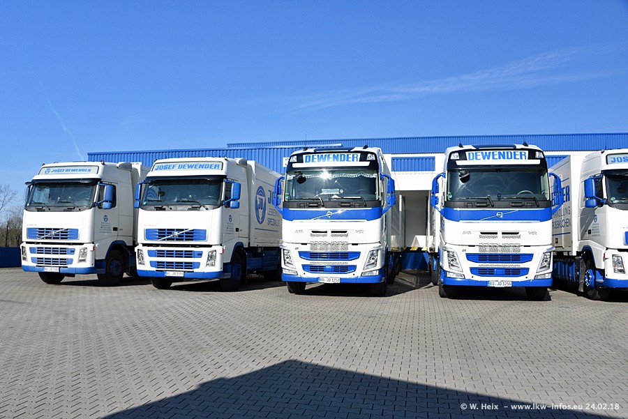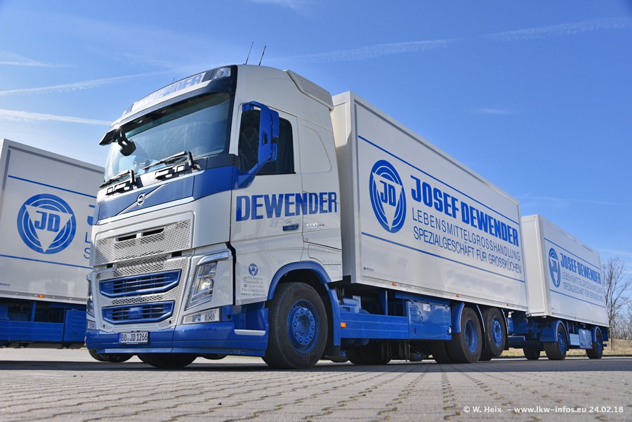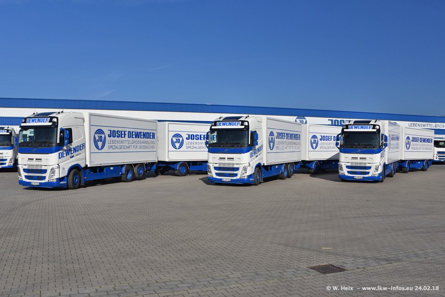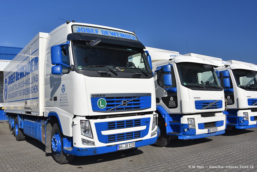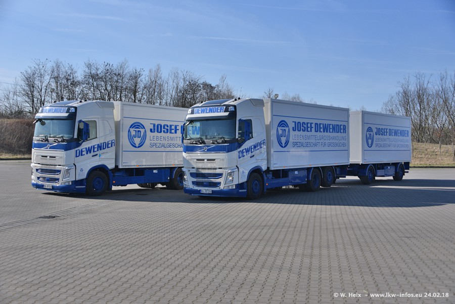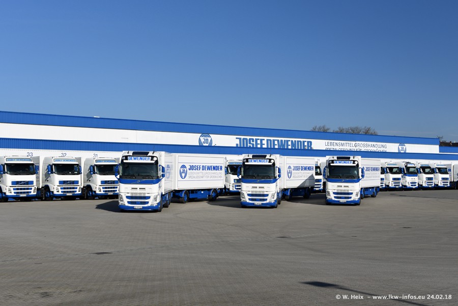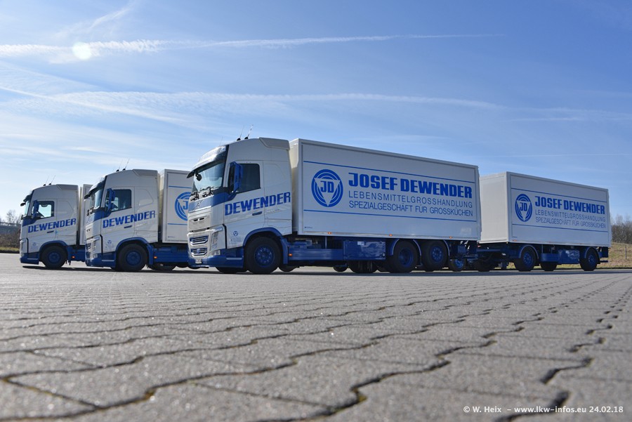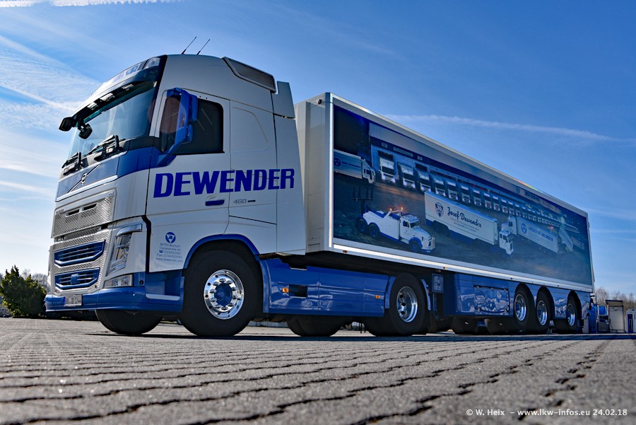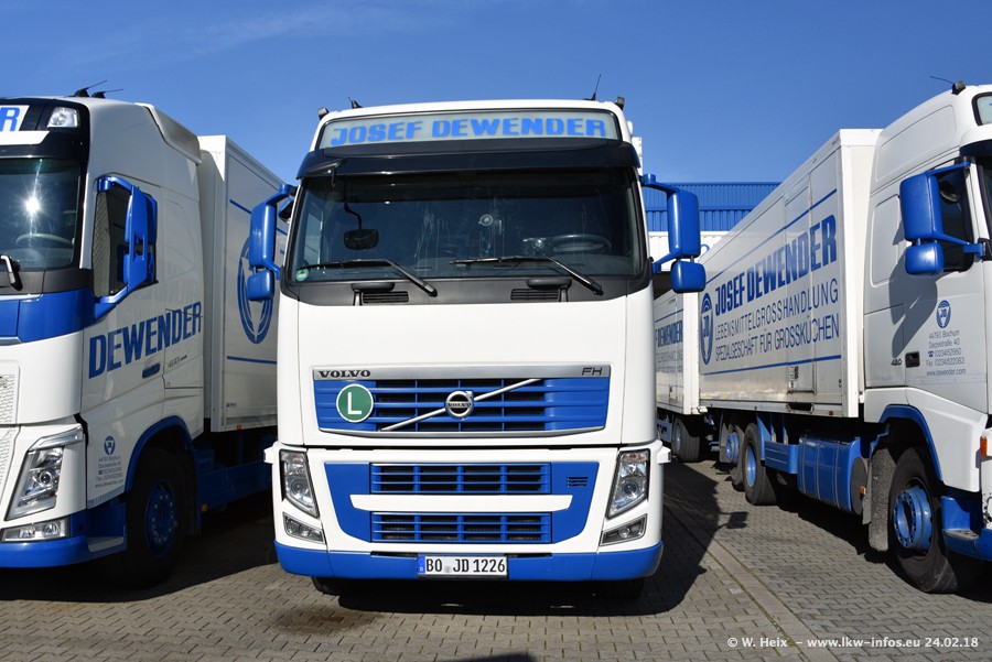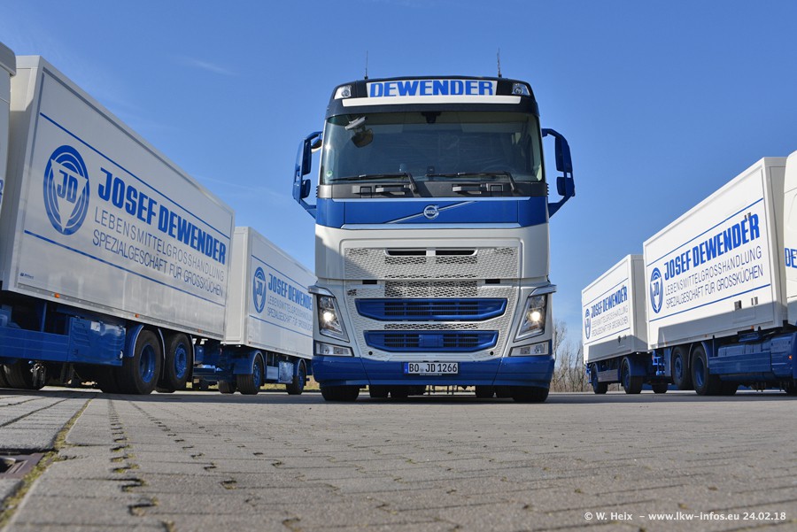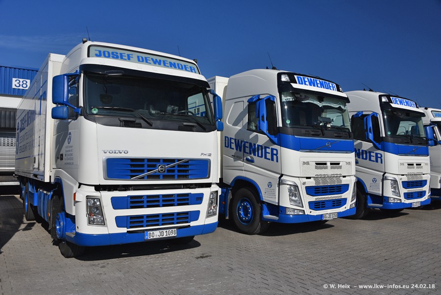Der Fuhrpark besteht aktuell aus 40 LKW. Bis auf einen Renault Midlum 7,49-Tonner sind alle anderen LKW von VOLVO, Baureihen FH 2 bis FH 4 Euro 6. Dazu kommt noch ein VOLVO NH12 Baujahr 2000, der immer noch täglich im Einsatz ist. Zwei Tage vor meinem Besuch bei Dewender sind fünf VOLVO FH 4 Euro 6 neu dazu gekommen. Drei FH 500 Hängerzüge waren da, die beiden anderen standen noch beim Händler.