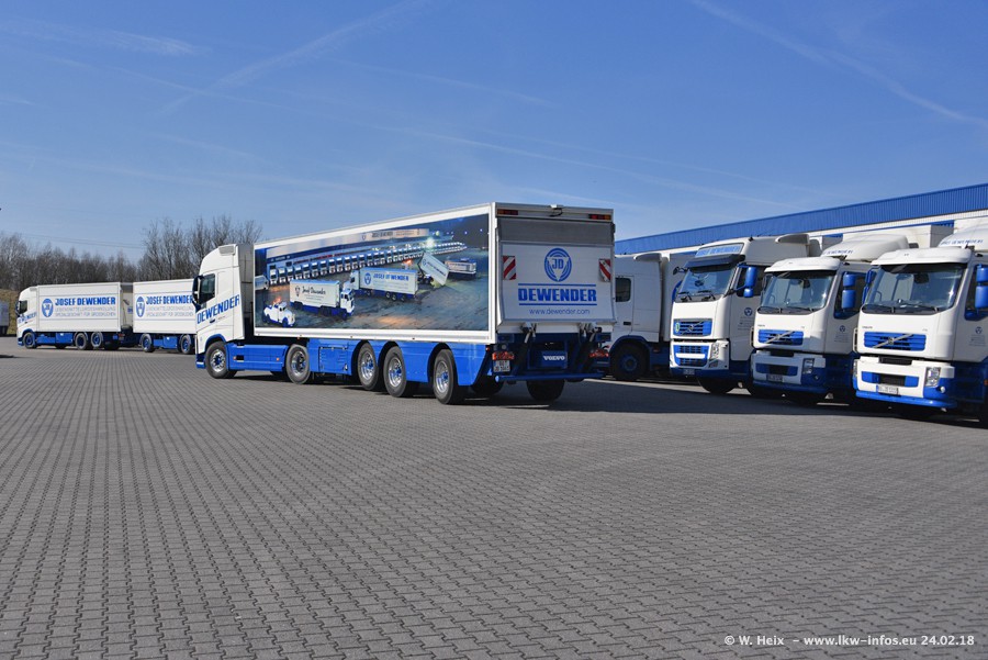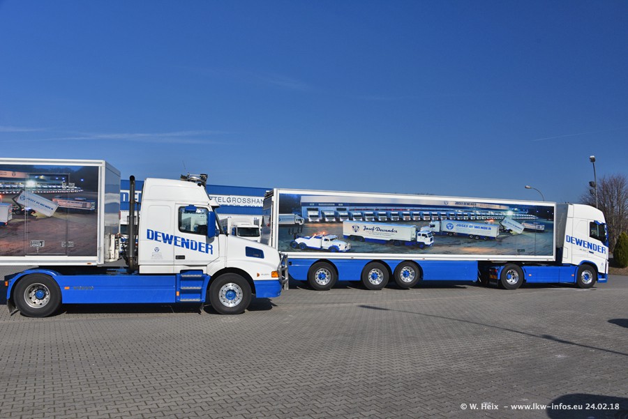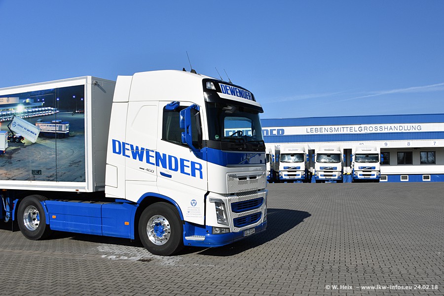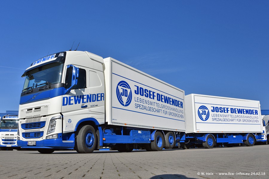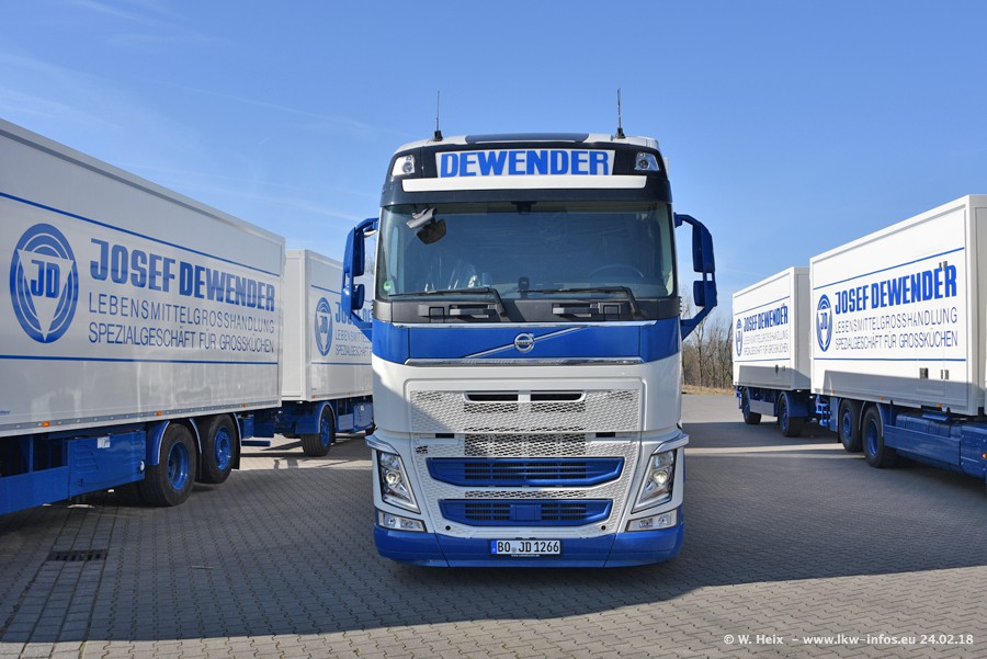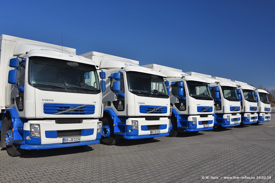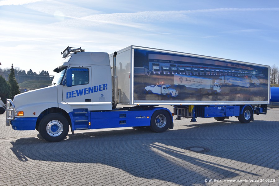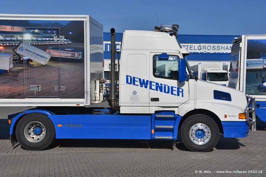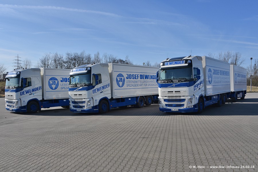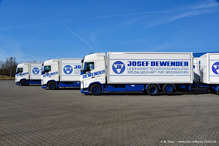 Der Fuhrpark besteht aktuell aus 40 LKW. Bis auf einen Renault Midlum 7,49-Tonner sind alle anderen LKW von VOLVO, Baureihen FH 2 bis FH 4 Euro 6. Dazu kommt noch ein VOLVO NH12 Baujahr 2000, der immer noch täglich im Einsatz ist. Zwei Tage vor meinem Besuch bei Dewender sind fünf VOLVO FH 4 Euro 6 neu dazu gekommen. Drei FH 500 Hängerzüge waren da, die beiden anderen standen noch beim Händler.
