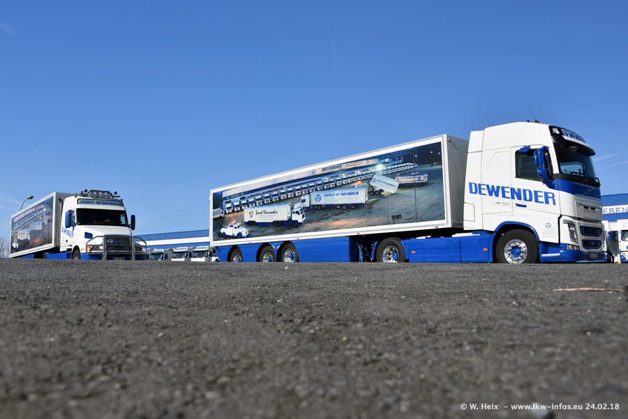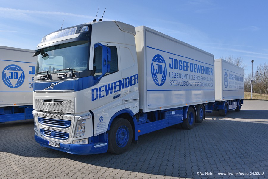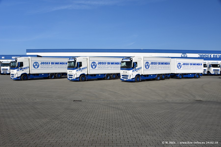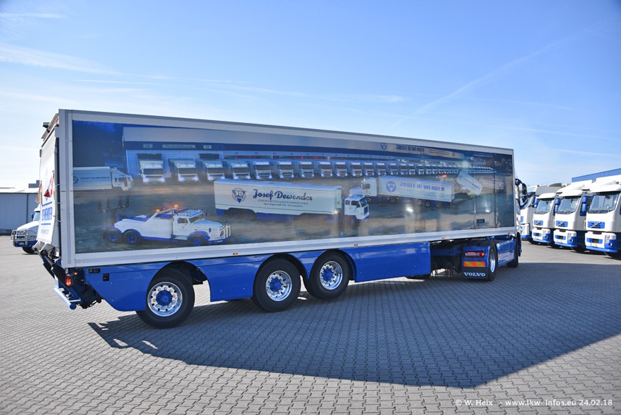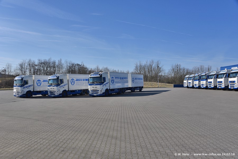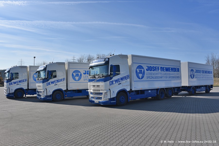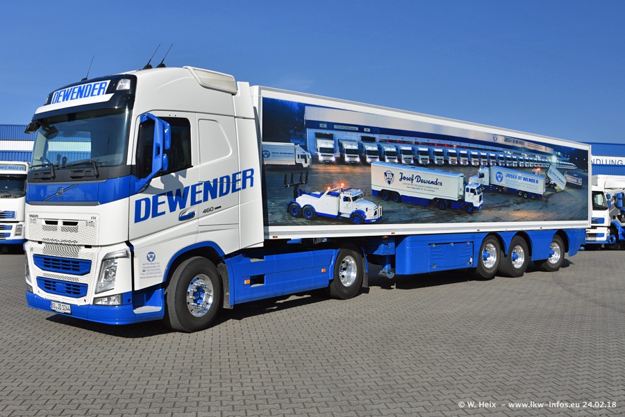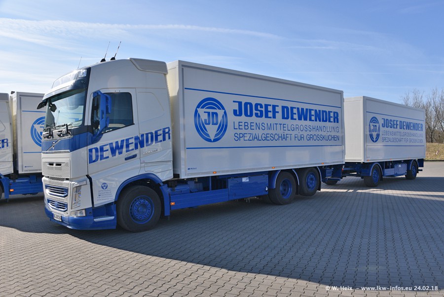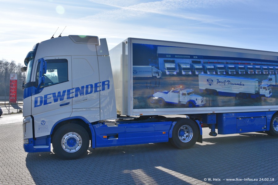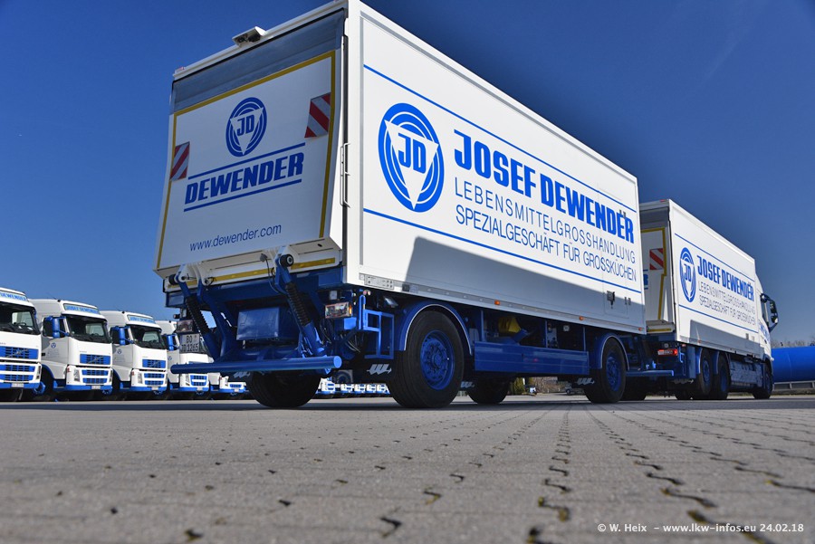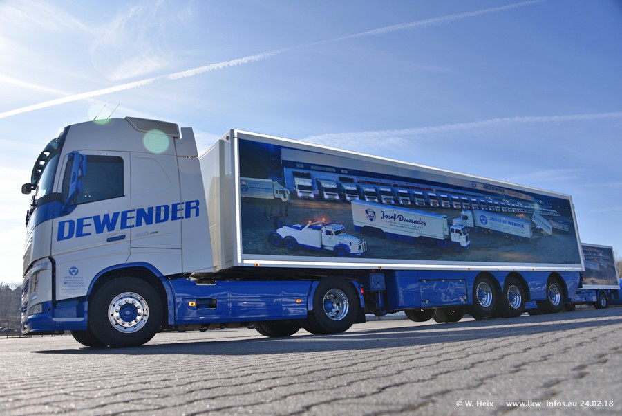 Der Fuhrpark besteht aktuell aus 40 LKW. Bis auf einen Renault Midlum 7,49-Tonner sind alle anderen LKW von VOLVO, Baureihen FH 2 bis FH 4 Euro 6. Dazu kommt noch ein VOLVO NH12 Baujahr 2000, der immer noch täglich im Einsatz ist. Zwei Tage vor meinem Besuch bei Dewender sind fünf VOLVO FH 4 Euro 6 neu dazu gekommen. Drei FH 500 Hängerzüge waren da, die beiden anderen standen noch beim Händler.