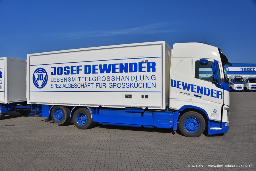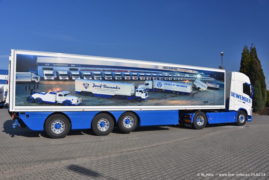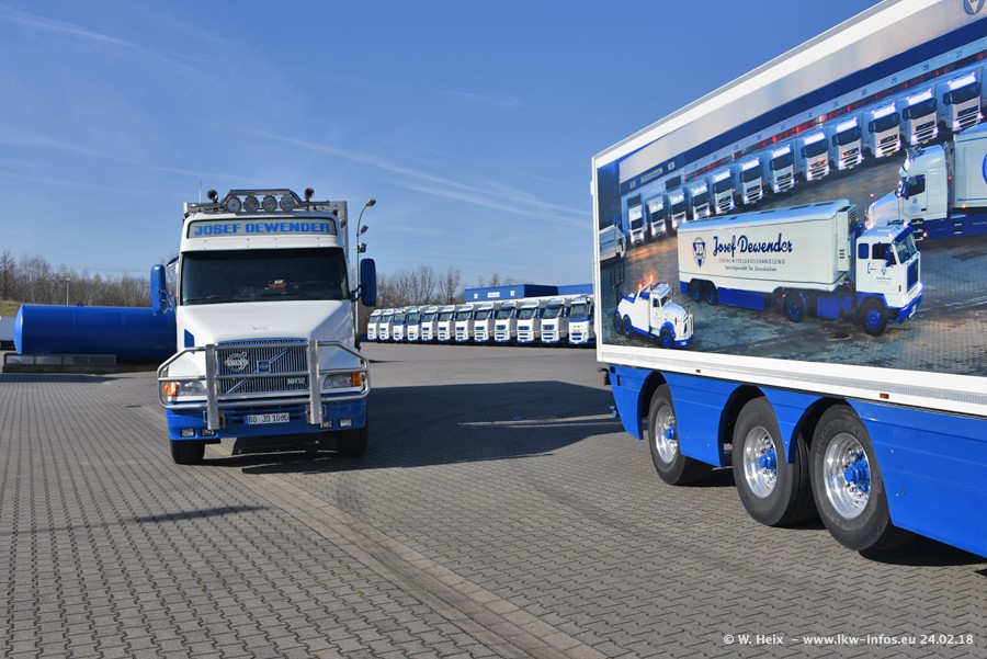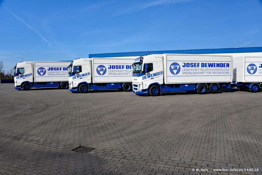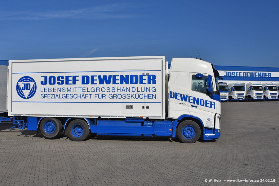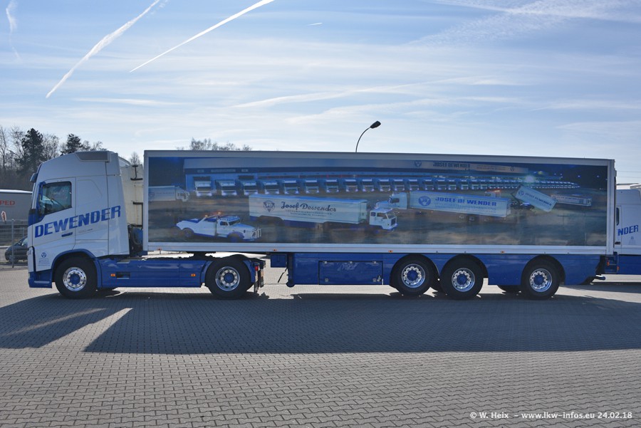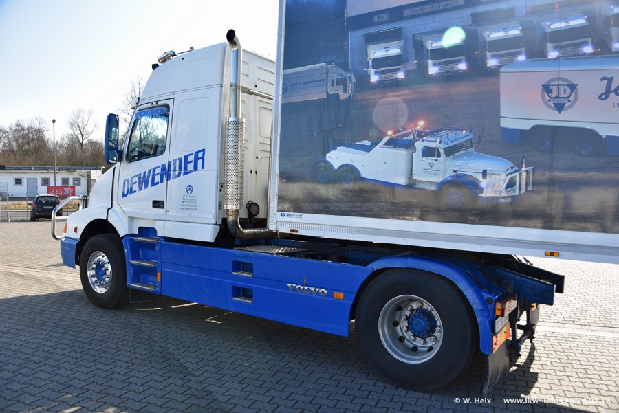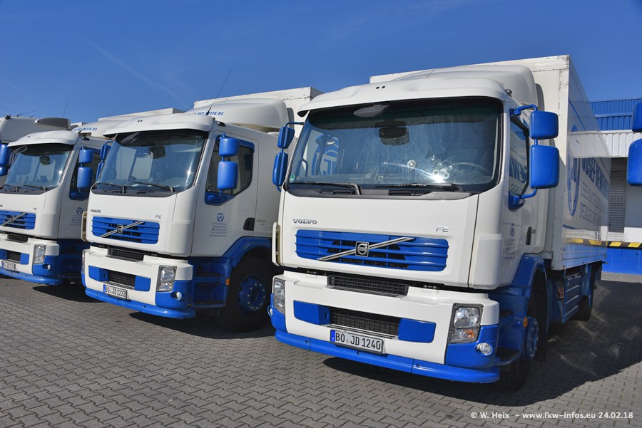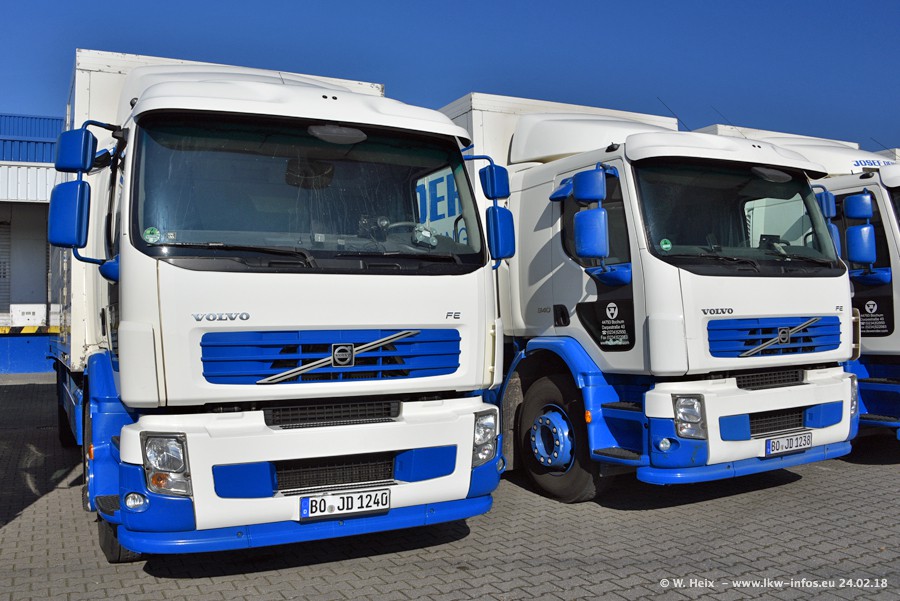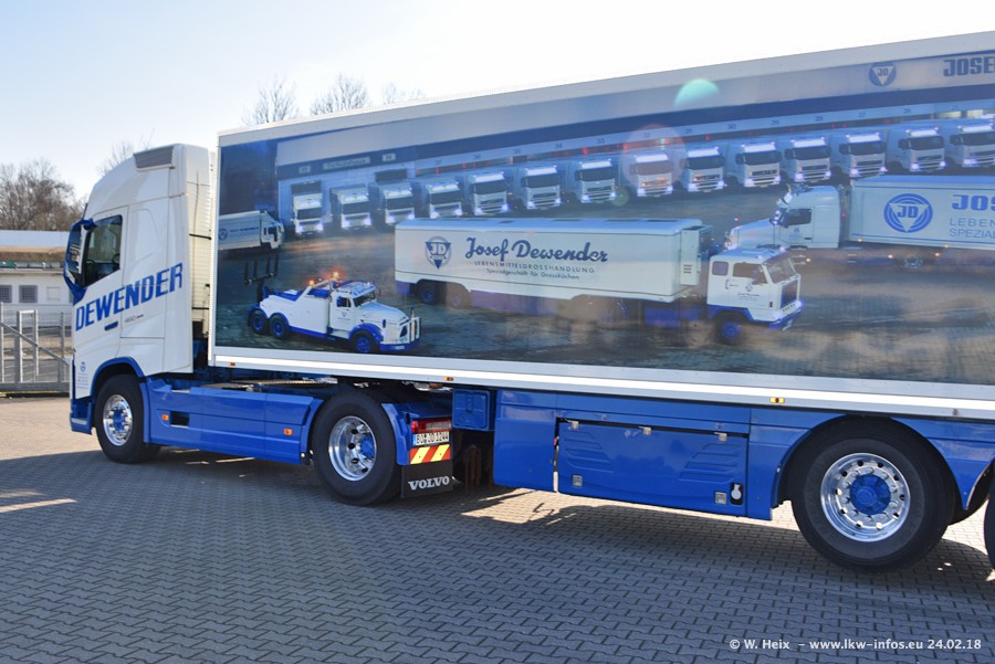 Der Fuhrpark besteht aktuell aus 40 LKW. Bis auf einen Renault Midlum 7,49-Tonner sind alle anderen LKW von VOLVO, Baureihen FH 2 bis FH 4 Euro 6. Dazu kommt noch ein VOLVO NH12 Baujahr 2000, der immer noch täglich im Einsatz ist. Zwei Tage vor meinem Besuch bei Dewender sind fünf VOLVO FH 4 Euro 6 neu dazu gekommen. Drei FH 500 Hängerzüge waren da, die beiden anderen standen noch beim Händler.