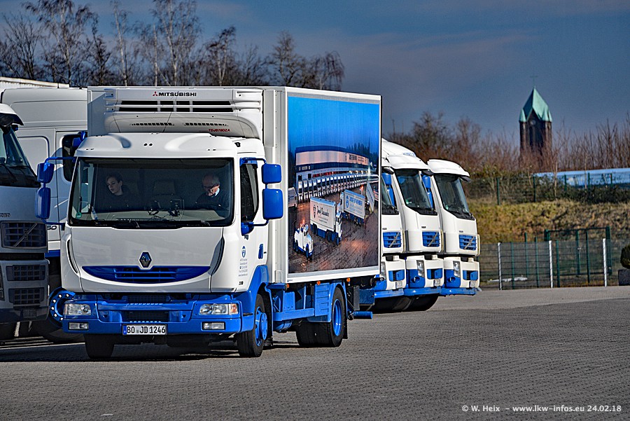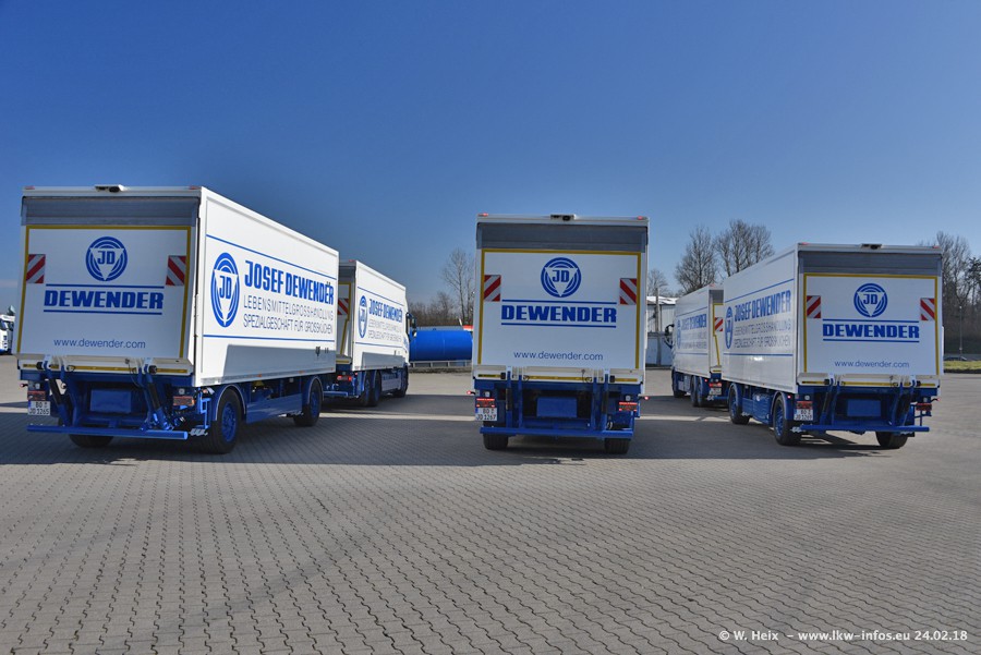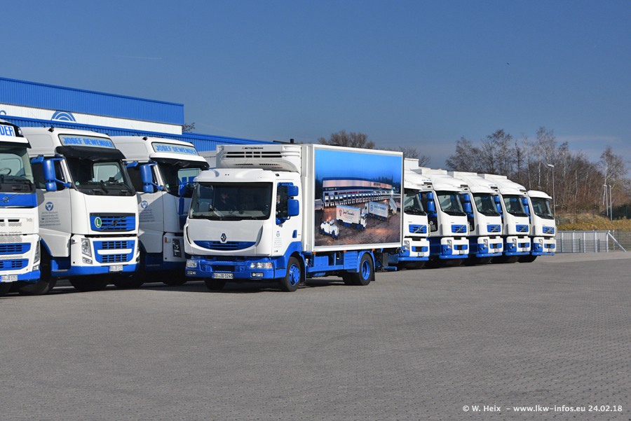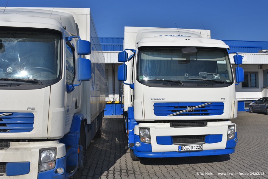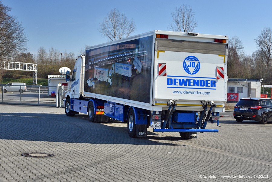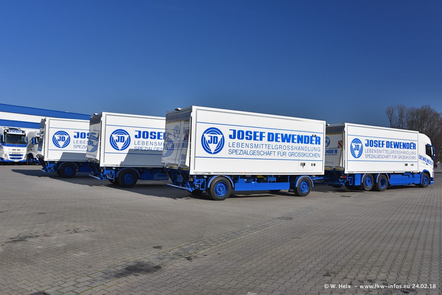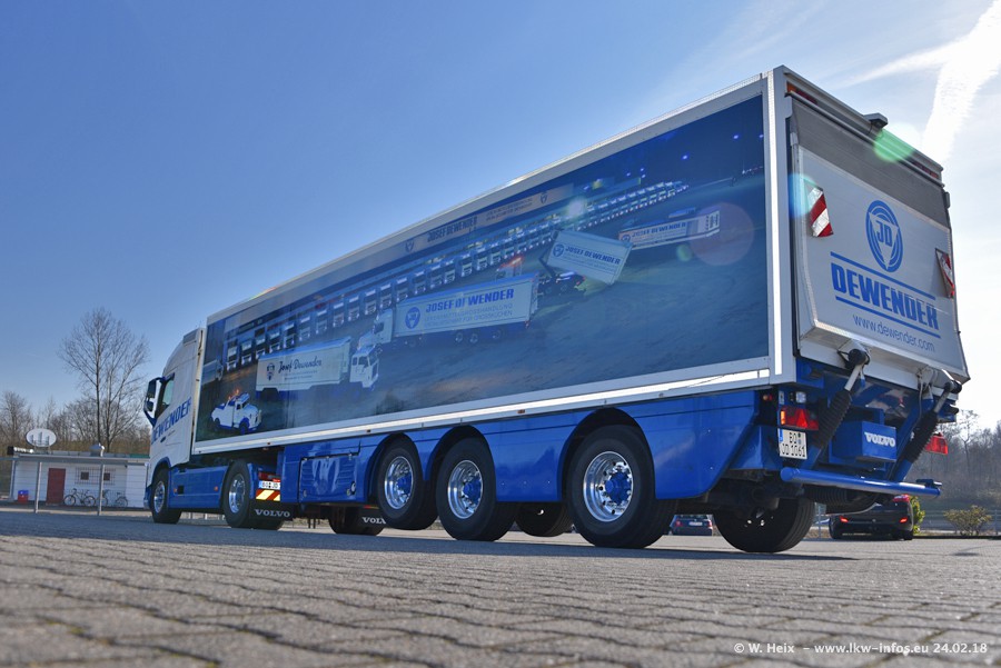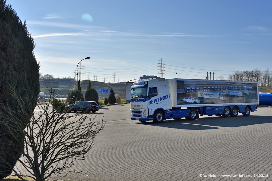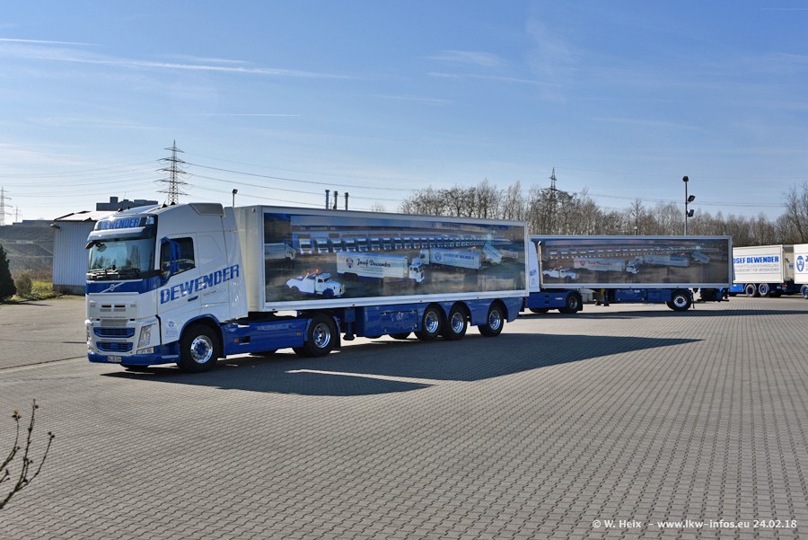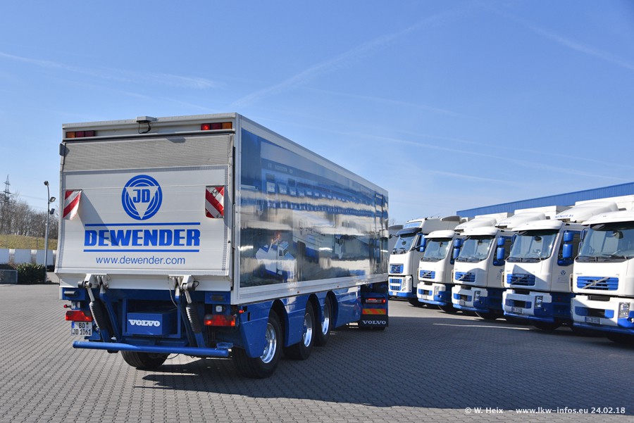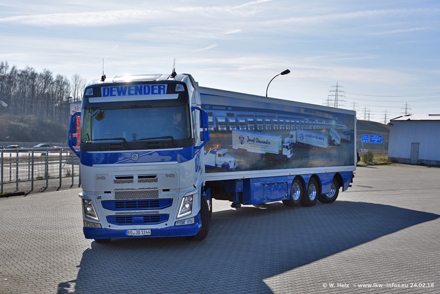 Der Fuhrpark besteht aktuell aus 40 LKW. Bis auf einen Renault Midlum 7,49-Tonner sind alle anderen LKW von VOLVO, Baureihen FH 2 bis FH 4 Euro 6. Dazu kommt noch ein VOLVO NH12 Baujahr 2000, der immer noch täglich im Einsatz ist. Zwei Tage vor meinem Besuch bei Dewender sind fünf VOLVO FH 4 Euro 6 neu dazu gekommen. Drei FH 500 Hängerzüge waren da, die beiden anderen standen noch beim Händler.