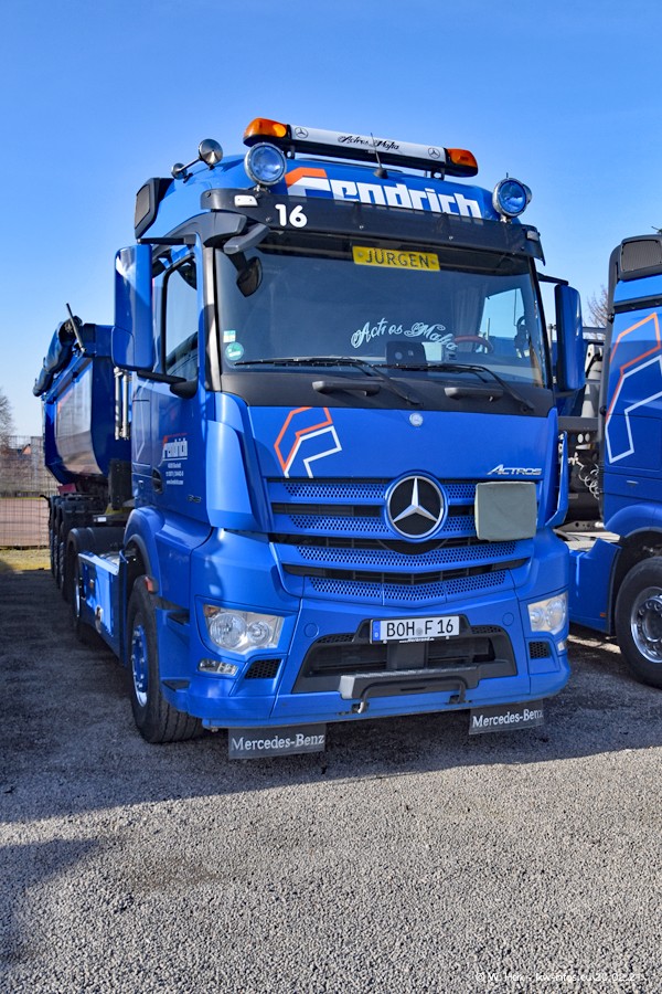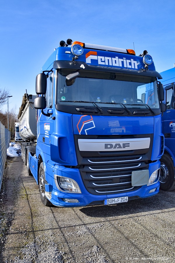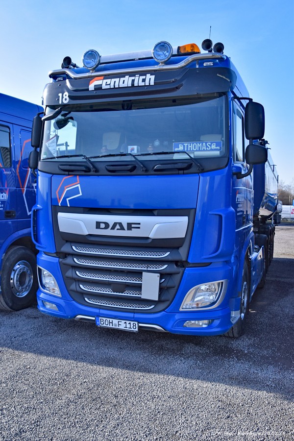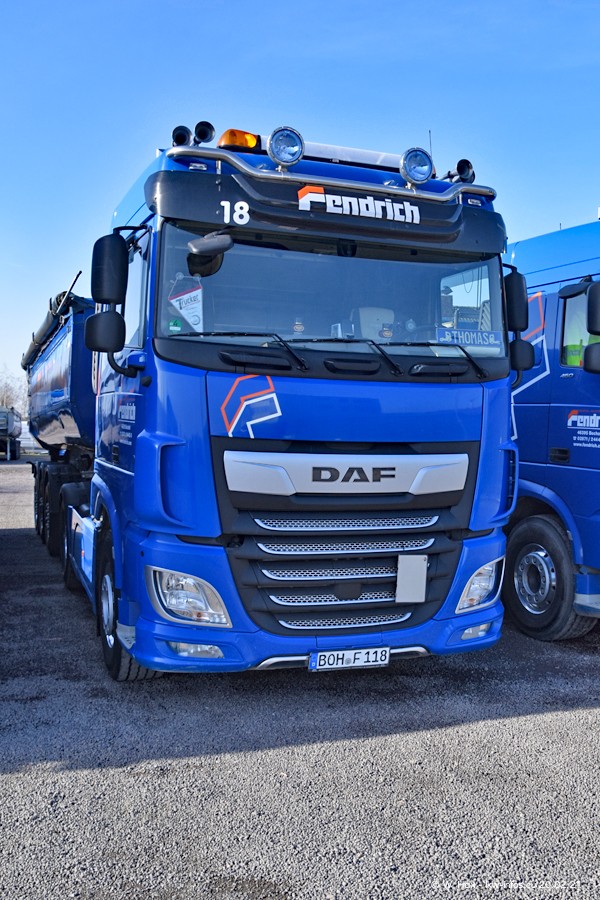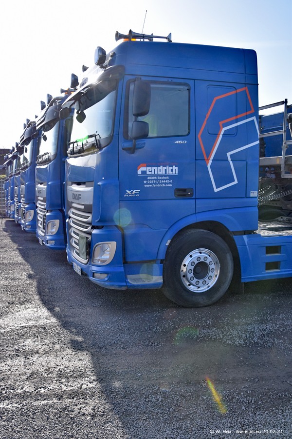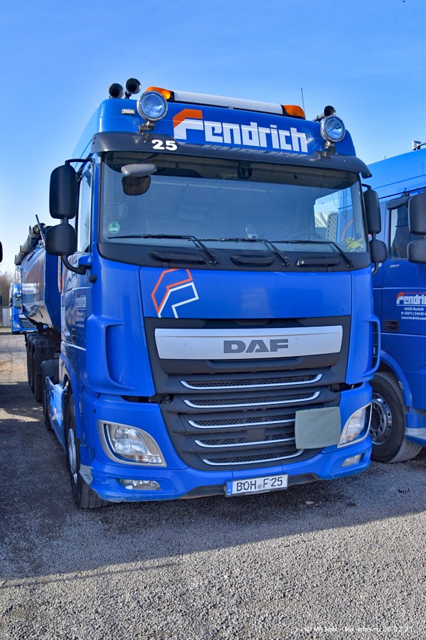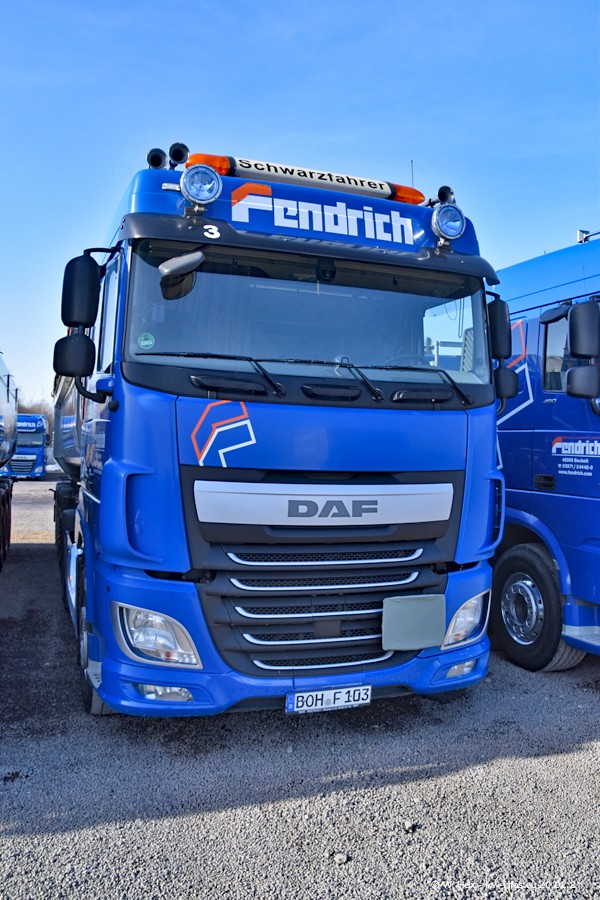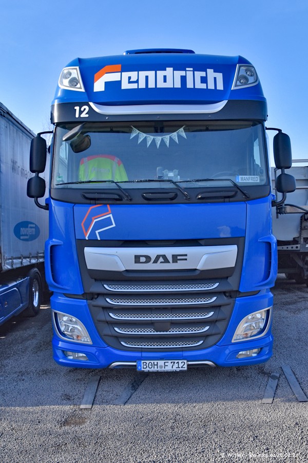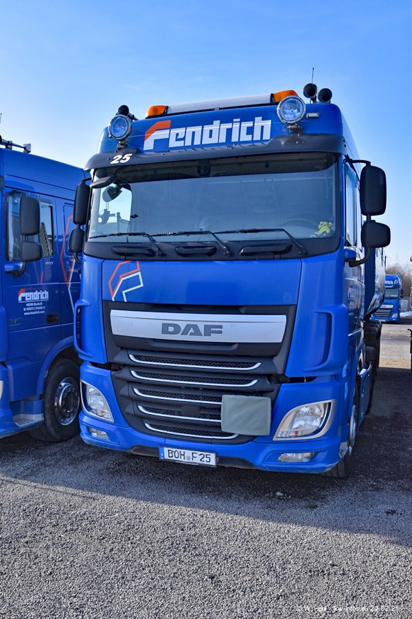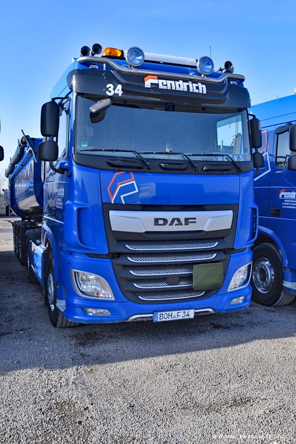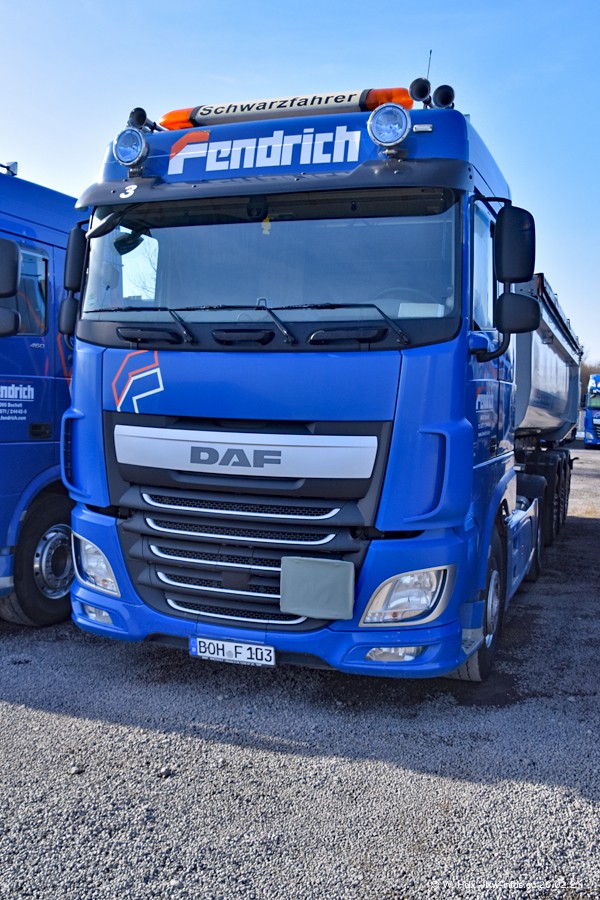 Die meisten LKW waren zuhause. Da aber diesmal kein Fotoshooting geplant war, "musste" ich auch zum Firmengelände an der Werkstraße in Bocholt fahren. Ein DAF XF ist neu im Fuhrpark, dieser trägt die Fahrzeug-Nr. 10 und auch die 10 auf dem Kennzeichen. Das ist Ersatz für einen der beiden MAN TGX. Was man auch auf den Fotos am Ende der Bildergalerie sieht. Im März/April kommen weitere neue Fahrzeuge, an folgt der nächste Besuch bei Fendrich.