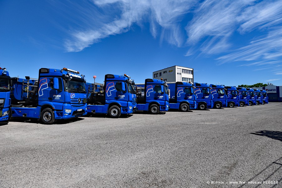 Nachdem das Wetter beim ersten Fotoshooting im Dezember 2017 nicht so gut war wie erwartet, haben wir das Fotoshooting nochmal wiederholt. Diesmal hat alles gepasst bei schönstem Frühlingswetter. Alle Fahrzeuge wurden wieder auf dem großen Platz an der Franzstraße platziert. Es sind seit Dezember auch noch zwei neue LKW gekommen: Ein DAF New XF Euro 6 (Fahrzeug Nr. 12) und vor drei Wochen ein weiterer Mercedes-Benz Actros 4 (Fahrzeug Nr. 20).