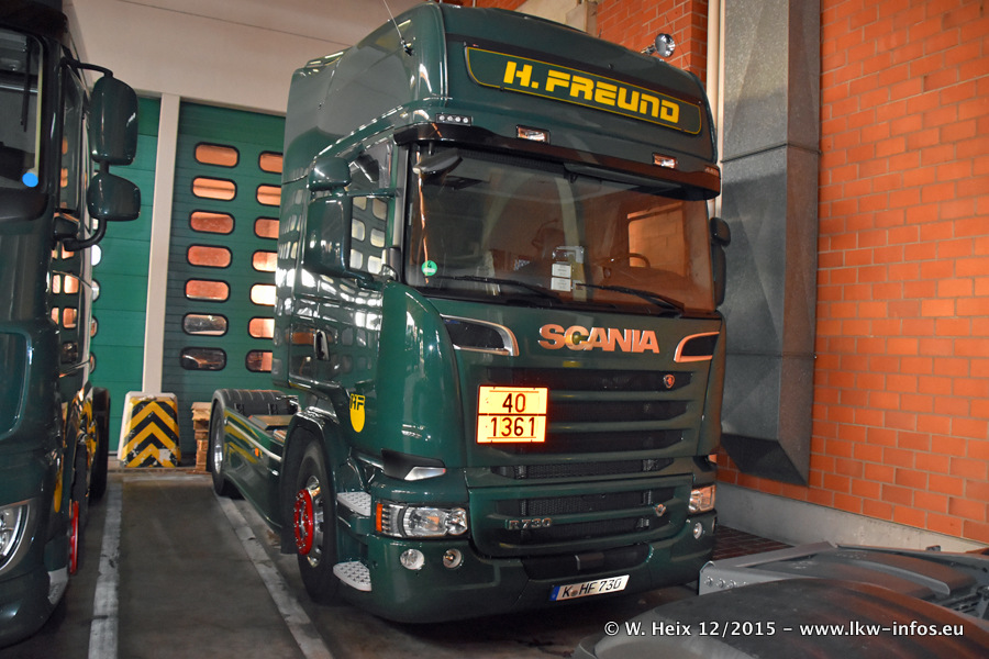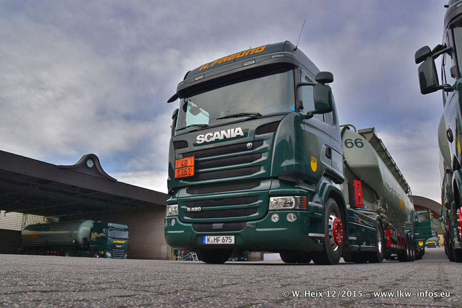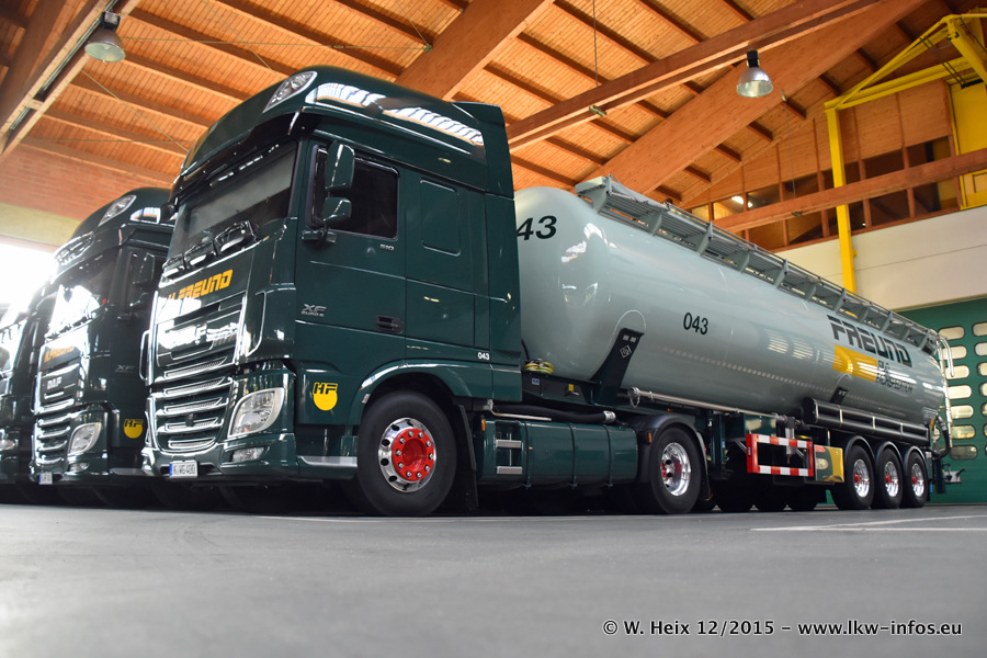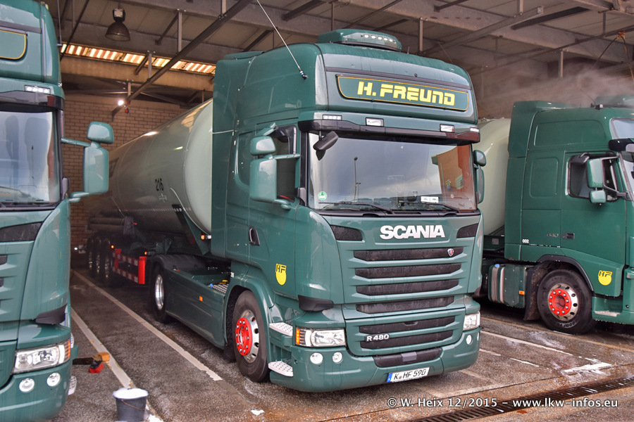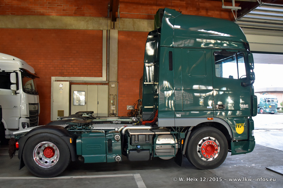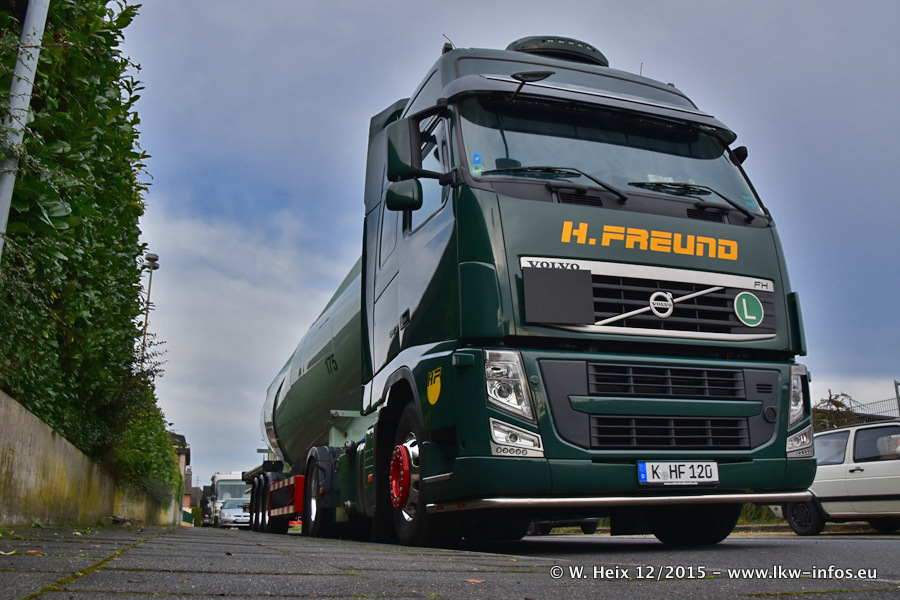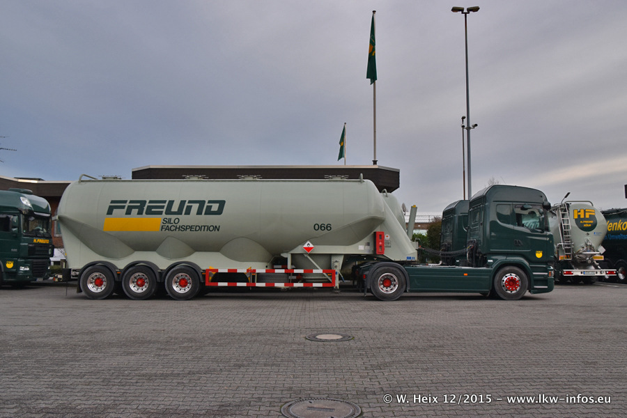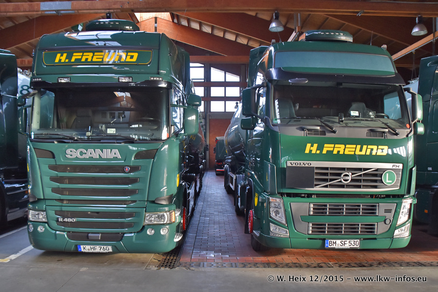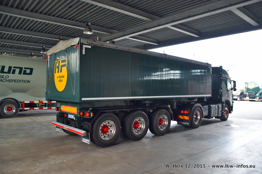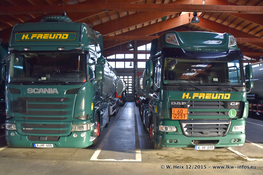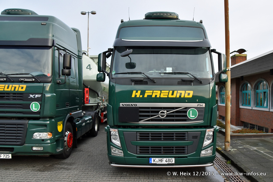Ich war zum ersten Mal bei der Spedition H. Freund in Frechen zu Besuch. Der Fuhrpark besteht zur Zeit aus rund 160 LKW, die natürlich nie alle zusammen auf dem Firmengelände stehen, das würde der Platz auch nicht zulassen. Der größte Teil der Zugmaschinen ist von DAF, aber auch Scania ist stark vertreten. Dazu kommen noch LKW von Mercedes-Benz und Volvo. Die von mir fotografierten älteren Zugmaschinene (DAF CF 1, DAF 95 XF) sind nicht mehr im täglichen Einsatz, werden aber noch gebraucht, wenn ein Ersatzfahrzeug benötigt wird.