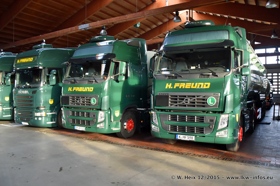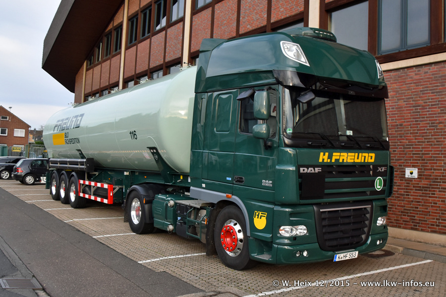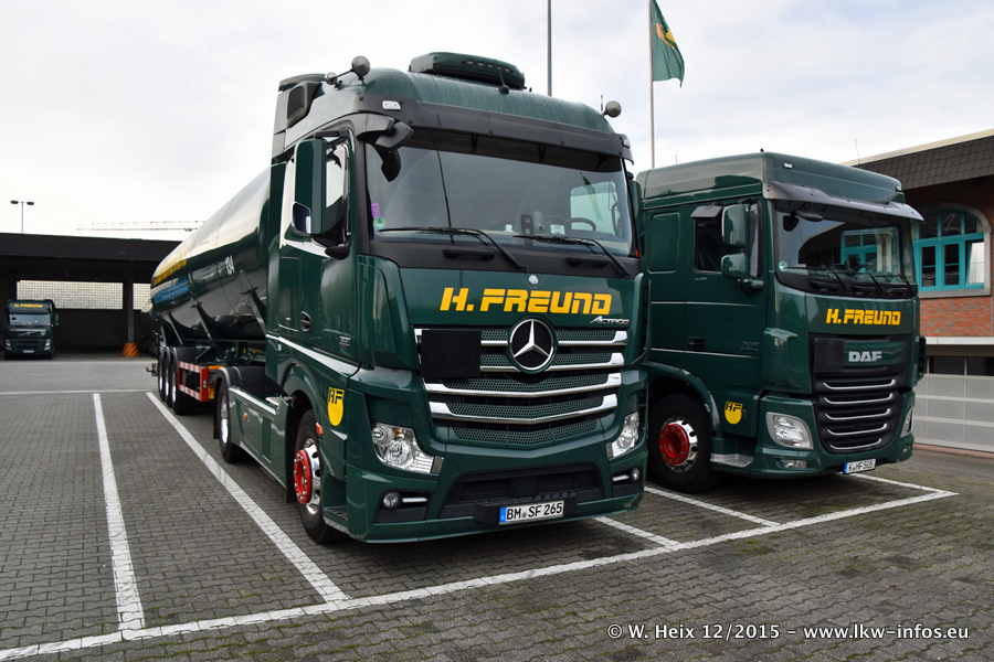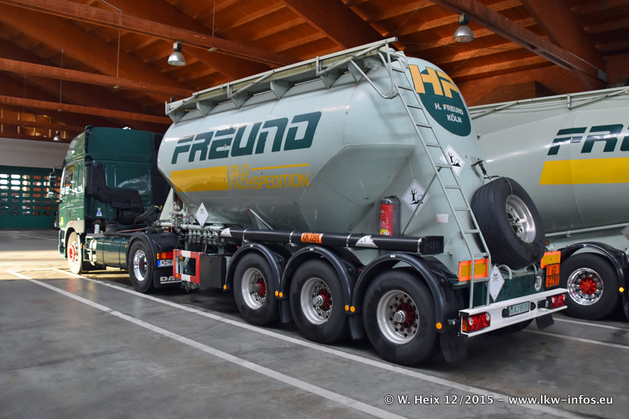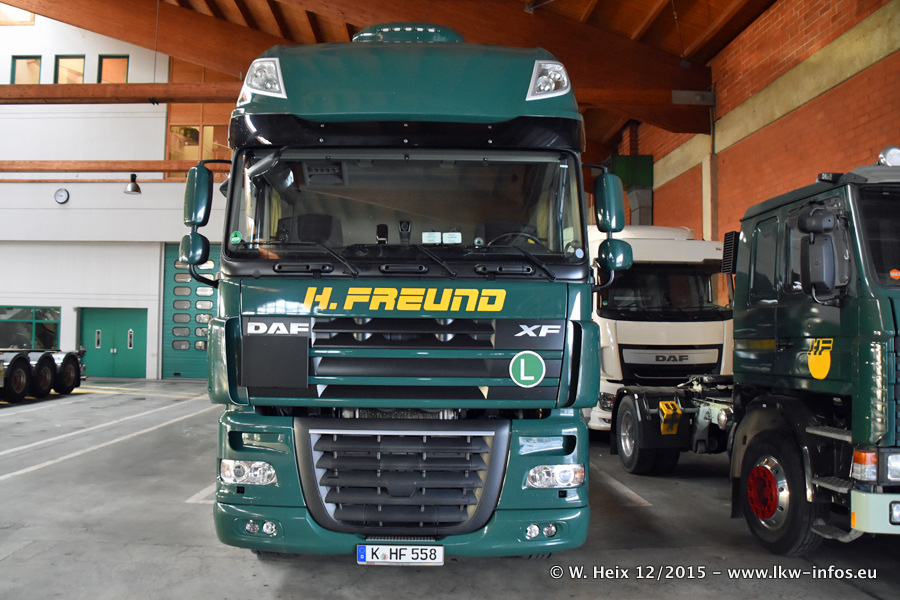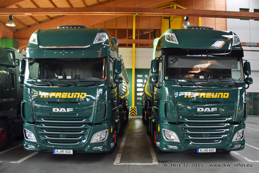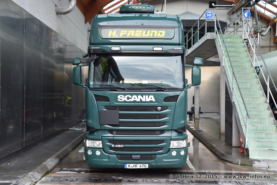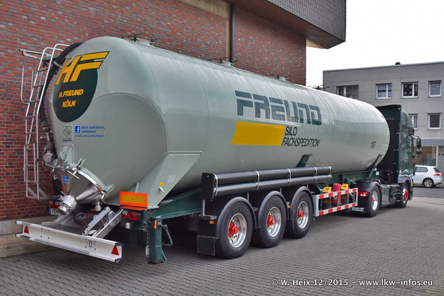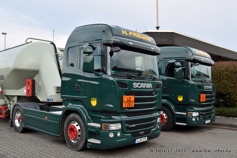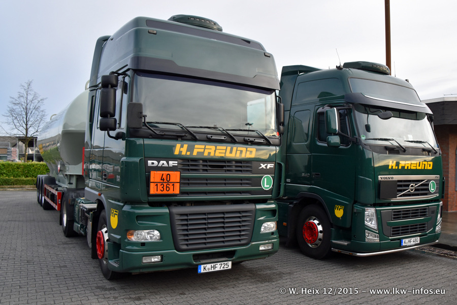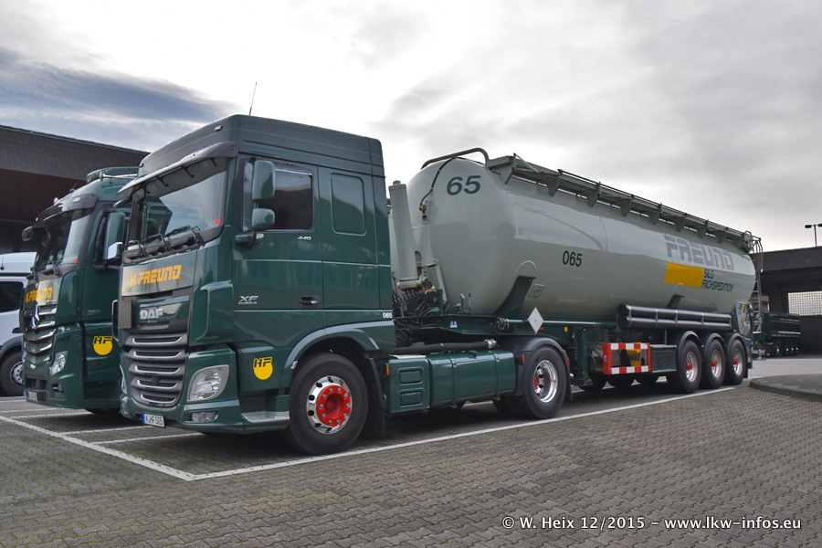 Ich war zum ersten Mal bei der Spedition H. Freund in Frechen zu Besuch. Der Fuhrpark besteht zur Zeit aus rund 160 LKW, die natürlich nie alle zusammen auf dem Firmengelände stehen, das würde der Platz auch nicht zulassen. Der größte Teil der Zugmaschinen ist von DAF, aber auch Scania ist stark vertreten. Dazu kommen noch LKW von Mercedes-Benz und Volvo. Die von mir fotografierten älteren Zugmaschinene (DAF CF 1, DAF 95 XF) sind nicht mehr im täglichen Einsatz, werden aber noch gebraucht, wenn ein Ersatzfahrzeug benötigt wird.