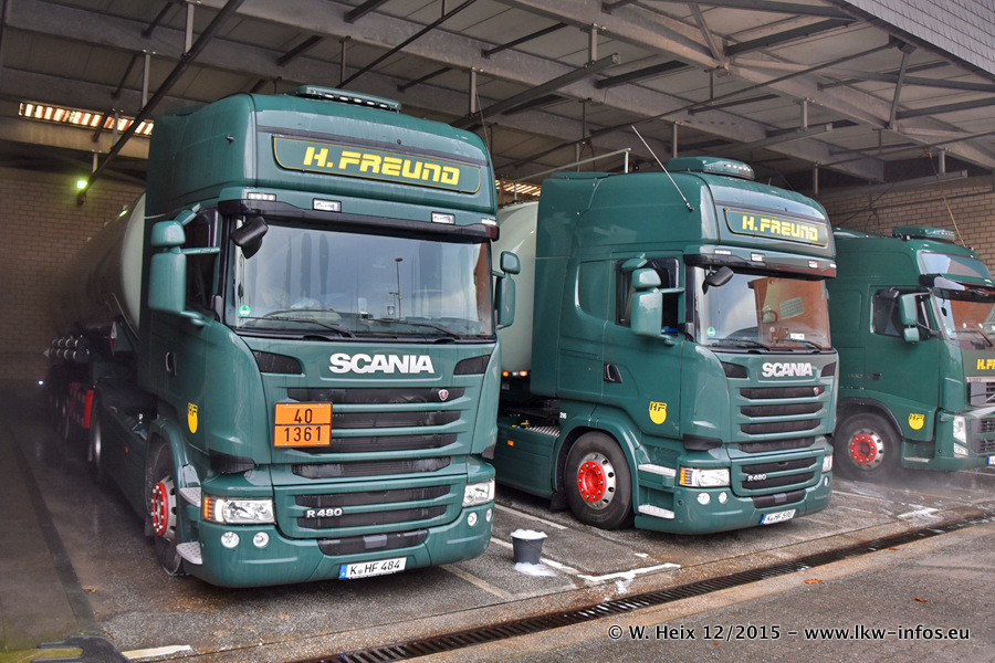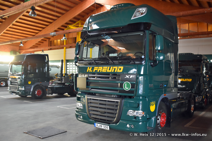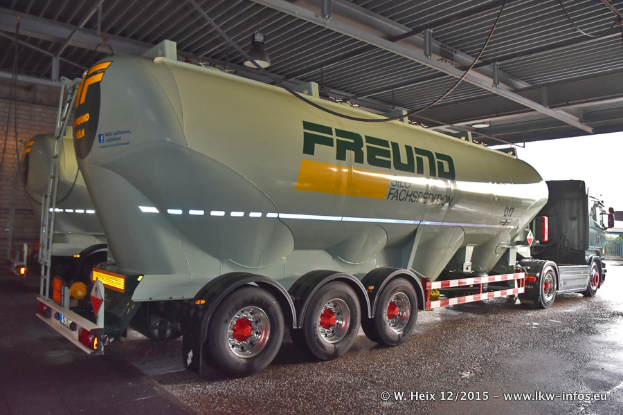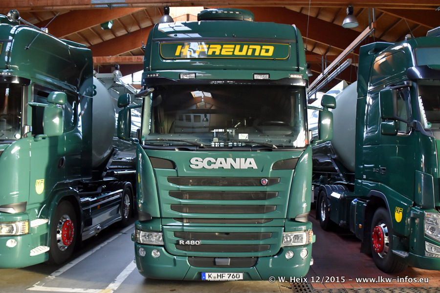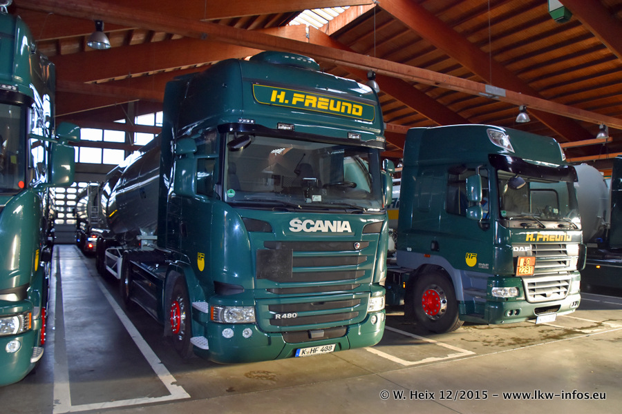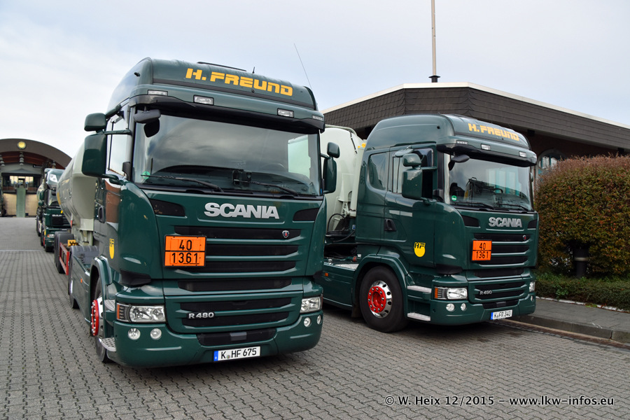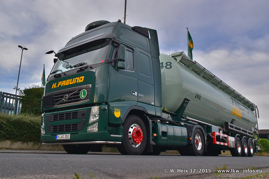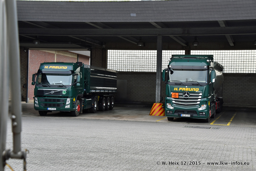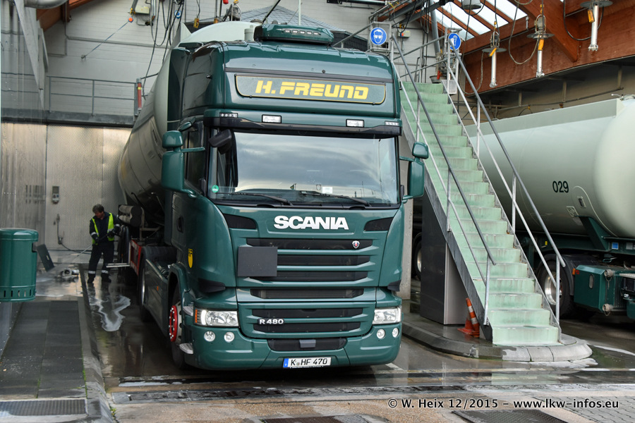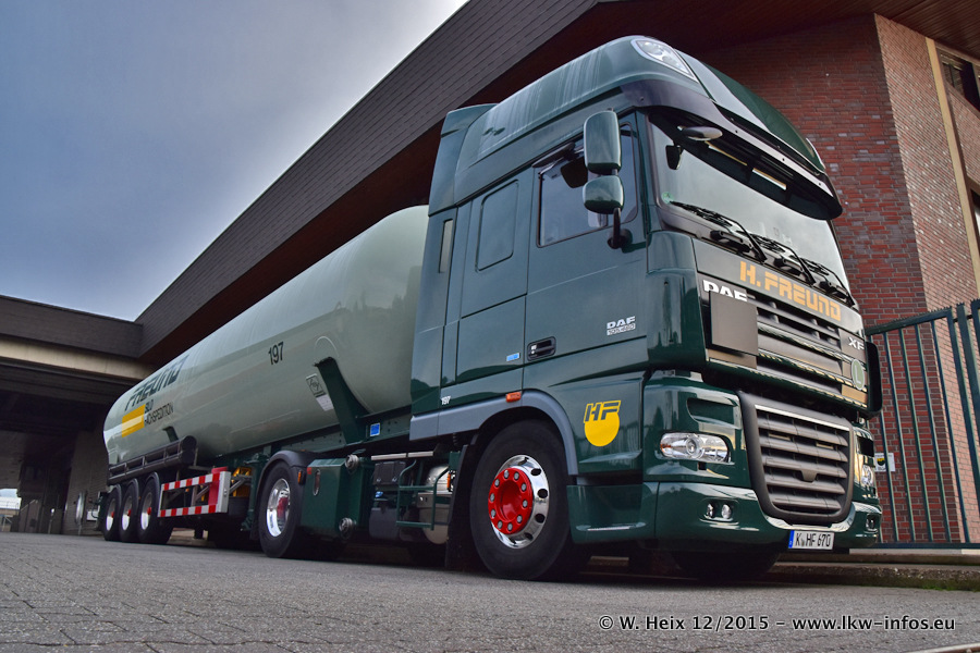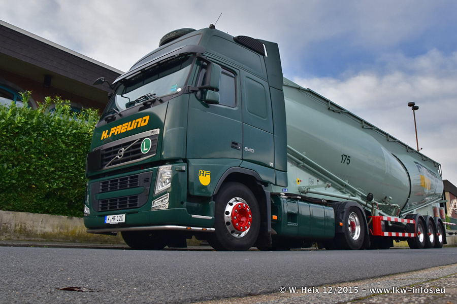 Ich war zum ersten Mal bei der Spedition H. Freund in Frechen zu Besuch. Der Fuhrpark besteht zur Zeit aus rund 160 LKW, die natürlich nie alle zusammen auf dem Firmengelände stehen, das würde der Platz auch nicht zulassen. Der größte Teil der Zugmaschinen ist von DAF, aber auch Scania ist stark vertreten. Dazu kommen noch LKW von Mercedes-Benz und Volvo. Die von mir fotografierten älteren Zugmaschinene (DAF CF 1, DAF 95 XF) sind nicht mehr im täglichen Einsatz, werden aber noch gebraucht, wenn ein Ersatzfahrzeug benötigt wird.
