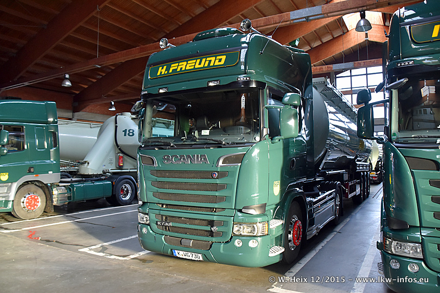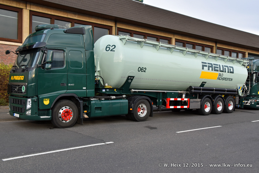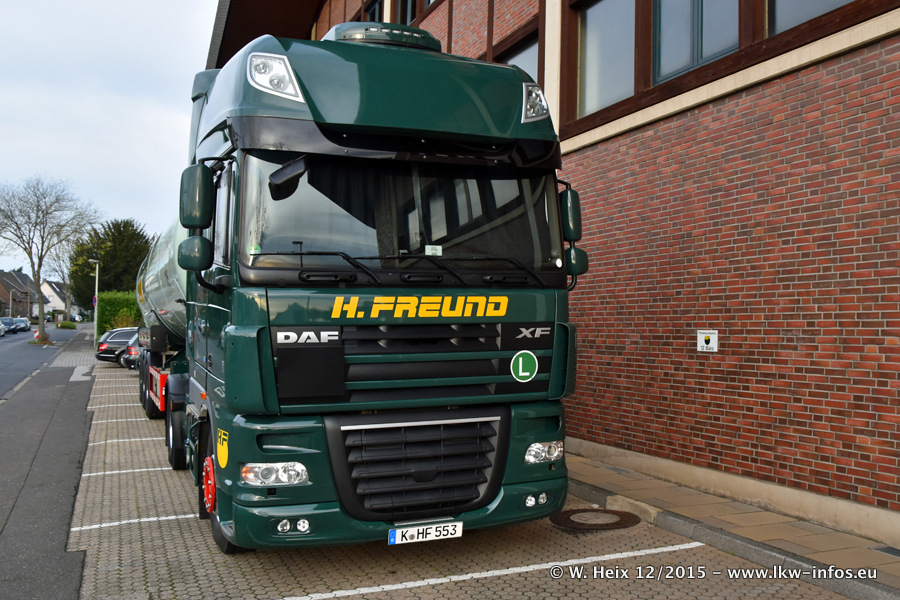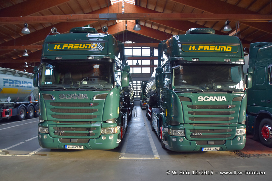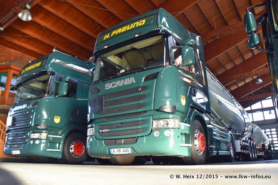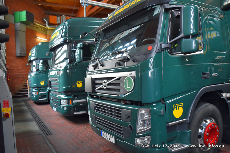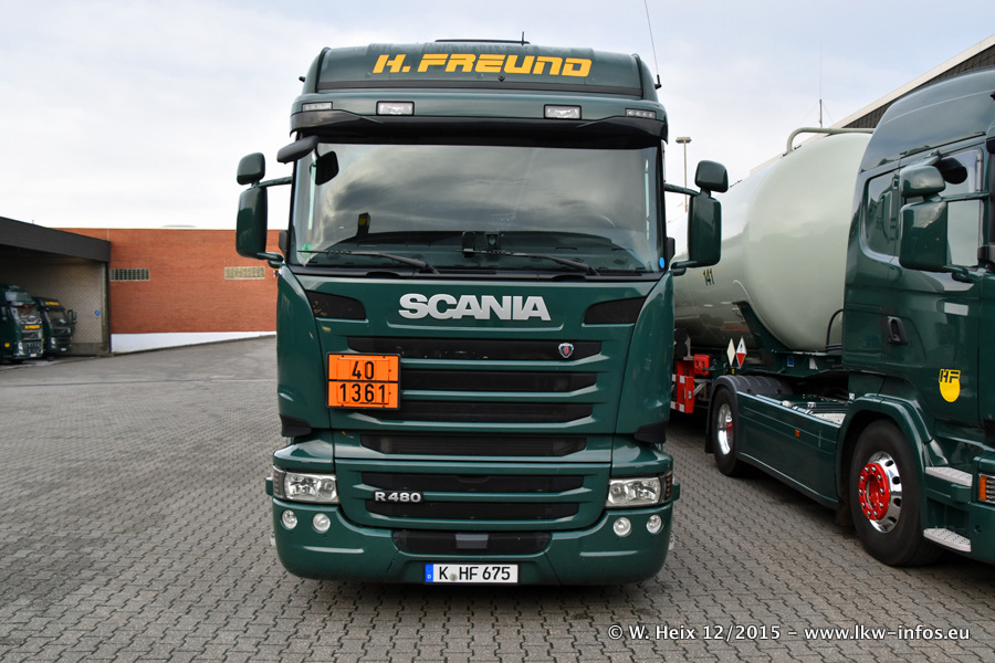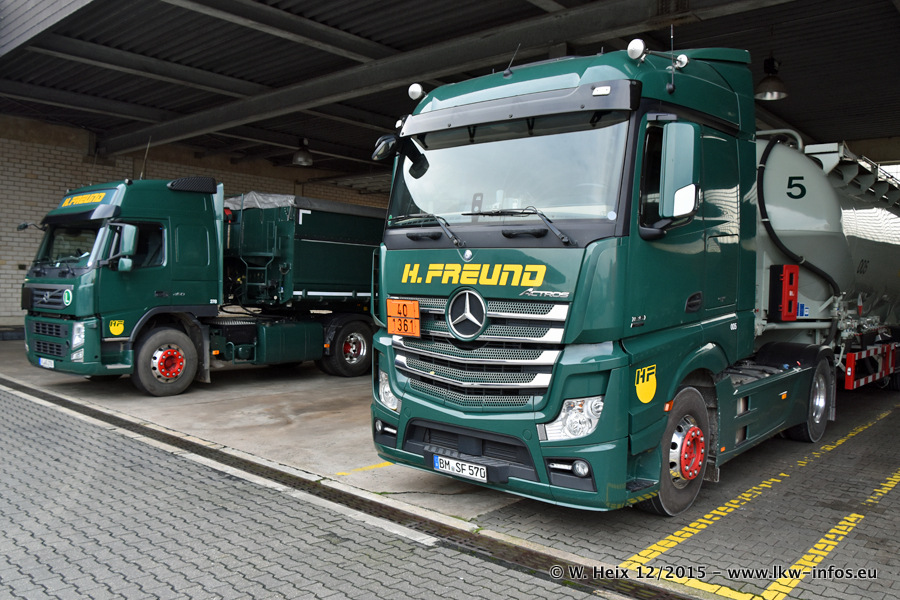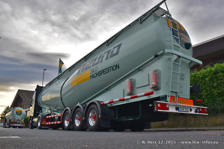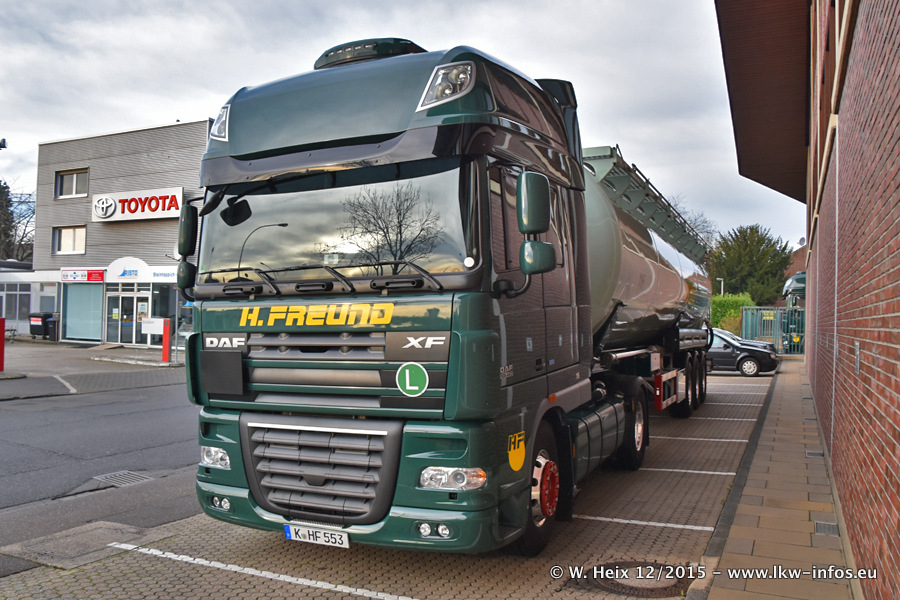 Ich war zum ersten Mal bei der Spedition H. Freund in Frechen zu Besuch. Der Fuhrpark besteht zur Zeit aus rund 160 LKW, die natürlich nie alle zusammen auf dem Firmengelände stehen, das würde der Platz auch nicht zulassen. Der größte Teil der Zugmaschinen ist von DAF, aber auch Scania ist stark vertreten. Dazu kommen noch LKW von Mercedes-Benz und Volvo. Die von mir fotografierten älteren Zugmaschinene (DAF CF 1, DAF 95 XF) sind nicht mehr im täglichen Einsatz, werden aber noch gebraucht, wenn ein Ersatzfahrzeug benötigt wird.