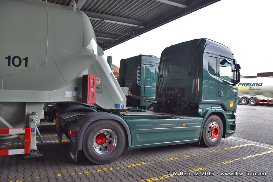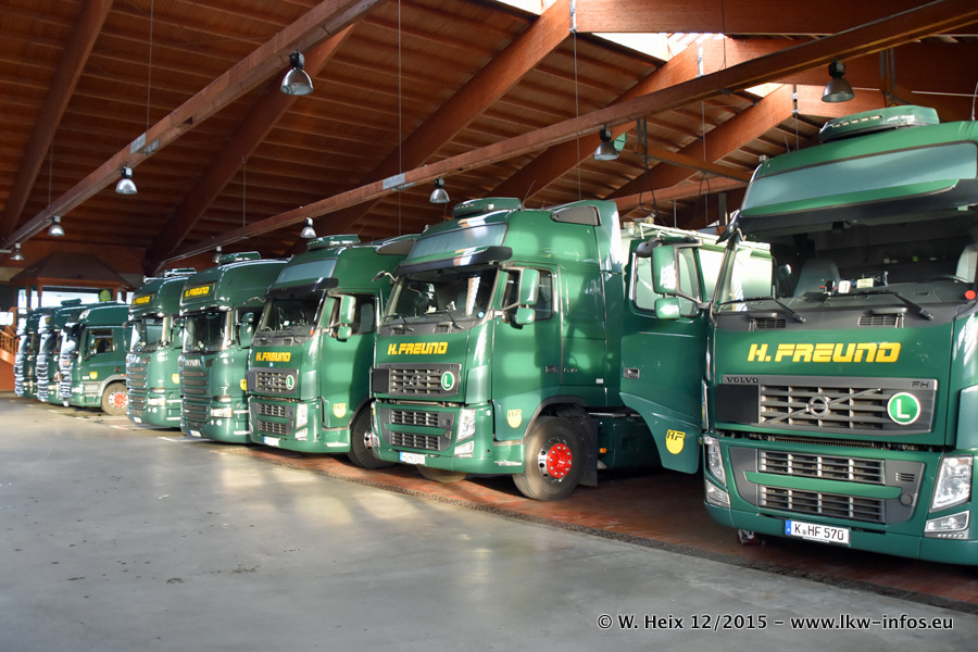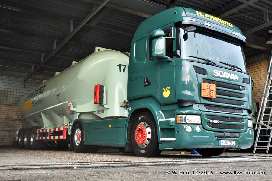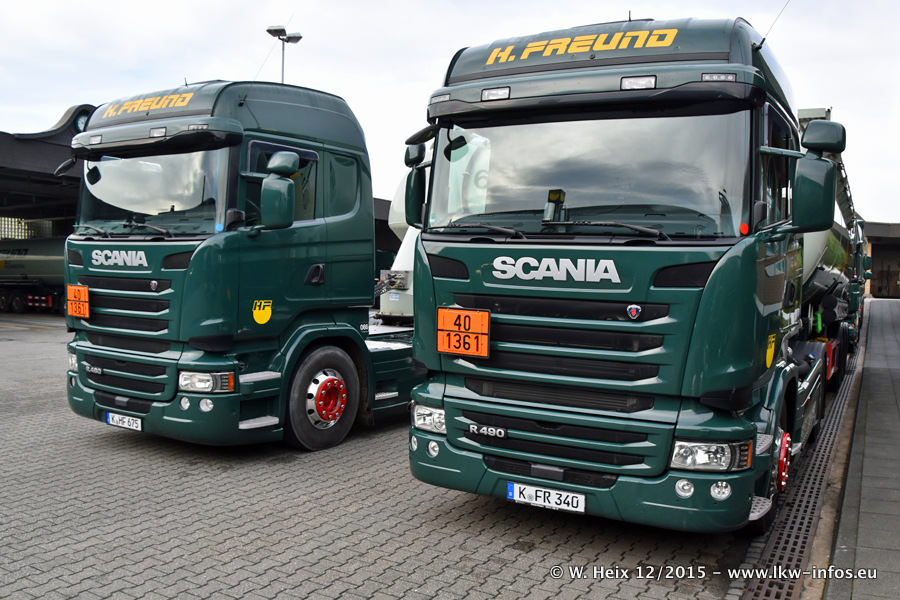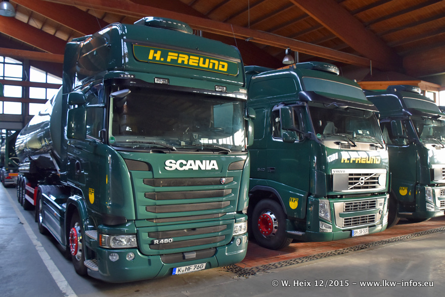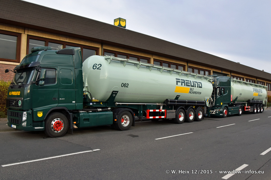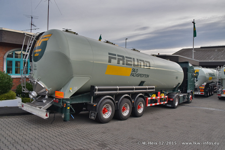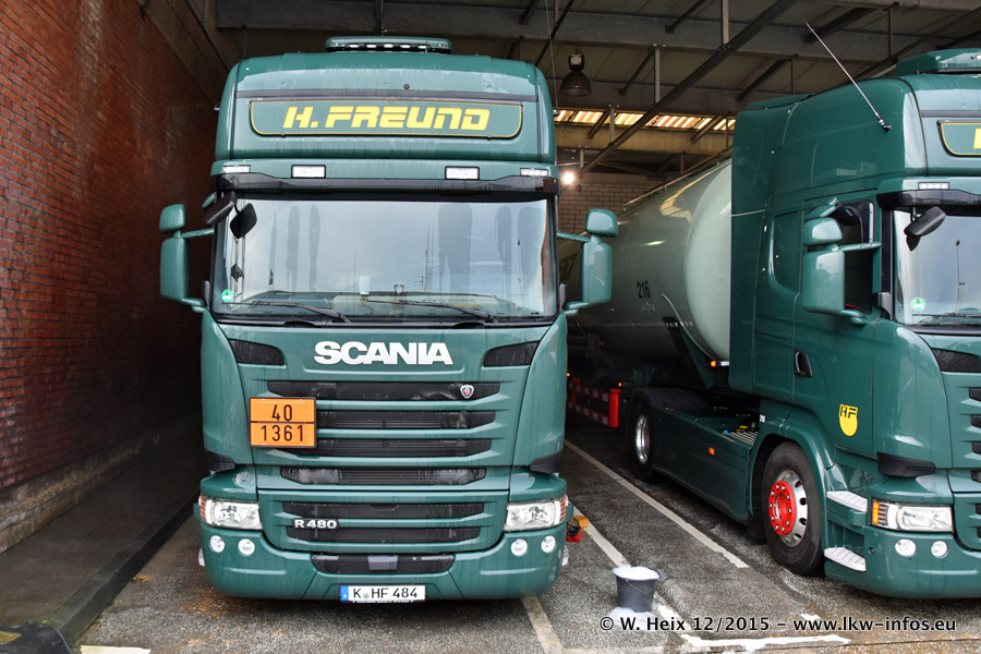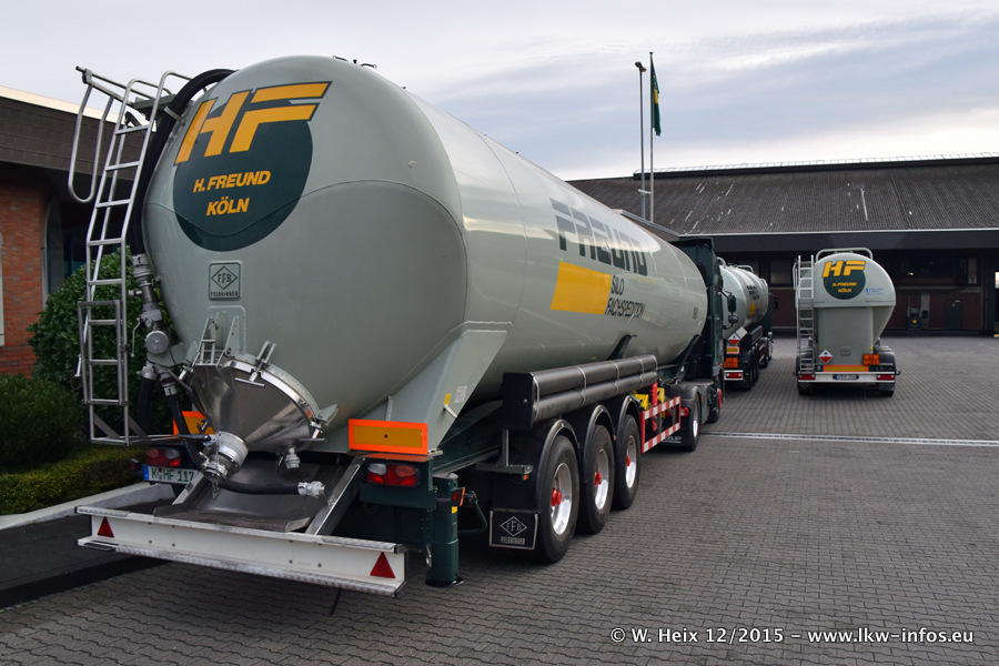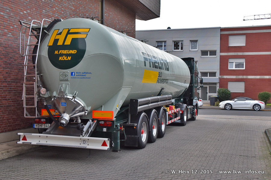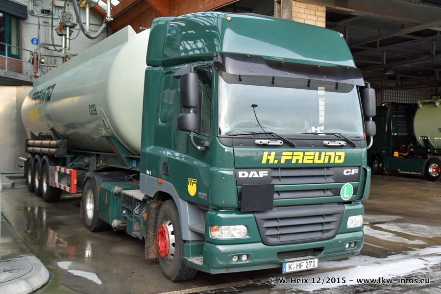 Ich war zum ersten Mal bei der Spedition H. Freund in Frechen zu Besuch. Der Fuhrpark besteht zur Zeit aus rund 160 LKW, die natürlich nie alle zusammen auf dem Firmengelände stehen, das würde der Platz auch nicht zulassen. Der größte Teil der Zugmaschinen ist von DAF, aber auch Scania ist stark vertreten. Dazu kommen noch LKW von Mercedes-Benz und Volvo. Die von mir fotografierten älteren Zugmaschinene (DAF CF 1, DAF 95 XF) sind nicht mehr im täglichen Einsatz, werden aber noch gebraucht, wenn ein Ersatzfahrzeug benötigt wird.