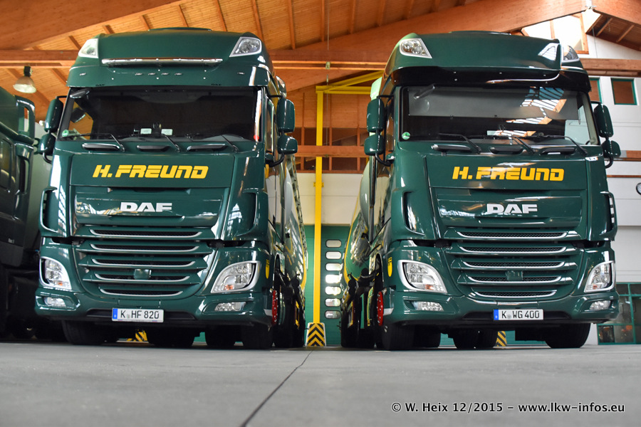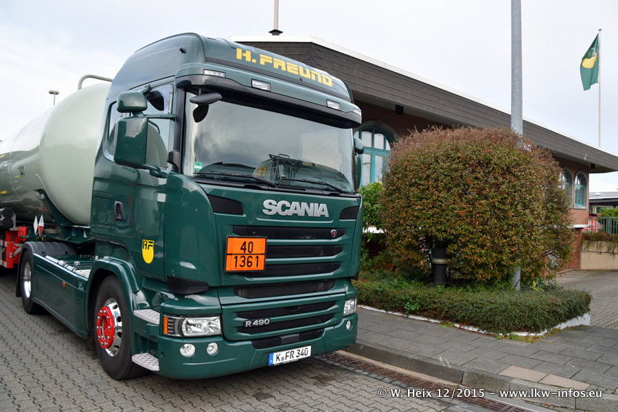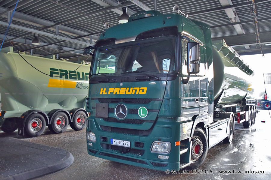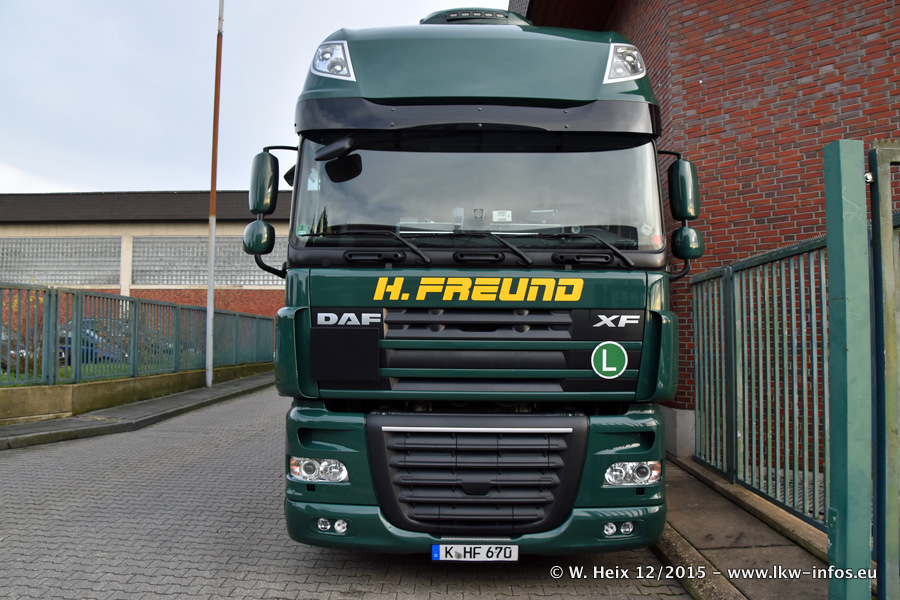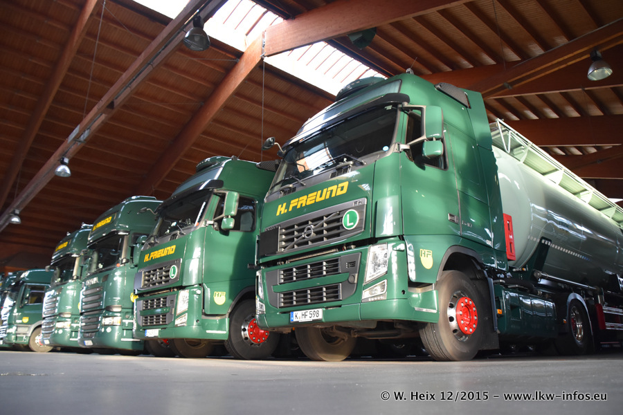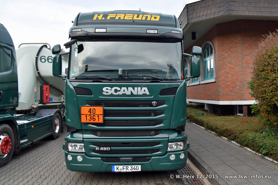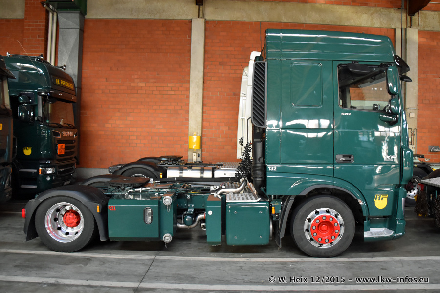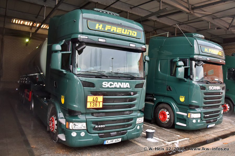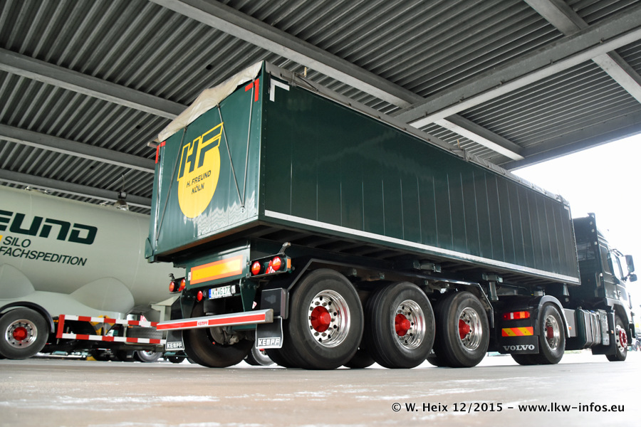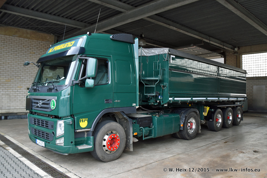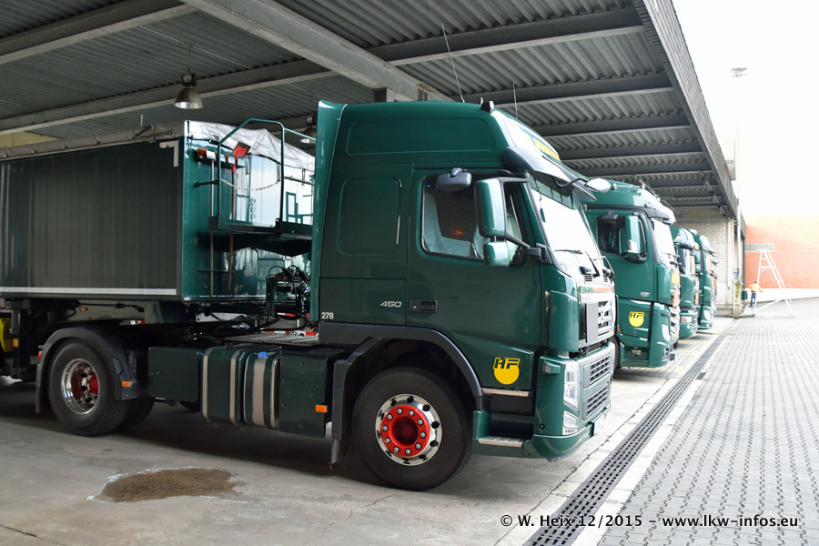 Ich war zum ersten Mal bei der Spedition H. Freund in Frechen zu Besuch. Der Fuhrpark besteht zur Zeit aus rund 160 LKW, die natürlich nie alle zusammen auf dem Firmengelände stehen, das würde der Platz auch nicht zulassen. Der größte Teil der Zugmaschinen ist von DAF, aber auch Scania ist stark vertreten. Dazu kommen noch LKW von Mercedes-Benz und Volvo. Die von mir fotografierten älteren Zugmaschinene (DAF CF 1, DAF 95 XF) sind nicht mehr im täglichen Einsatz, werden aber noch gebraucht, wenn ein Ersatzfahrzeug benötigt wird.