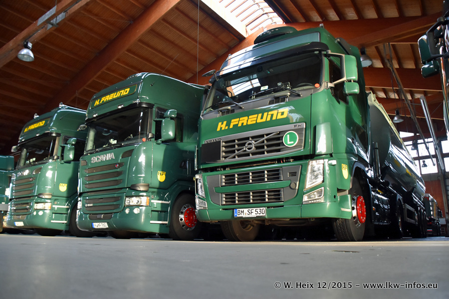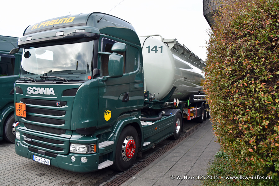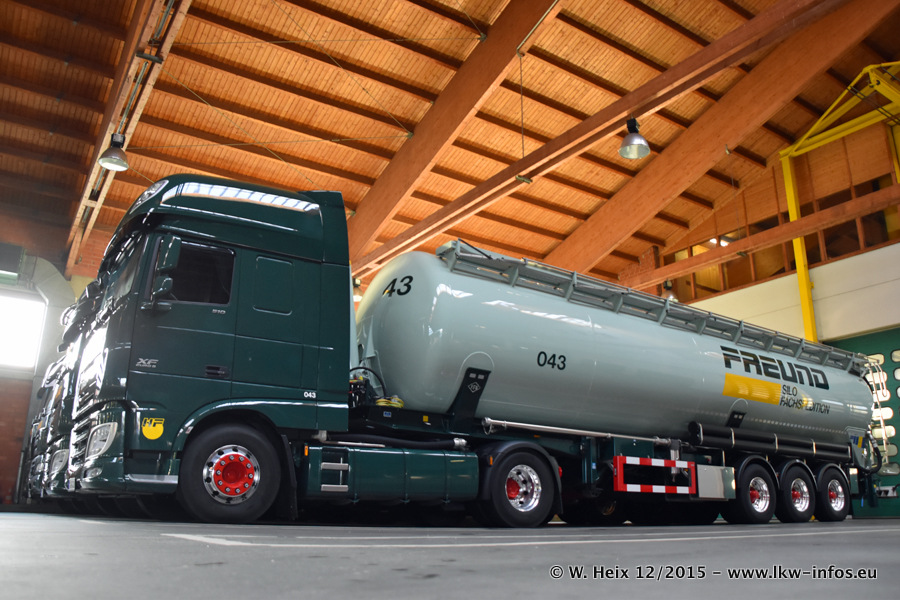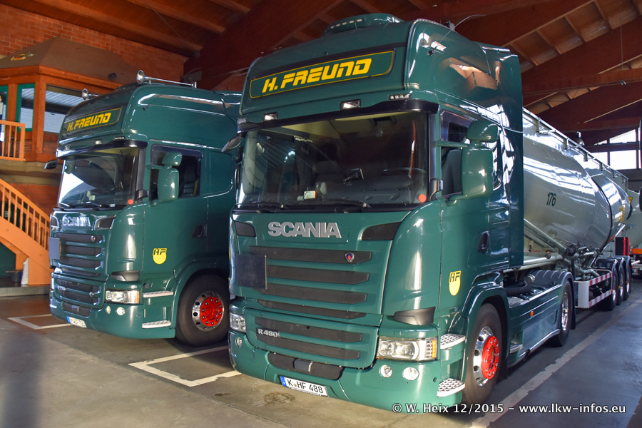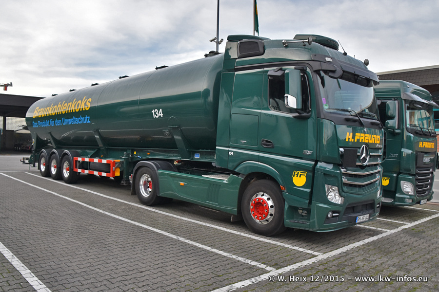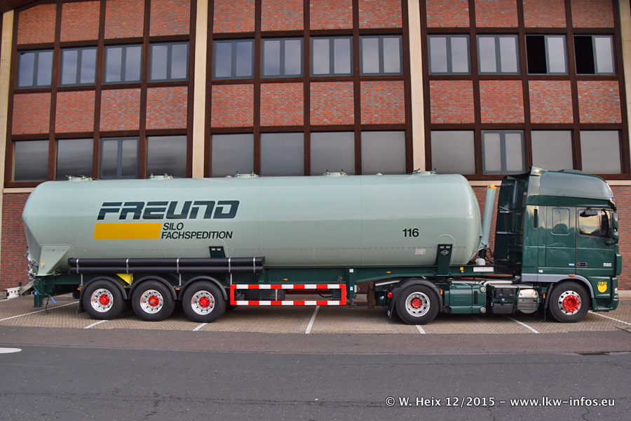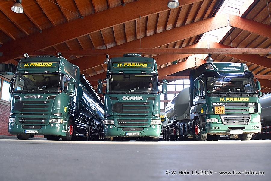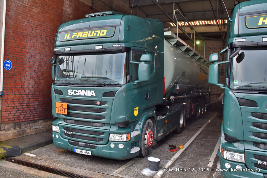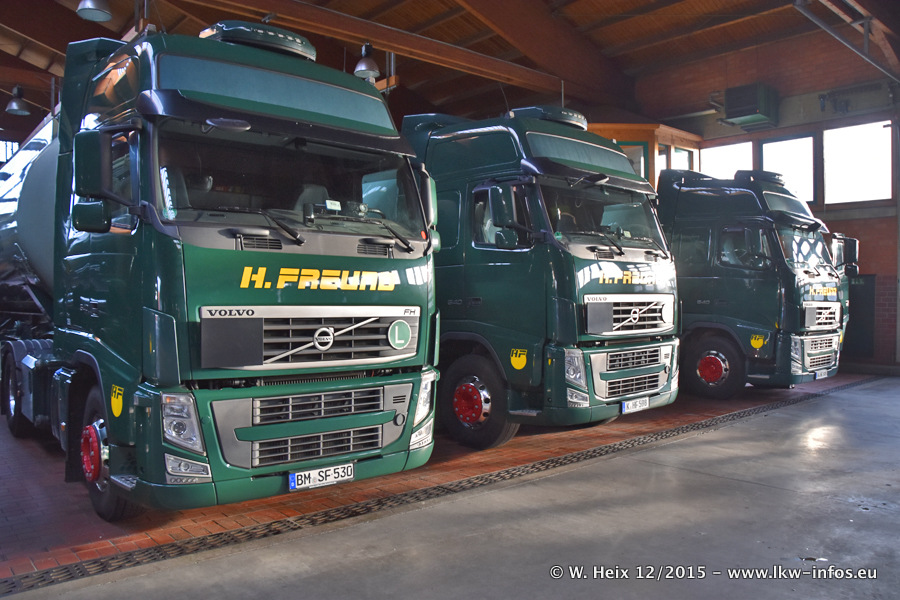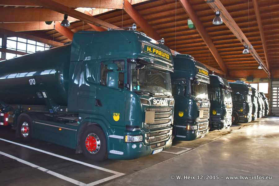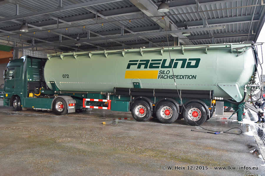 Ich war zum ersten Mal bei der Spedition H. Freund in Frechen zu Besuch. Der Fuhrpark besteht zur Zeit aus rund 160 LKW, die natürlich nie alle zusammen auf dem Firmengelände stehen, das würde der Platz auch nicht zulassen. Der größte Teil der Zugmaschinen ist von DAF, aber auch Scania ist stark vertreten. Dazu kommen noch LKW von Mercedes-Benz und Volvo. Die von mir fotografierten älteren Zugmaschinene (DAF CF 1, DAF 95 XF) sind nicht mehr im täglichen Einsatz, werden aber noch gebraucht, wenn ein Ersatzfahrzeug benötigt wird.
