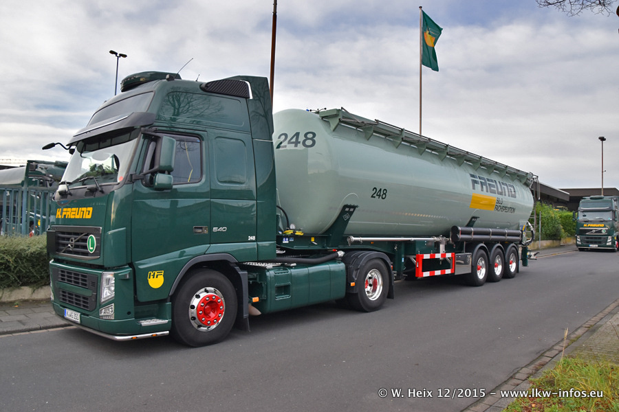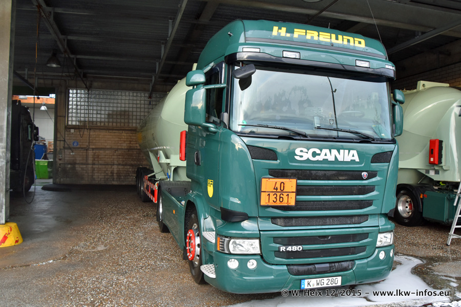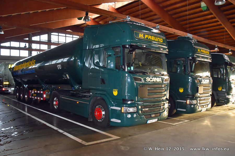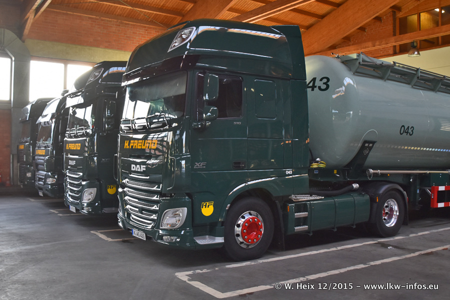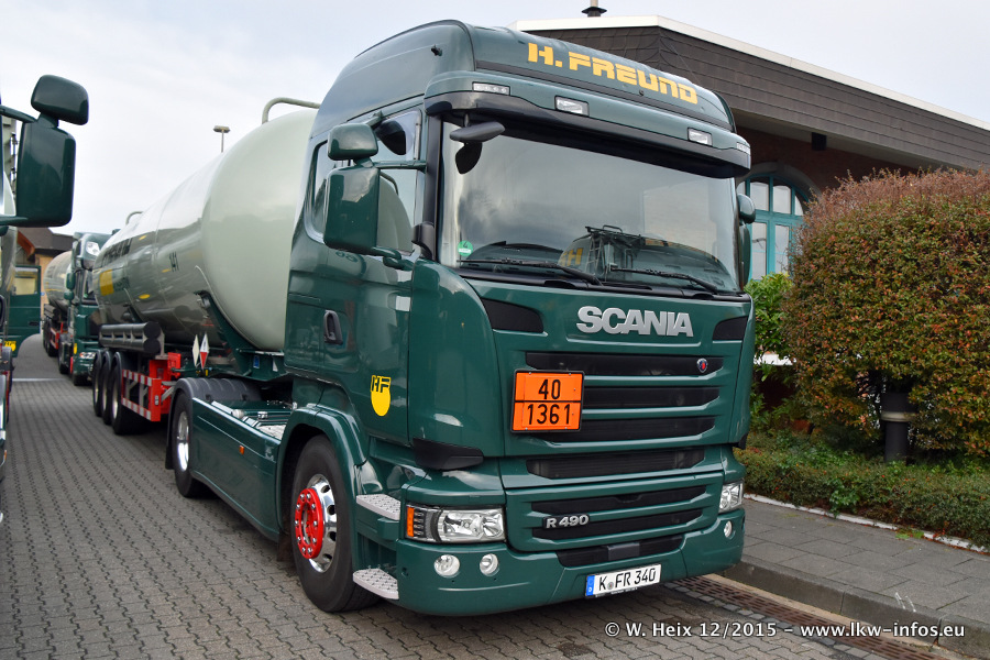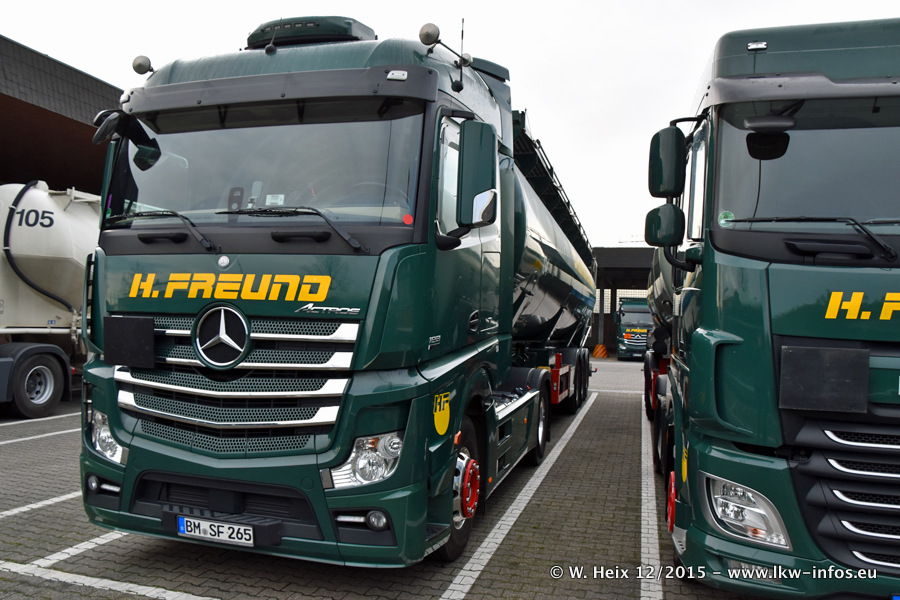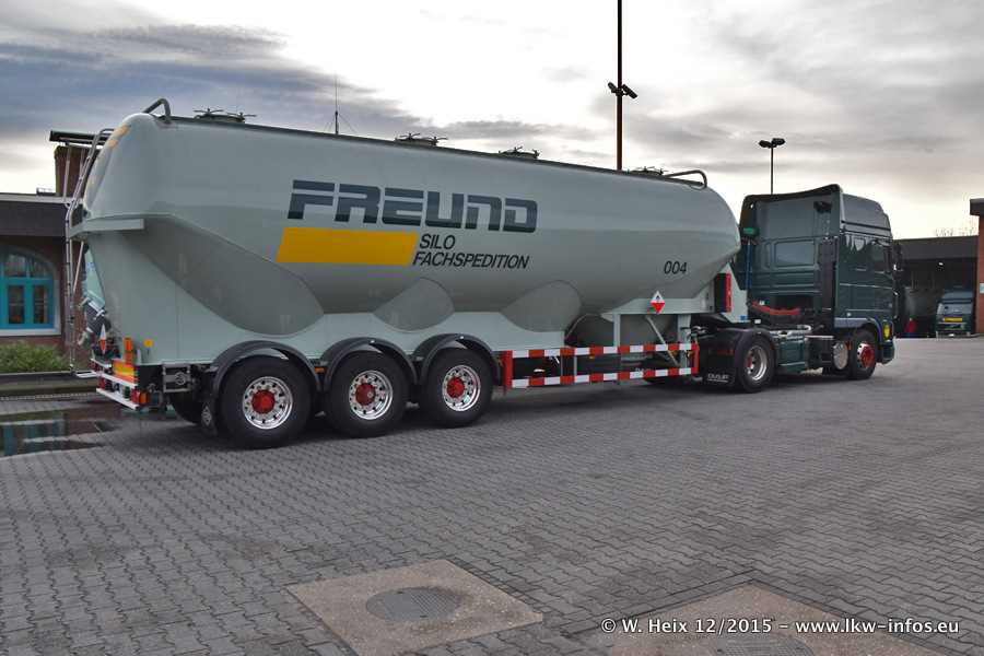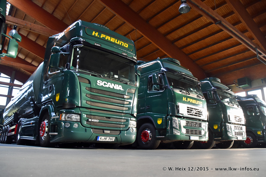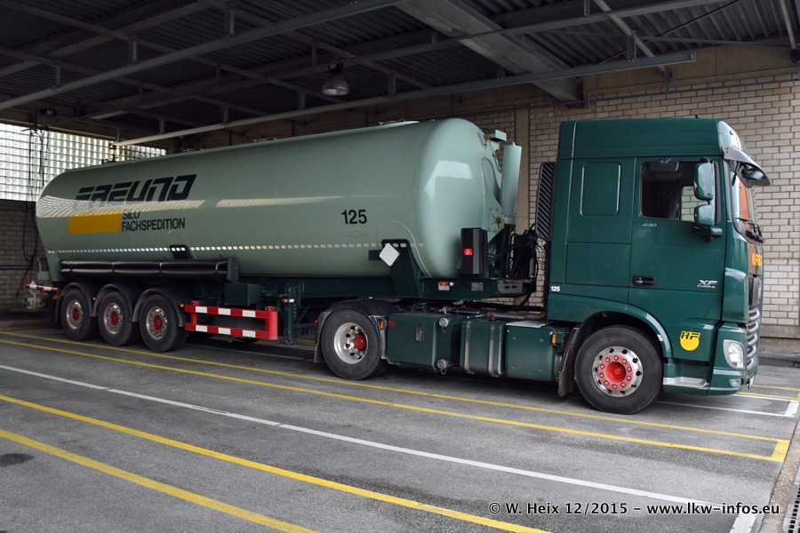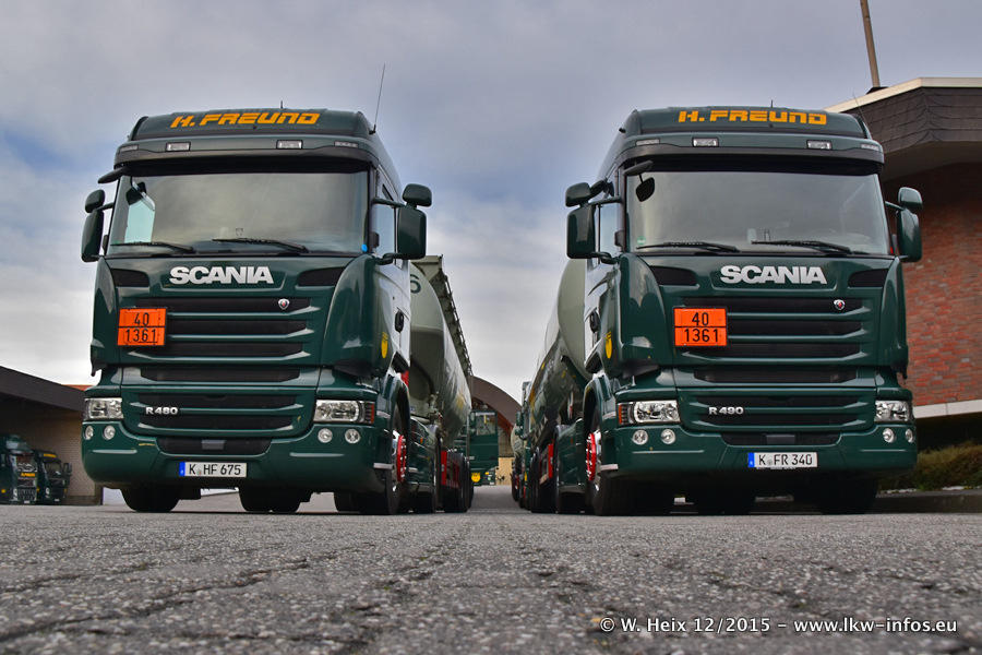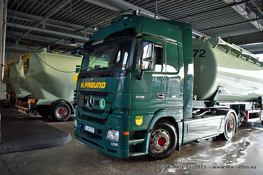 Ich war zum ersten Mal bei der Spedition H. Freund in Frechen zu Besuch. Der Fuhrpark besteht zur Zeit aus rund 160 LKW, die natürlich nie alle zusammen auf dem Firmengelände stehen, das würde der Platz auch nicht zulassen. Der größte Teil der Zugmaschinen ist von DAF, aber auch Scania ist stark vertreten. Dazu kommen noch LKW von Mercedes-Benz und Volvo. Die von mir fotografierten älteren Zugmaschinene (DAF CF 1, DAF 95 XF) sind nicht mehr im täglichen Einsatz, werden aber noch gebraucht, wenn ein Ersatzfahrzeug benötigt wird.