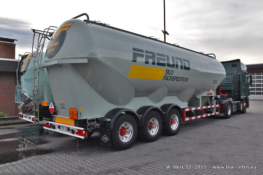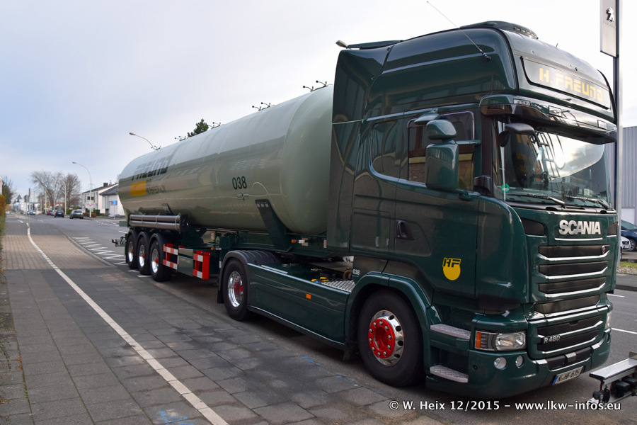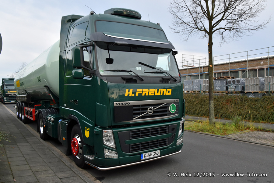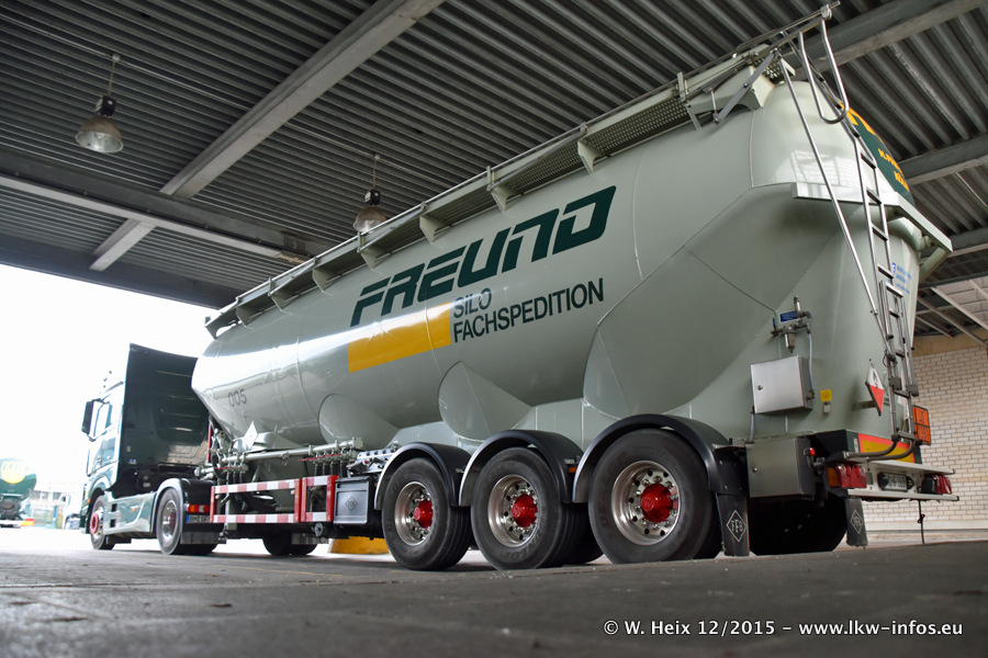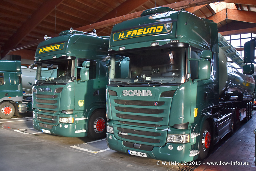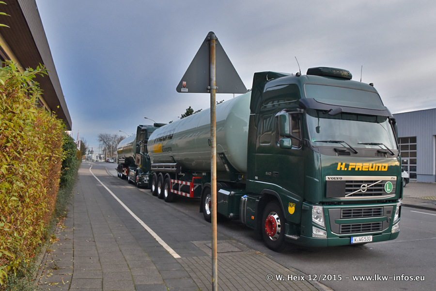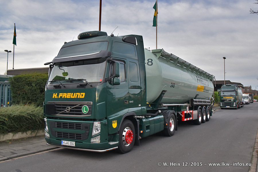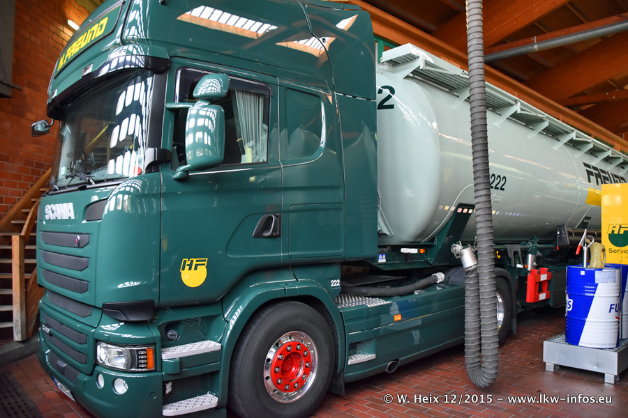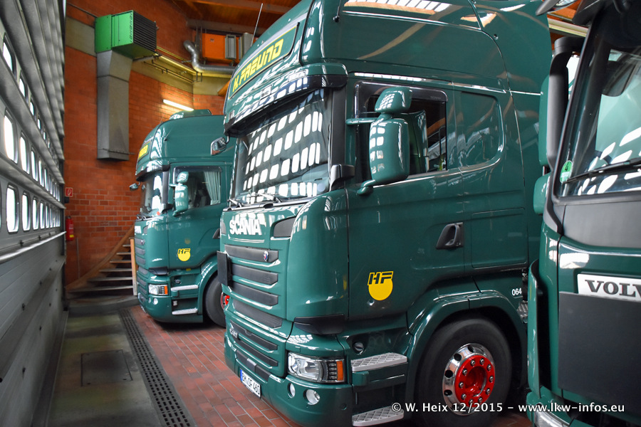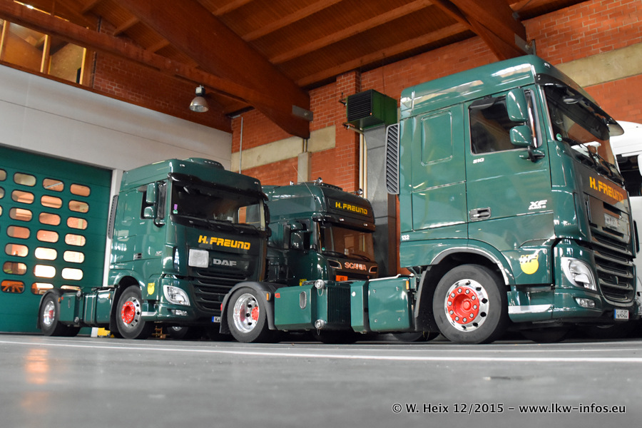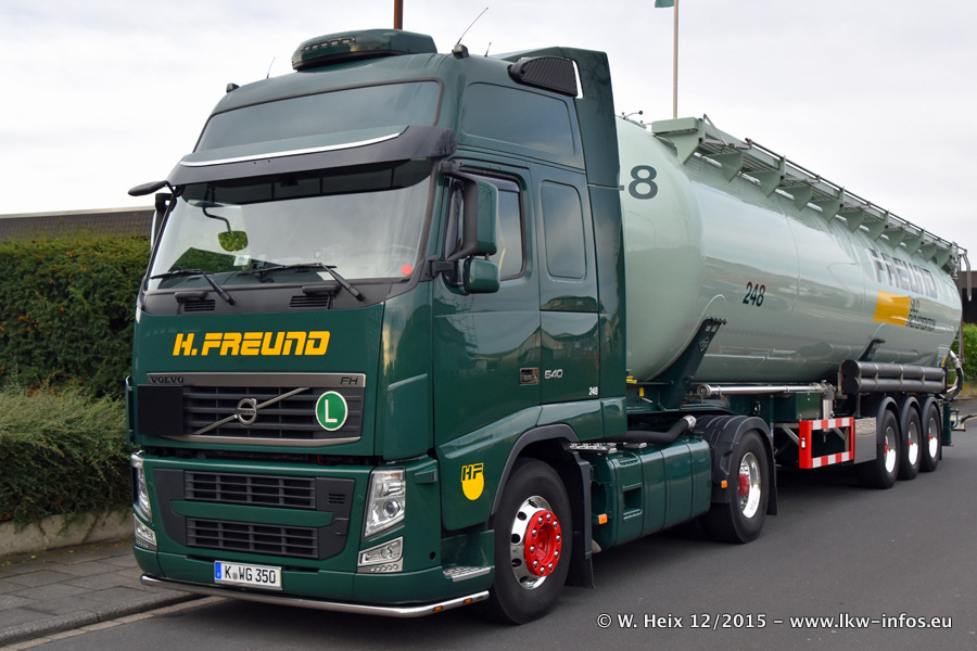 Ich war zum ersten Mal bei der Spedition H. Freund in Frechen zu Besuch. Der Fuhrpark besteht zur Zeit aus rund 160 LKW, die natürlich nie alle zusammen auf dem Firmengelände stehen, das würde der Platz auch nicht zulassen. Der größte Teil der Zugmaschinen ist von DAF, aber auch Scania ist stark vertreten. Dazu kommen noch LKW von Mercedes-Benz und Volvo. Die von mir fotografierten älteren Zugmaschinene (DAF CF 1, DAF 95 XF) sind nicht mehr im täglichen Einsatz, werden aber noch gebraucht, wenn ein Ersatzfahrzeug benötigt wird.
