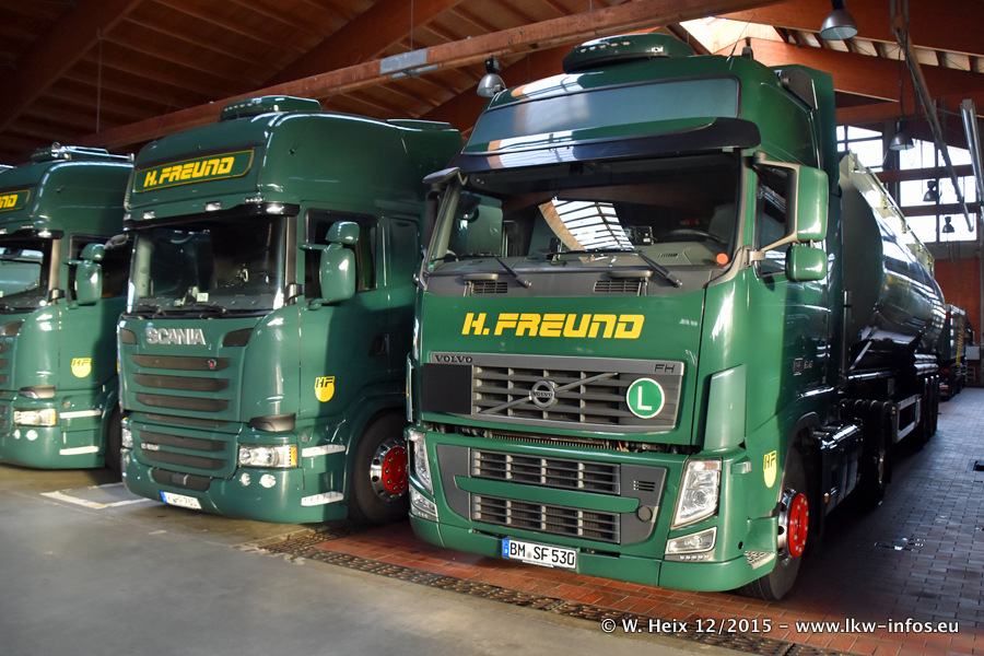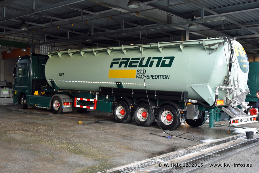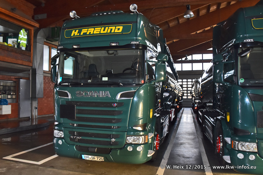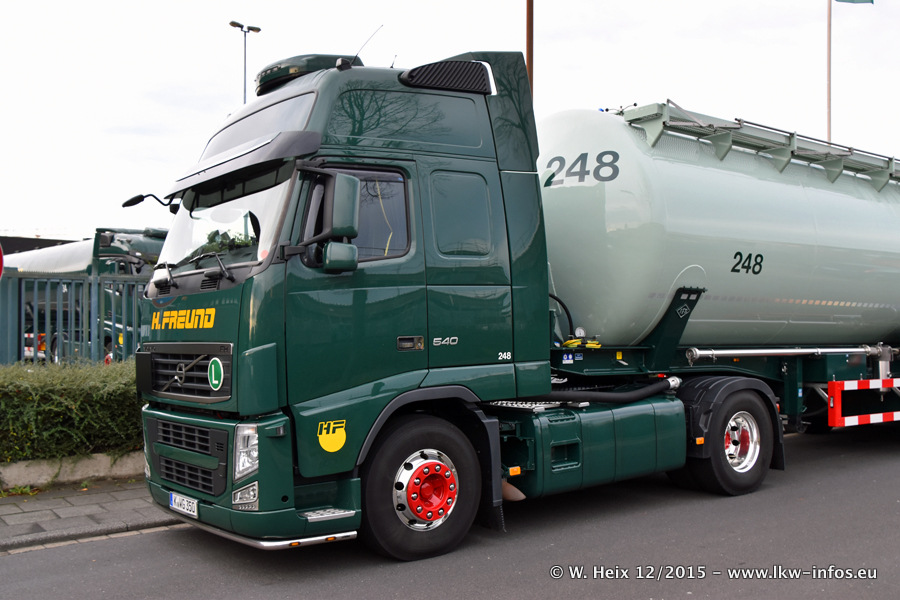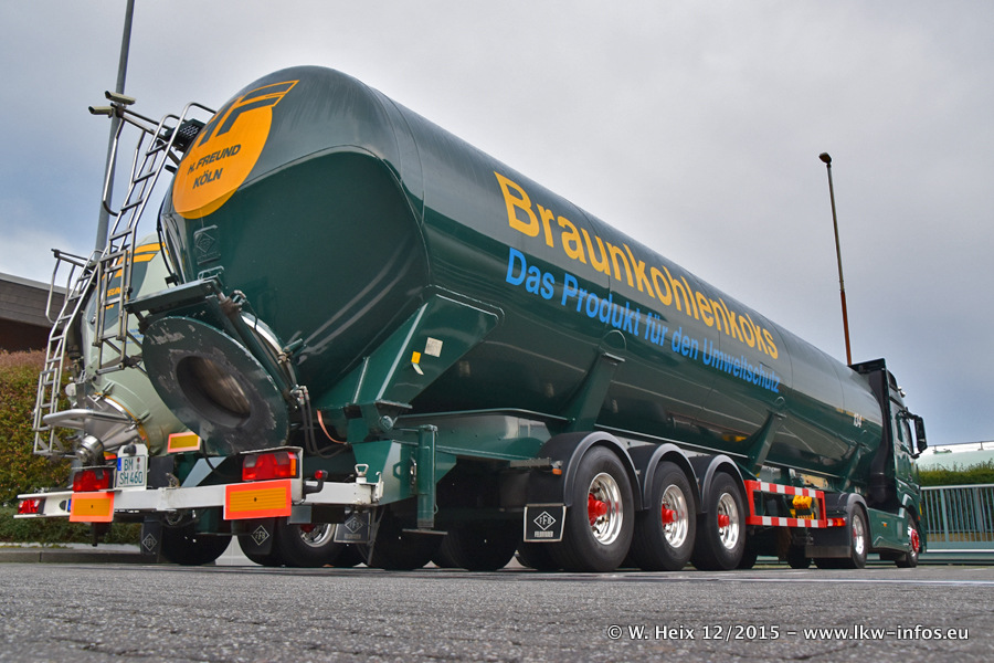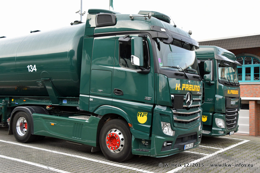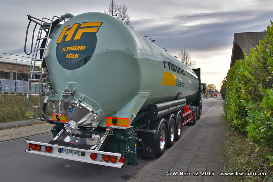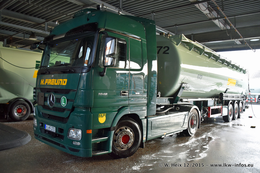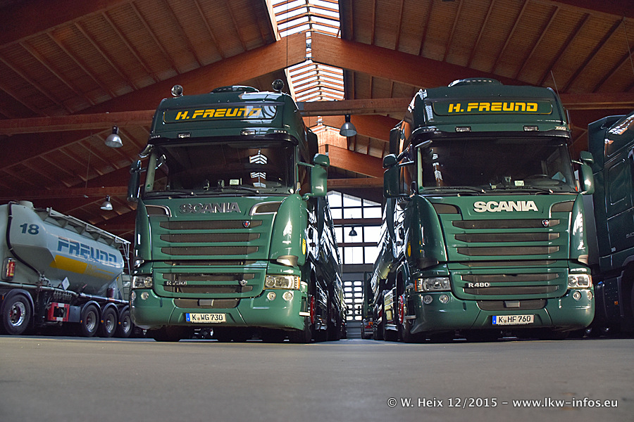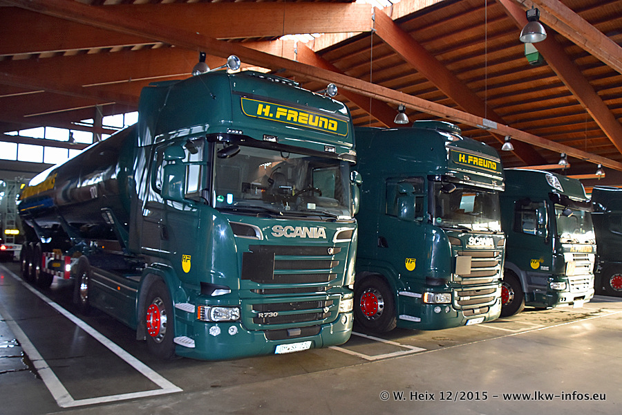 Ich war zum ersten Mal bei der Spedition H. Freund in Frechen zu Besuch. Der Fuhrpark besteht zur Zeit aus rund 160 LKW, die natürlich nie alle zusammen auf dem Firmengelände stehen, das würde der Platz auch nicht zulassen. Der größte Teil der Zugmaschinen ist von DAF, aber auch Scania ist stark vertreten. Dazu kommen noch LKW von Mercedes-Benz und Volvo. Die von mir fotografierten älteren Zugmaschinene (DAF CF 1, DAF 95 XF) sind nicht mehr im täglichen Einsatz, werden aber noch gebraucht, wenn ein Ersatzfahrzeug benötigt wird.