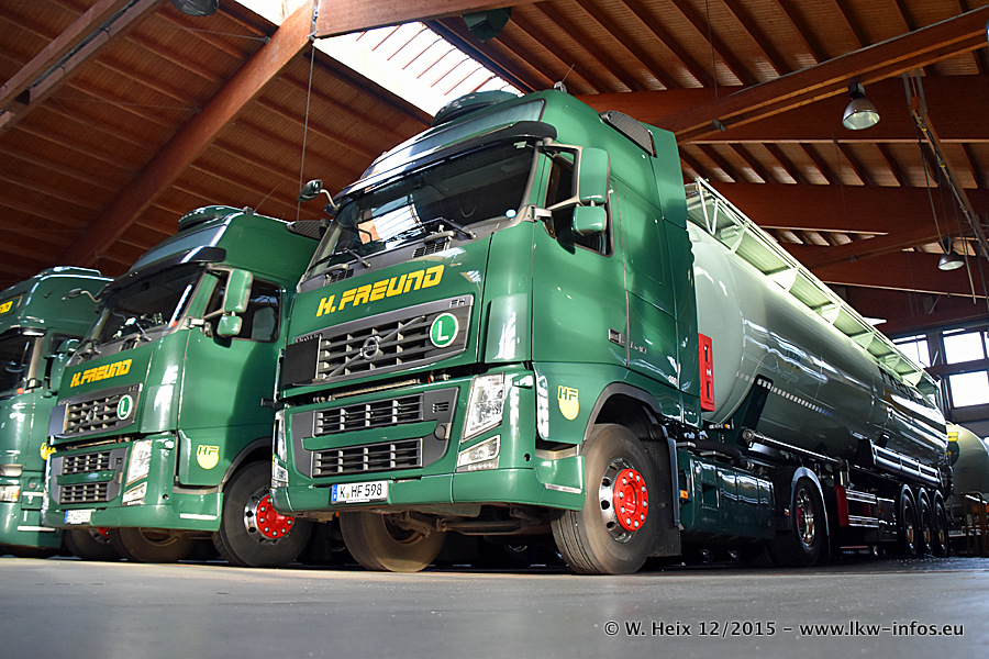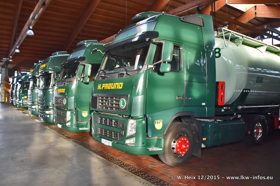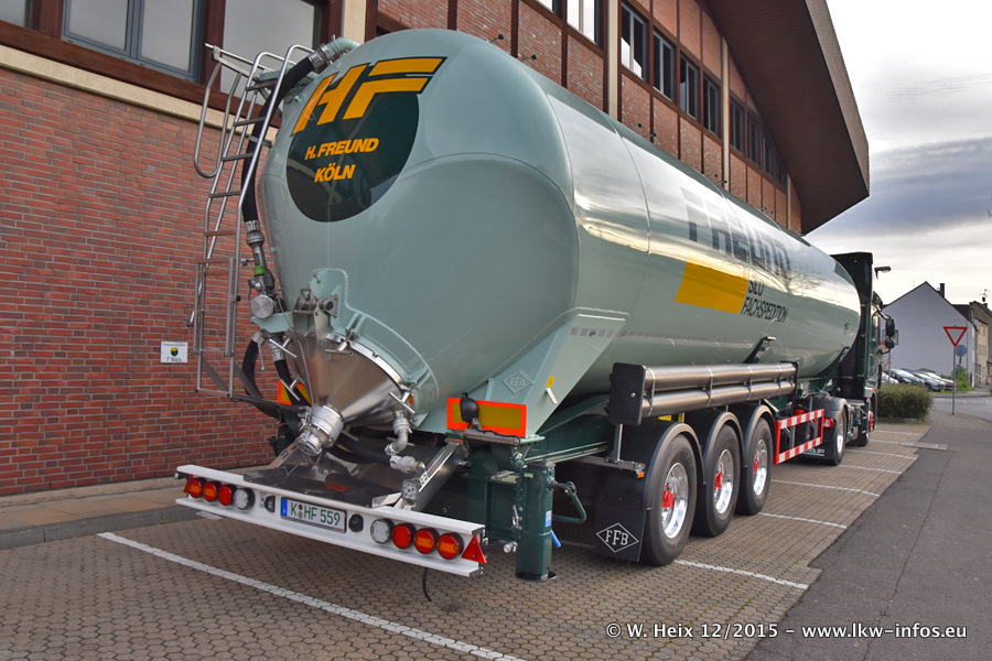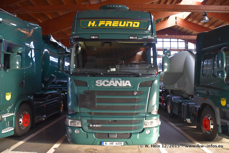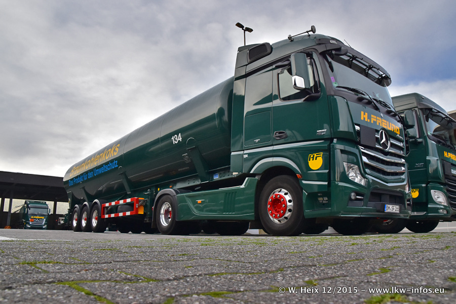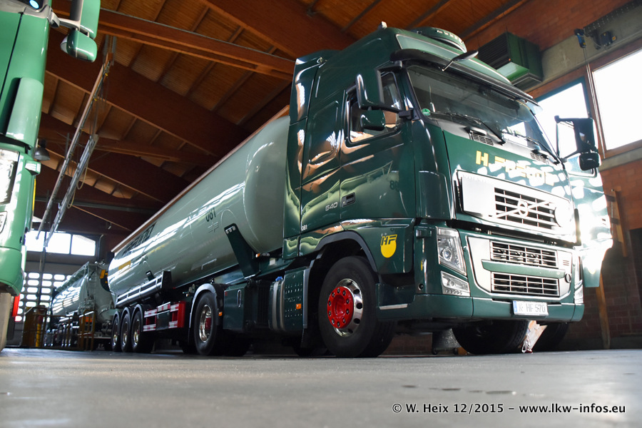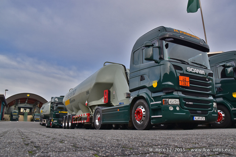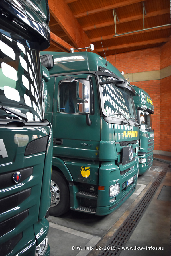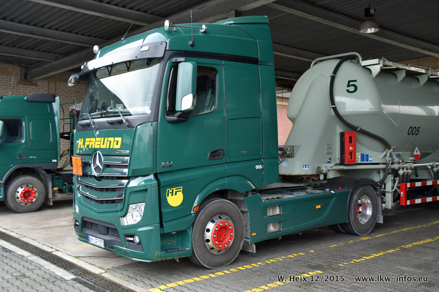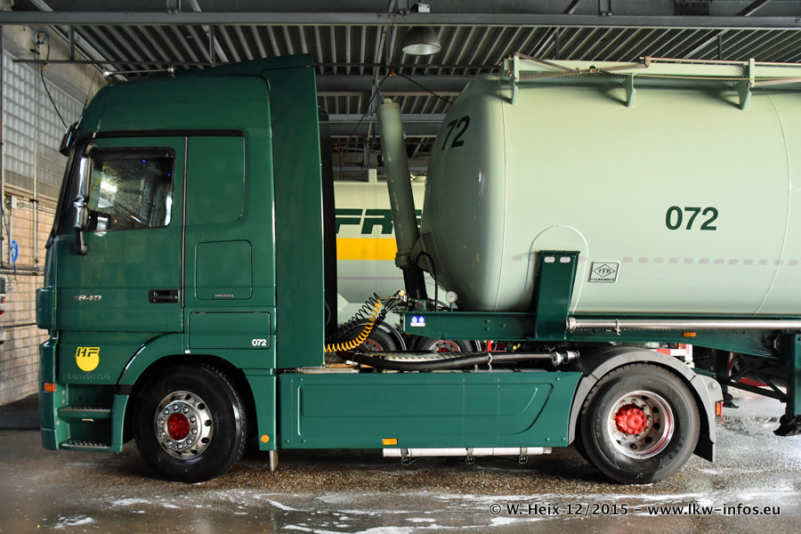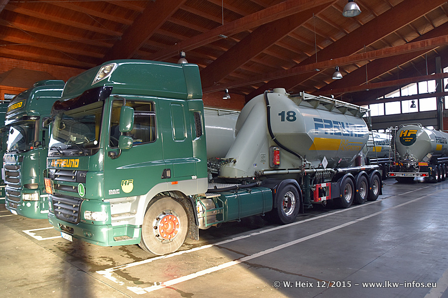 Ich war zum ersten Mal bei der Spedition H. Freund in Frechen zu Besuch. Der Fuhrpark besteht zur Zeit aus rund 160 LKW, die natürlich nie alle zusammen auf dem Firmengelände stehen, das würde der Platz auch nicht zulassen. Der größte Teil der Zugmaschinen ist von DAF, aber auch Scania ist stark vertreten. Dazu kommen noch LKW von Mercedes-Benz und Volvo. Die von mir fotografierten älteren Zugmaschinene (DAF CF 1, DAF 95 XF) sind nicht mehr im täglichen Einsatz, werden aber noch gebraucht, wenn ein Ersatzfahrzeug benötigt wird.
