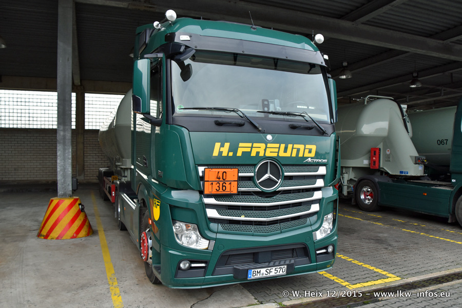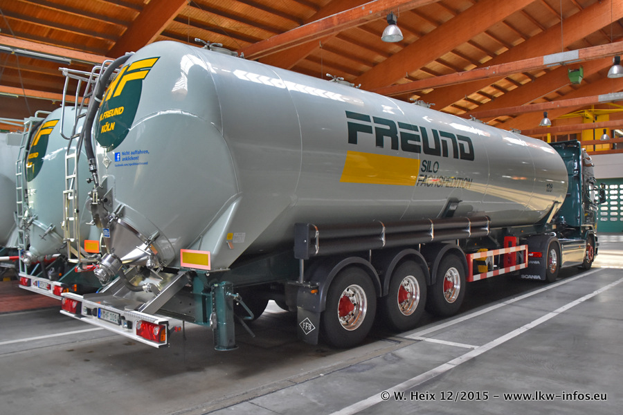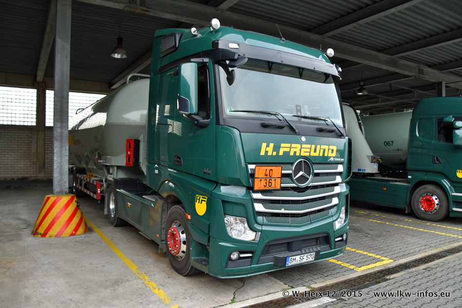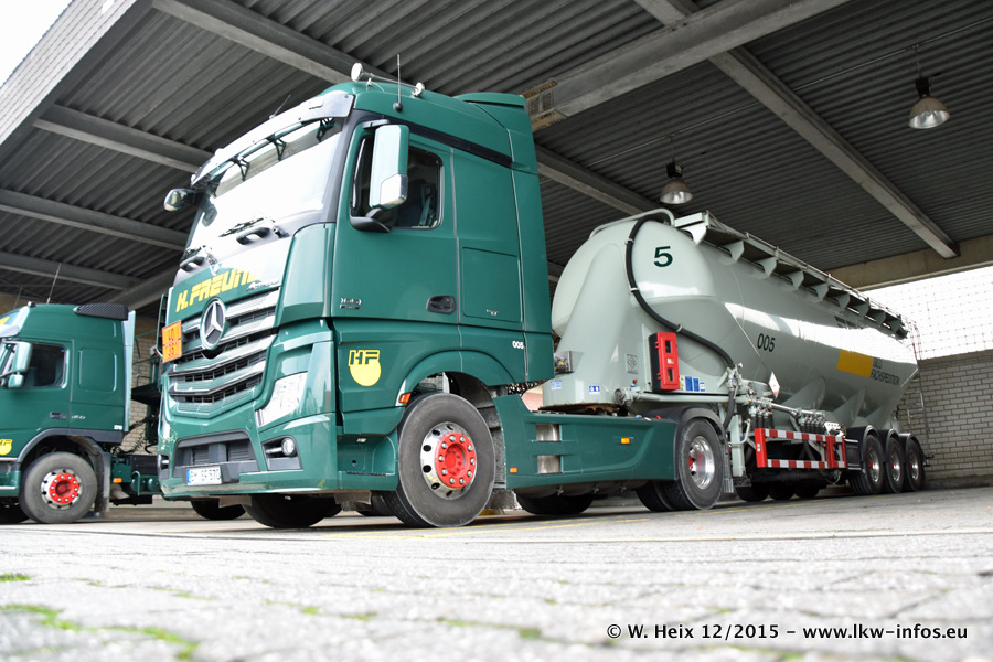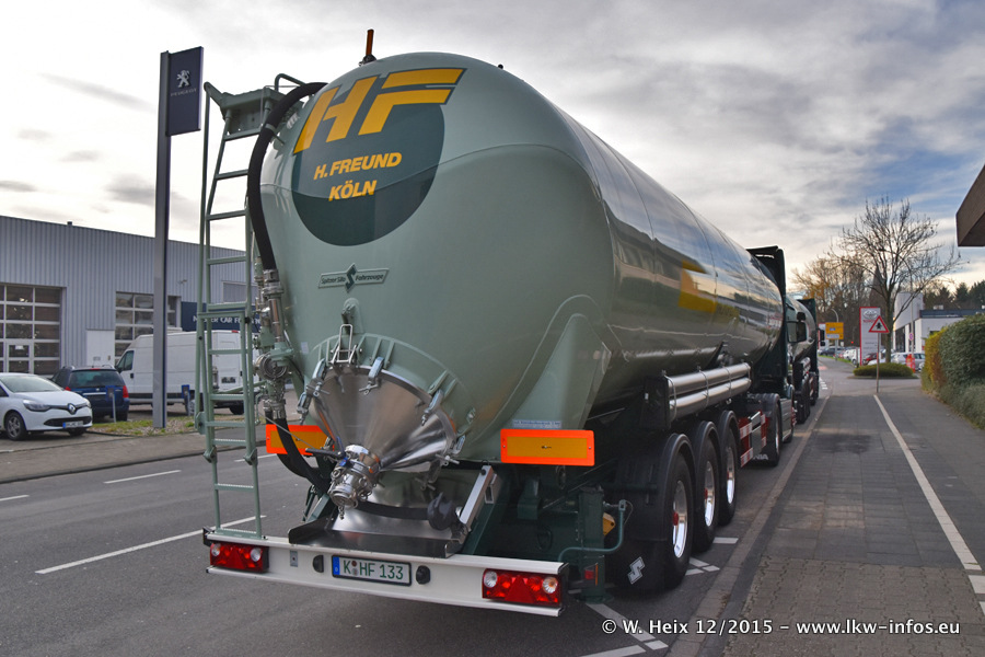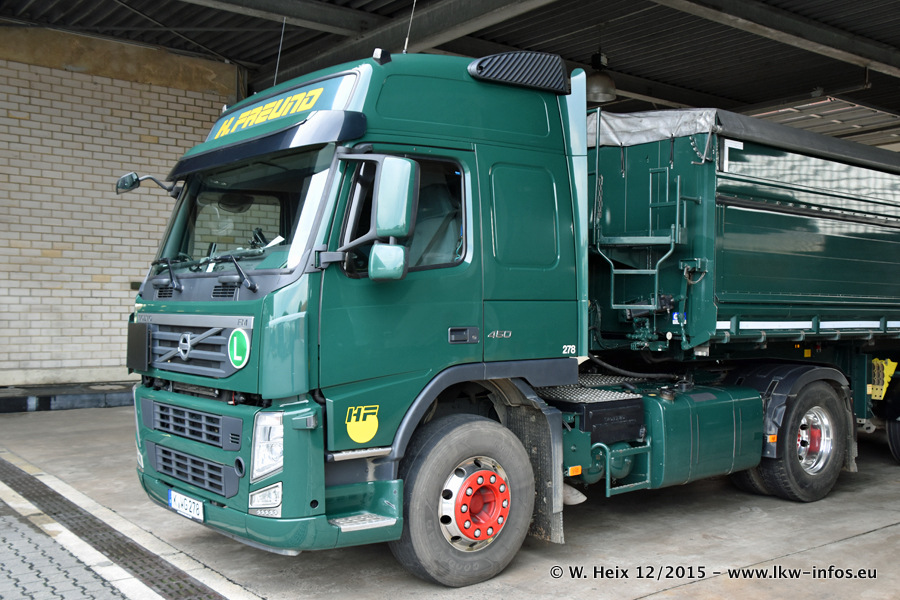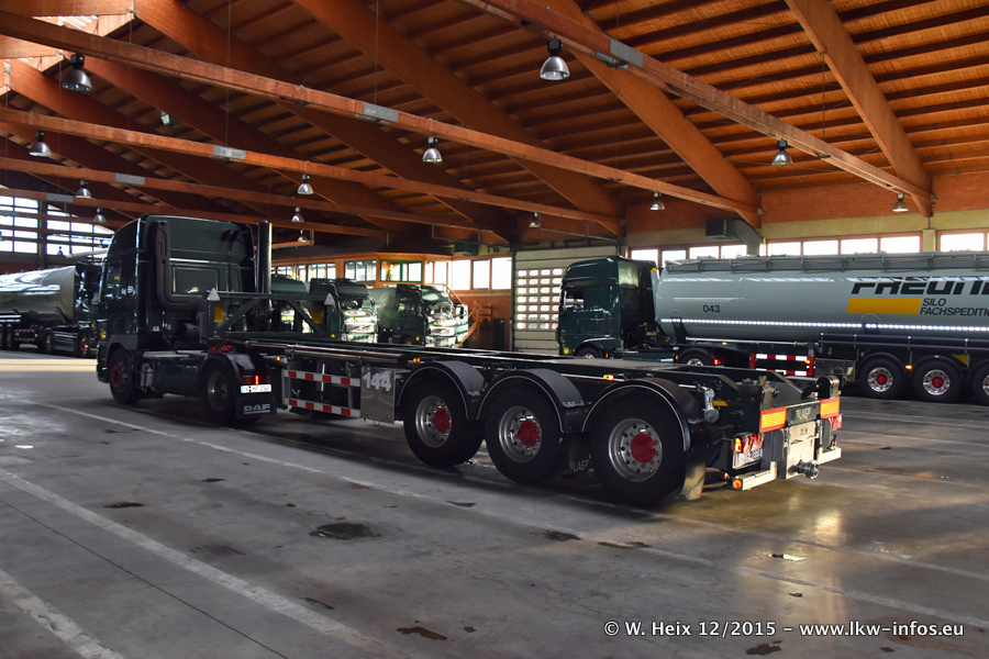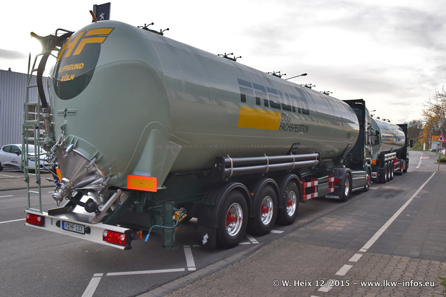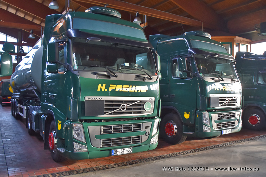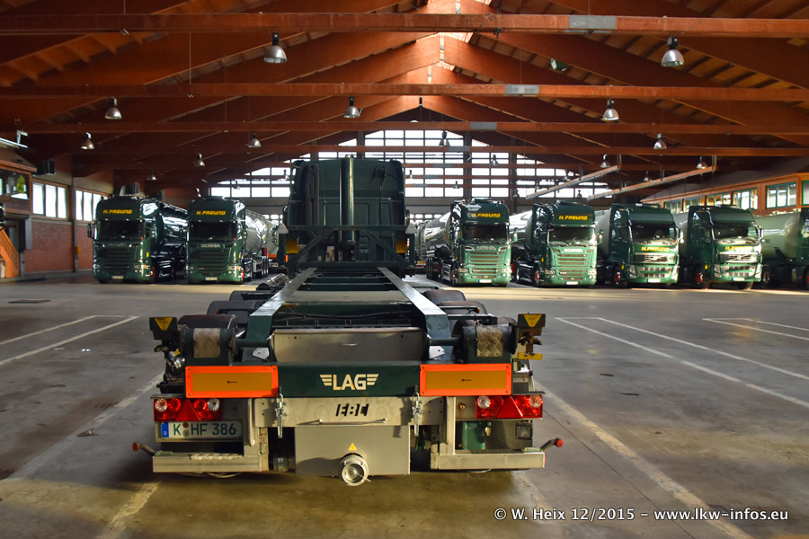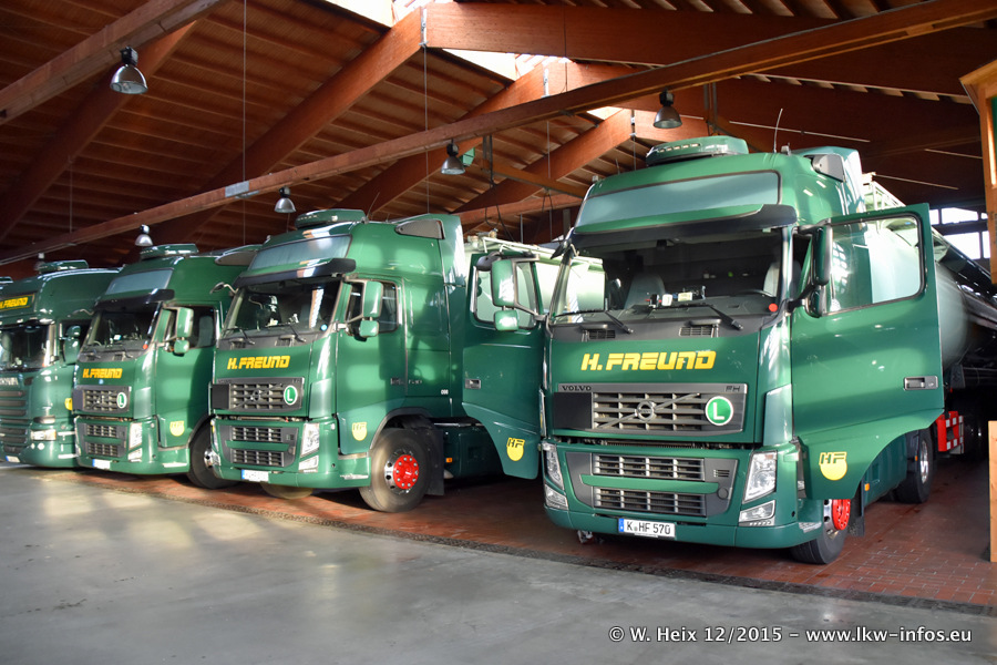 Ich war zum ersten Mal bei der Spedition H. Freund in Frechen zu Besuch. Der Fuhrpark besteht zur Zeit aus rund 160 LKW, die natürlich nie alle zusammen auf dem Firmengelände stehen, das würde der Platz auch nicht zulassen. Der größte Teil der Zugmaschinen ist von DAF, aber auch Scania ist stark vertreten. Dazu kommen noch LKW von Mercedes-Benz und Volvo. Die von mir fotografierten älteren Zugmaschinene (DAF CF 1, DAF 95 XF) sind nicht mehr im täglichen Einsatz, werden aber noch gebraucht, wenn ein Ersatzfahrzeug benötigt wird.