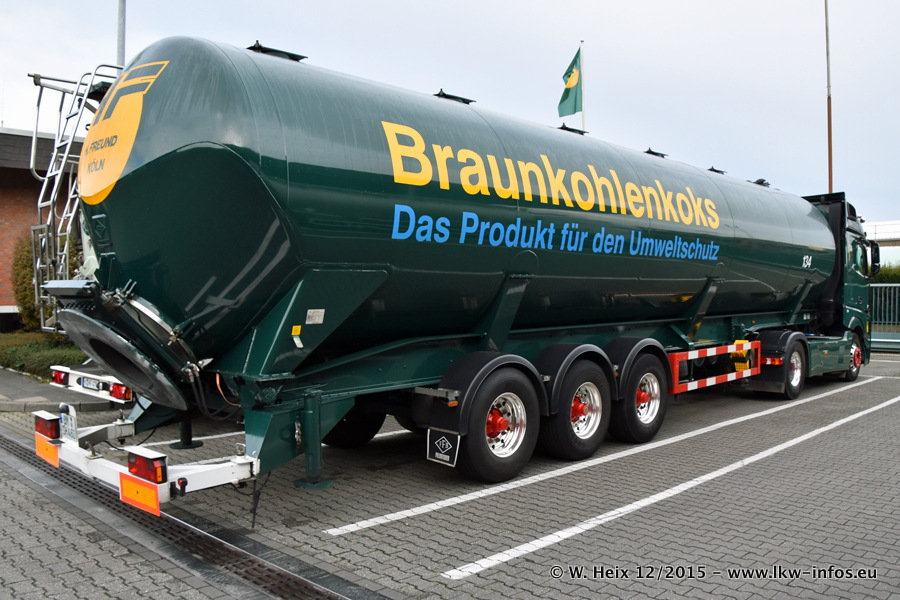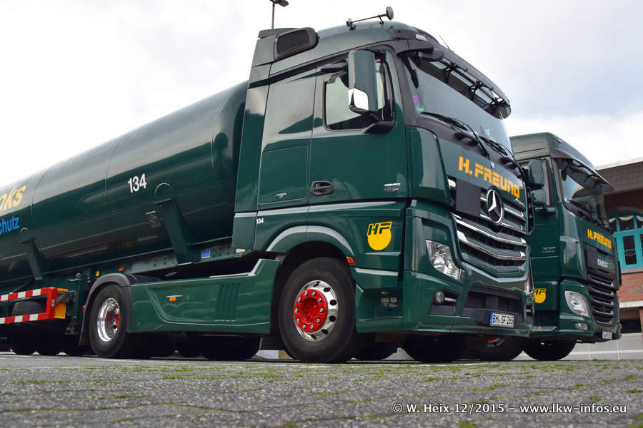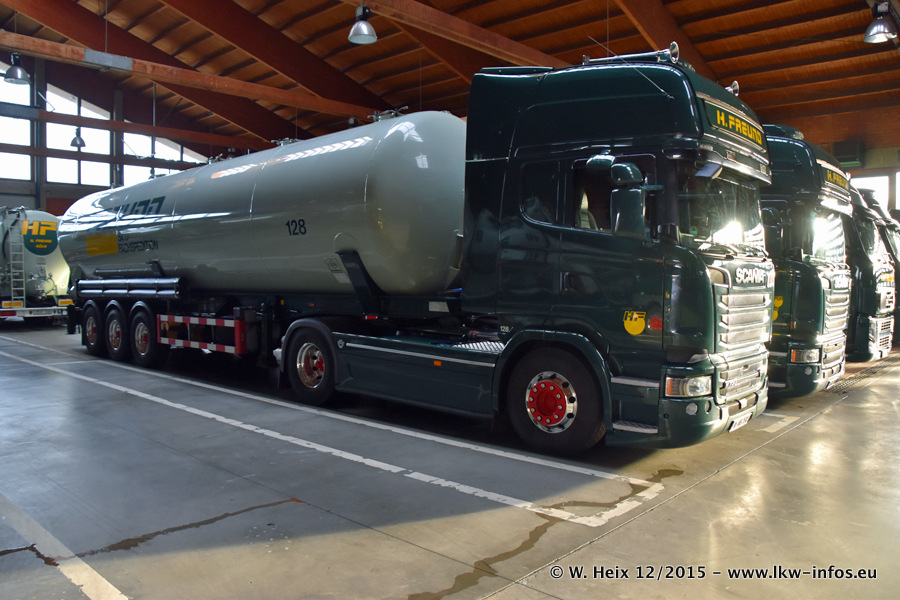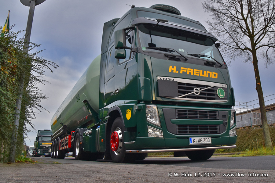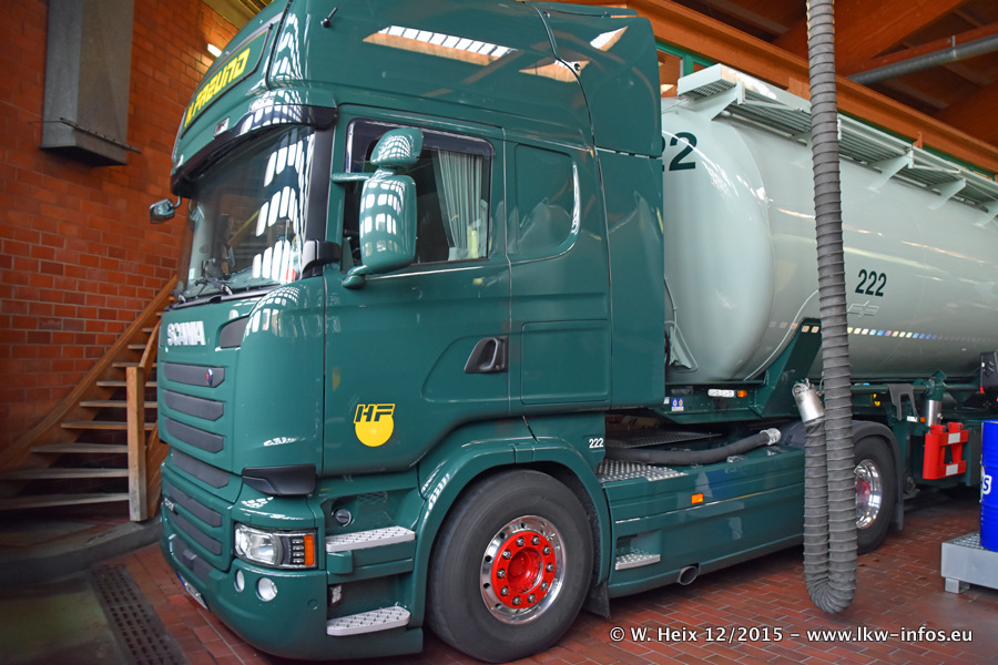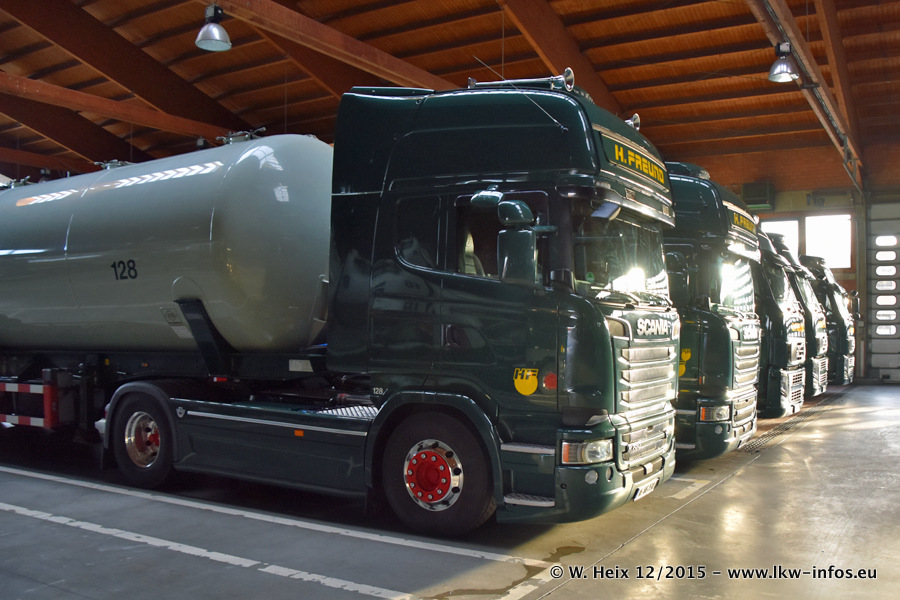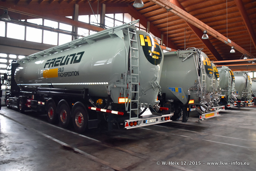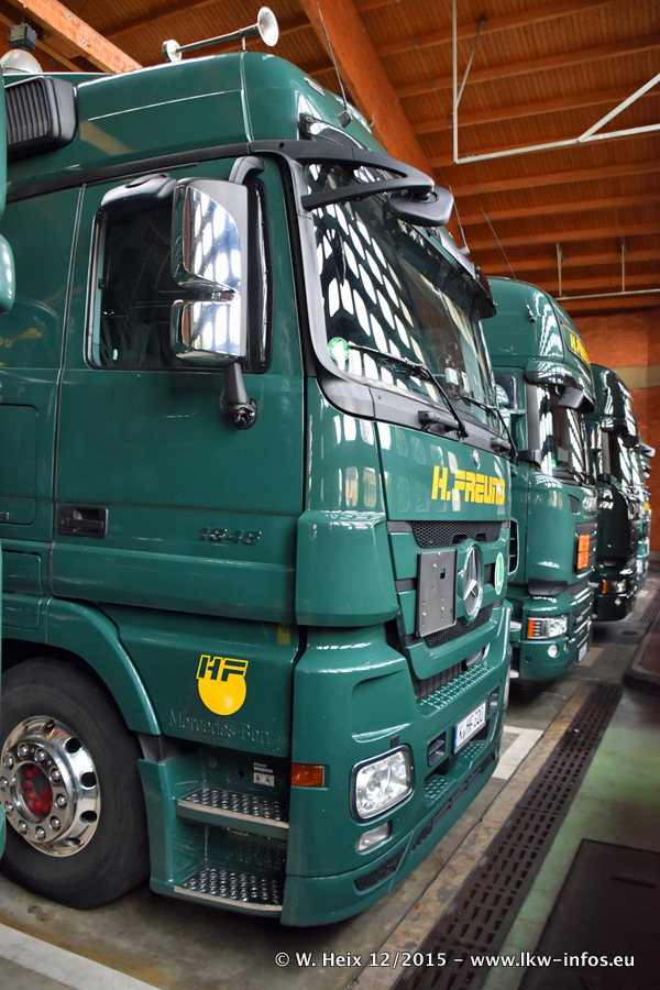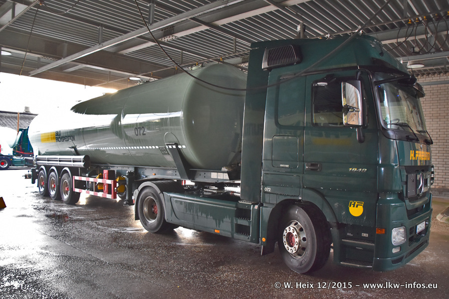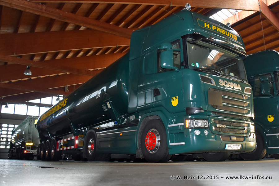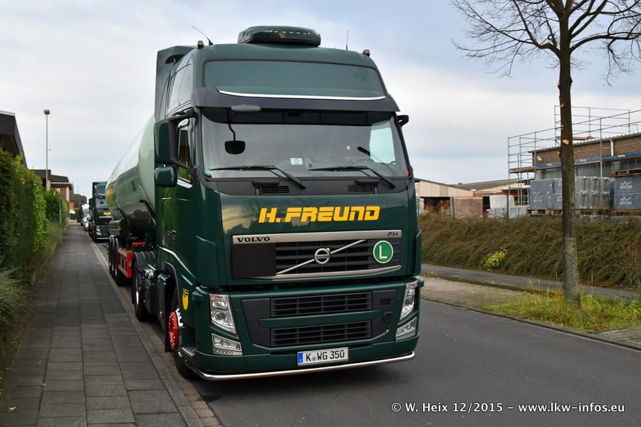 Ich war zum ersten Mal bei der Spedition H. Freund in Frechen zu Besuch. Der Fuhrpark besteht zur Zeit aus rund 160 LKW, die natürlich nie alle zusammen auf dem Firmengelände stehen, das würde der Platz auch nicht zulassen. Der größte Teil der Zugmaschinen ist von DAF, aber auch Scania ist stark vertreten. Dazu kommen noch LKW von Mercedes-Benz und Volvo. Die von mir fotografierten älteren Zugmaschinene (DAF CF 1, DAF 95 XF) sind nicht mehr im täglichen Einsatz, werden aber noch gebraucht, wenn ein Ersatzfahrzeug benötigt wird.