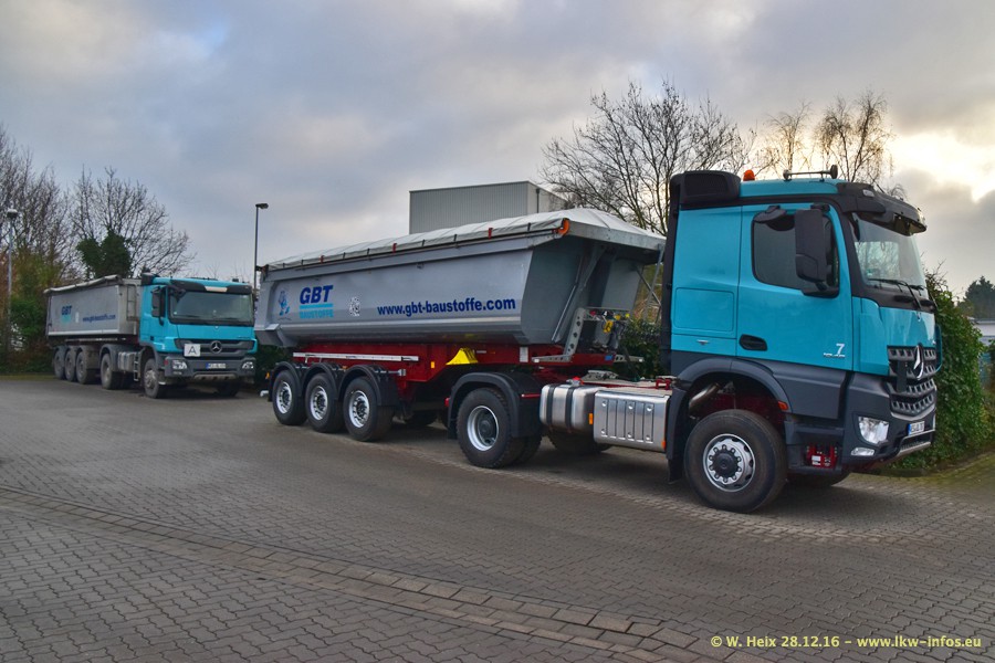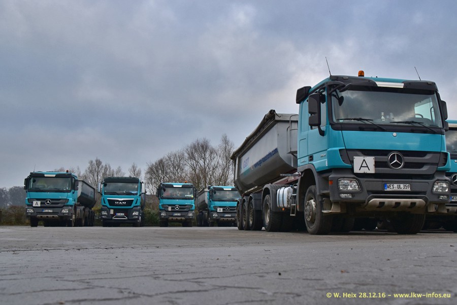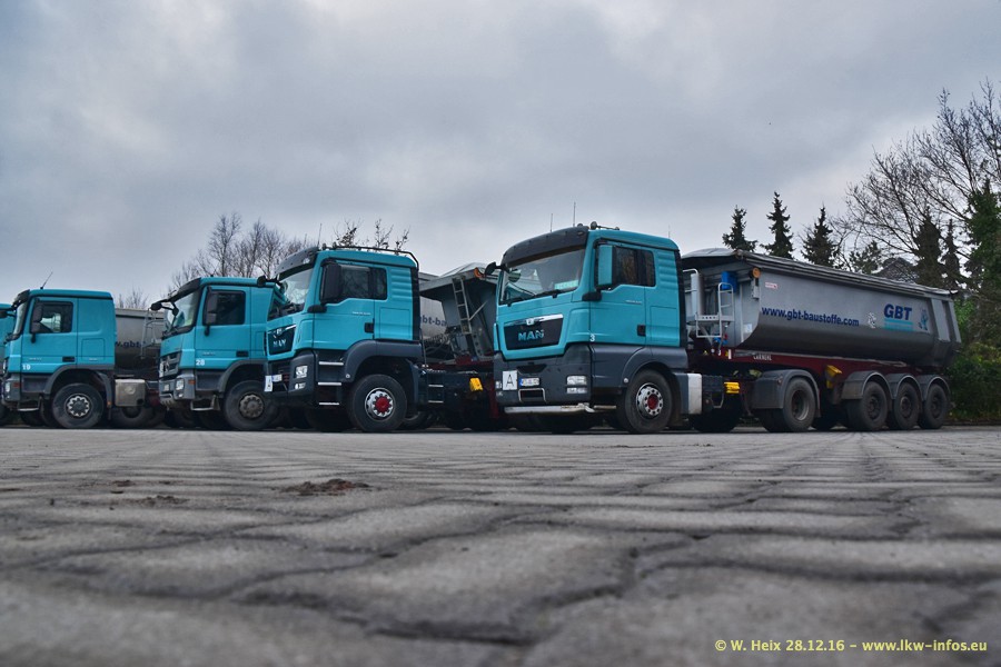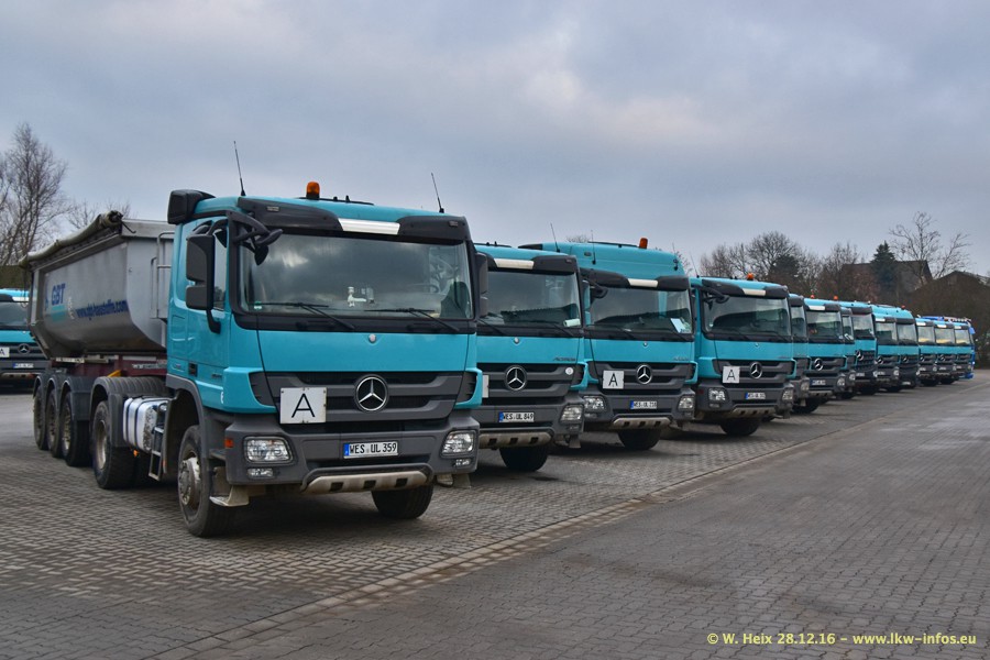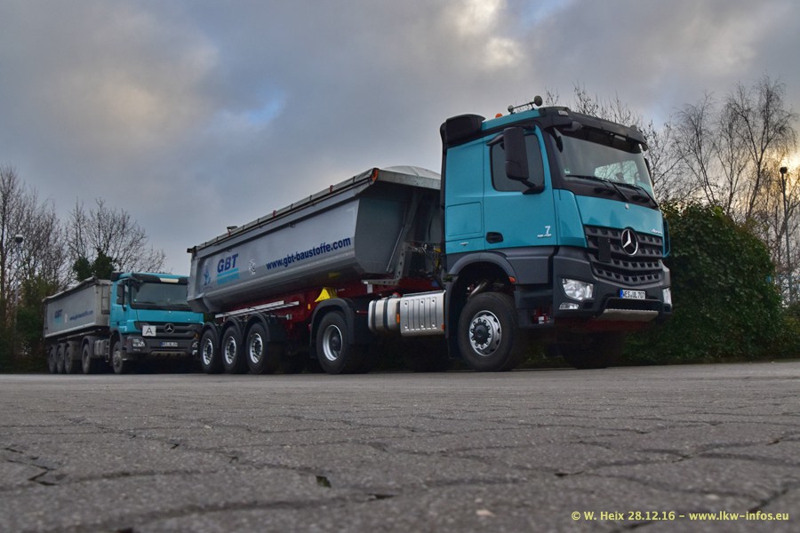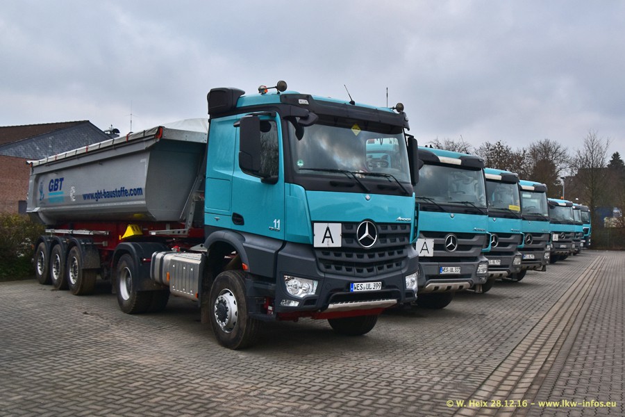 In diesem Jahr habe ich die Firma GBT ersrtmals am Jahresende besucht, denn ich wurde eingeladen. Der Fuhrpark war komplett zuhause! Neu sind drei Mercedes-Benz Arocs und zwei MAN TGX der zweiten Generation.