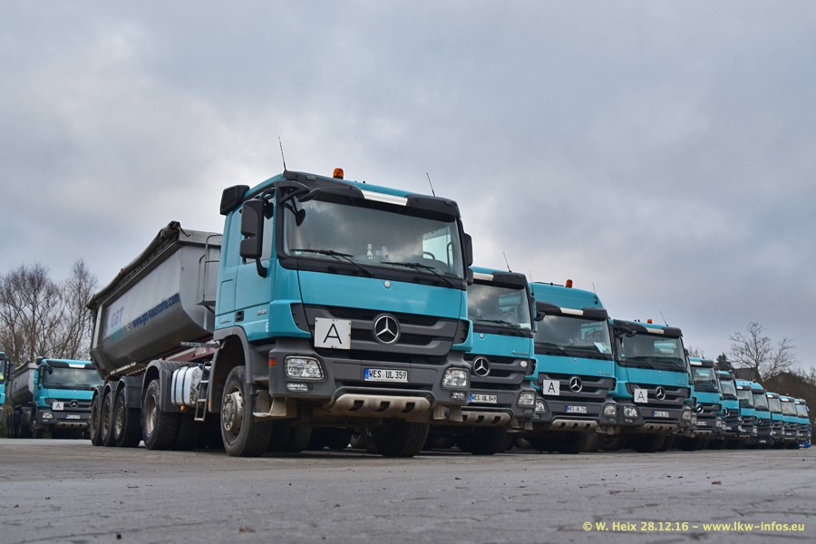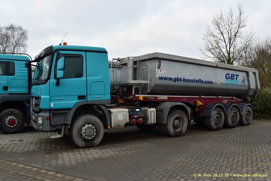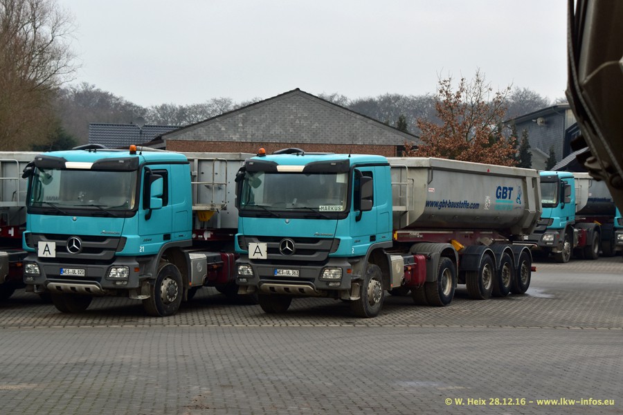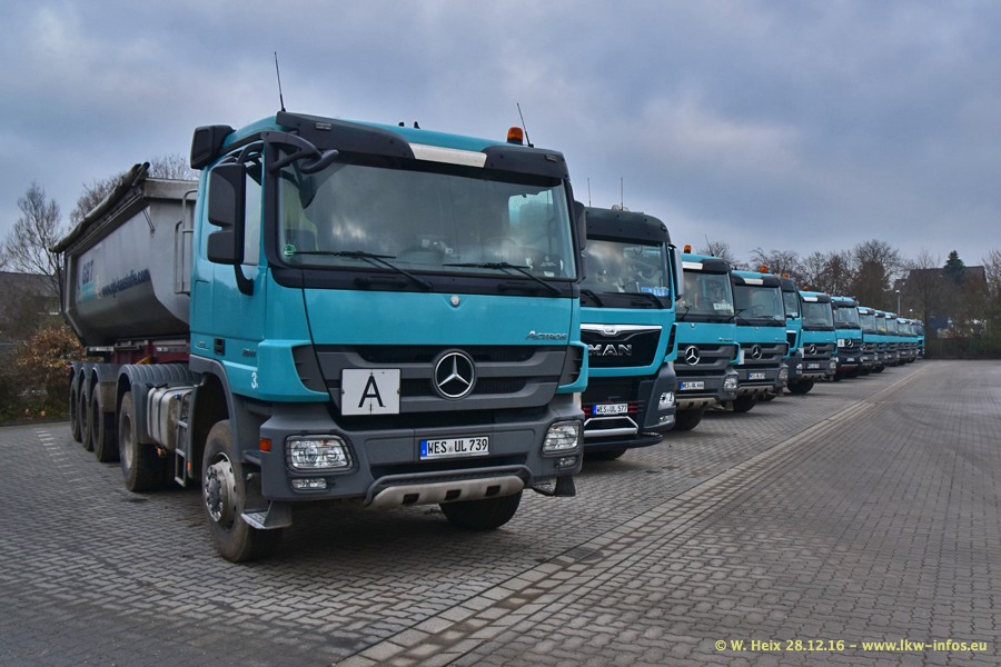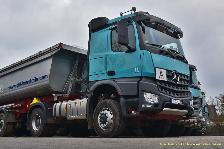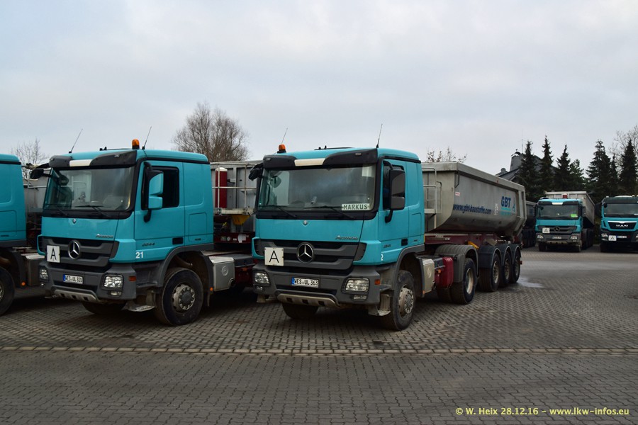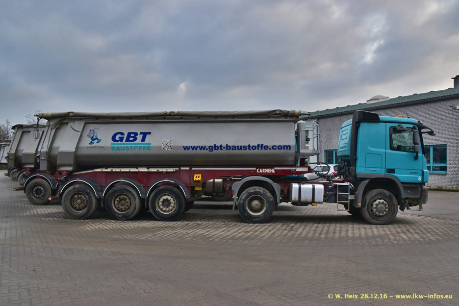 In diesem Jahr habe ich die Firma GBT ersrtmals am Jahresende besucht, denn ich wurde eingeladen. Der Fuhrpark war komplett zuhause! Neu sind drei Mercedes-Benz Arocs und zwei MAN TGX der zweiten Generation.