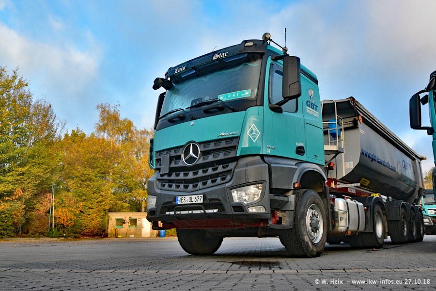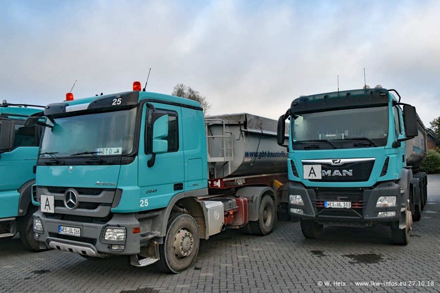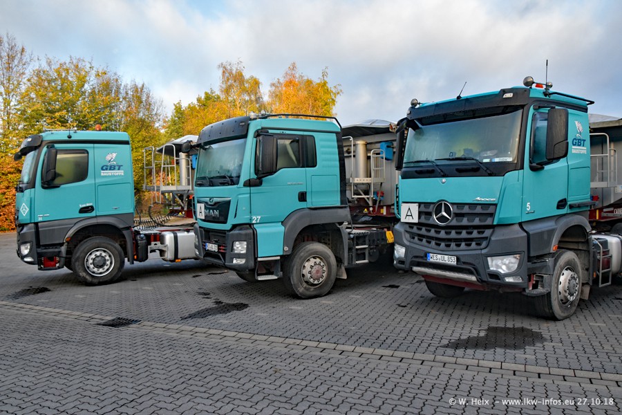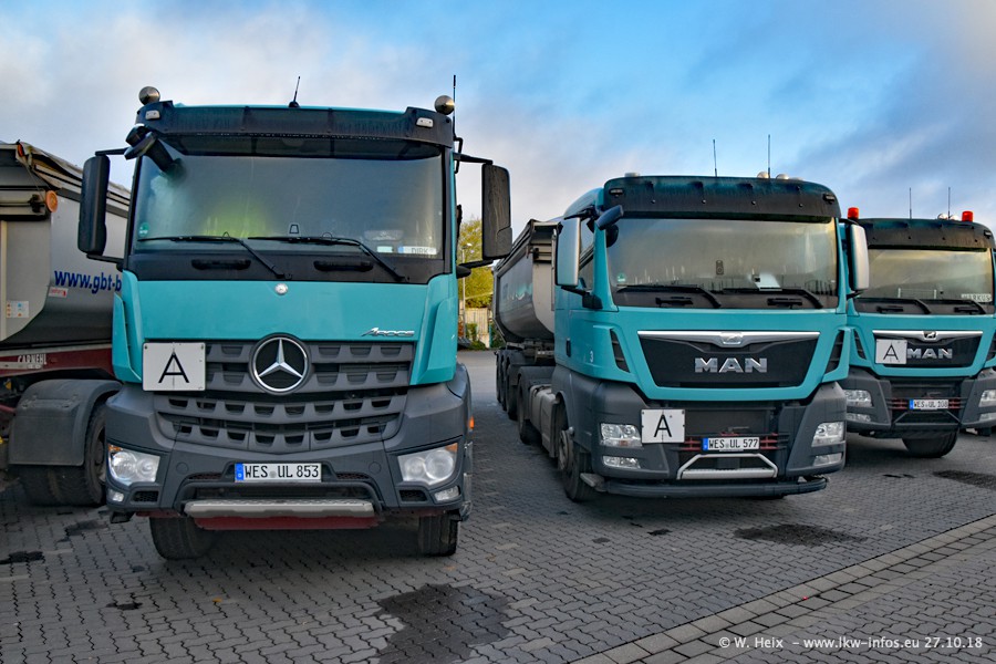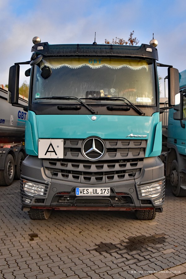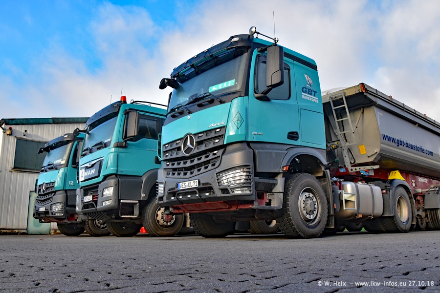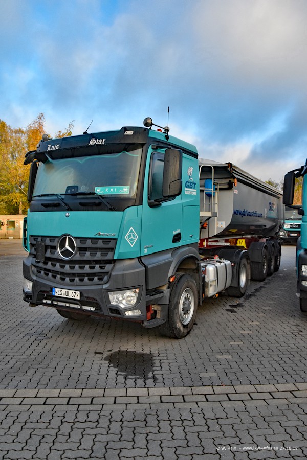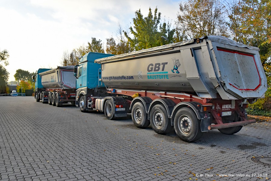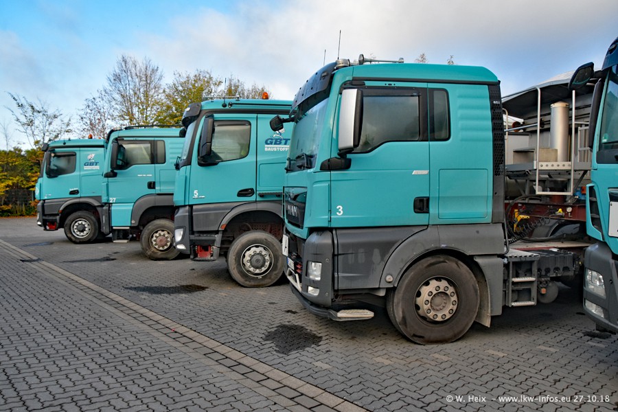 Seit meinem letzten Besuch bei GBT vor knapp 2 Jahren hat sich viel getan. Mehr als 2/3 der LKW wurden durch neue ersetzt. Es gibt jetzt mehrere Mercedes-Benz Arocs und auch Zugmaschinen von MAN. Die letztem Mercedes-Benz Actros 3 werden bald auch den Fuhrpark "verlassen". Rund 40 LKW sind am Standort Dinslaken, fast alle waren zuhause.