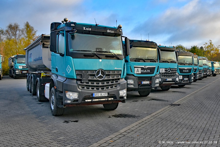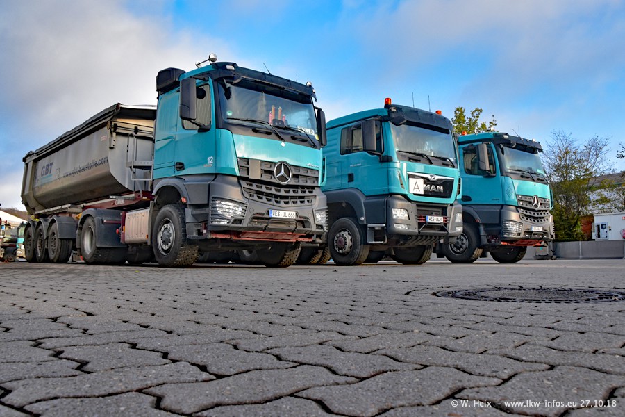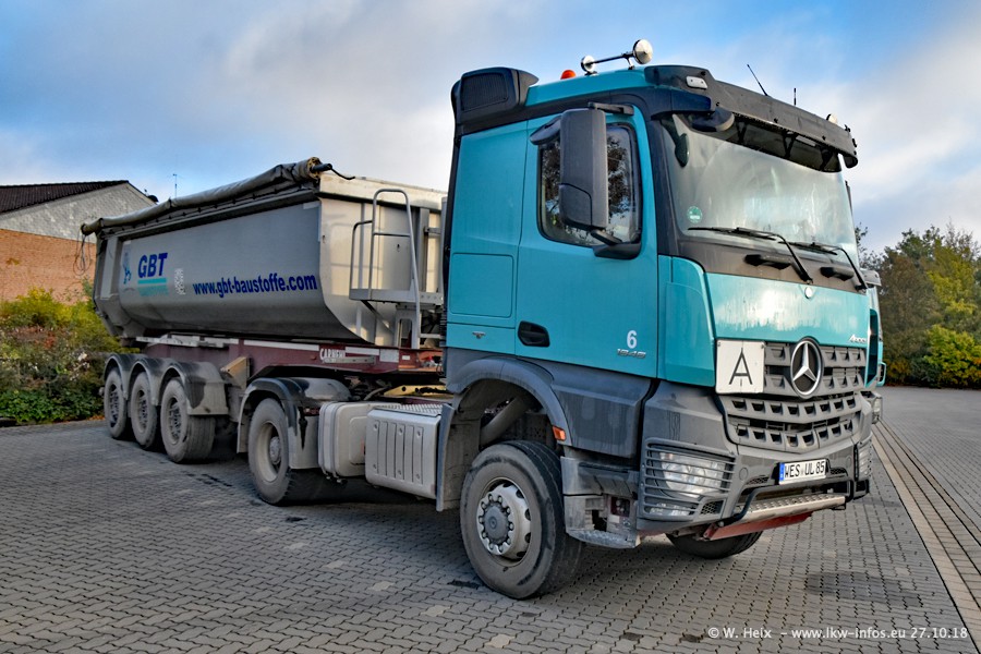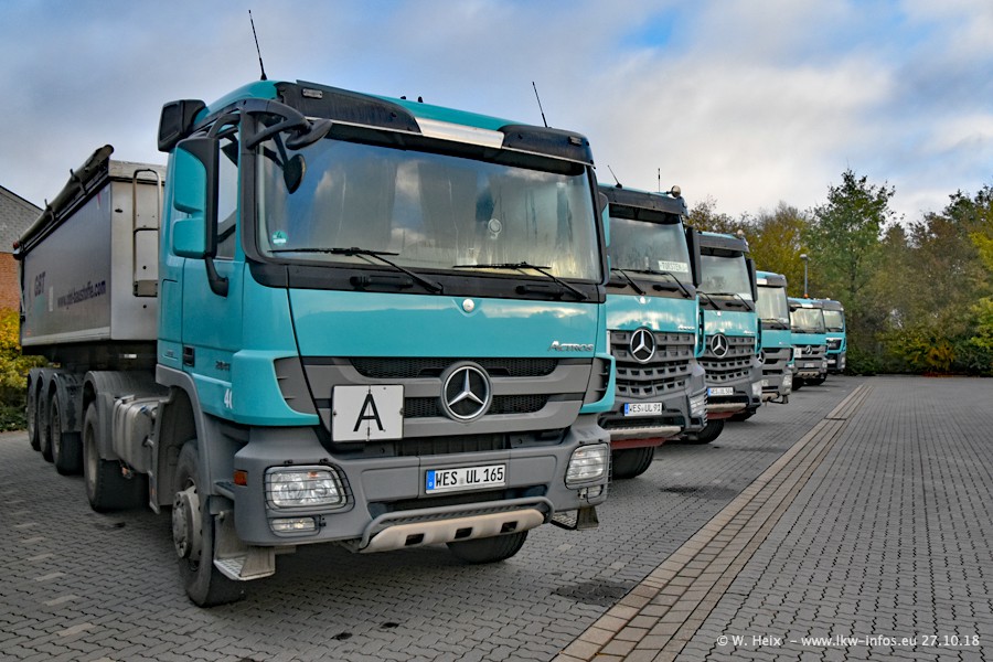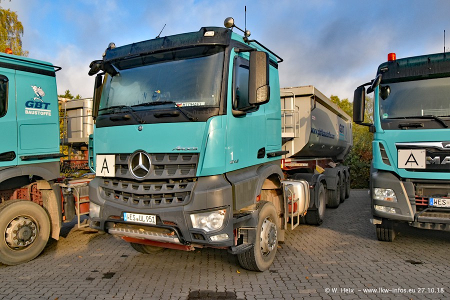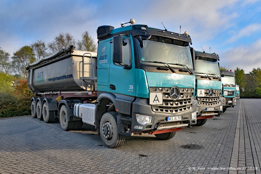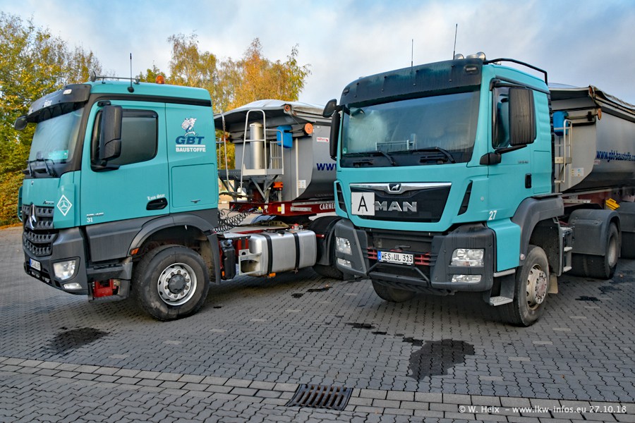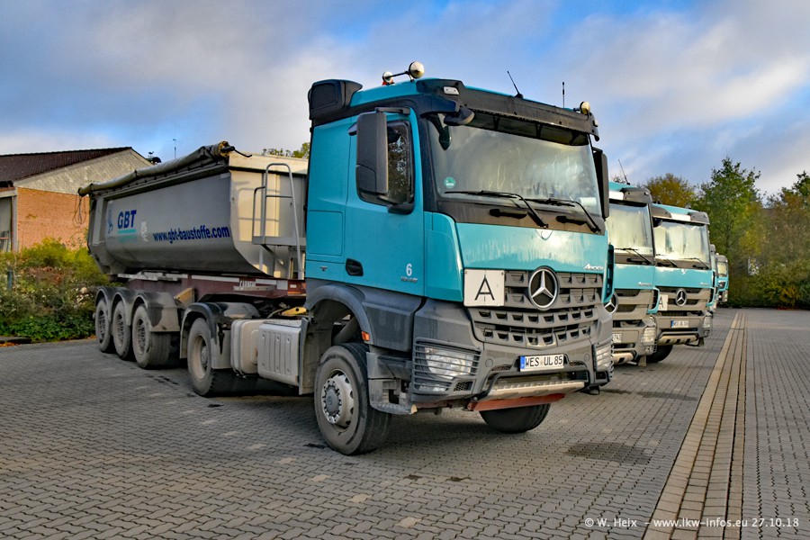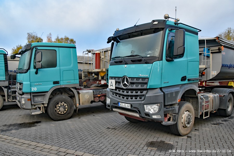 Seit meinem letzten Besuch bei GBT vor knapp 2 Jahren hat sich viel getan. Mehr als 2/3 der LKW wurden durch neue ersetzt. Es gibt jetzt mehrere Mercedes-Benz Arocs und auch Zugmaschinen von MAN. Die letztem Mercedes-Benz Actros 3 werden bald auch den Fuhrpark "verlassen". Rund 40 LKW sind am Standort Dinslaken, fast alle waren zuhause.