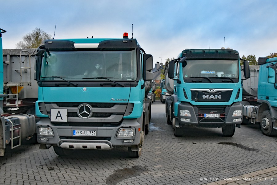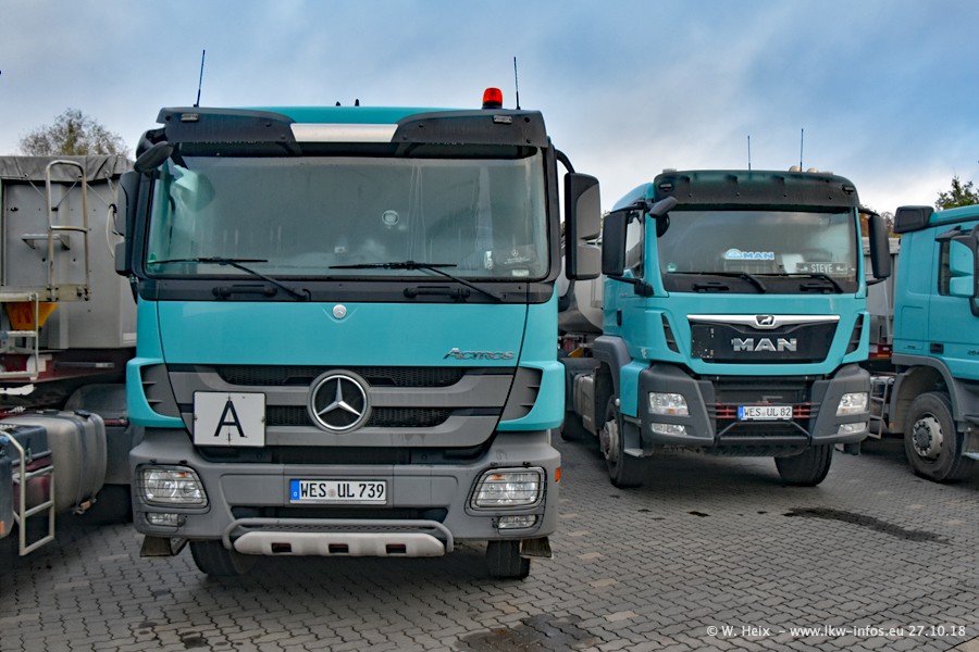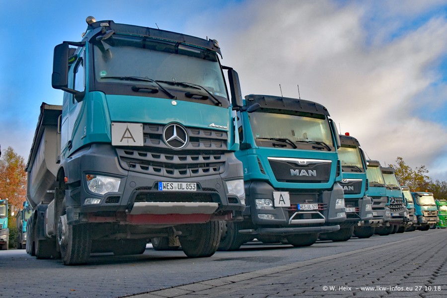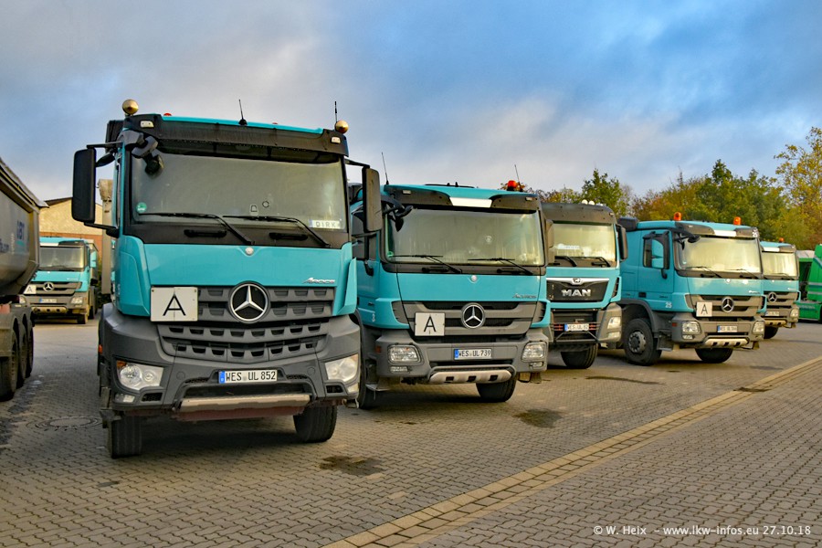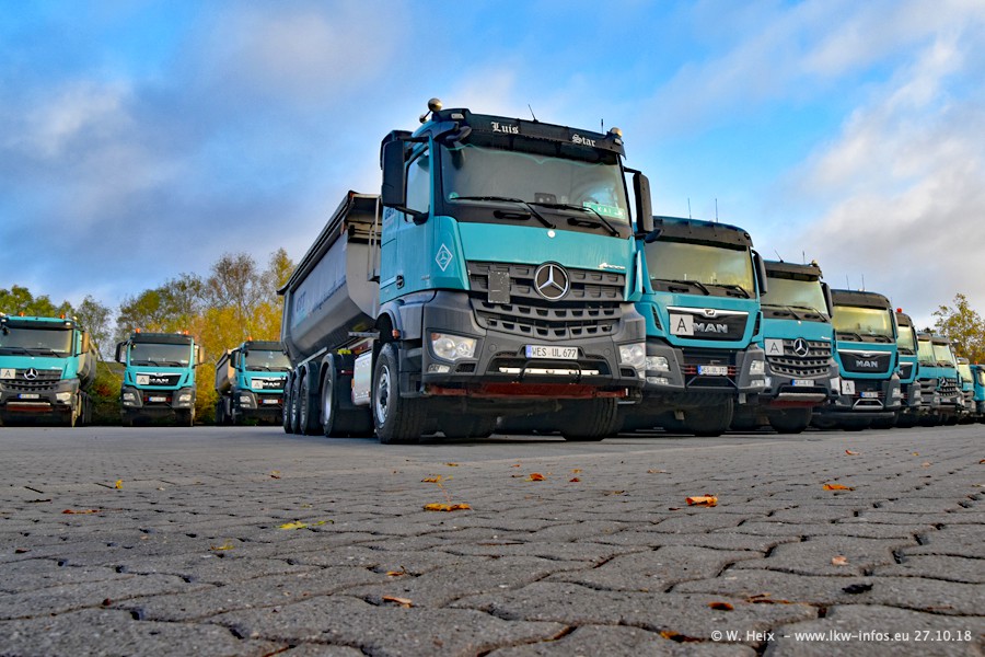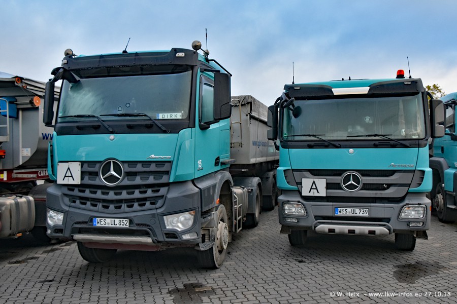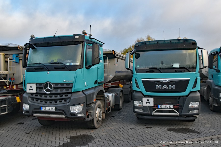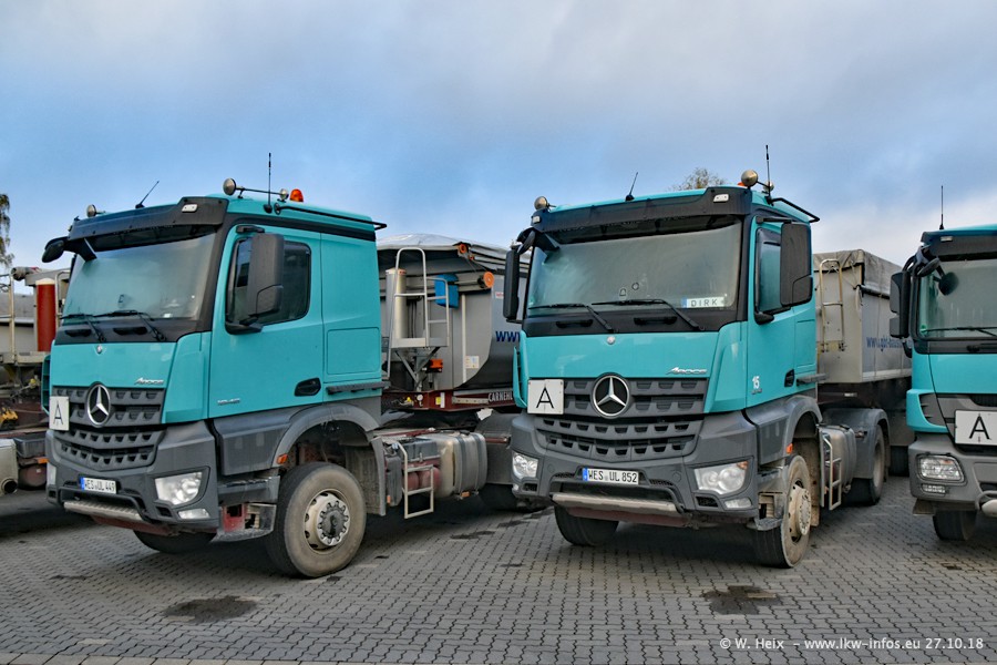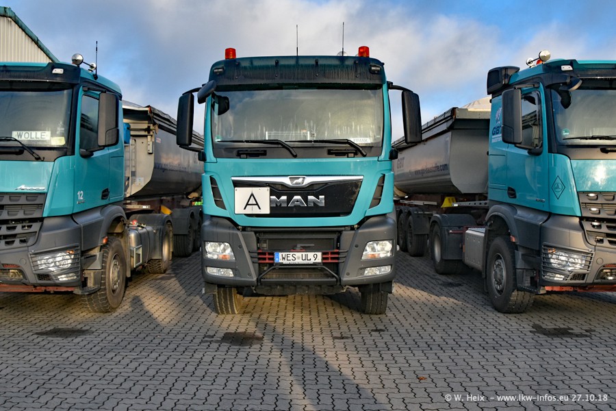 Seit meinem letzten Besuch bei GBT vor knapp 2 Jahren hat sich viel getan. Mehr als 2/3 der LKW wurden durch neue ersetzt. Es gibt jetzt mehrere Mercedes-Benz Arocs und auch Zugmaschinen von MAN. Die letztem Mercedes-Benz Actros 3 werden bald auch den Fuhrpark "verlassen". Rund 40 LKW sind am Standort Dinslaken, fast alle waren zuhause.