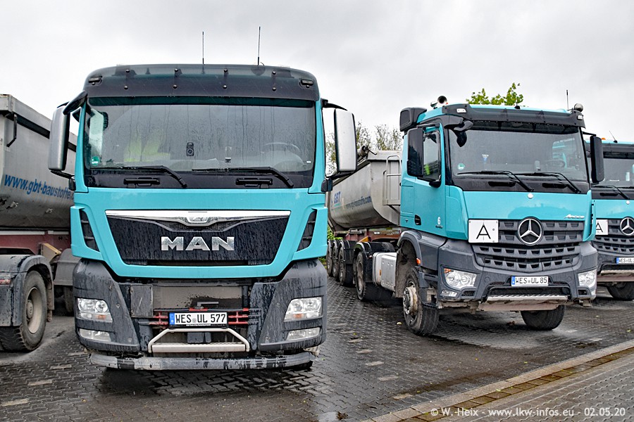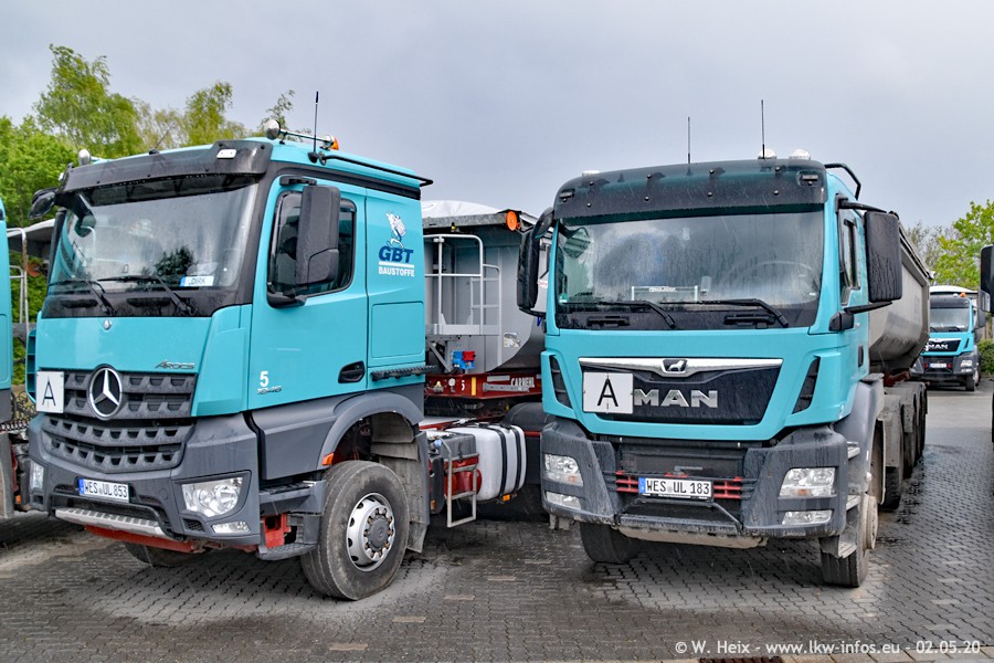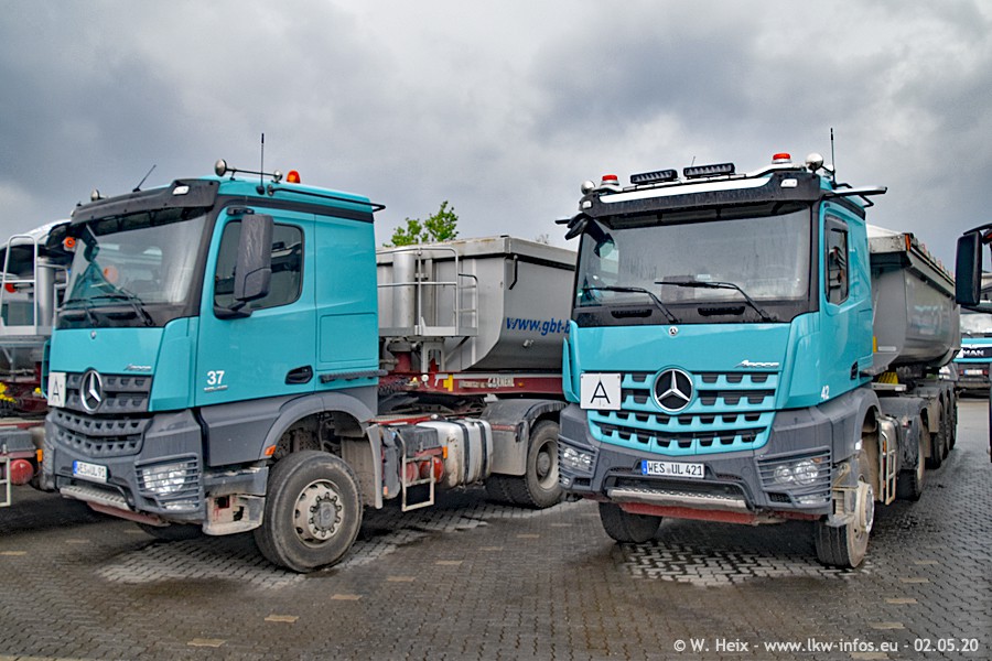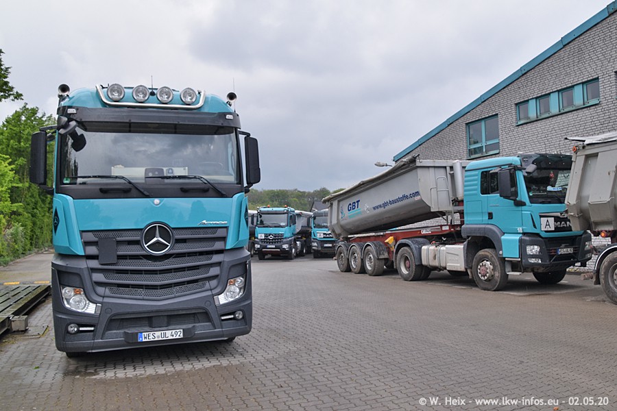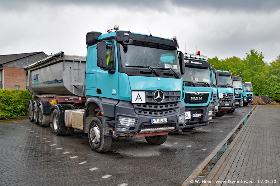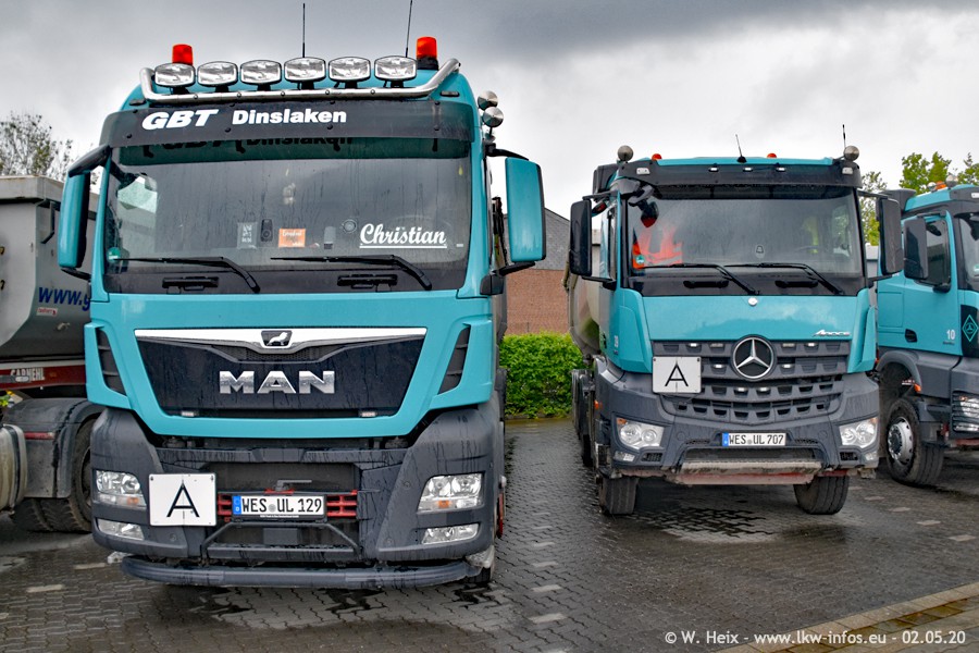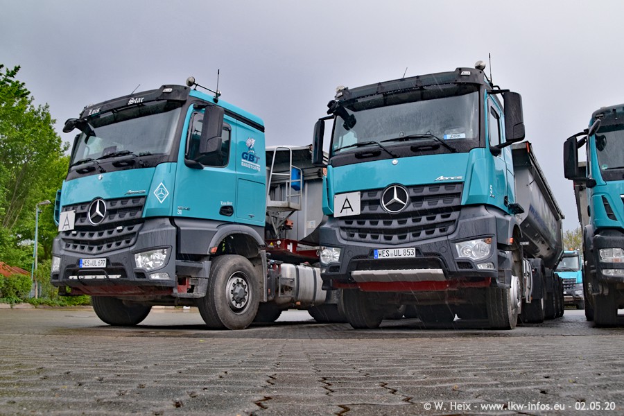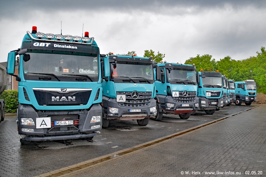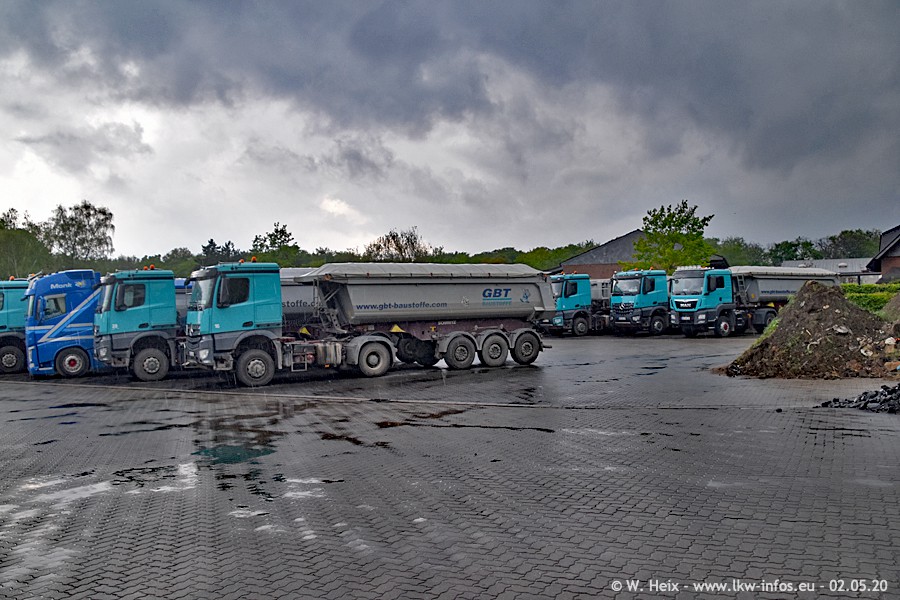 Mein letzter Besuch bei GBT ist schon wieder fast 1,5 Jahre her. Inzwischen gibt es bei GBT die ersten neuen Mercedes-Benz New Actros und New Arocs, das sind die "ohne Spiegel". Am Hauptfirmensitz in Dinslaken gibt es aktuell 42 LKW. Das sind MAN TGS und Mercedes-Benz Actros/Arocs. Leider war entgegen der Wettervorsagen das Wetter schlecht. Regen und Gewitter waren nicht schön, die Bilder sind es dennoch ....