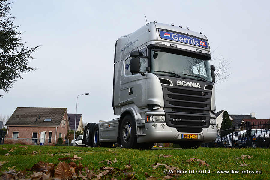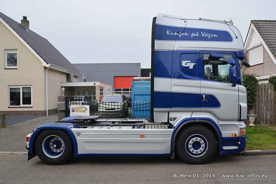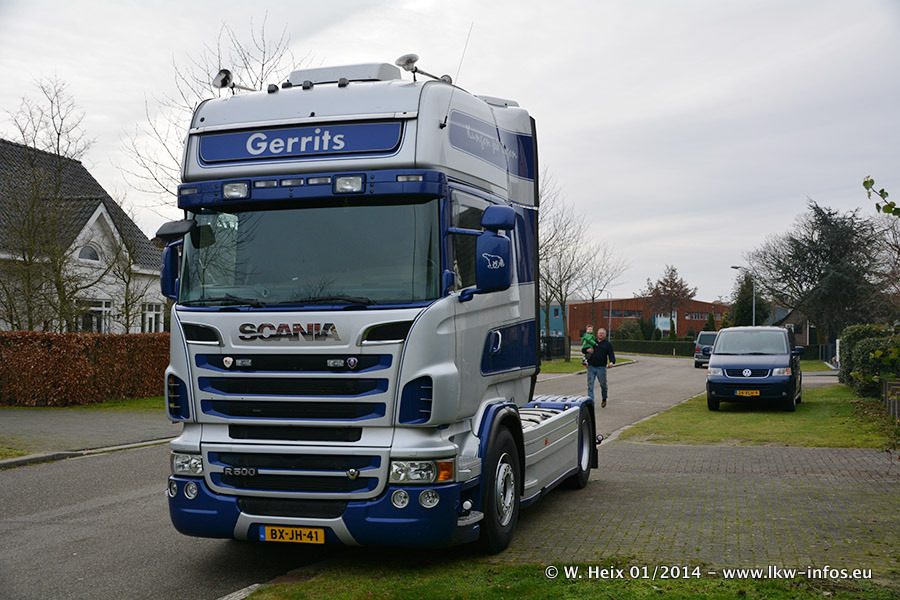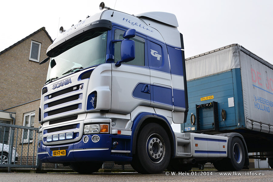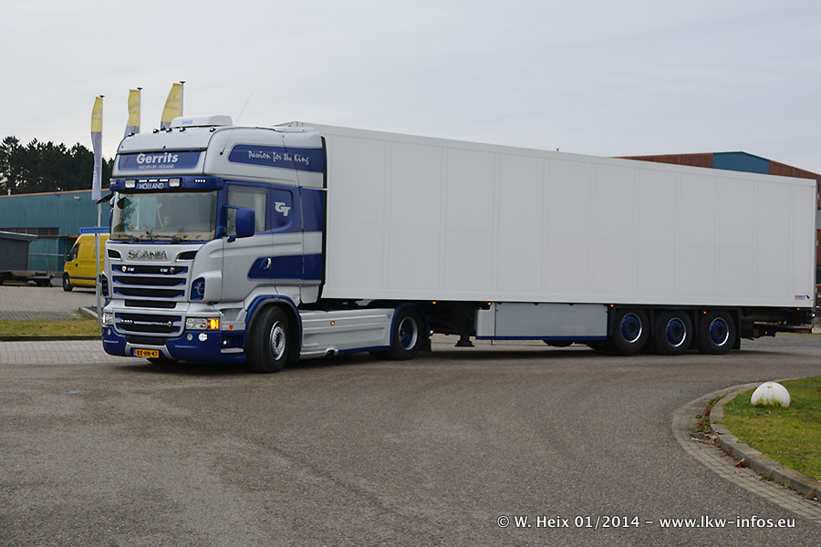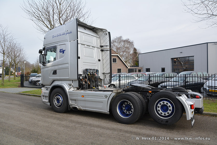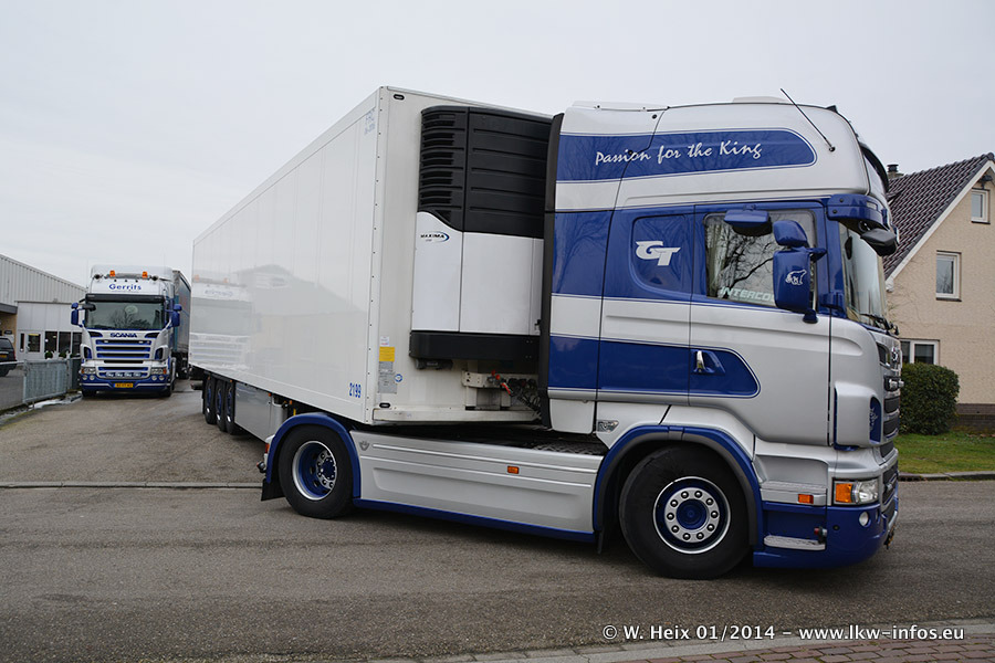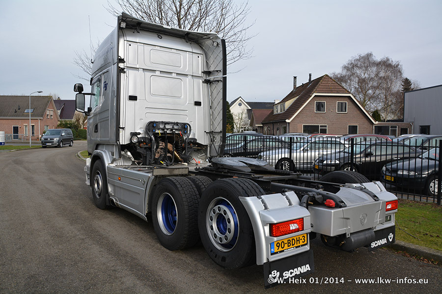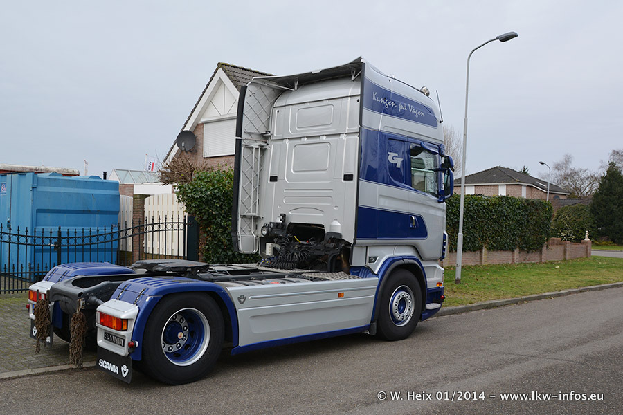 Ganz neu im Fuhrpark ist der Scania R 500 V8 Streamline. Das richtige Zubehör und Design fehlen noch. Da dieser Scania nur ca. alle 3 Wochen am Wochenende zuhause ist, wird es wohl noch ein wenig dauern, bis er "fertig" ist. Der Volvo FH wurde inzwischen verkauft. Der Fuhrpark besteht jetzt aus sechs Scania, davon fünf mit V8-Motor. Der Scania 143 V8 Streamline, der vor zwei Jahren von Gerrits in Eigenarbeit komplett neu aufgebaut wurde, vervollständigt den Fuhrpark. Dieser Scania ist aber so gut wie nicht in Wijchen, da er in der Schweiz eingesetzt wird.