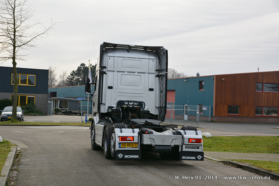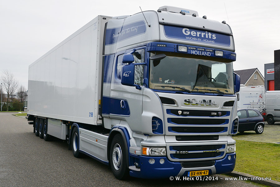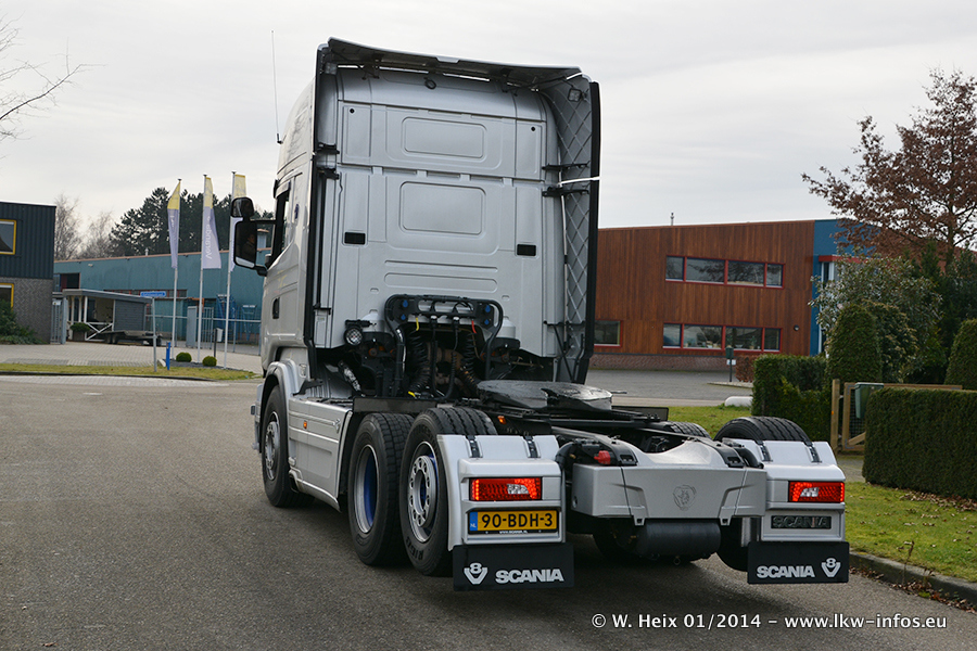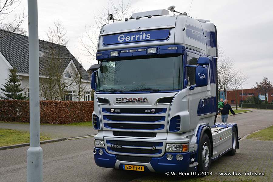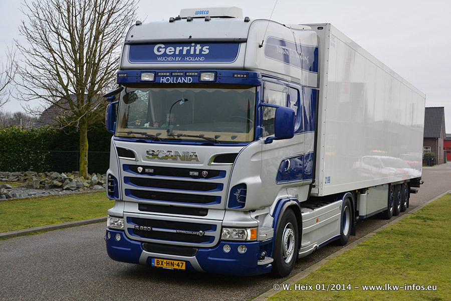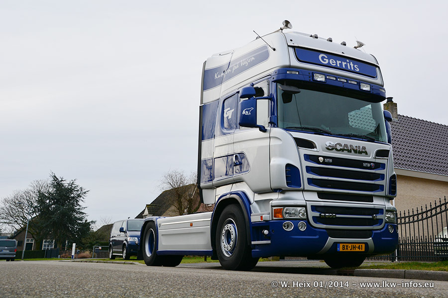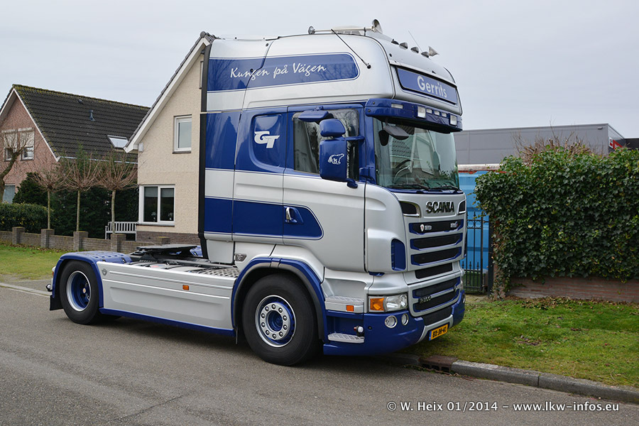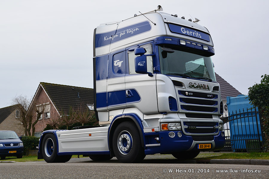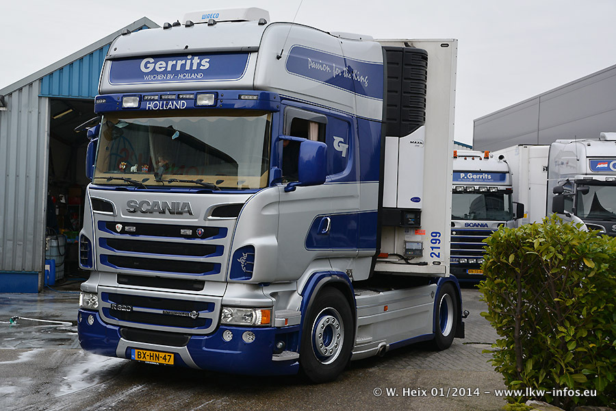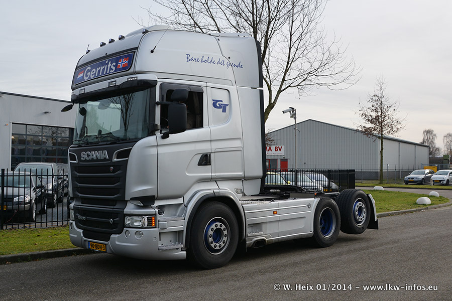 Ganz neu im Fuhrpark ist der Scania R 500 V8 Streamline. Das richtige Zubehör und Design fehlen noch. Da dieser Scania nur ca. alle 3 Wochen am Wochenende zuhause ist, wird es wohl noch ein wenig dauern, bis er "fertig" ist. Der Volvo FH wurde inzwischen verkauft. Der Fuhrpark besteht jetzt aus sechs Scania, davon fünf mit V8-Motor. Der Scania 143 V8 Streamline, der vor zwei Jahren von Gerrits in Eigenarbeit komplett neu aufgebaut wurde, vervollständigt den Fuhrpark. Dieser Scania ist aber so gut wie nicht in Wijchen, da er in der Schweiz eingesetzt wird.