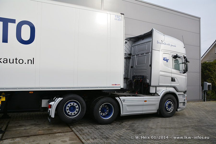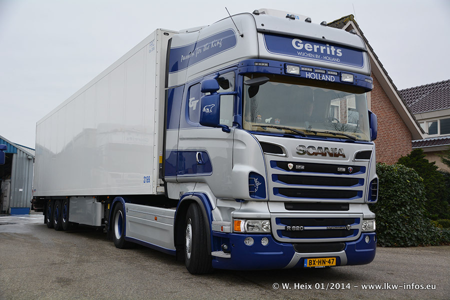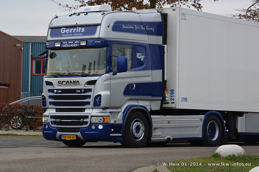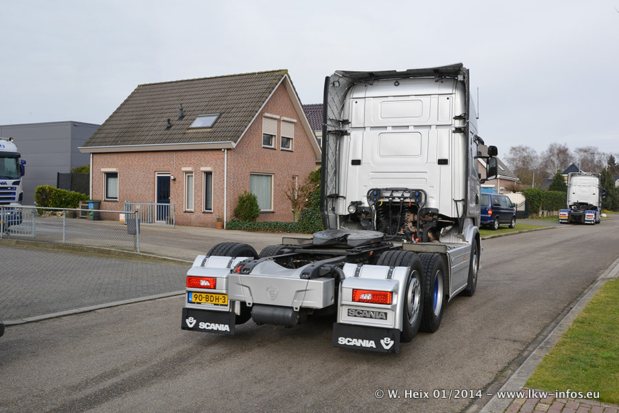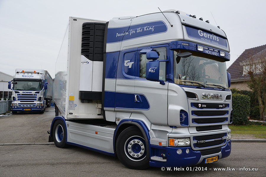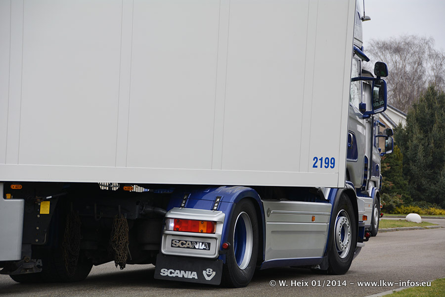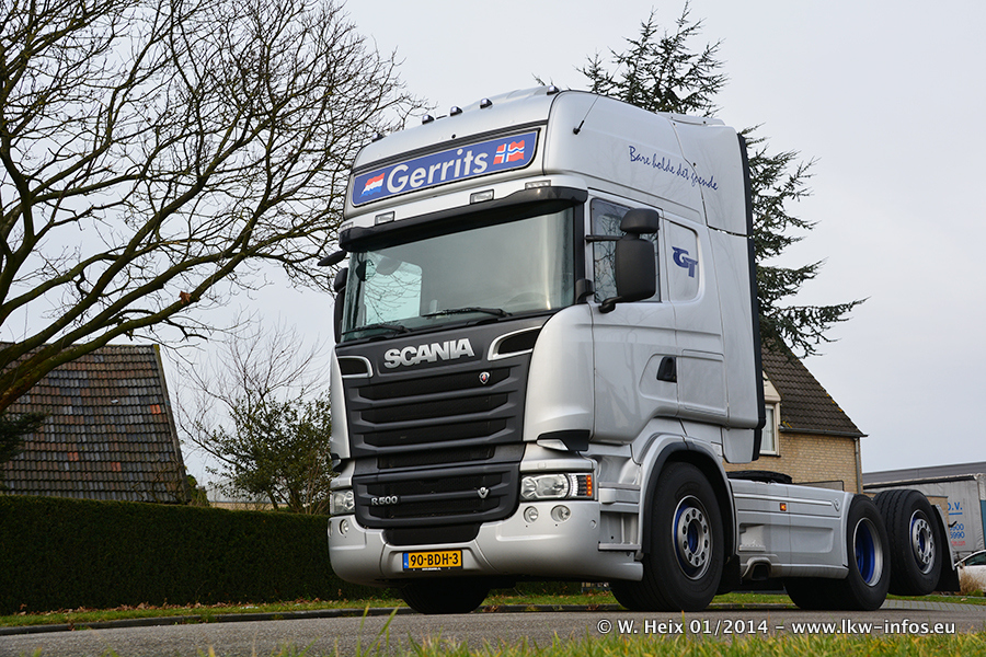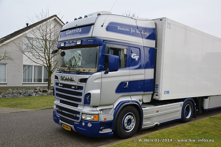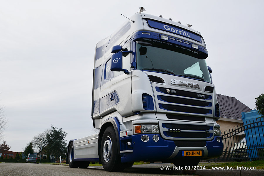Ganz neu im Fuhrpark ist der Scania R 500 V8 Streamline. Das richtige Zubehör und Design fehlen noch. Da dieser Scania nur ca. alle 3 Wochen am Wochenende zuhause ist, wird es wohl noch ein wenig dauern, bis er "fertig" ist. Der Volvo FH wurde inzwischen verkauft. Der Fuhrpark besteht jetzt aus sechs Scania, davon fünf mit V8-Motor. Der Scania 143 V8 Streamline, der vor zwei Jahren von Gerrits in Eigenarbeit komplett neu aufgebaut wurde, vervollständigt den Fuhrpark. Dieser Scania ist aber so gut wie nicht in Wijchen, da er in der Schweiz eingesetzt wird.