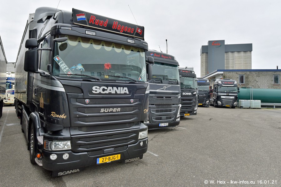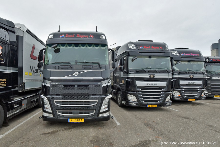 Zum Jahreswechsel hat die Firma Hagens mindestens drei neue VOLVO FH 4 Euro 6 bekommen, die an den Kennzeichen mit der Buchstabenkombination "BRB" zu erkennen sind. Und auch der größte Teil der LKW war am Samstag zuhause.