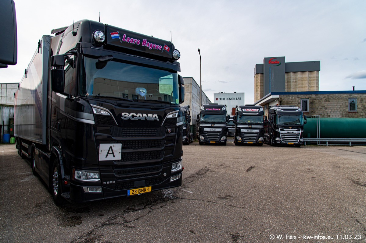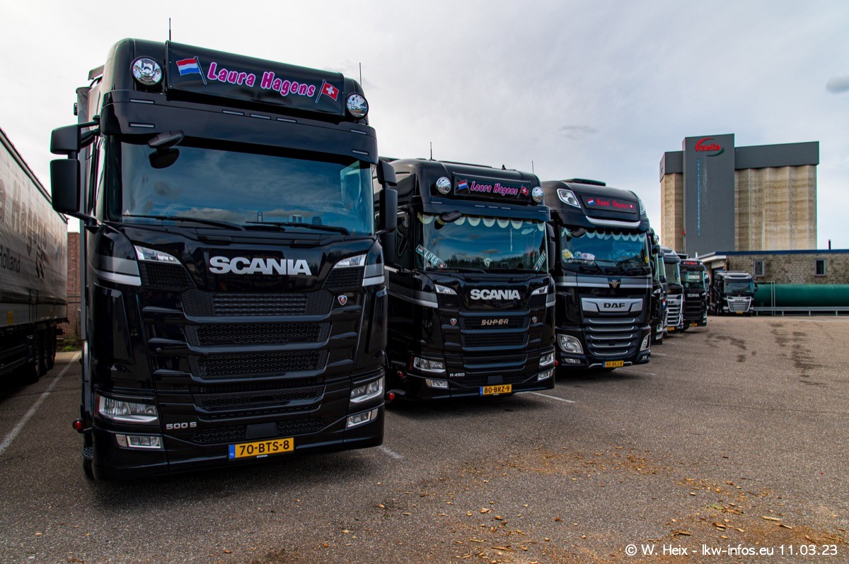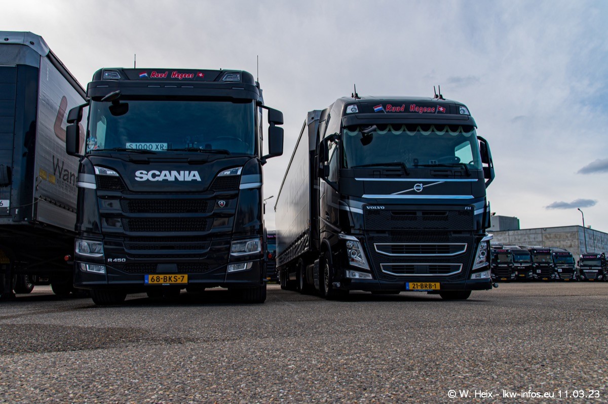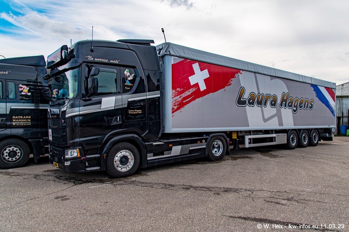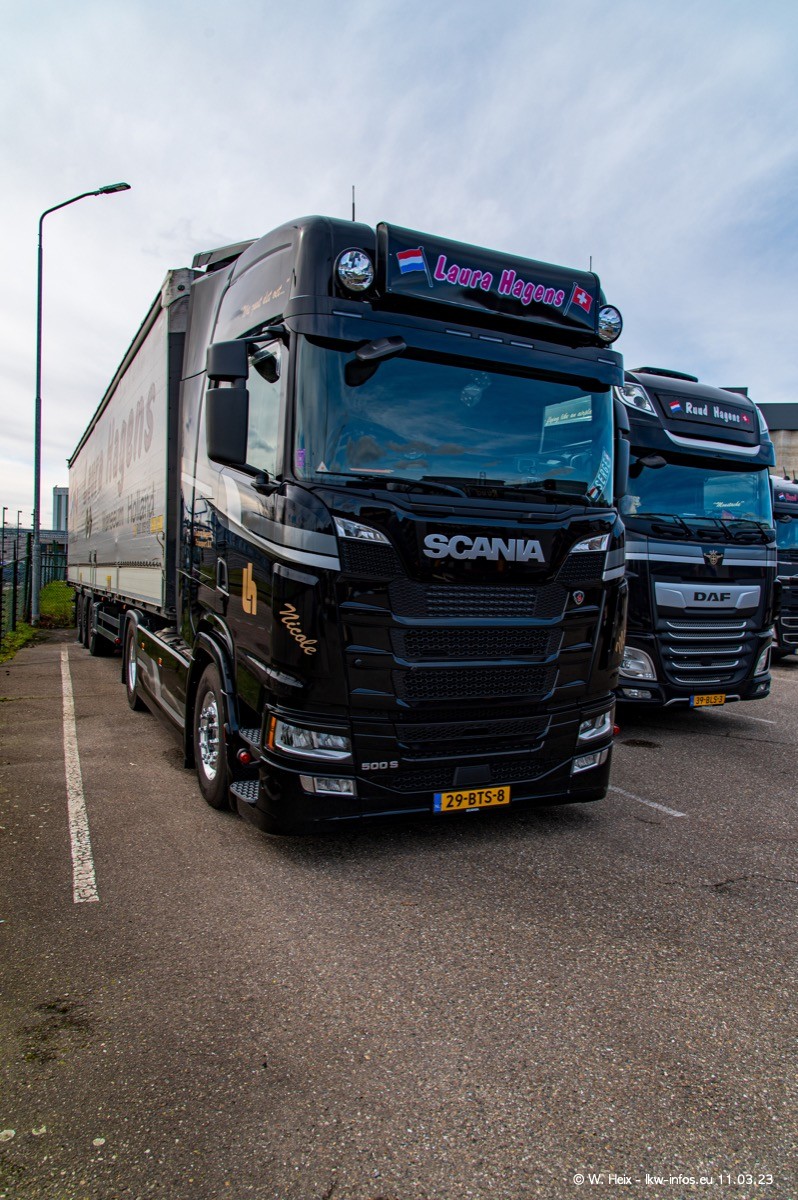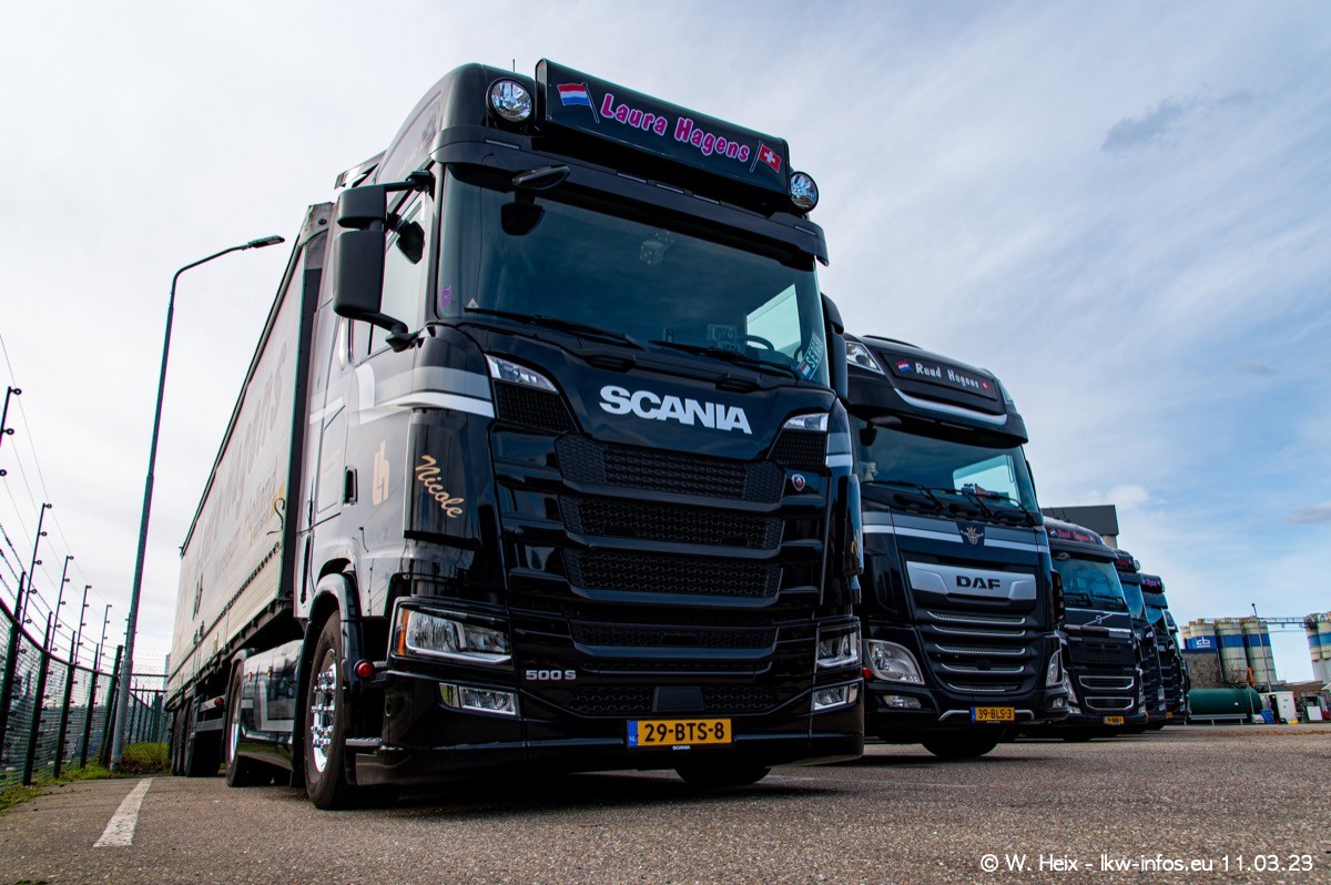 Der neue SCANIA 500 S (Kennzeichen 29-BTS-8) war da. Und auch von dem weißen IVECO S-Way konnte ich diesmal bessere Fotos machen. Der ist seit Herbst 2022 im Fuhrpark. Es gibt auch neue Walking-Floor Auflieger mit neuem Design "Laura" Hagens. Die sind schon länger im Fuhrpark und meistens nicht sichtbar, wenn alle LKW in der Reihe nebeneinander stehen .... Fazit: Jeder Besuch bei Ruud Hagens ist interessant und lohnt sich 👍🏽