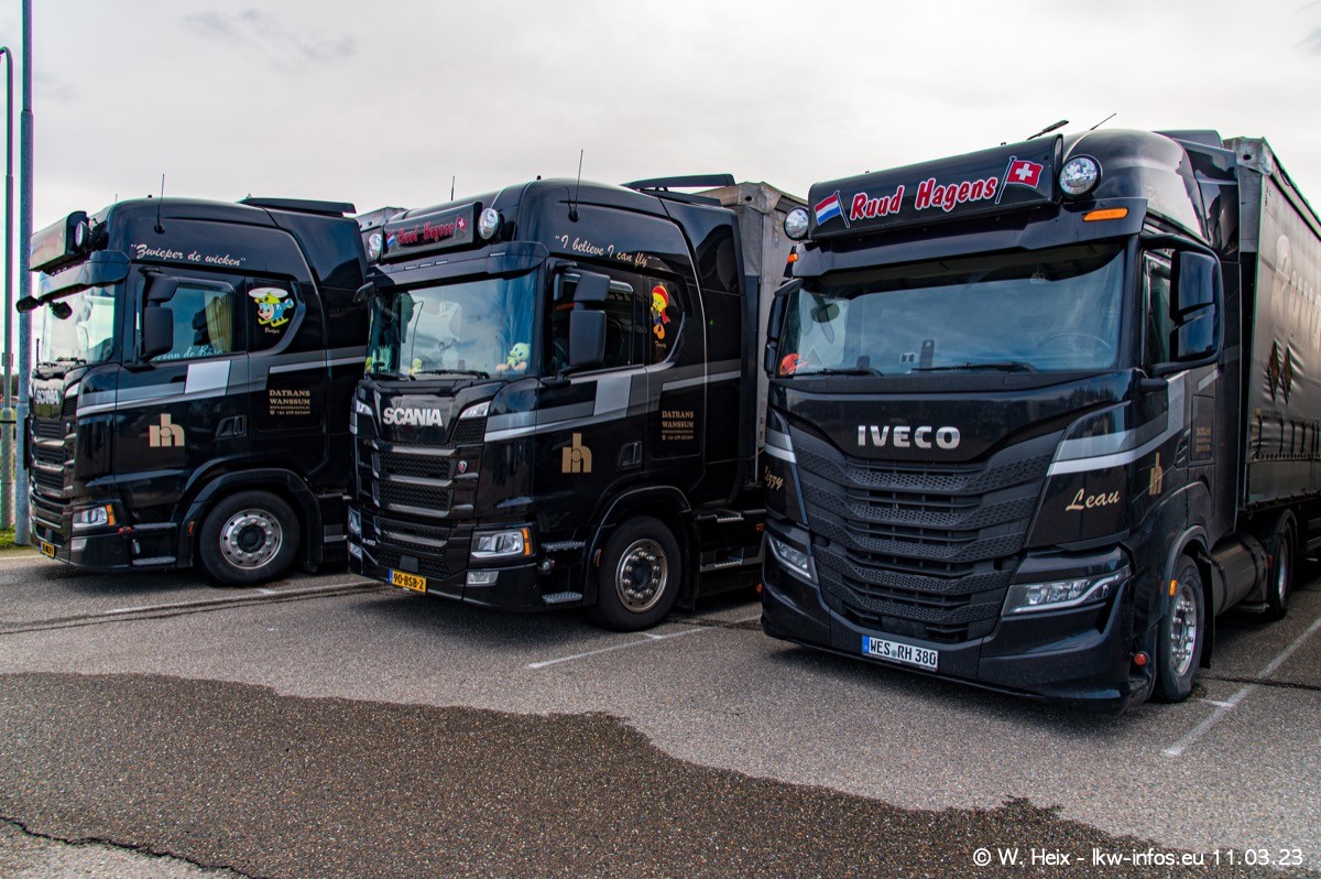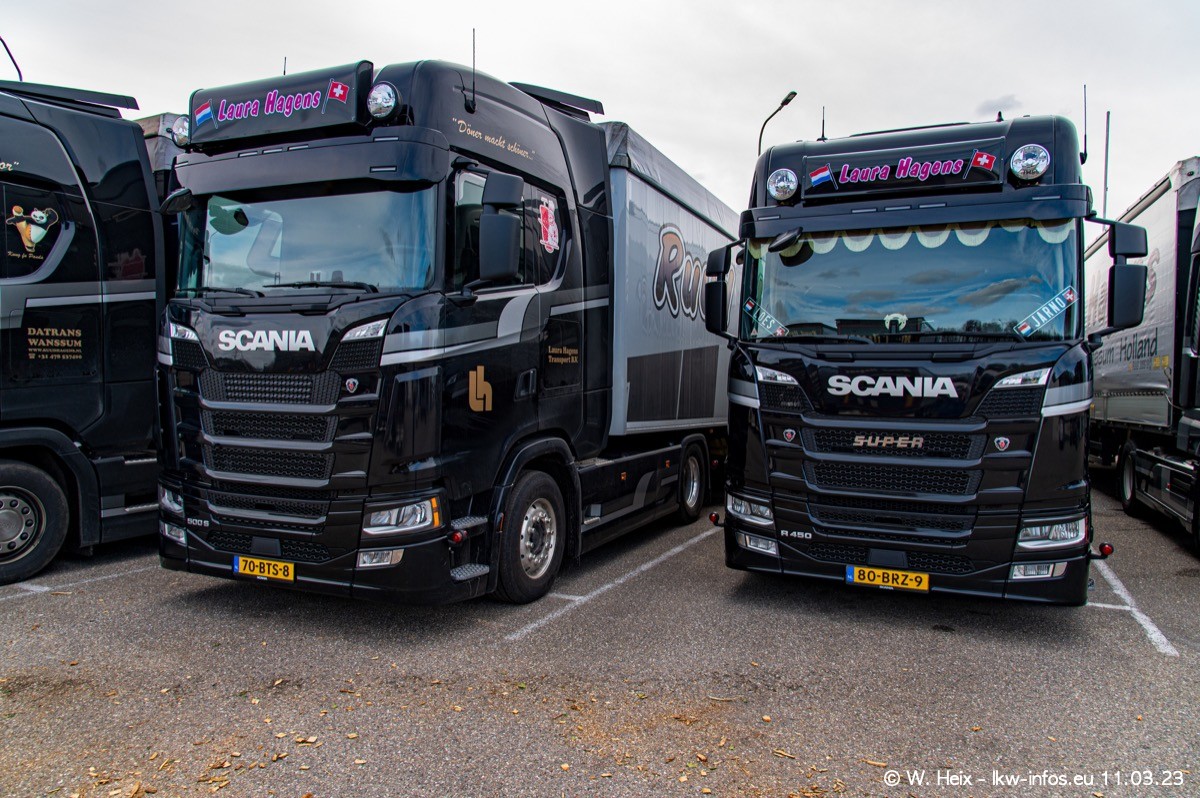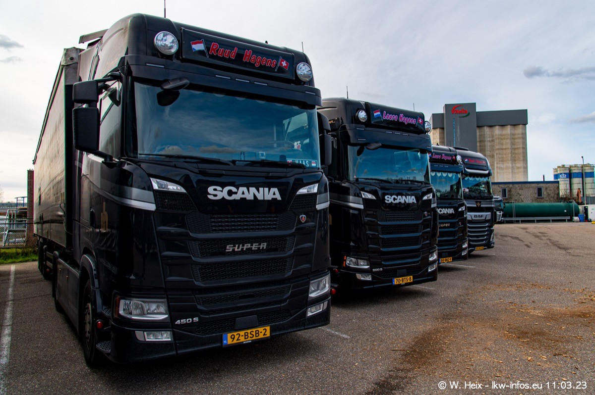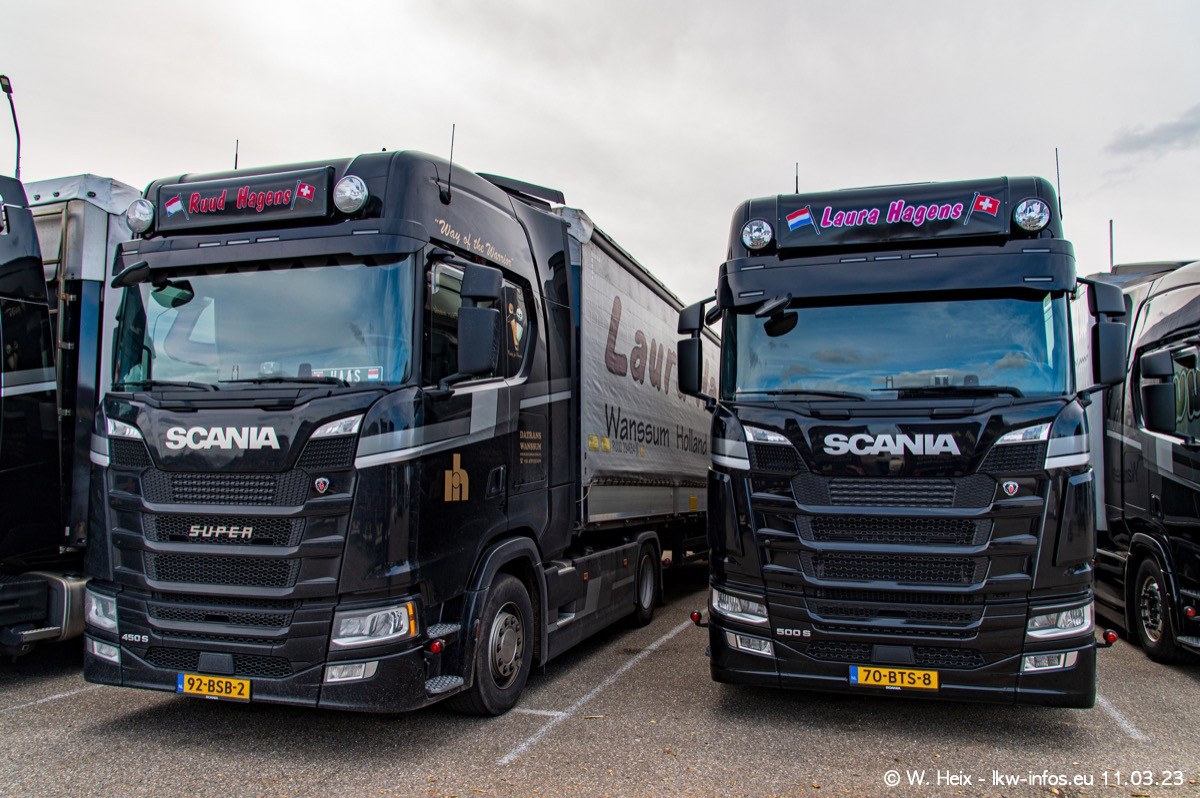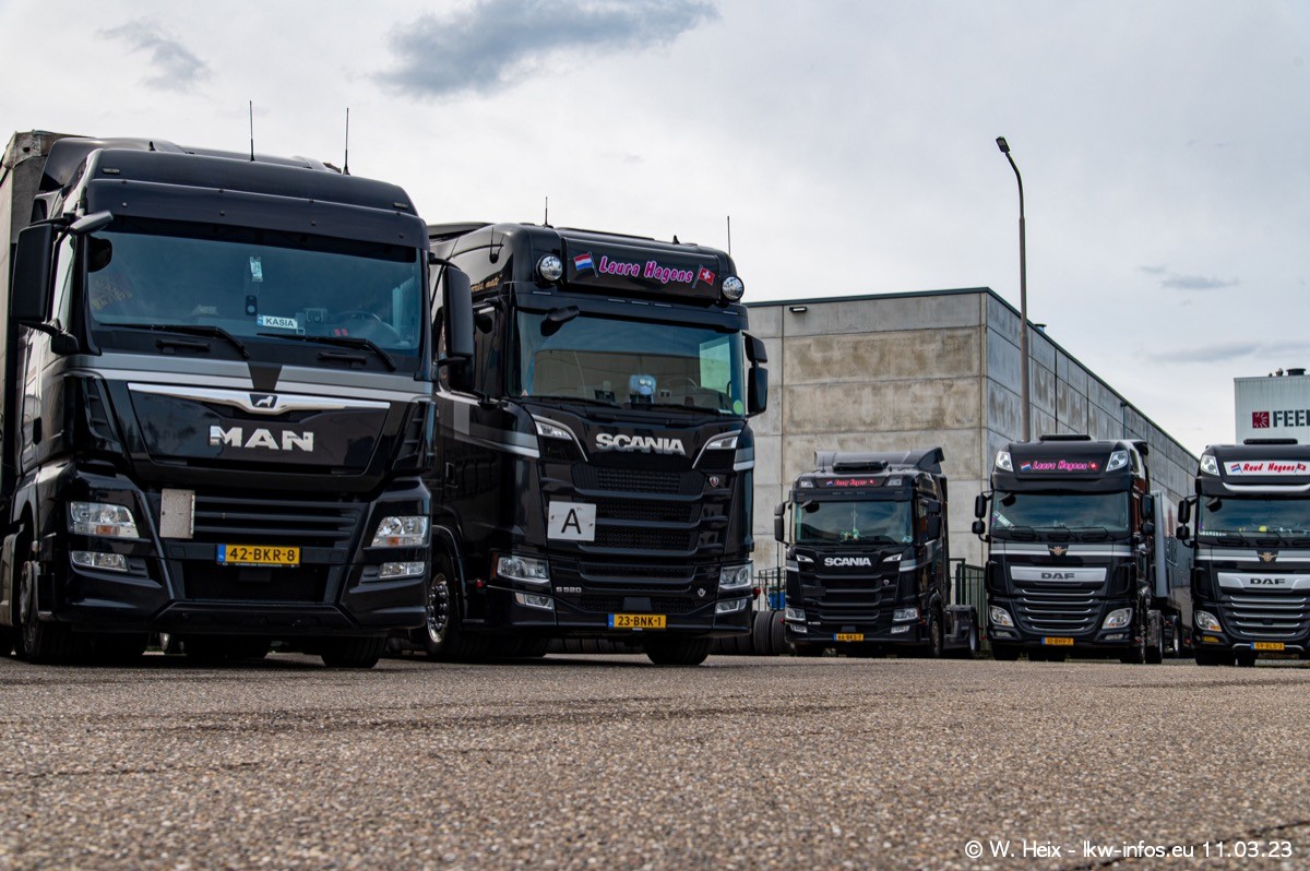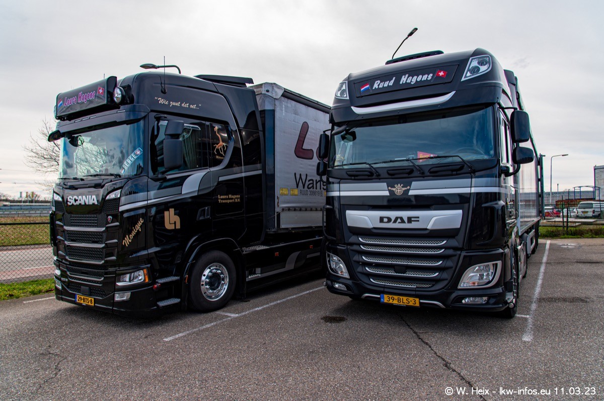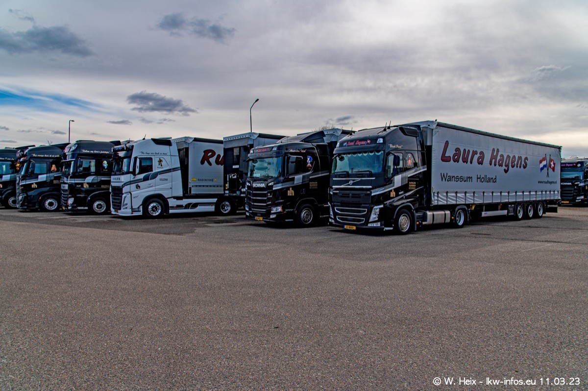 Der neue SCANIA 500 S (Kennzeichen 29-BTS-8) war da. Und auch von dem weißen IVECO S-Way konnte ich diesmal bessere Fotos machen. Der ist seit Herbst 2022 im Fuhrpark. Es gibt auch neue Walking-Floor Auflieger mit neuem Design "Laura" Hagens. Die sind schon länger im Fuhrpark und meistens nicht sichtbar, wenn alle LKW in der Reihe nebeneinander stehen .... Fazit: Jeder Besuch bei Ruud Hagens ist interessant und lohnt sich 👍🏽