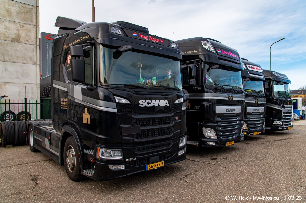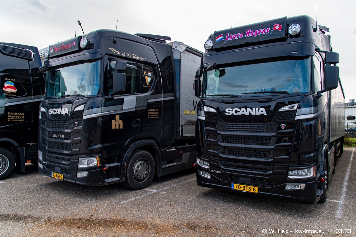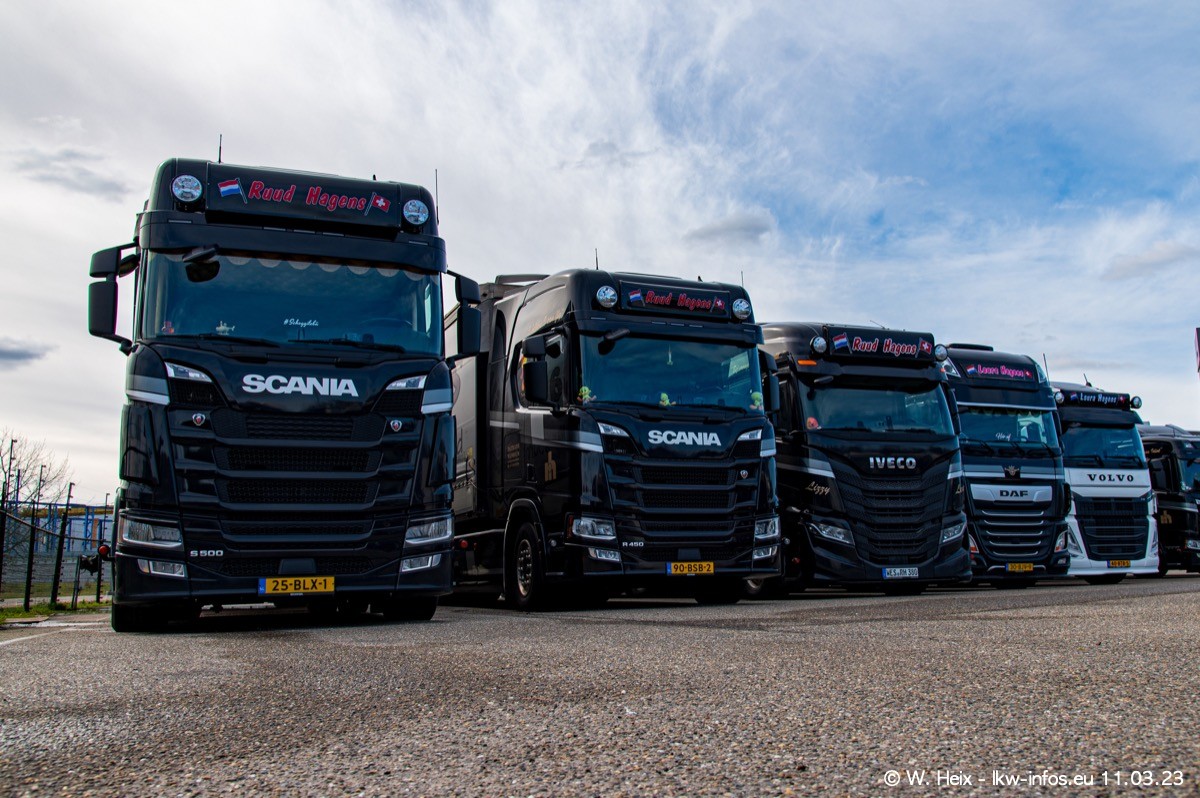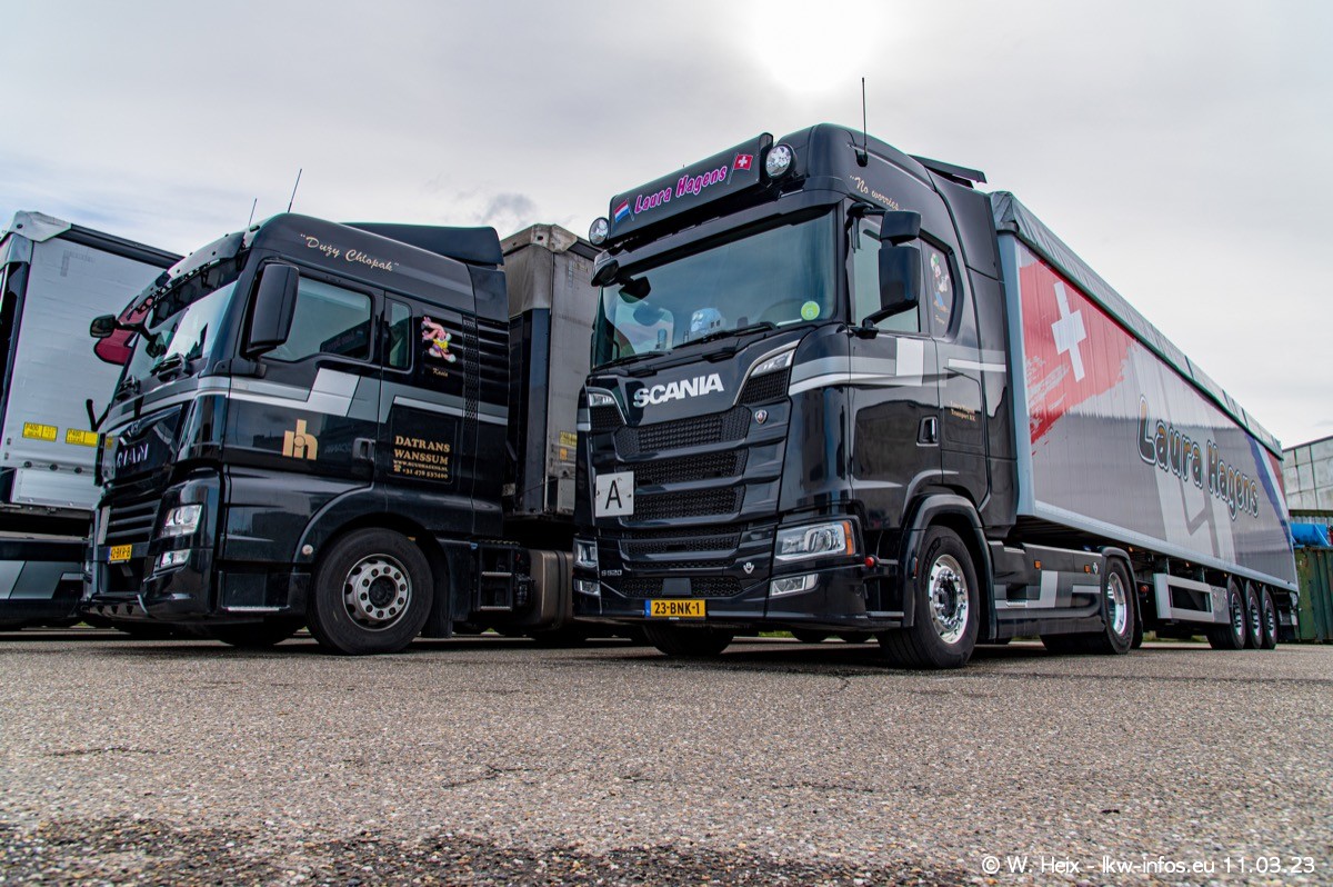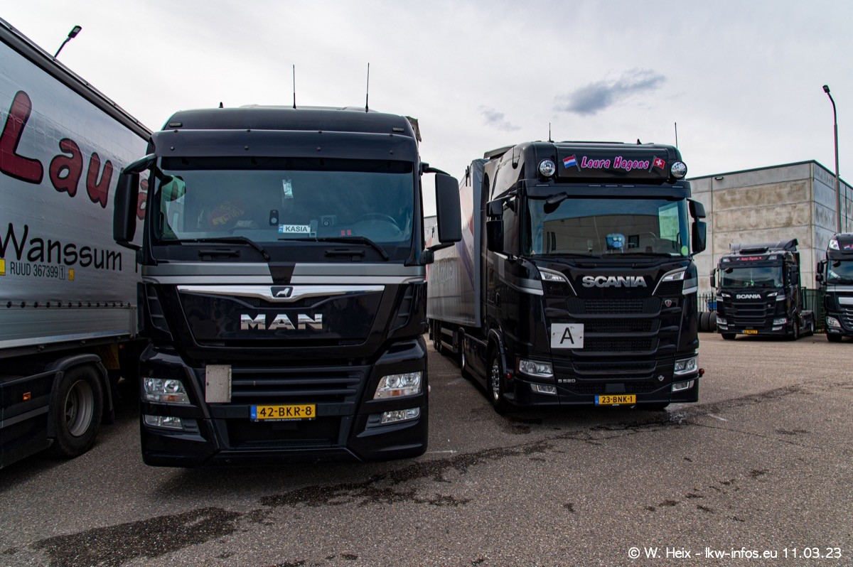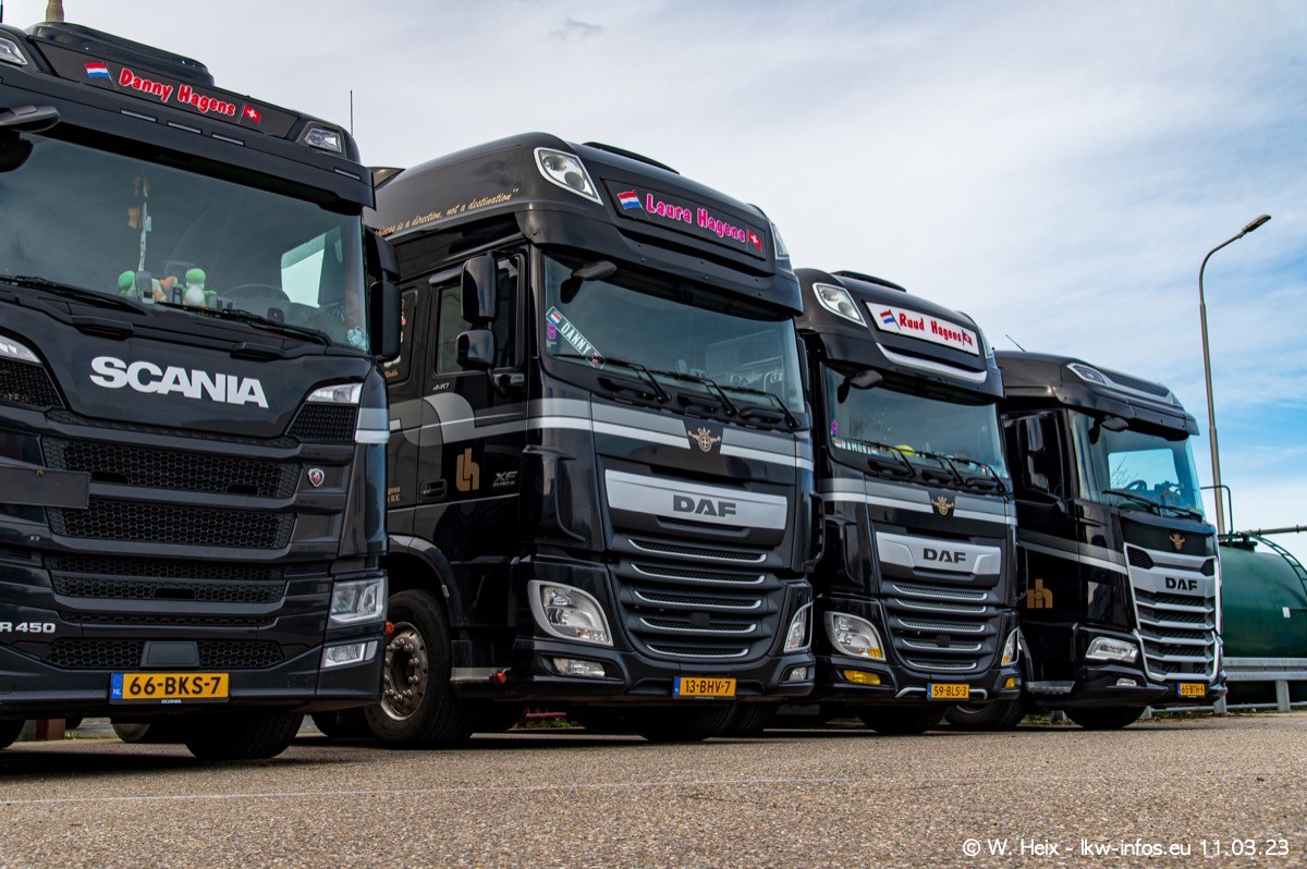 Der neue SCANIA 500 S (Kennzeichen 29-BTS-8) war da. Und auch von dem weißen IVECO S-Way konnte ich diesmal bessere Fotos machen. Der ist seit Herbst 2022 im Fuhrpark. Es gibt auch neue Walking-Floor Auflieger mit neuem Design "Laura" Hagens. Die sind schon länger im Fuhrpark und meistens nicht sichtbar, wenn alle LKW in der Reihe nebeneinander stehen .... Fazit: Jeder Besuch bei Ruud Hagens ist interessant und lohnt sich 👍🏽