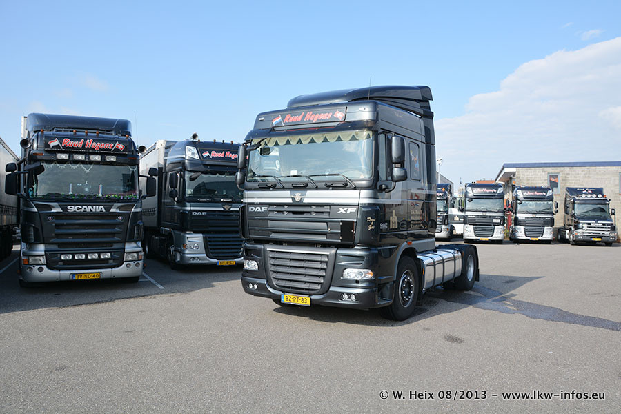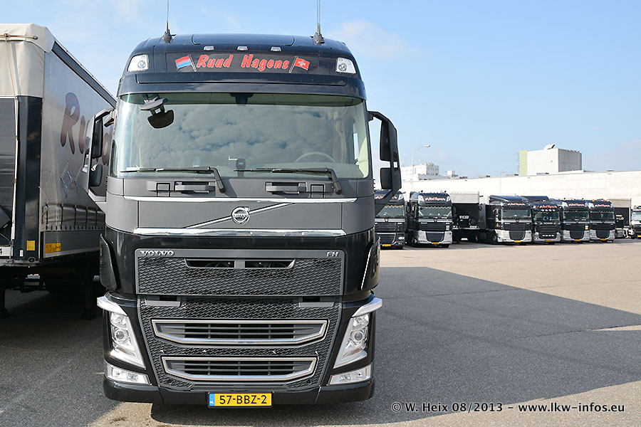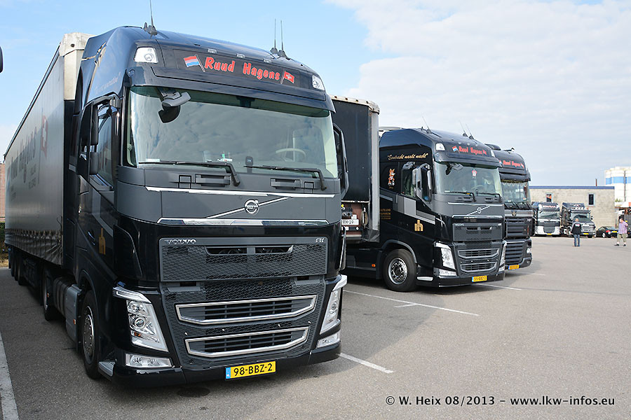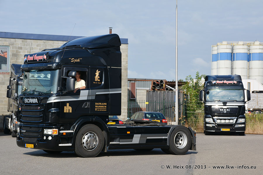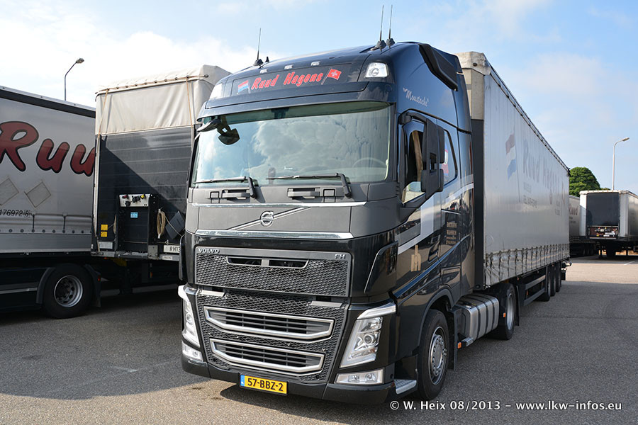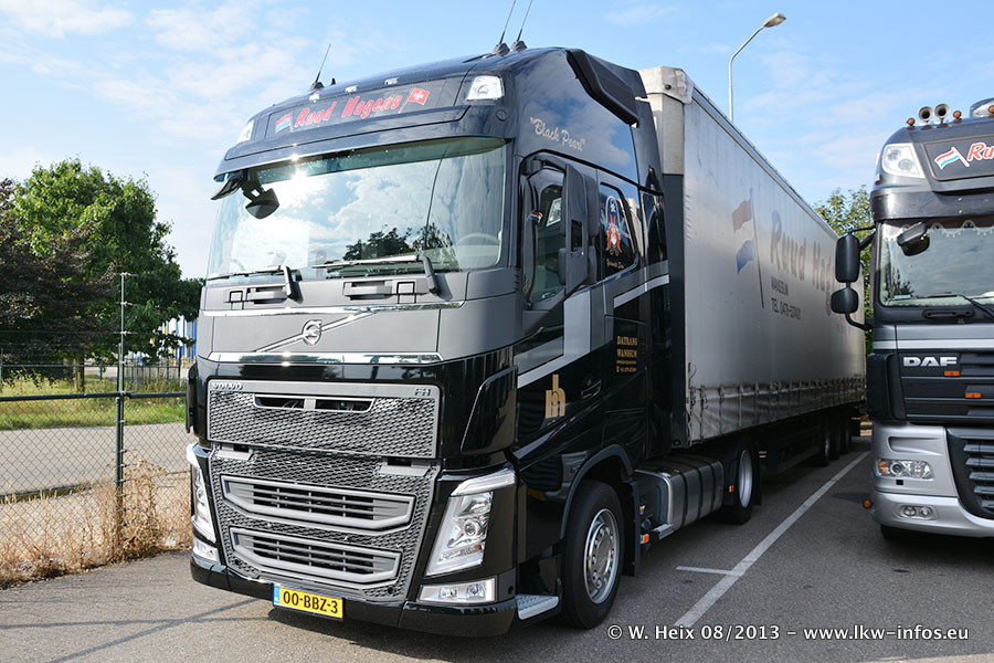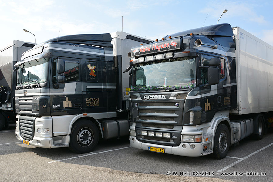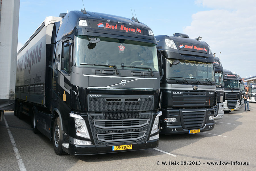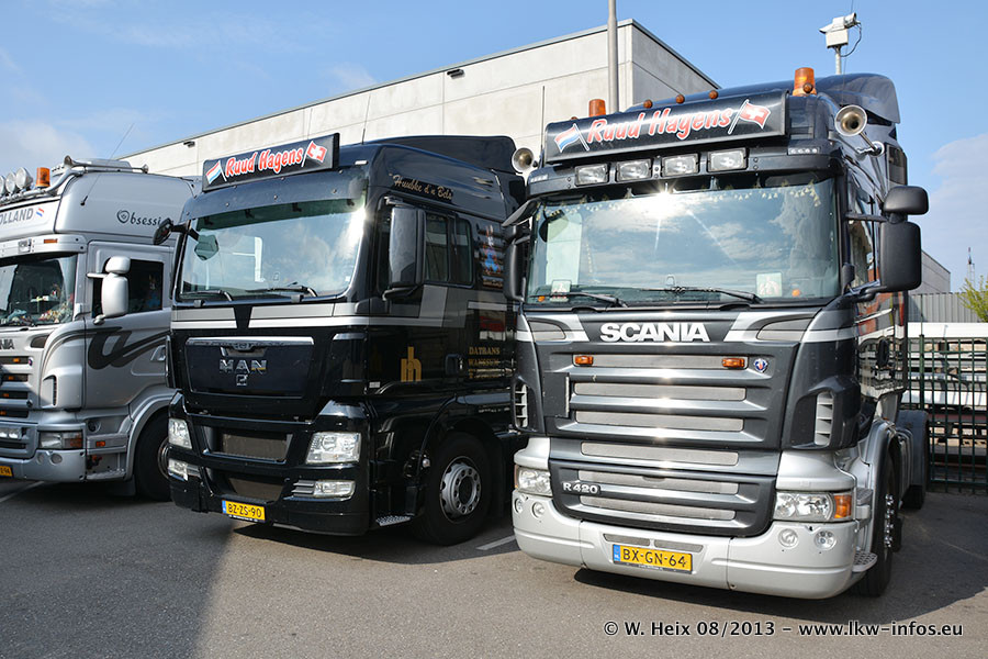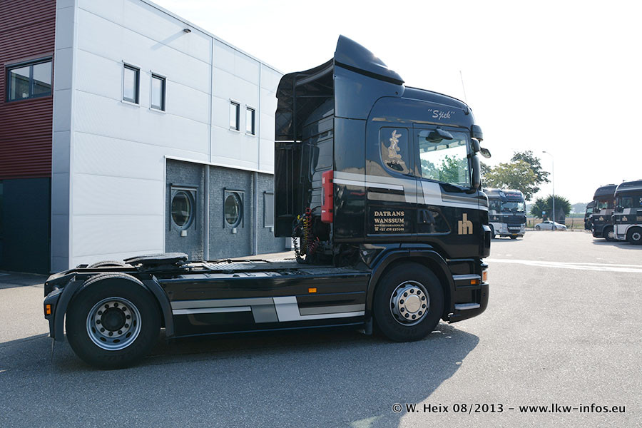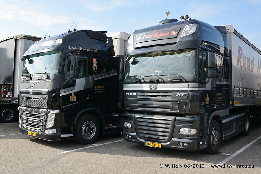 Die vier neuen Volvo New FH (FH 4) sind erst seit wenigen Tagen im Fuhrpark. Neu sind auch drei MAN New TGX (leider war nur einer da) sowie einzelne Scania New G und DAF XF 105. In den nächsten Wochen werden weitere Zugmaschinen durch neue ersetzt. Bilder folgen demnächst ..... Der schwarze Scania New R 500 V8 mit den blauen Streifen gehört inzwischen auch zu Fuhrpark. Der LKW wurde vor einiger Wochen von der Firma W. Gerrits aus Wellerlooi übernommen (siehe Modell 1:50 von Tekno - noch mit der alten Beschrifrung). Die Galerie enthält auch Bilder von Subunternehmer-Fahrzeugen.